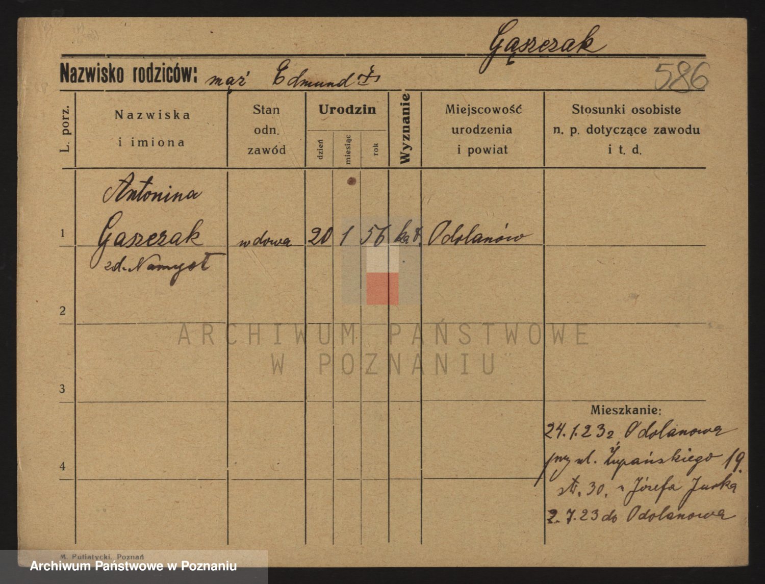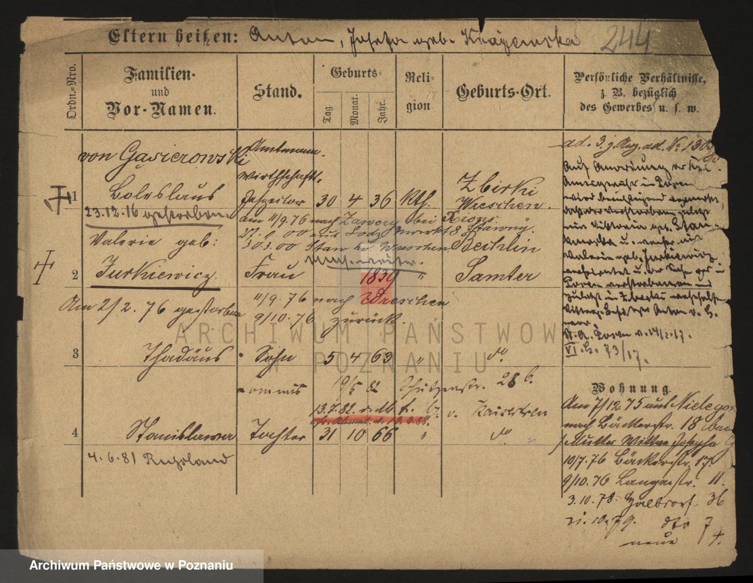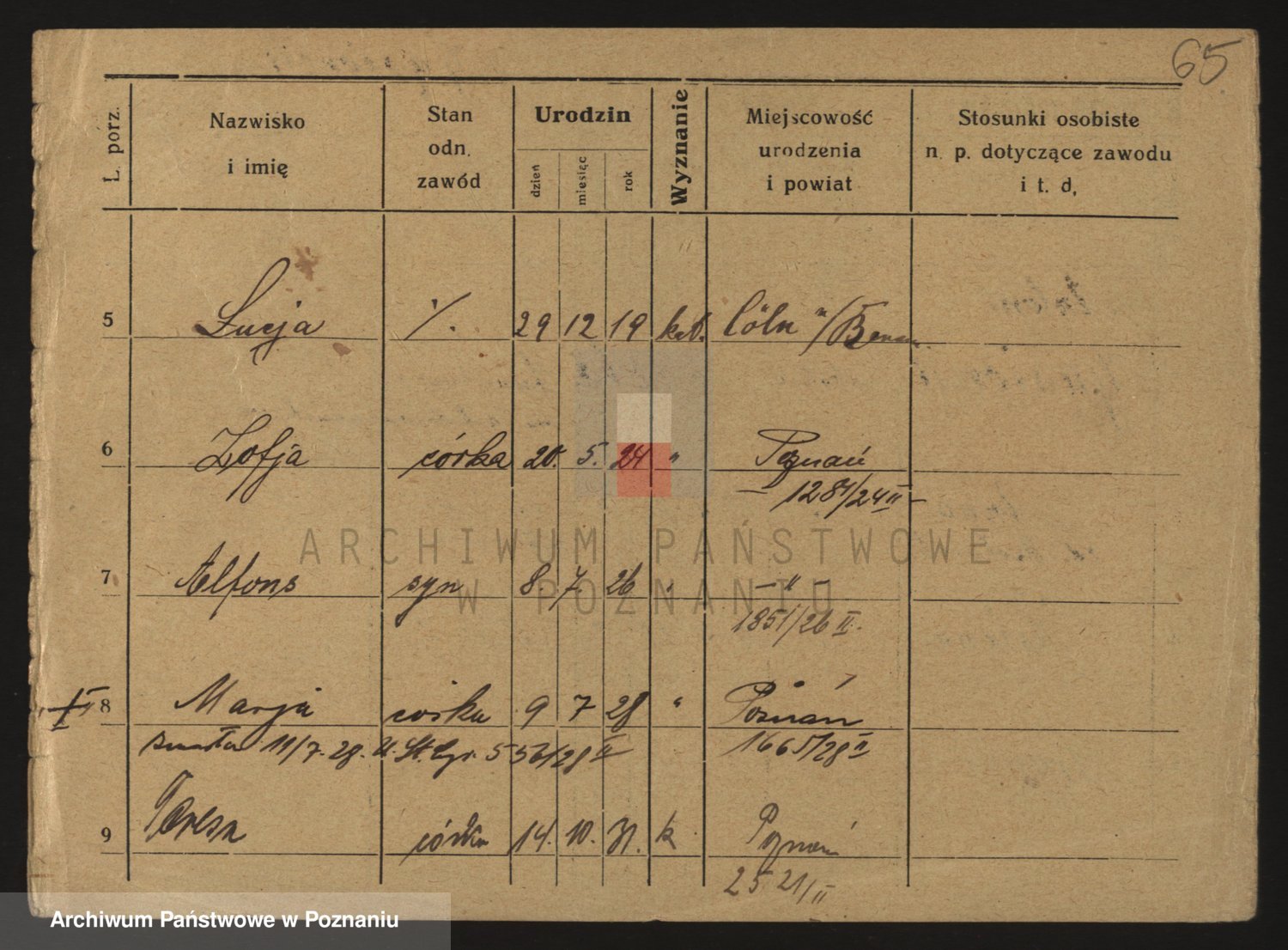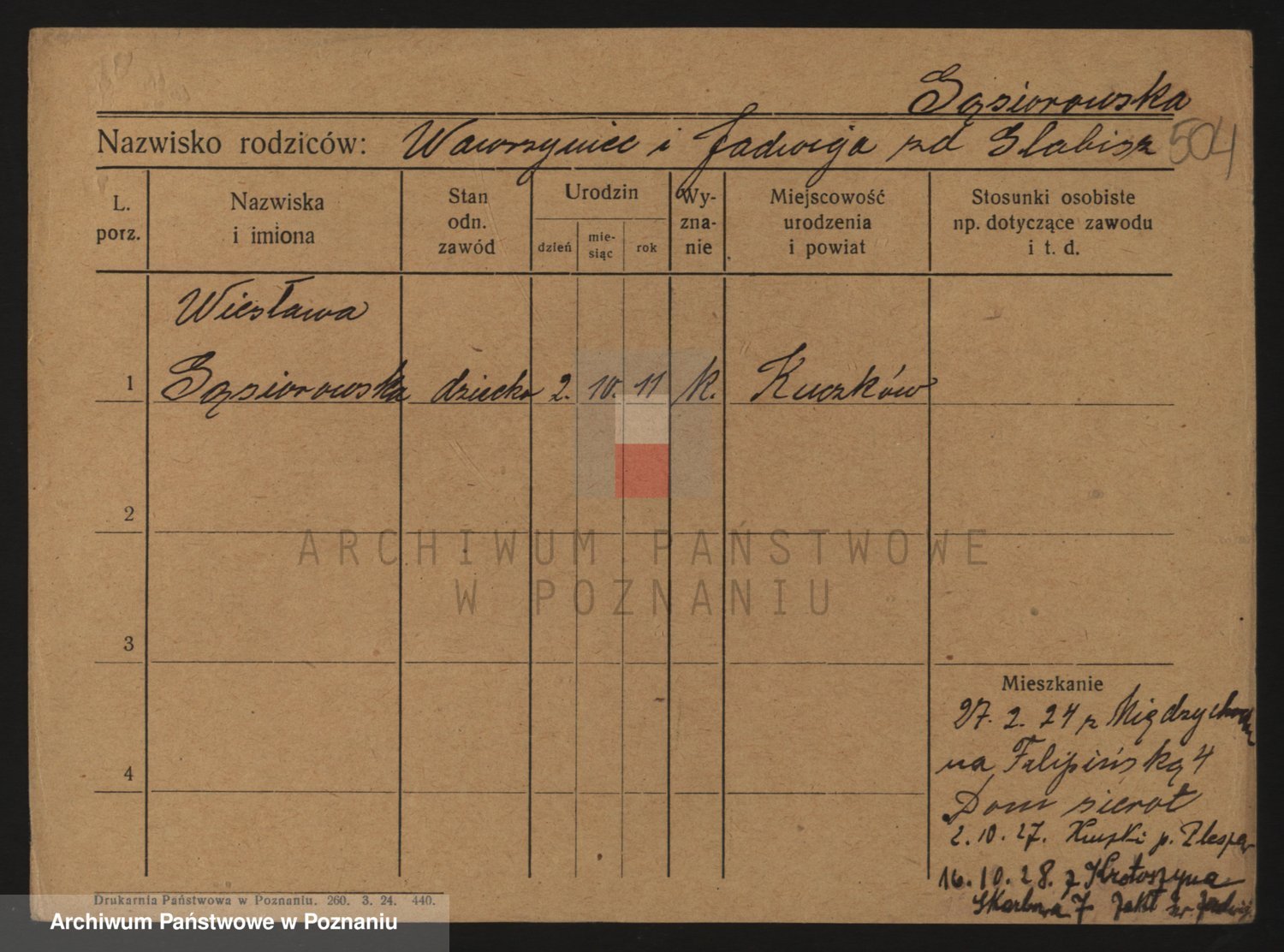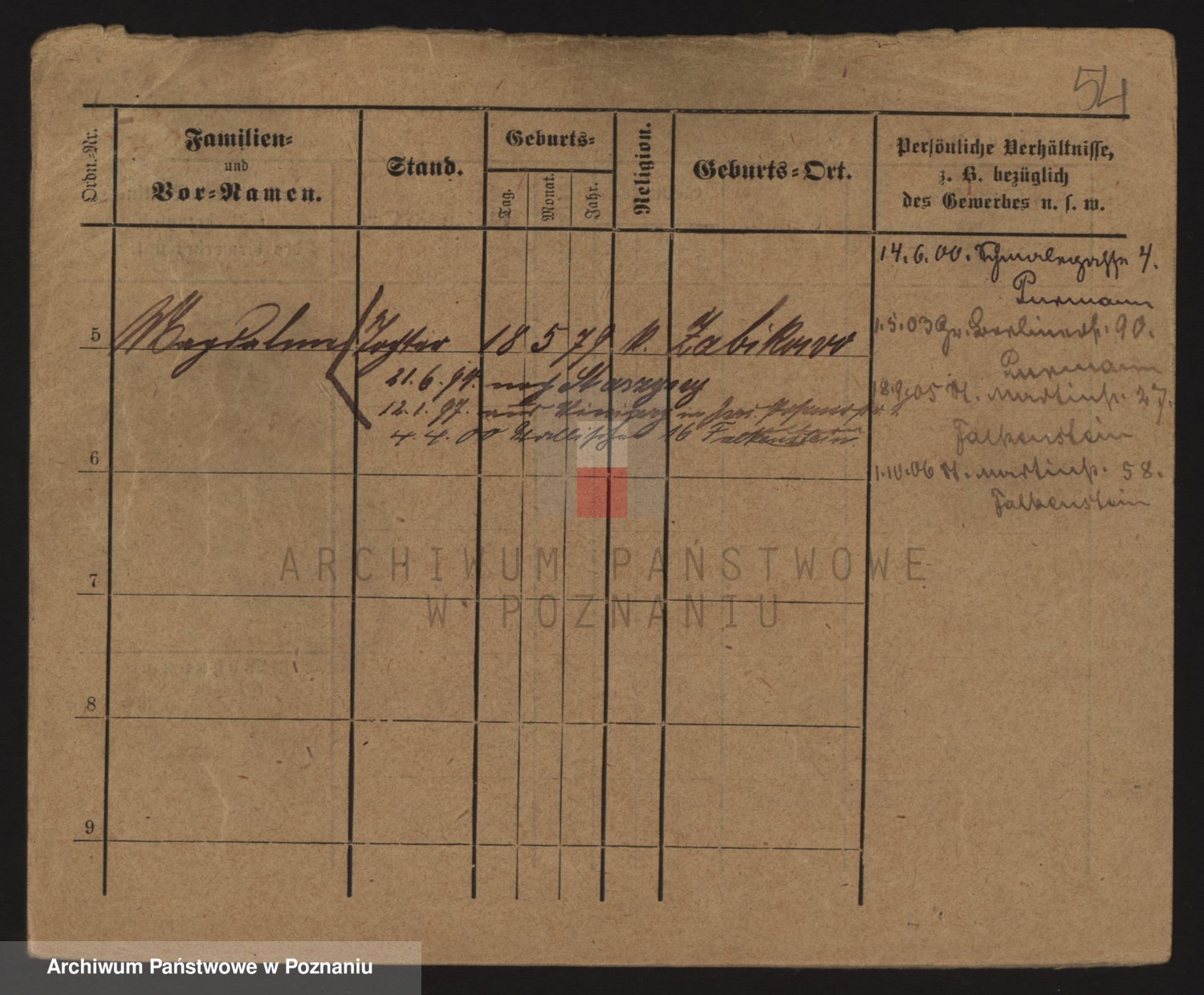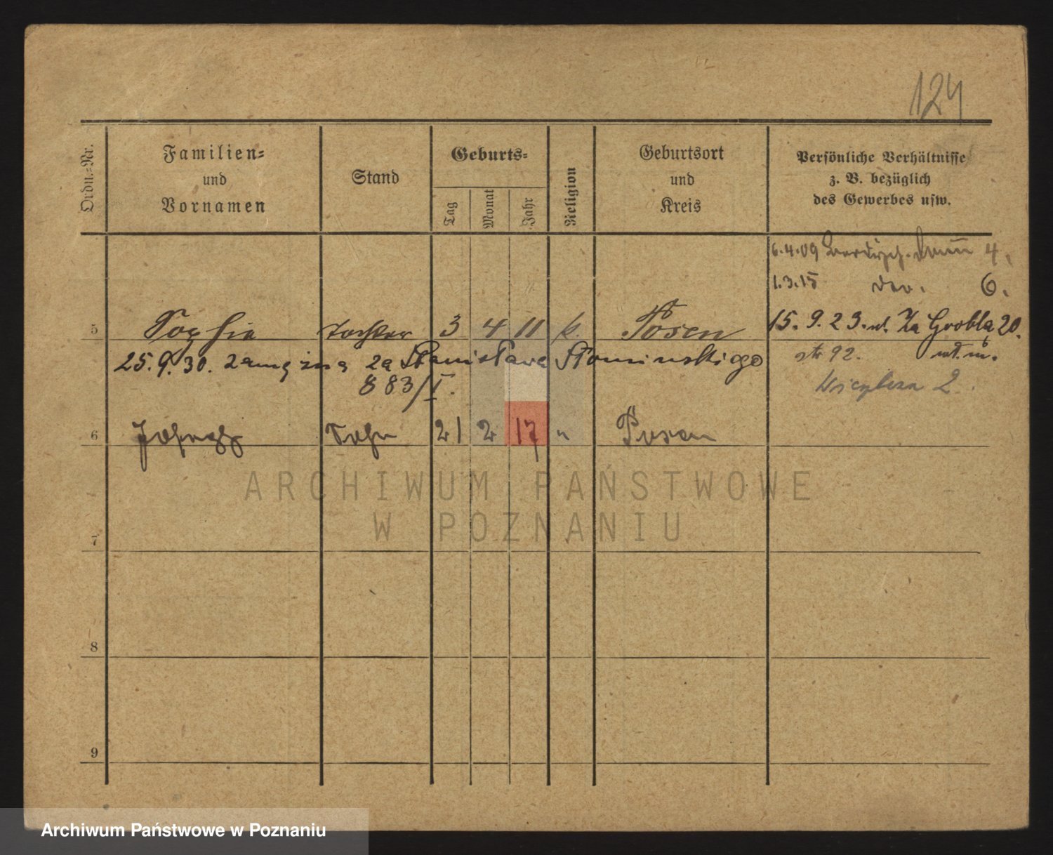 Podgląd karty osobowej dostępny jest po kliknięciu na nazwisko lub ikonkę karty. Można dokonywać powiększenia (ikony na górze) lub przechodzić między kolejnymi skanami (strzałki po bokach).