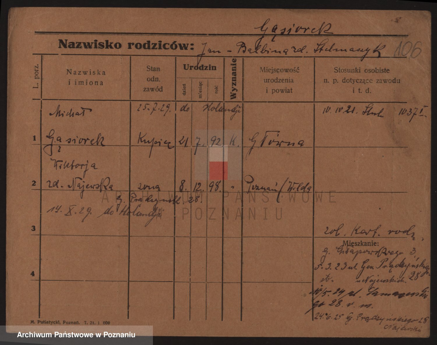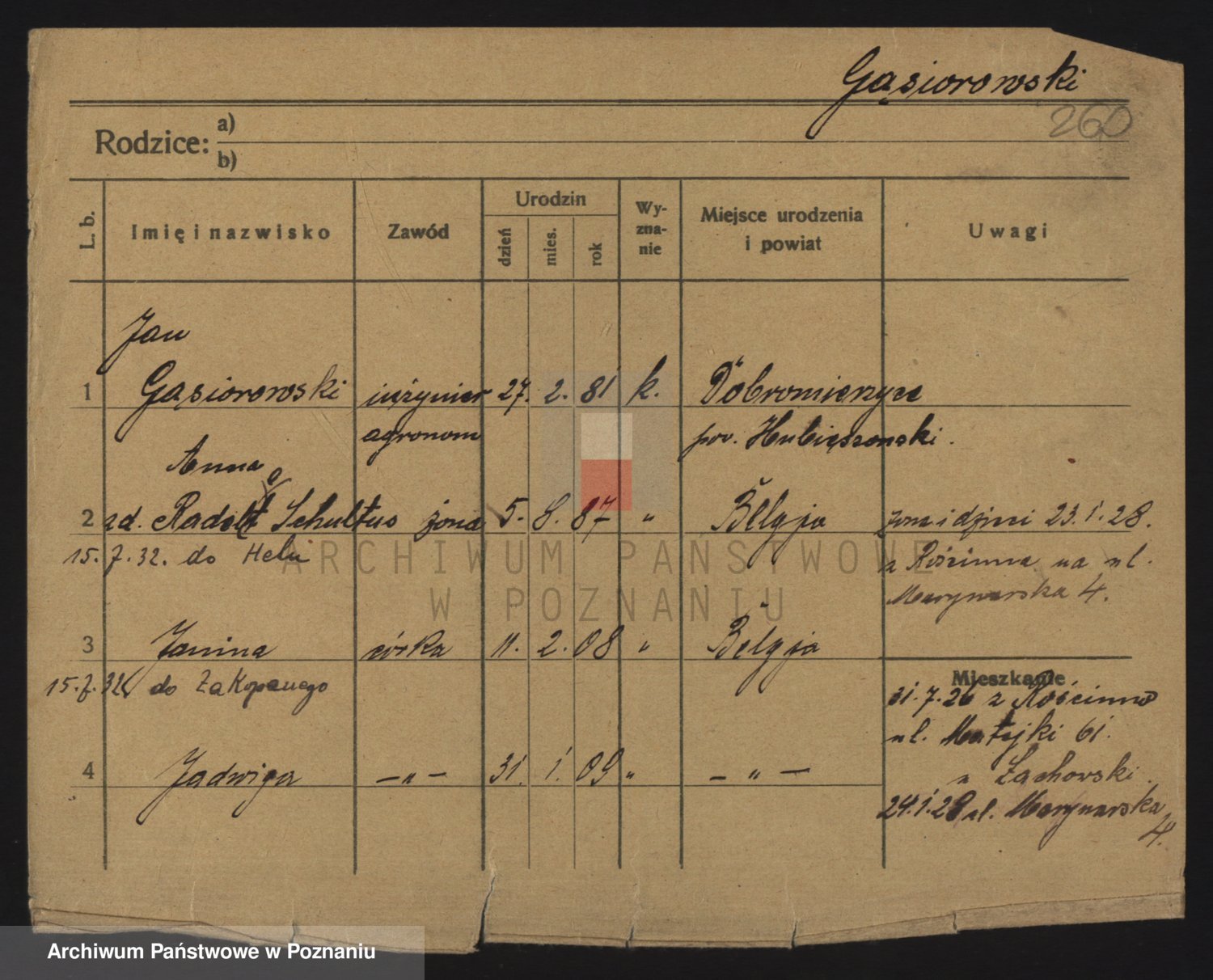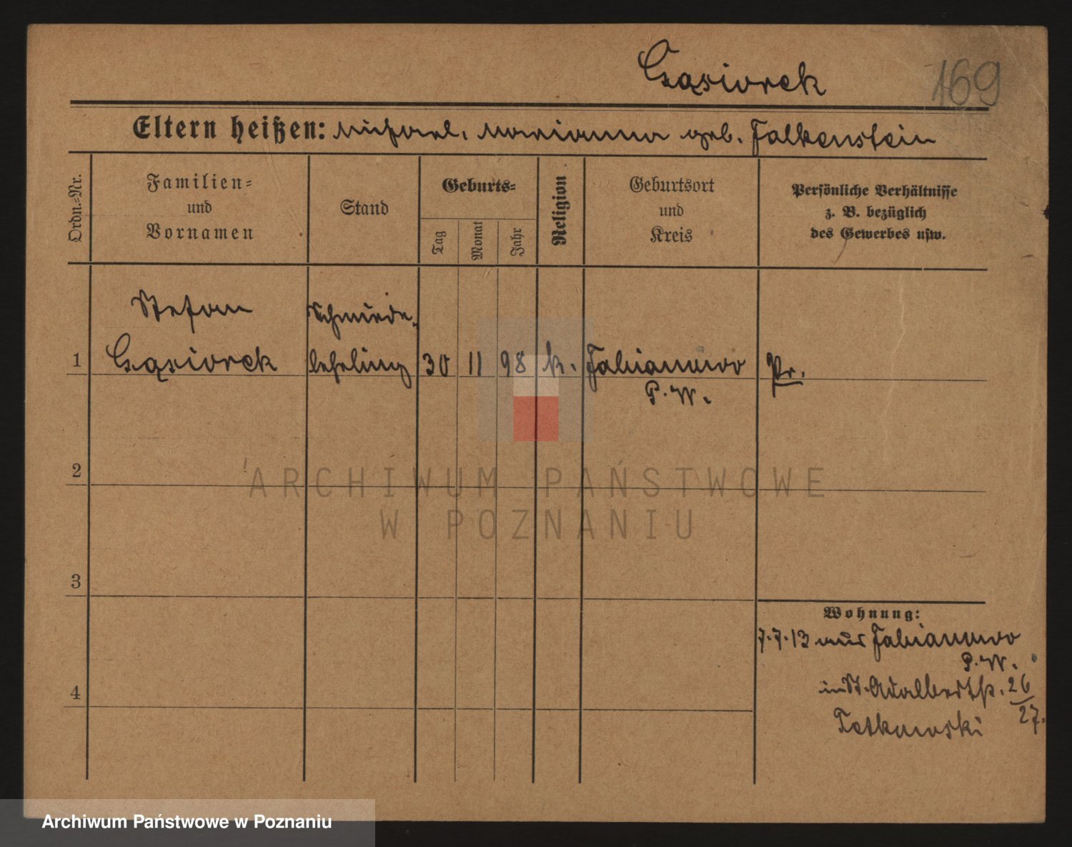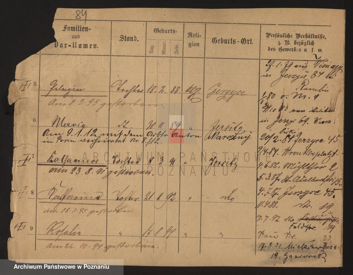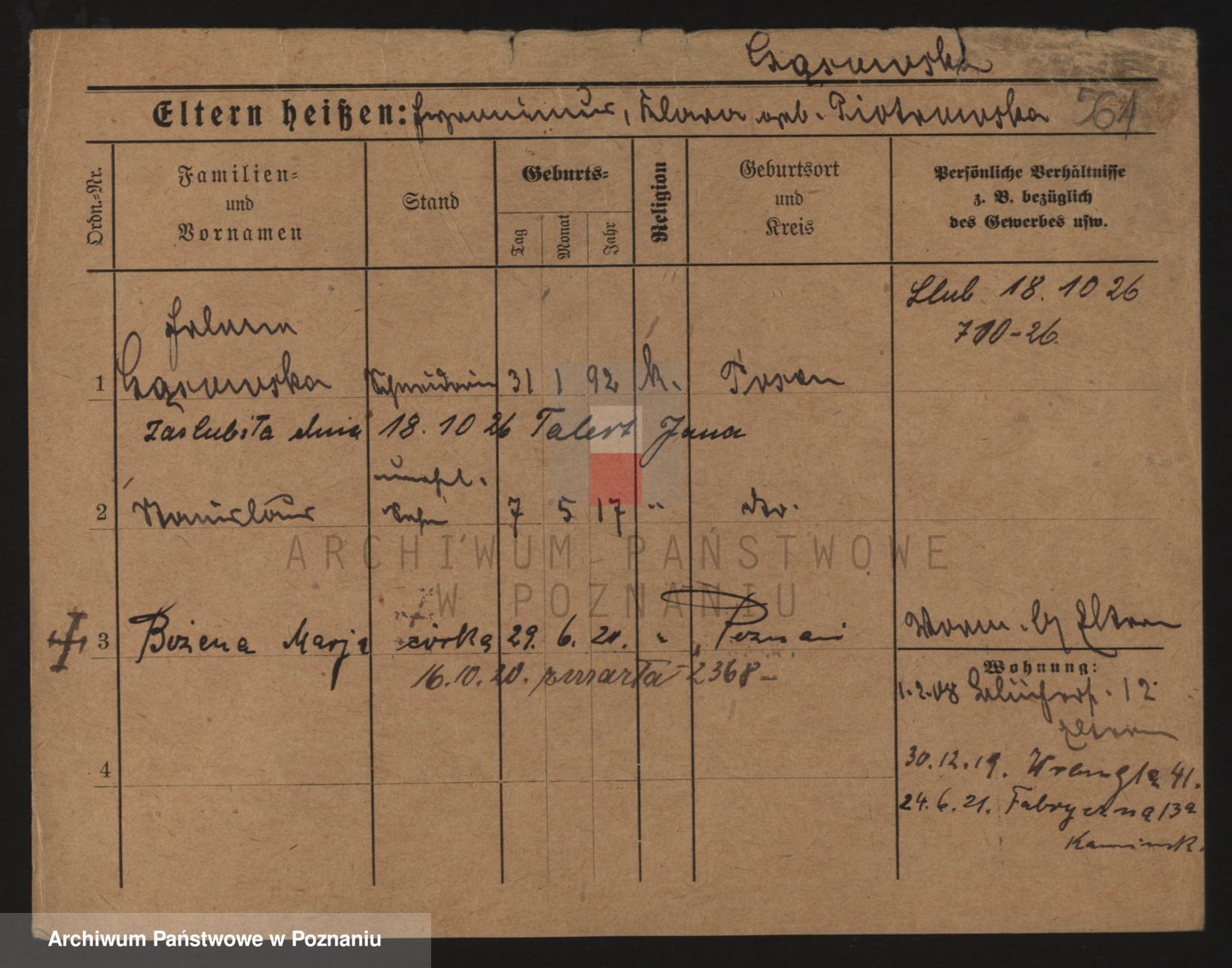 Podgląd karty osobowej dostępny jest po kliknięciu na nazwisko lub ikonkę karty. Można dokonywać powiększenia (ikony na górze) lub przechodzić między kolejnymi skanami (strzałki po bokach).