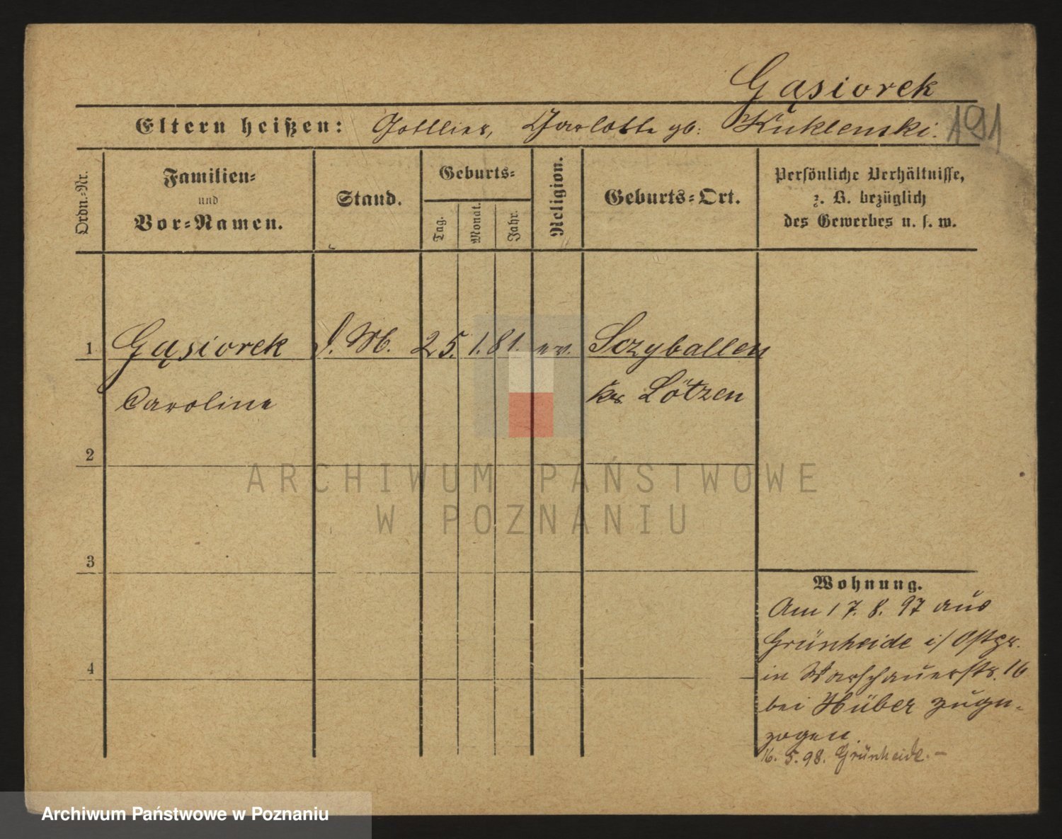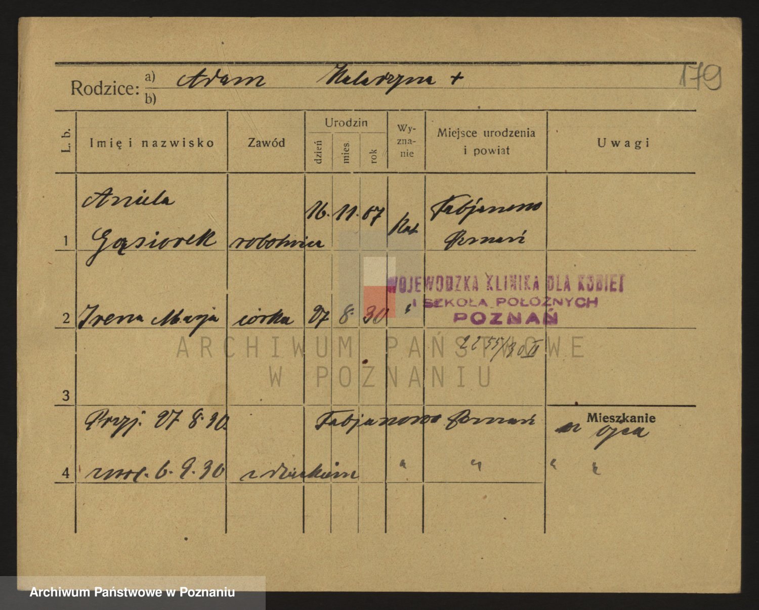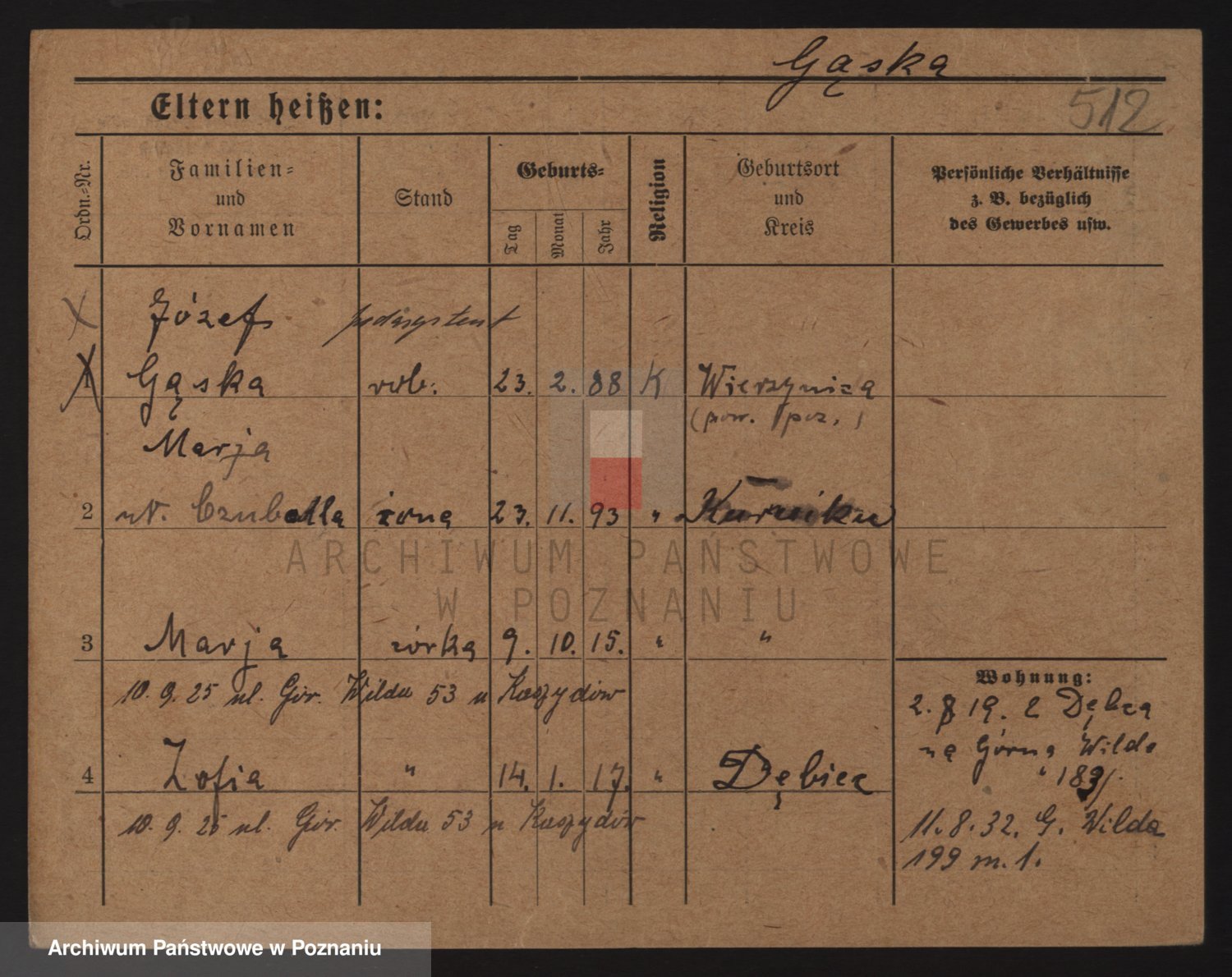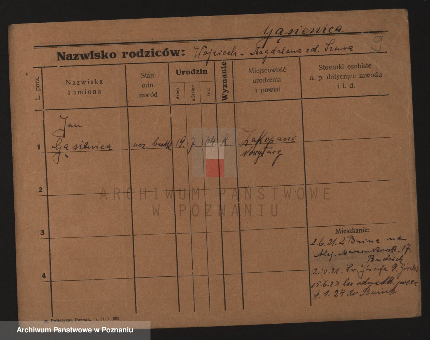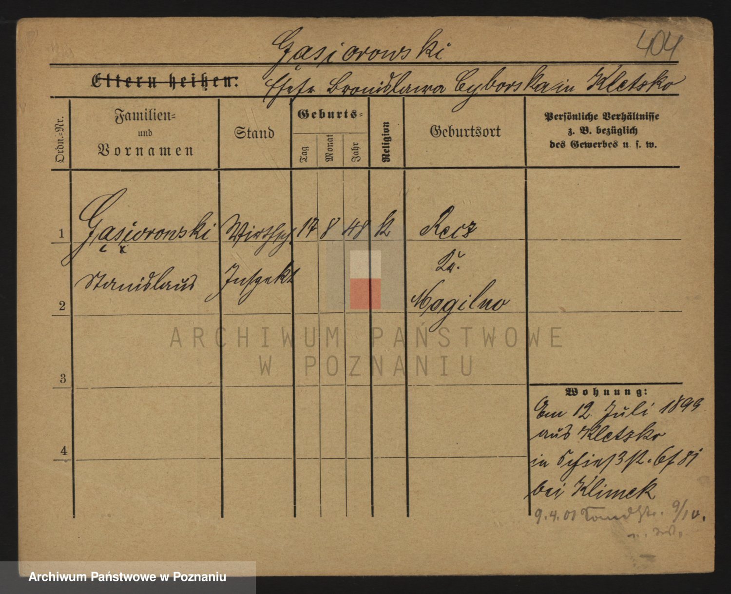 Podgląd karty osobowej dostępny jest po kliknięciu na nazwisko lub ikonkę karty. Można dokonywać powiększenia (ikony na górze) lub przechodzić między kolejnymi skanami (strzałki po bokach).