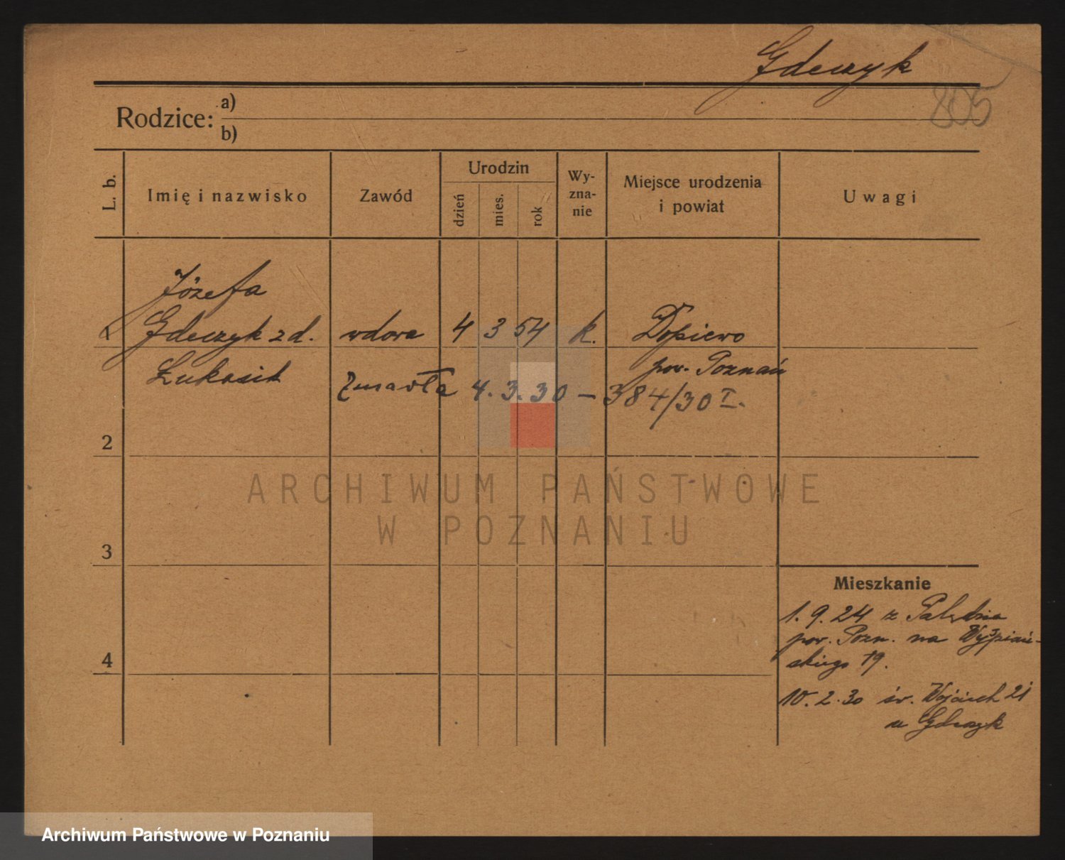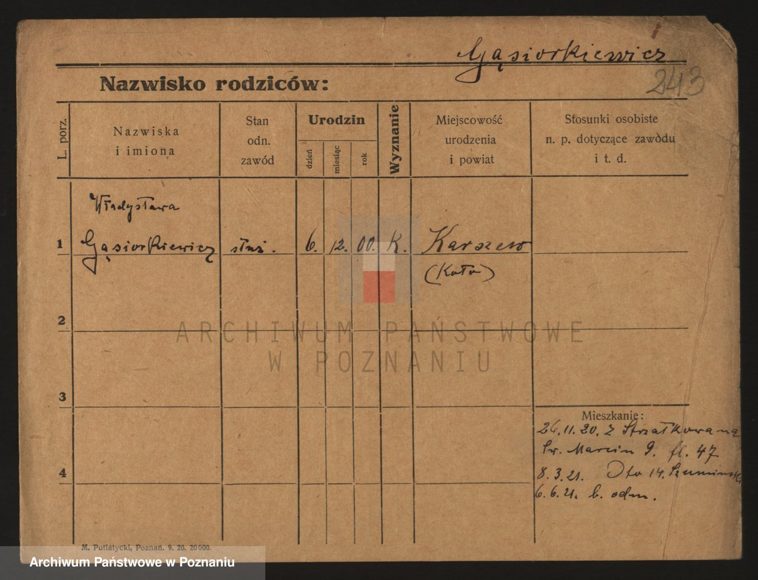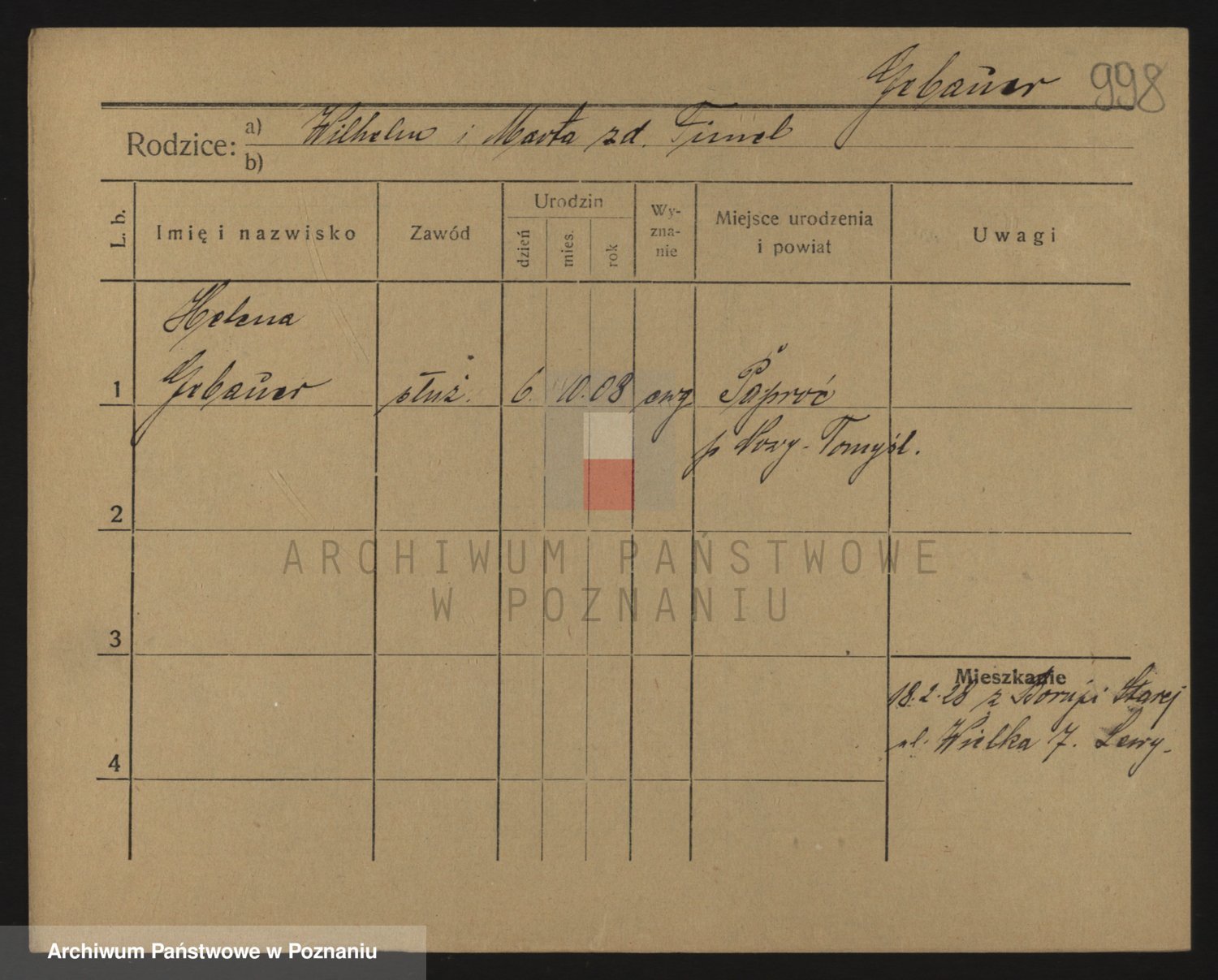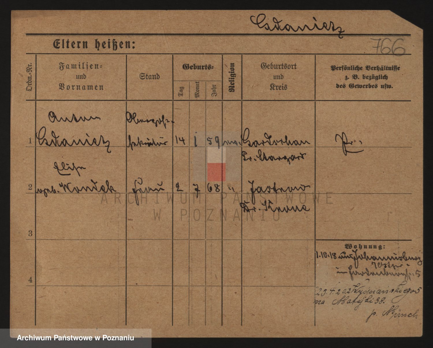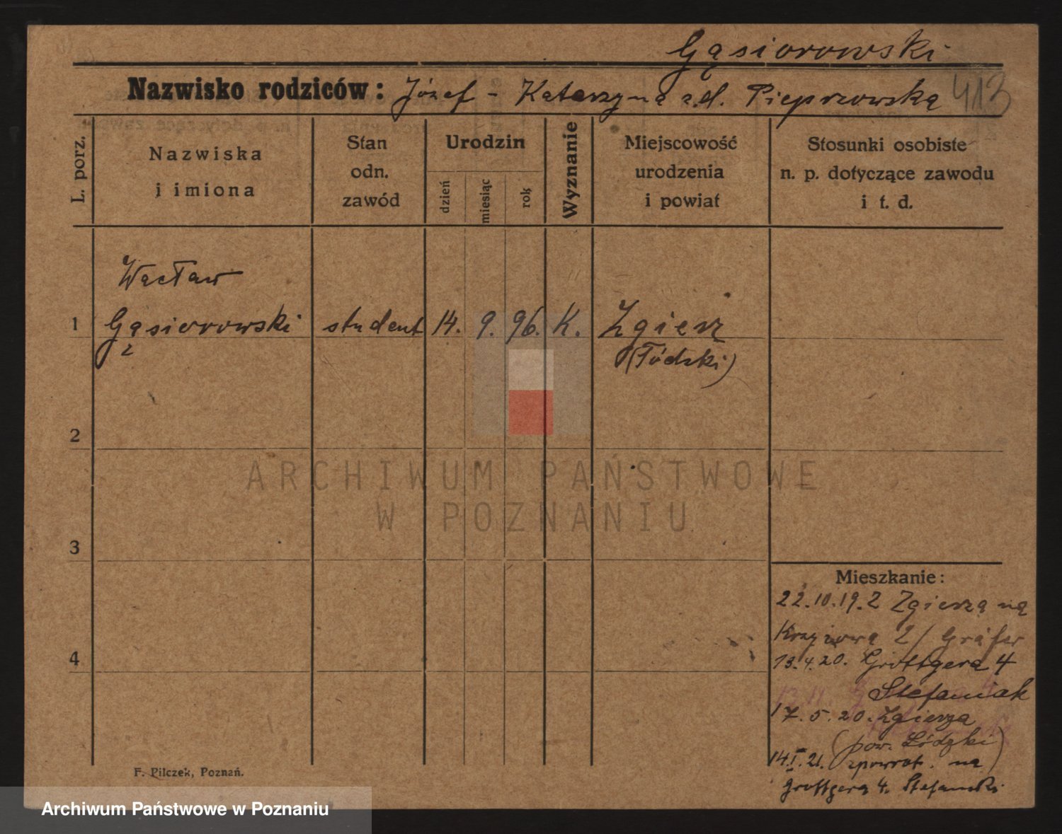 Podgląd karty osobowej dostępny jest po kliknięciu na nazwisko lub ikonkę karty. Można dokonywać powiększenia (ikony na górze) lub przechodzić między kolejnymi skanami (strzałki po bokach).