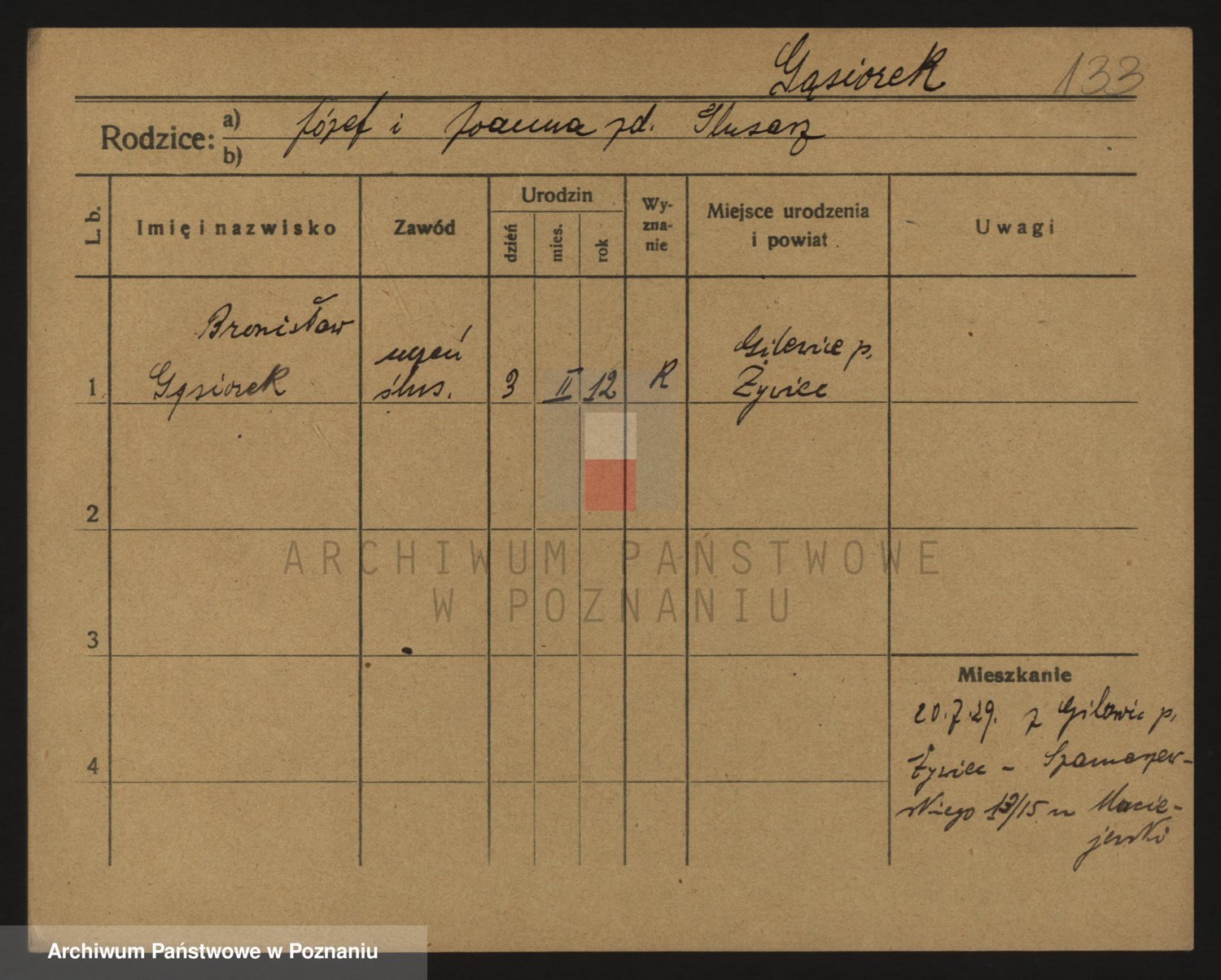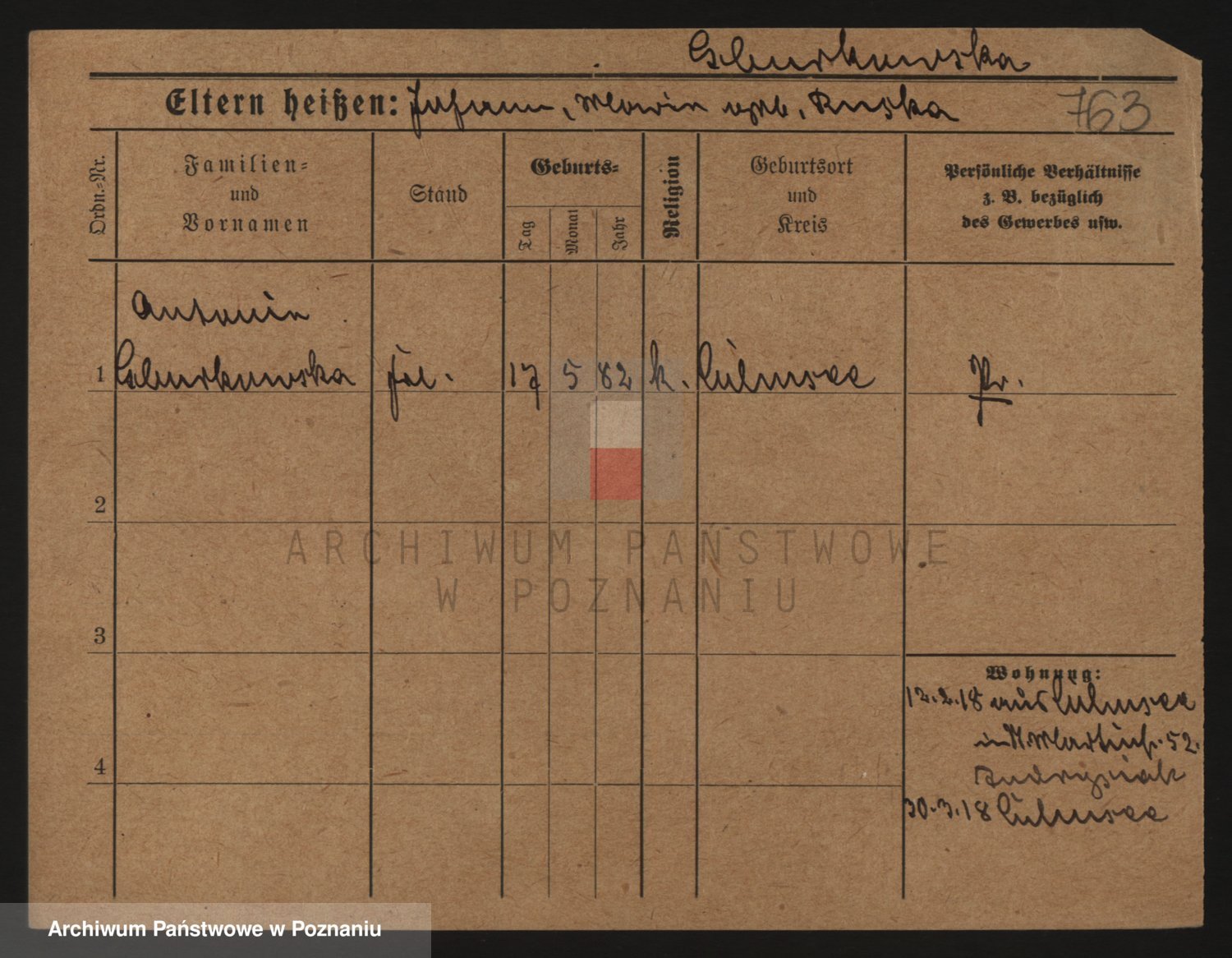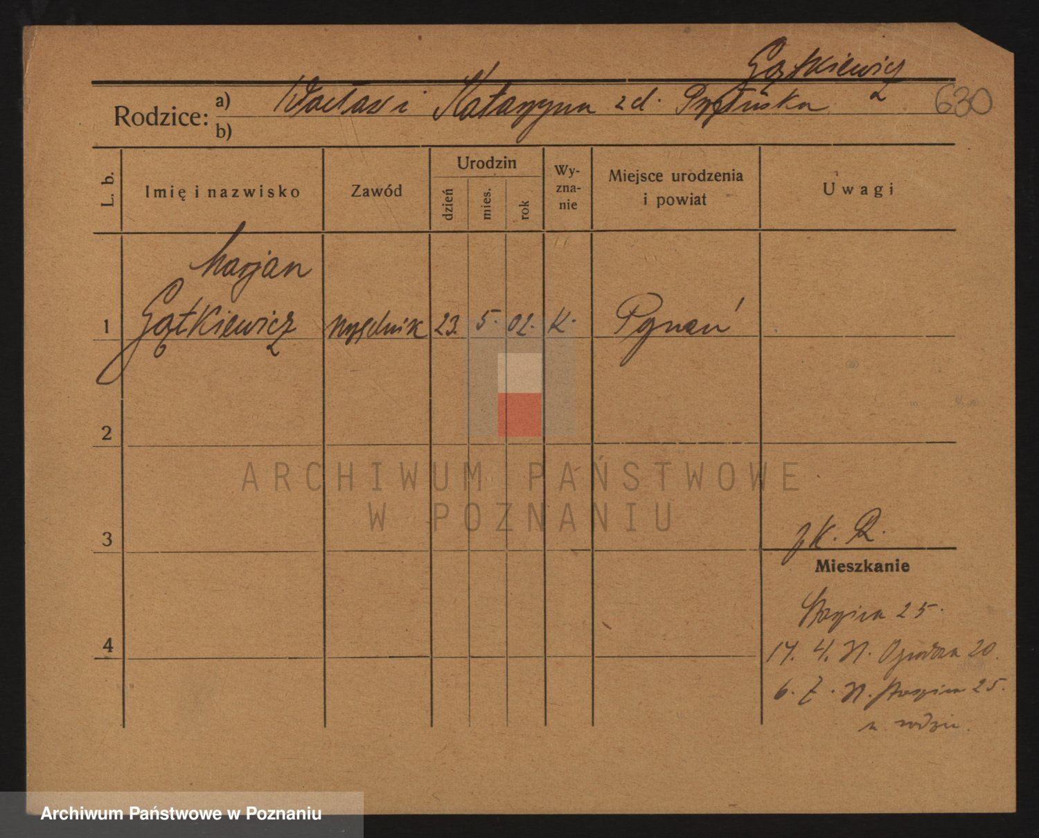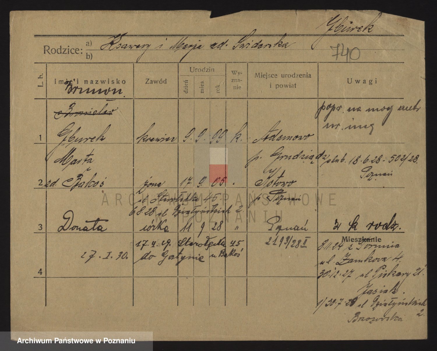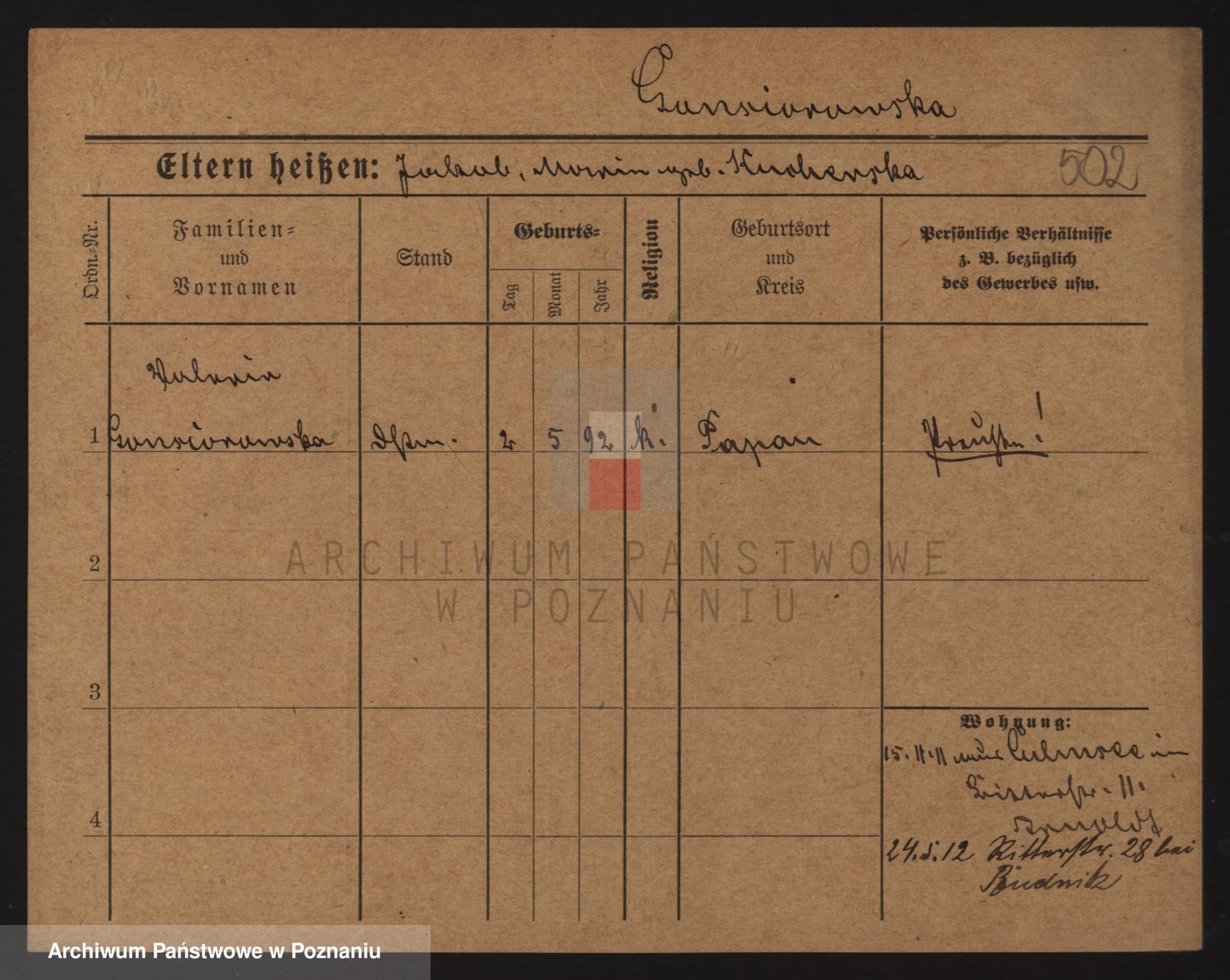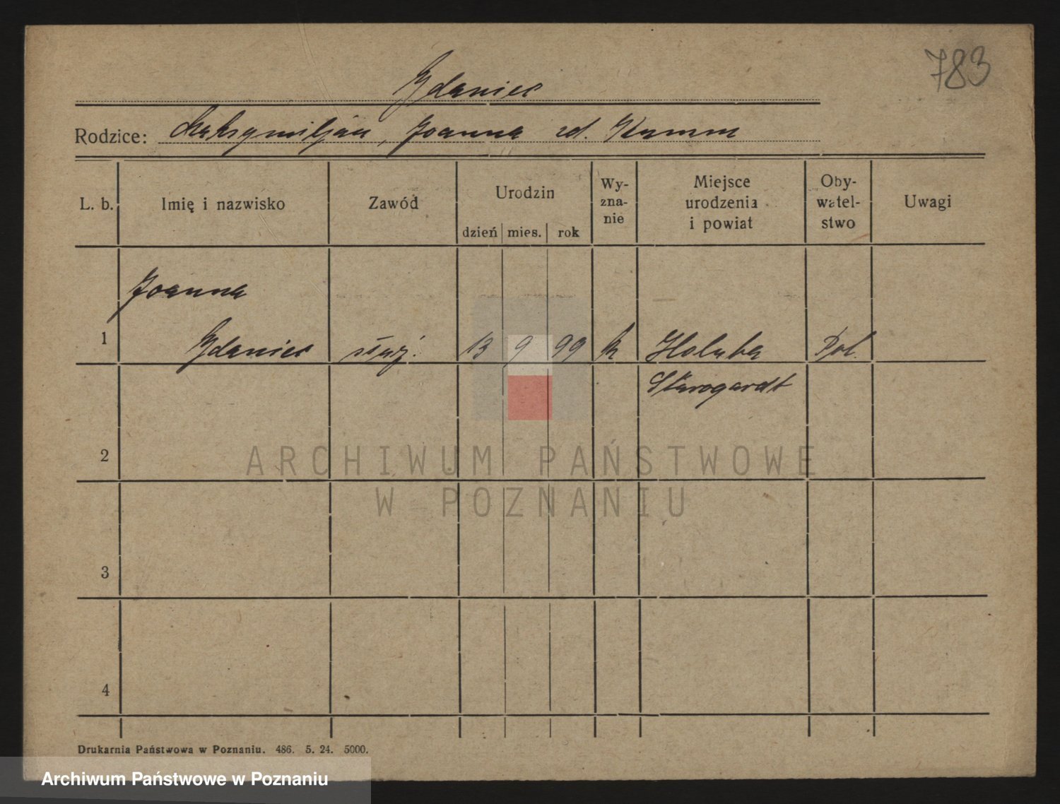 Podgląd karty osobowej dostępny jest po kliknięciu na nazwisko lub ikonkę karty. Można dokonywać powiększenia (ikony na górze) lub przechodzić między kolejnymi skanami (strzałki po bokach).
