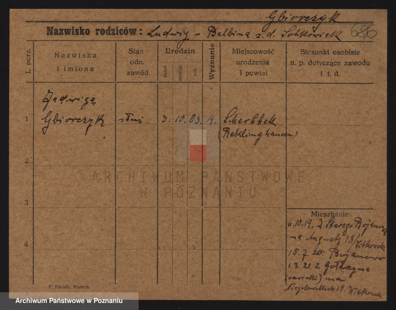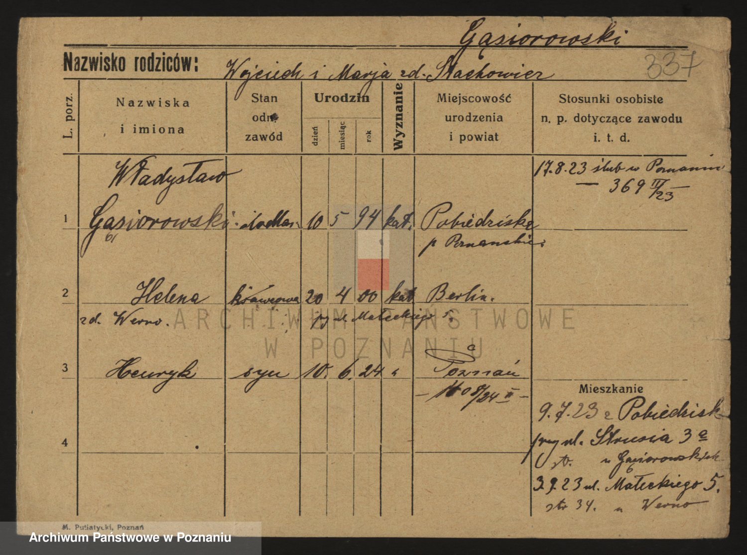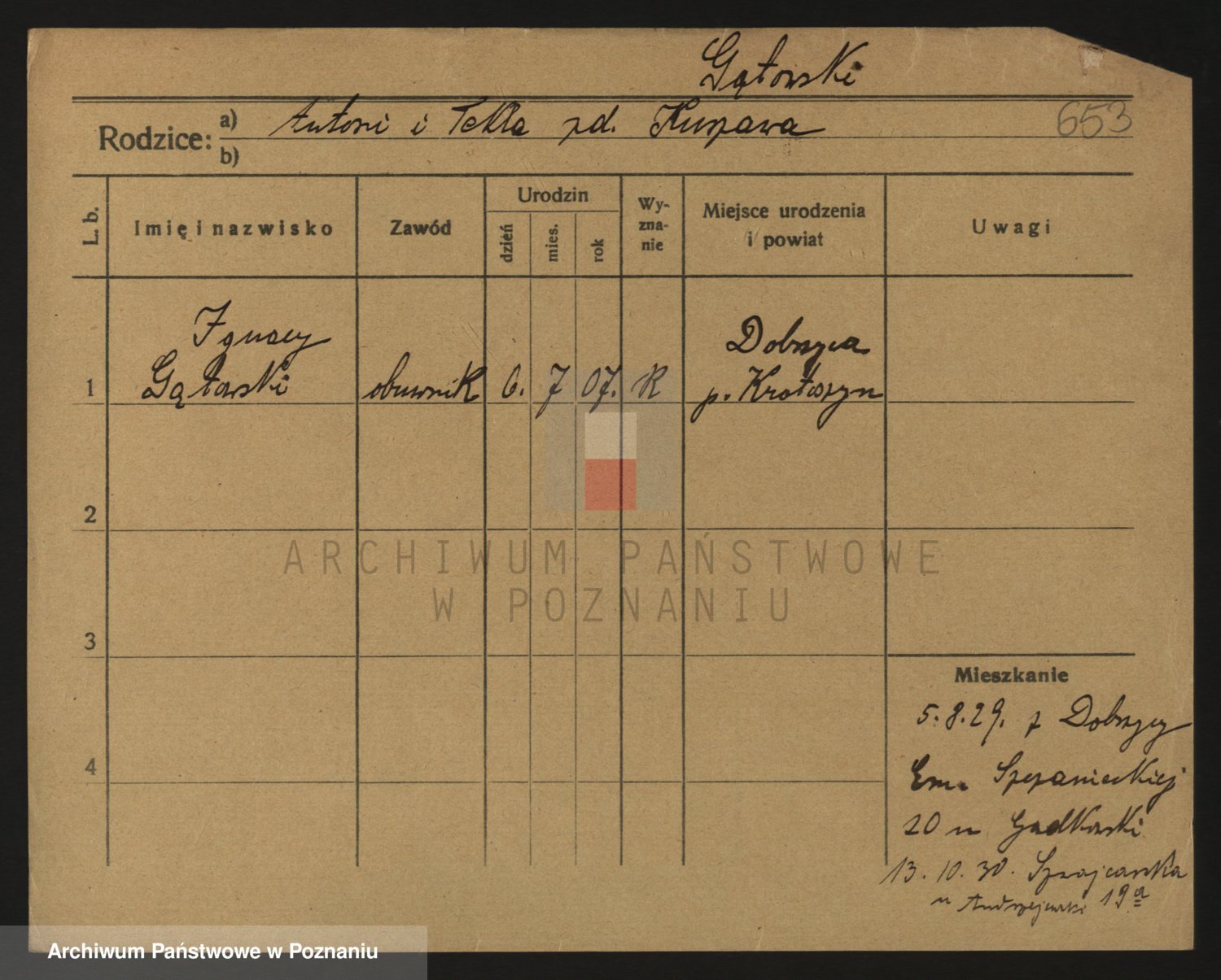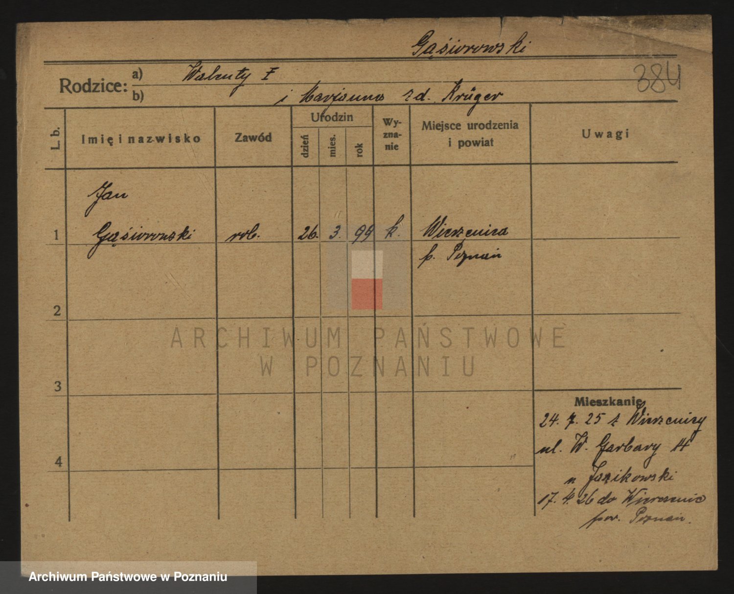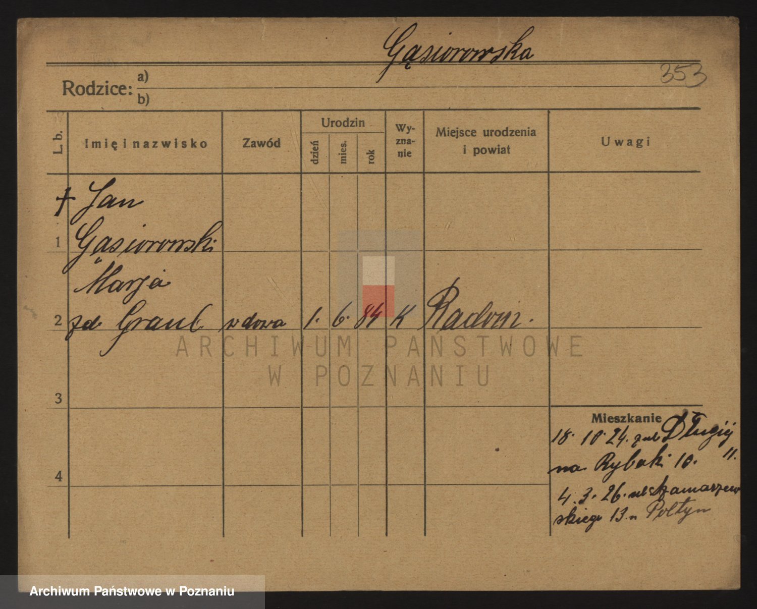 Podgląd karty osobowej dostępny jest po kliknięciu na nazwisko lub ikonkę karty. Można dokonywać powiększenia (ikony na górze) lub przechodzić między kolejnymi skanami (strzałki po bokach).