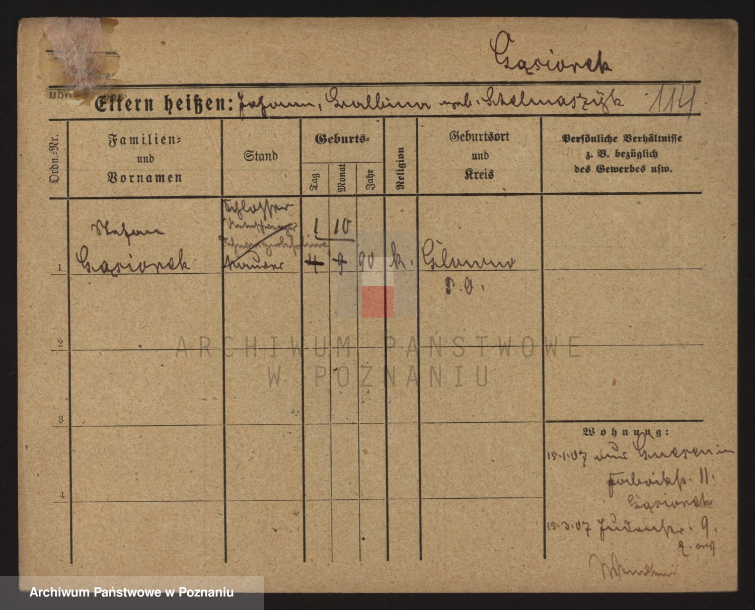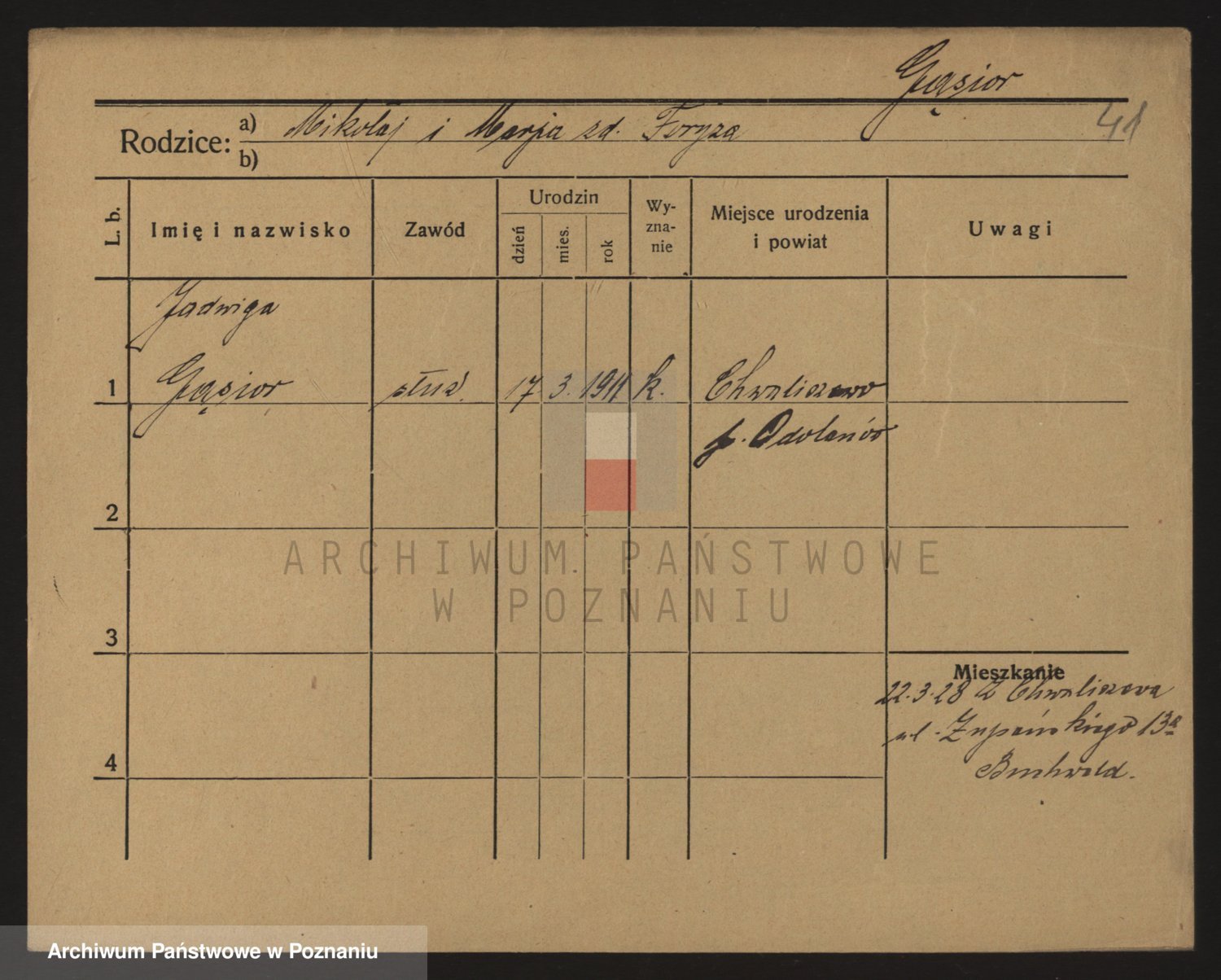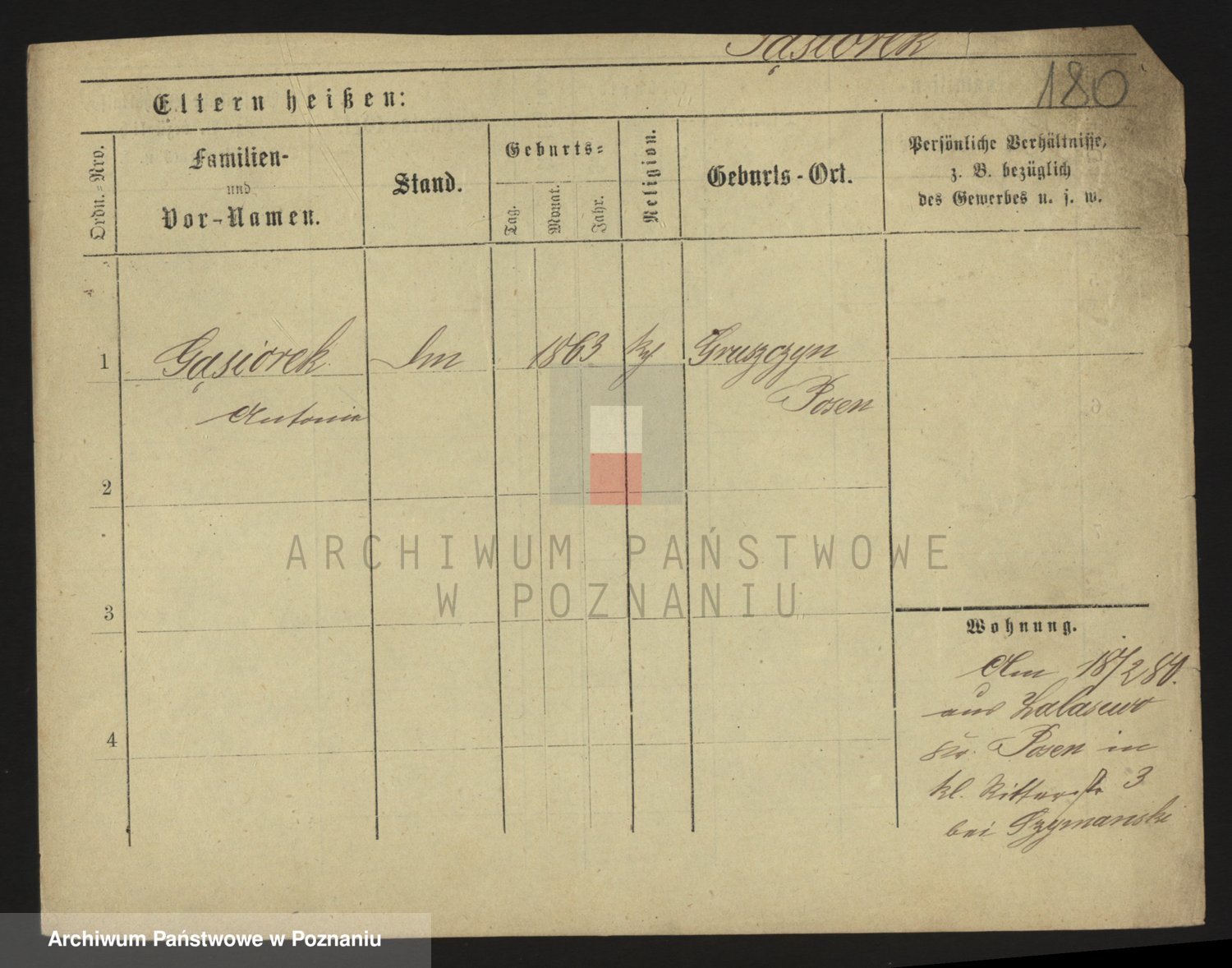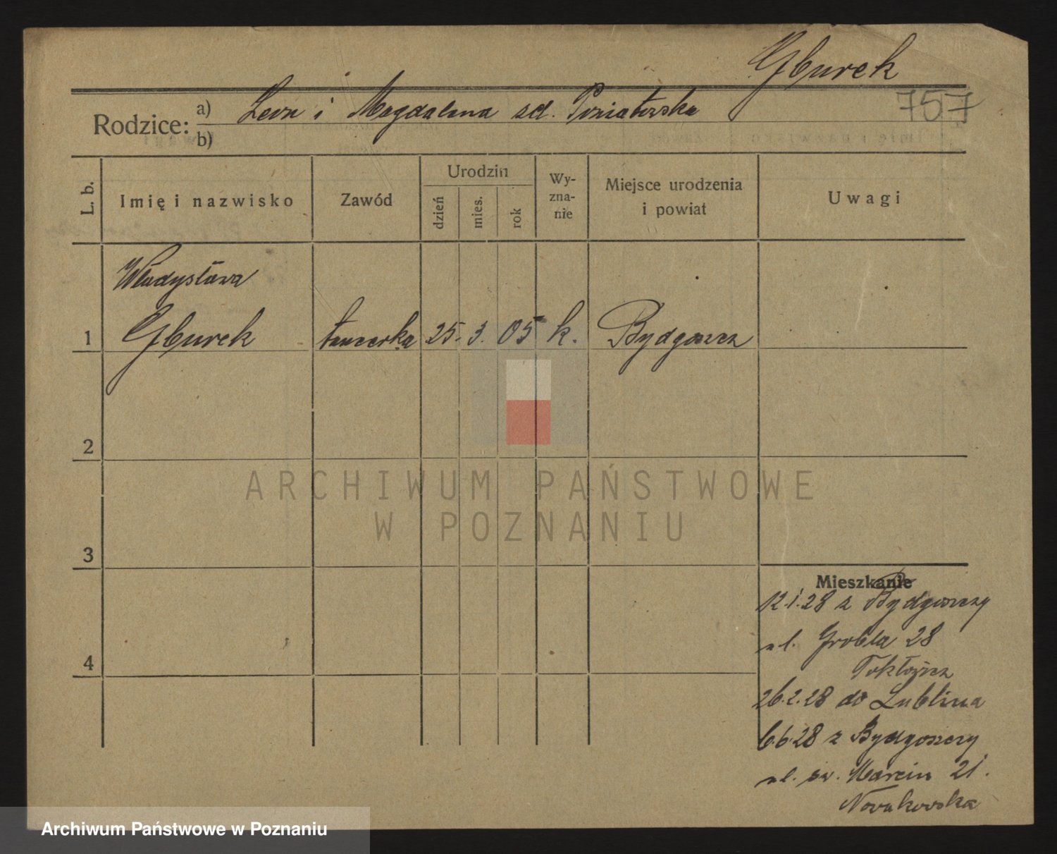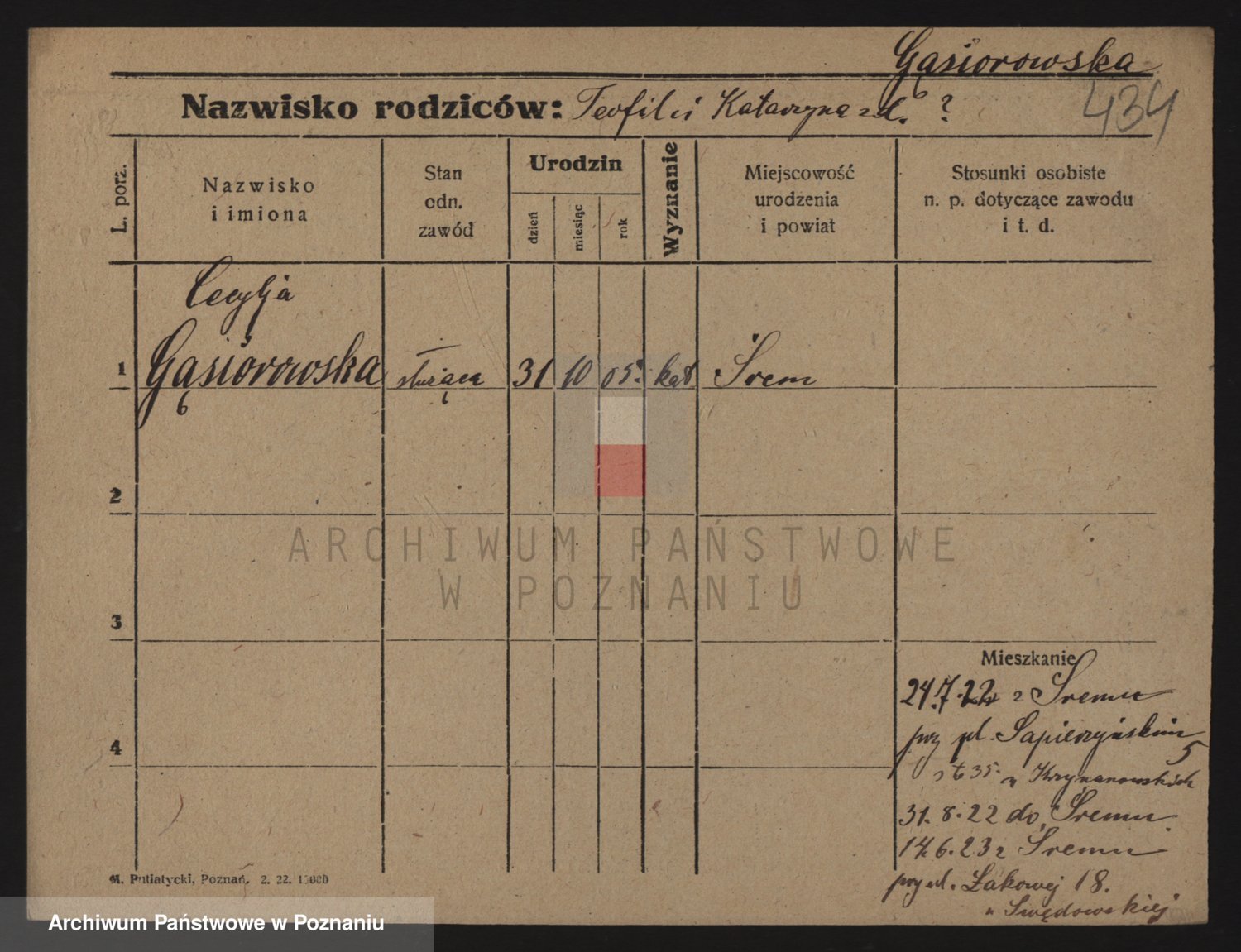 Podgląd karty osobowej dostępny jest po kliknięciu na nazwisko lub ikonkę karty. Można dokonywać powiększenia (ikony na górze) lub przechodzić między kolejnymi skanami (strzałki po bokach).