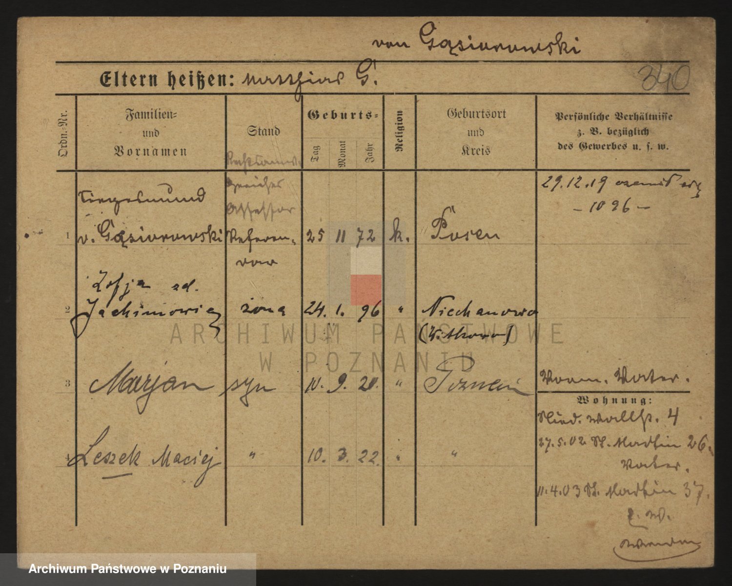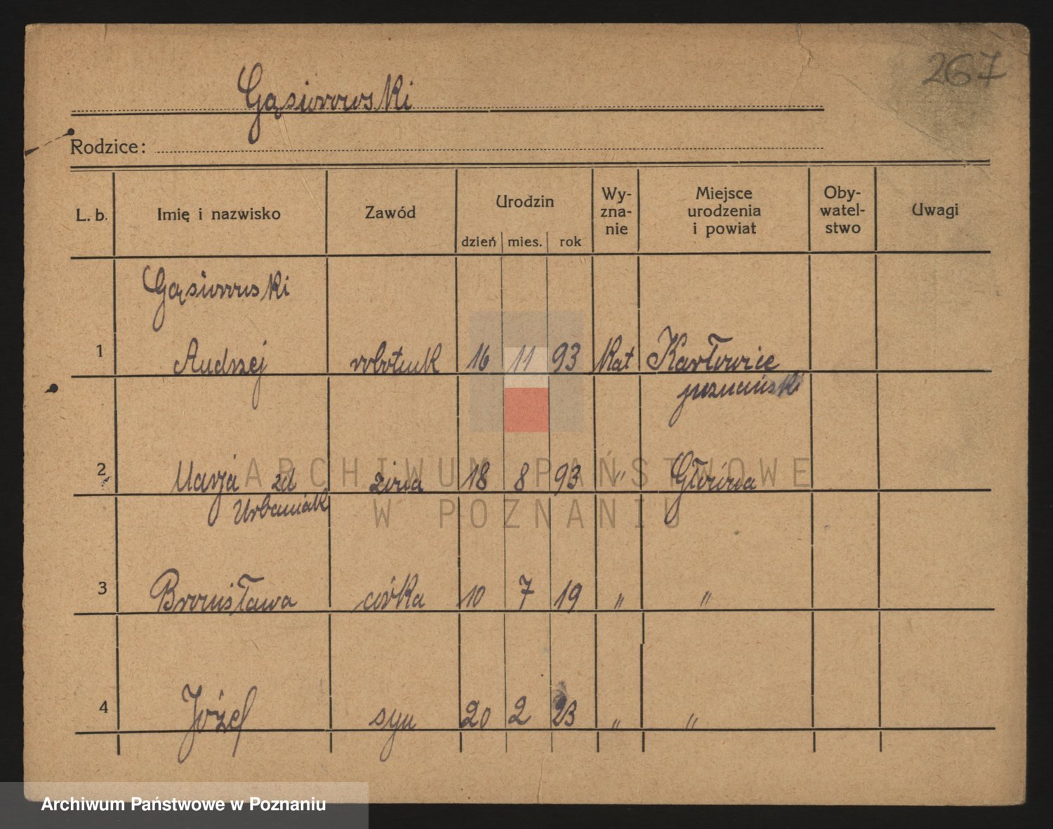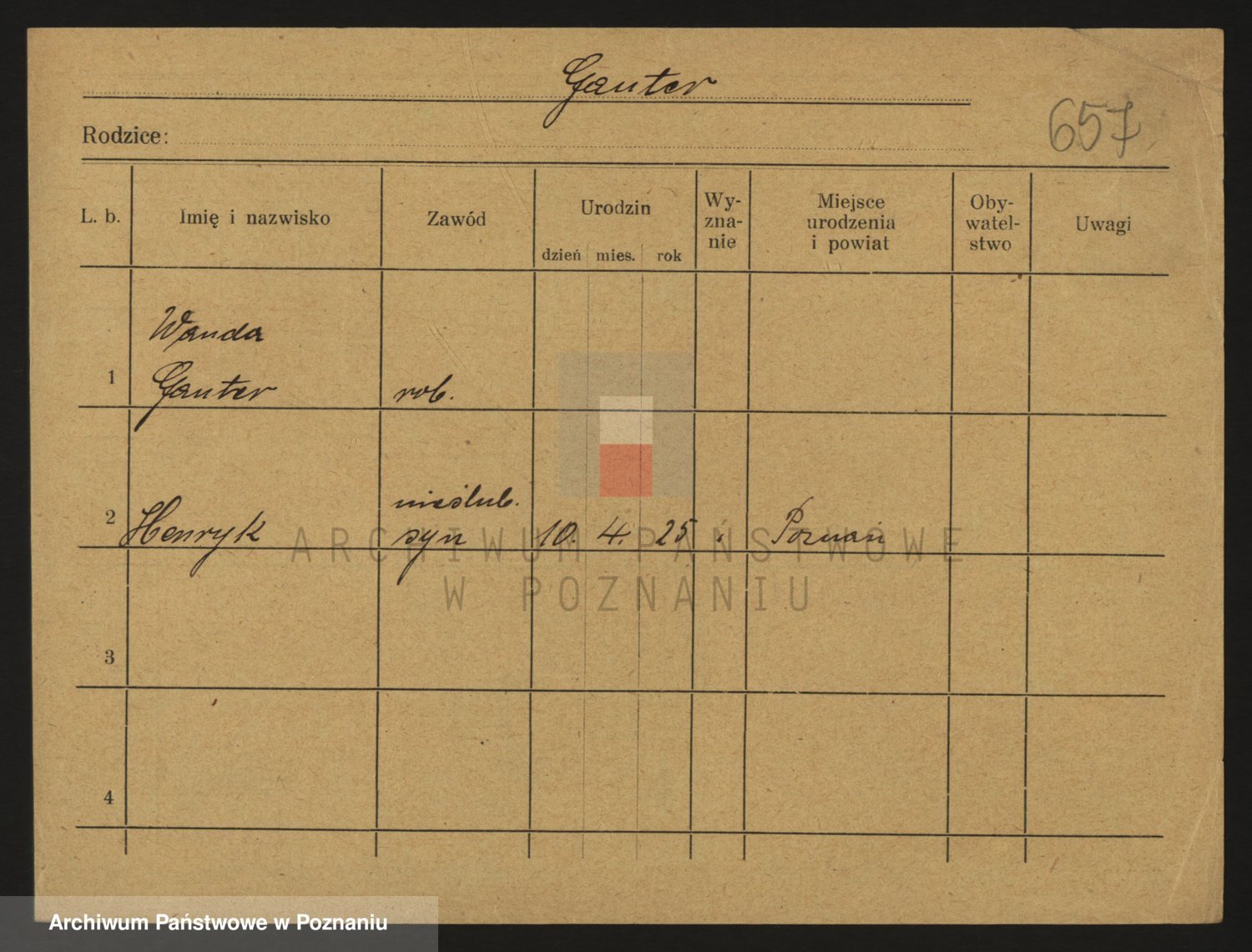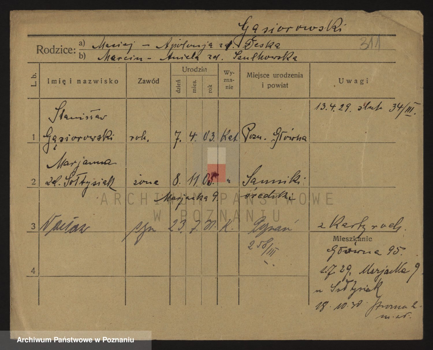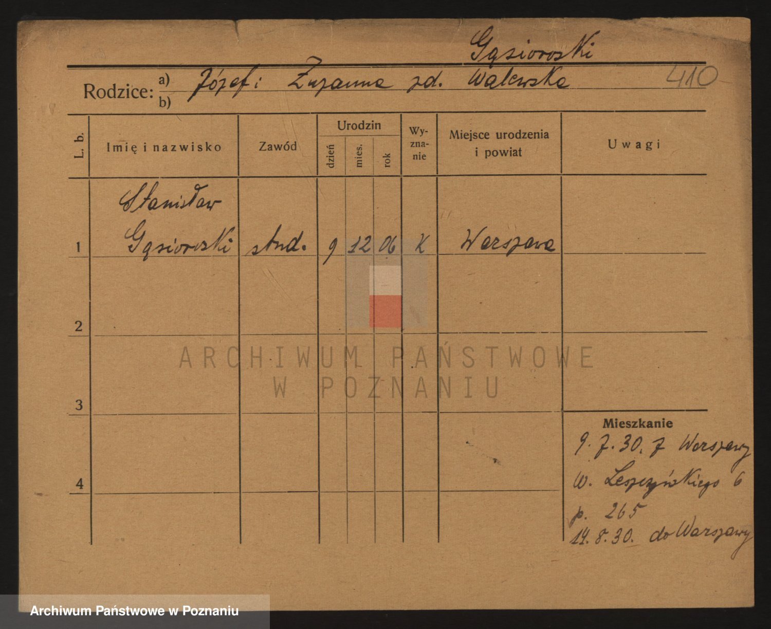 Podgląd karty osobowej dostępny jest po kliknięciu na nazwisko lub ikonkę karty. Można dokonywać powiększenia (ikony na górze) lub przechodzić między kolejnymi skanami (strzałki po bokach).