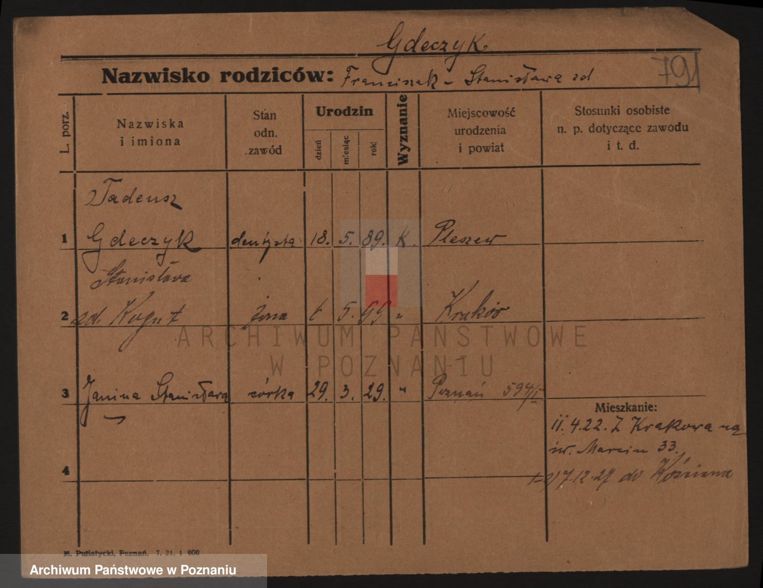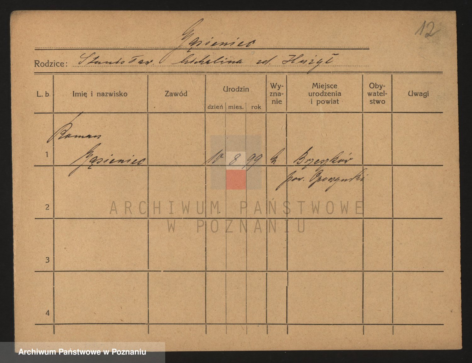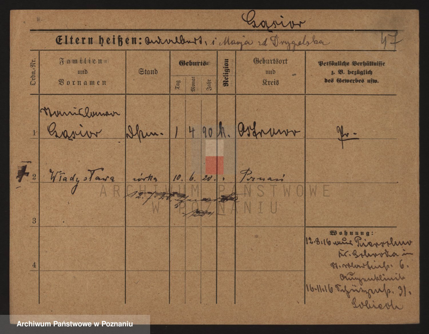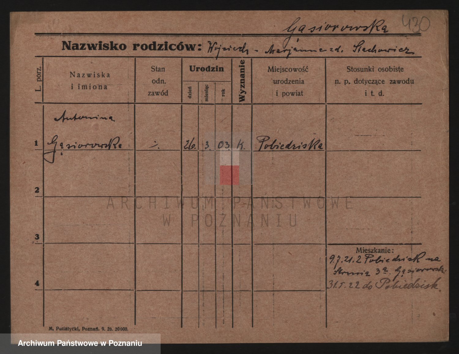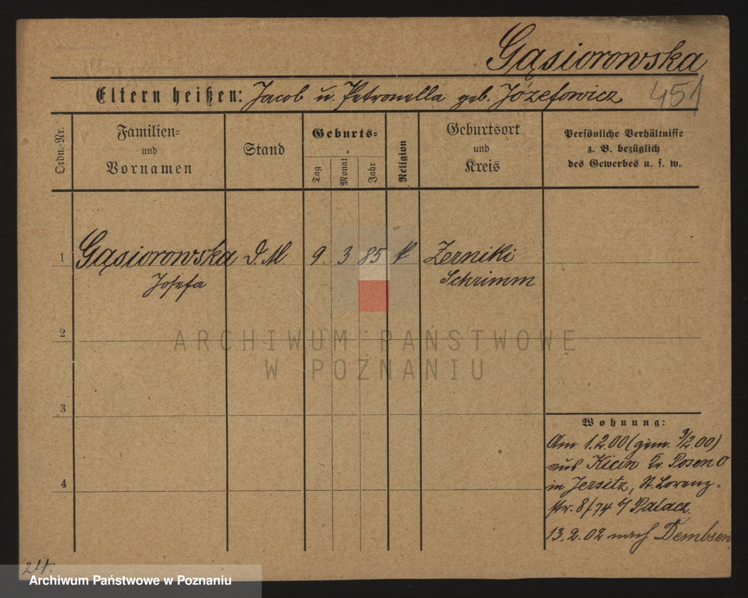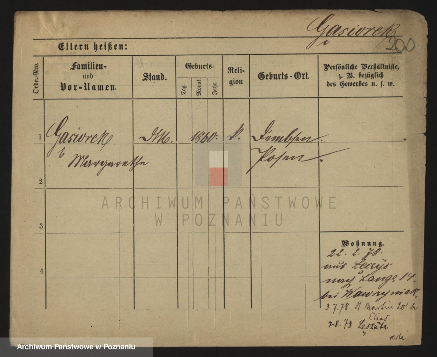Podgląd karty osobowej dostępny jest po kliknięciu na nazwisko lub ikonkę karty. Można dokonywać powiększenia (ikony na górze) lub przechodzić między kolejnymi skanami (strzałki po bokach).