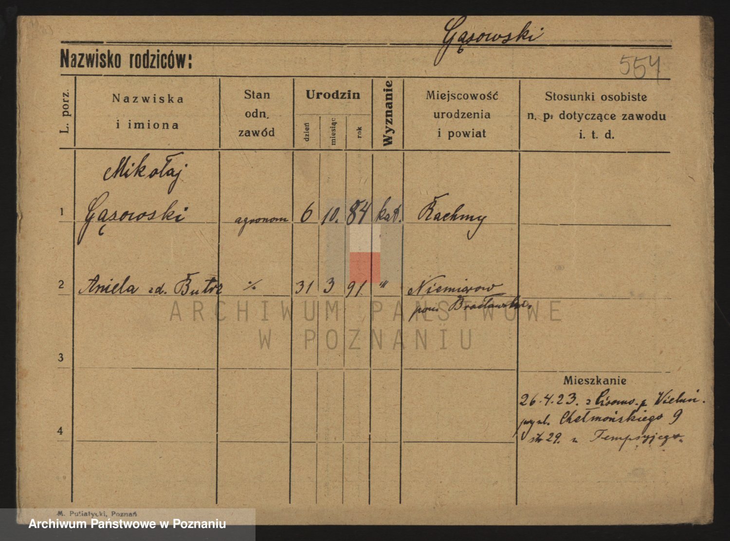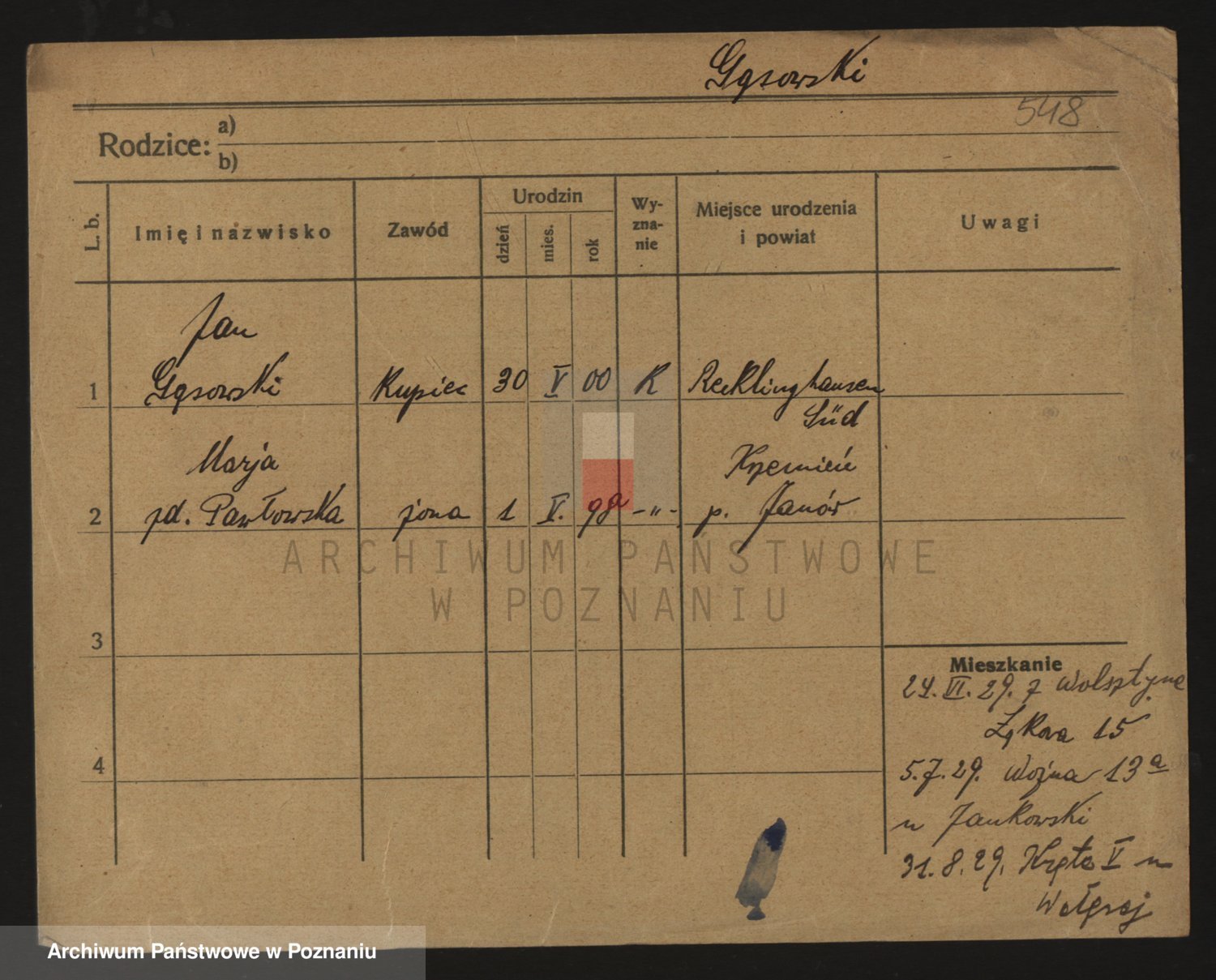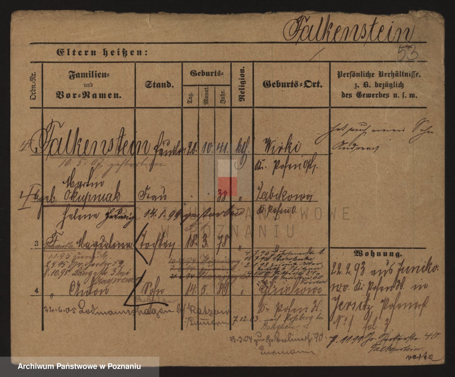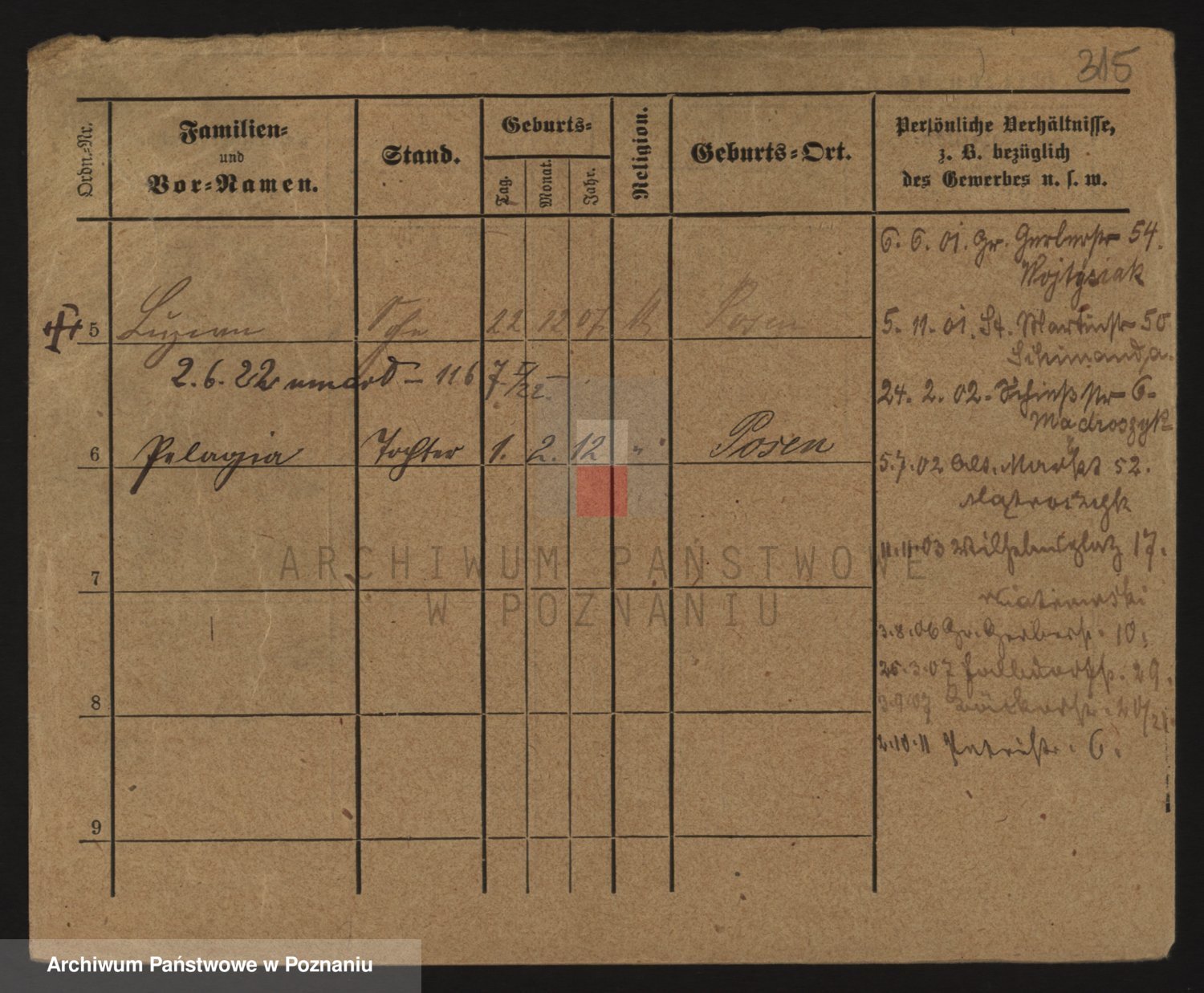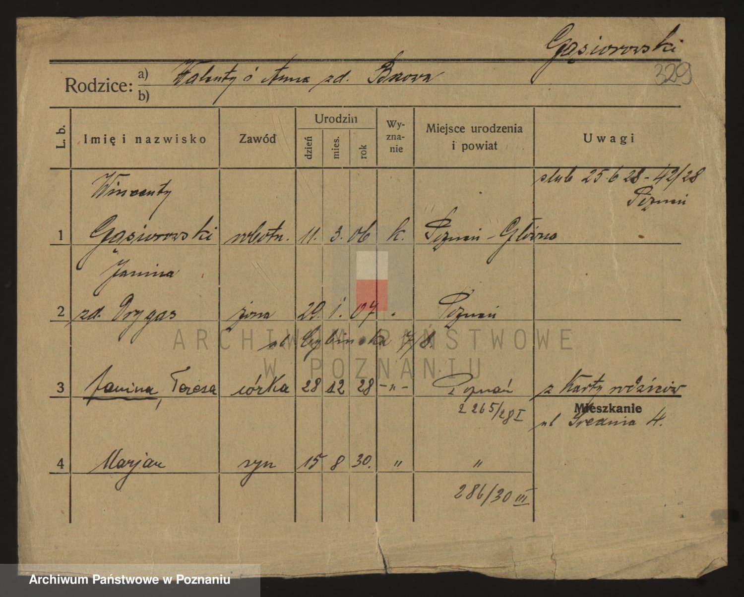 Podgląd karty osobowej dostępny jest po kliknięciu na nazwisko lub ikonkę karty. Można dokonywać powiększenia (ikony na górze) lub przechodzić między kolejnymi skanami (strzałki po bokach).