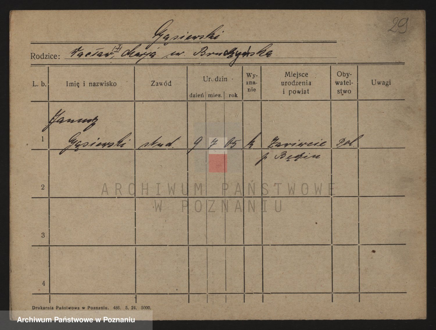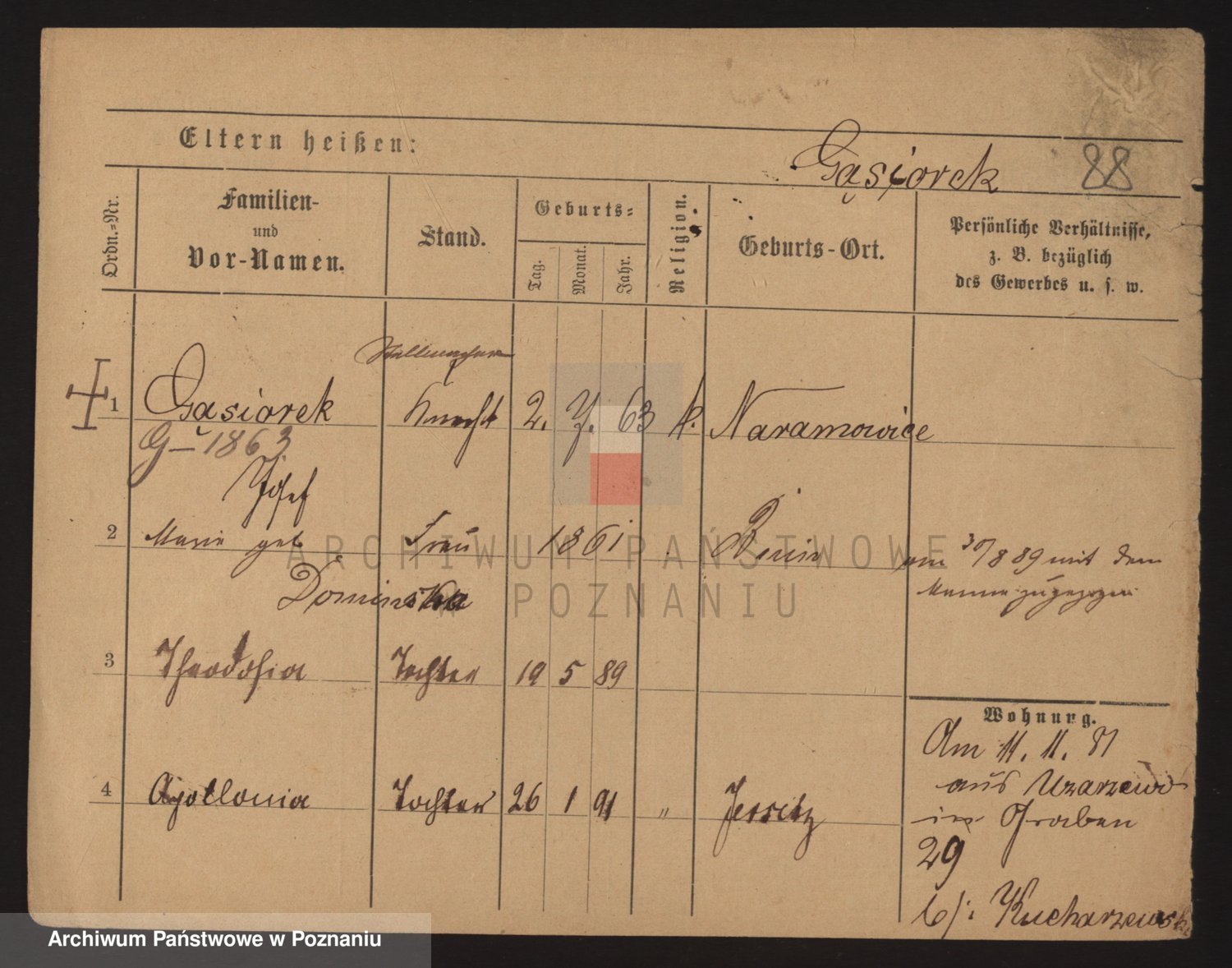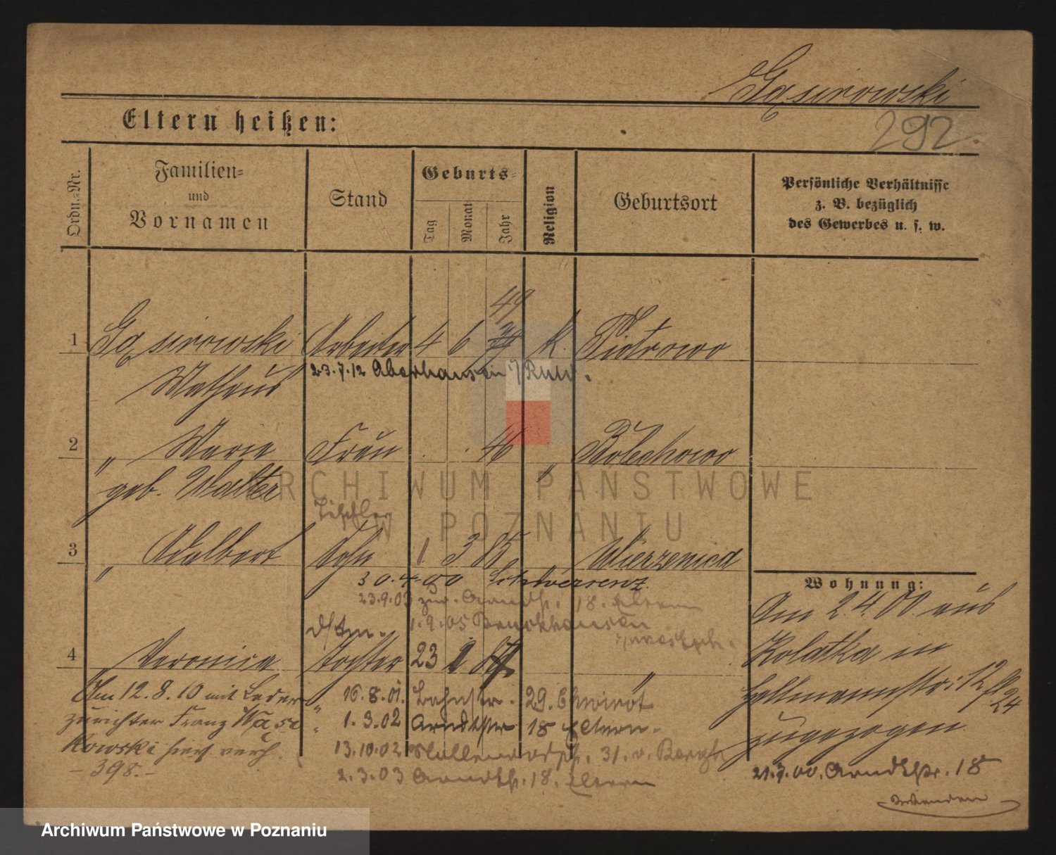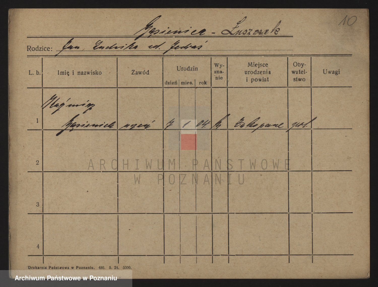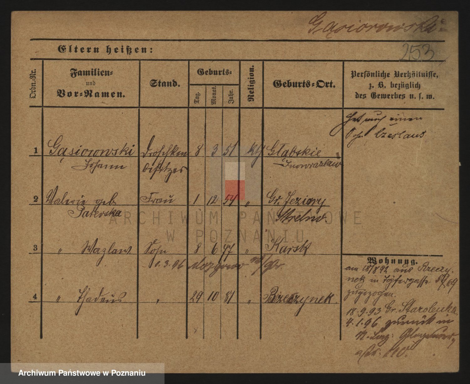 Podgląd karty osobowej dostępny jest po kliknięciu na nazwisko lub ikonkę karty. Można dokonywać powiększenia (ikony na górze) lub przechodzić między kolejnymi skanami (strzałki po bokach).