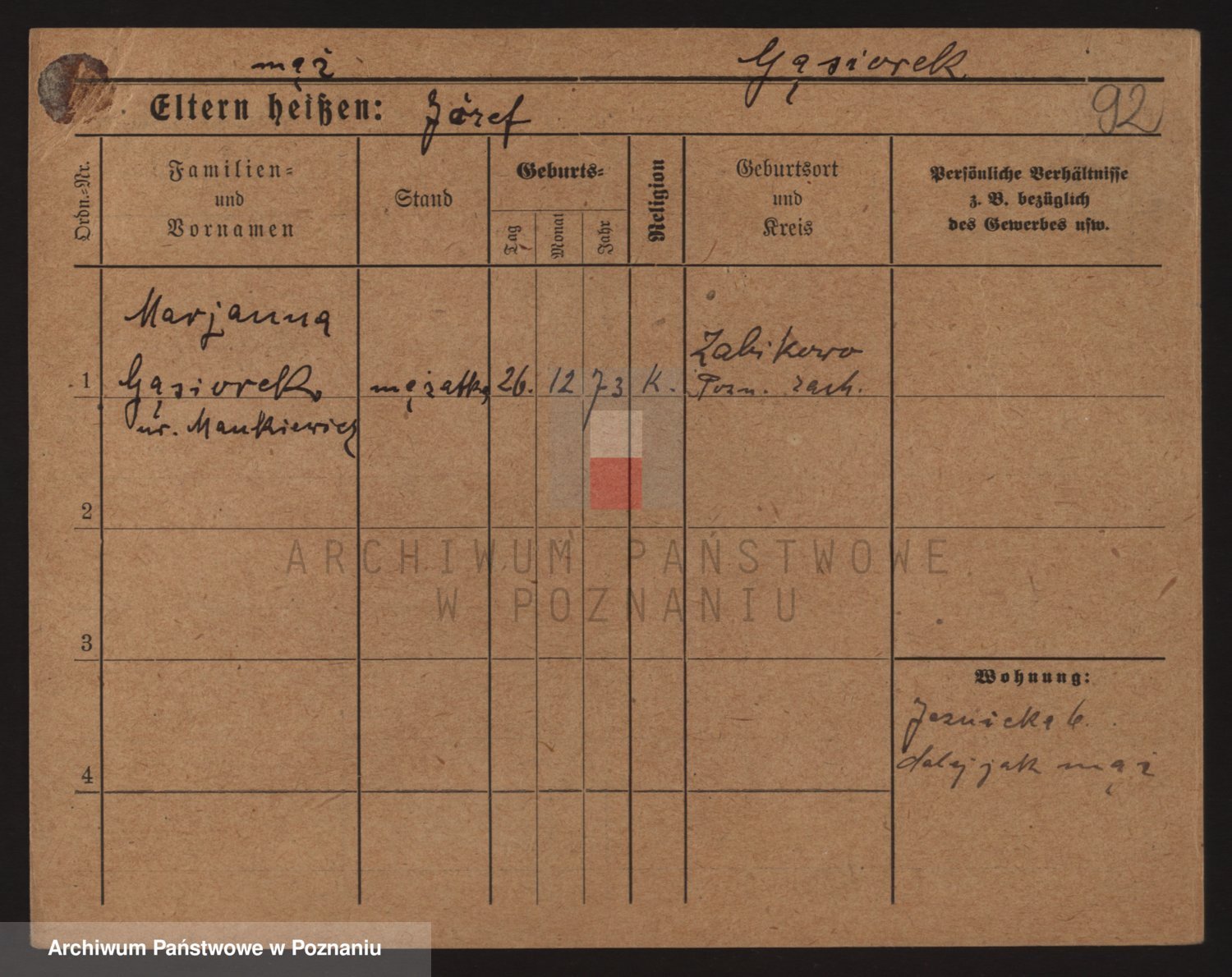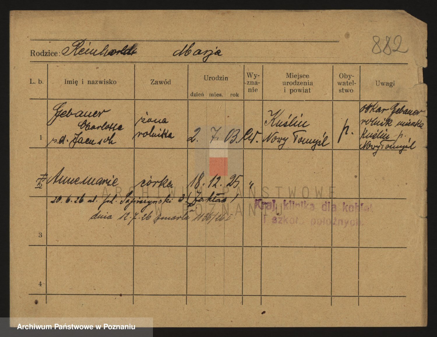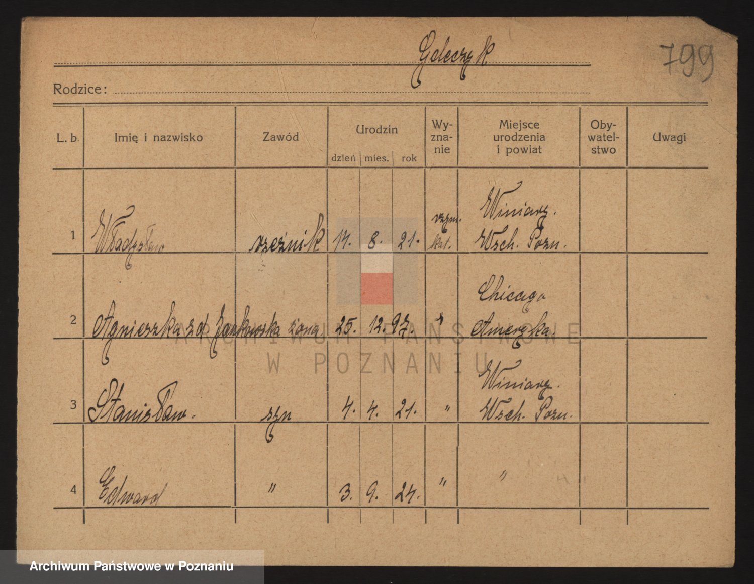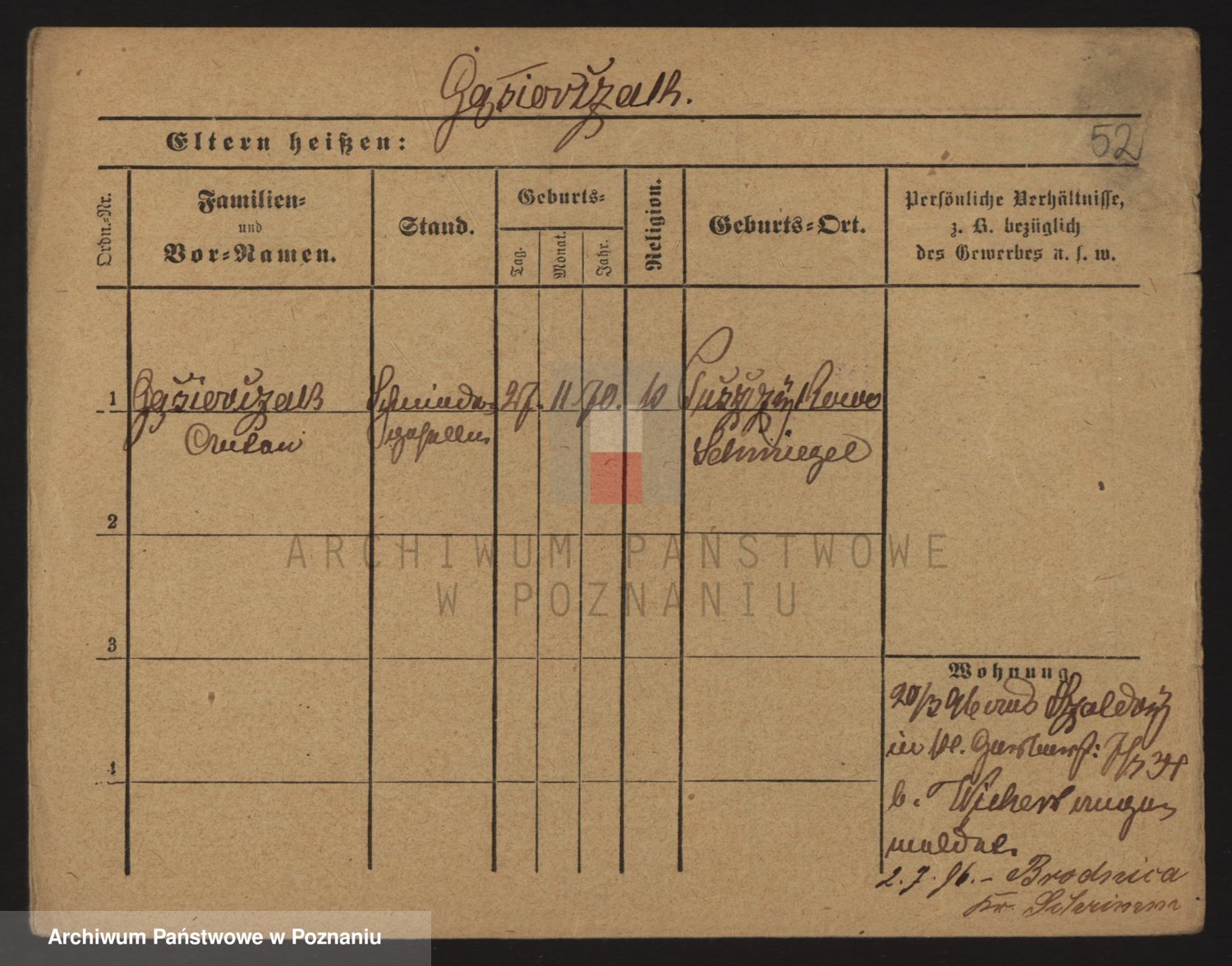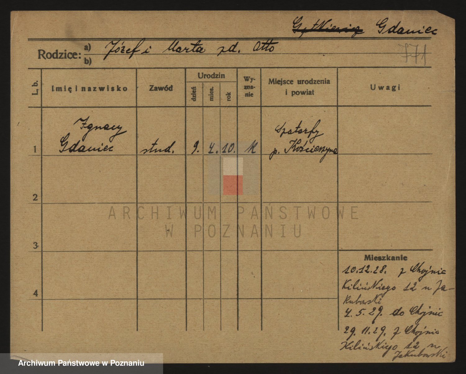 Podgląd karty osobowej dostępny jest po kliknięciu na nazwisko lub ikonkę karty. Można dokonywać powiększenia (ikony na górze) lub przechodzić między kolejnymi skanami (strzałki po bokach).