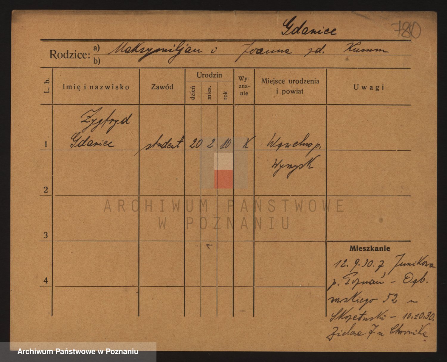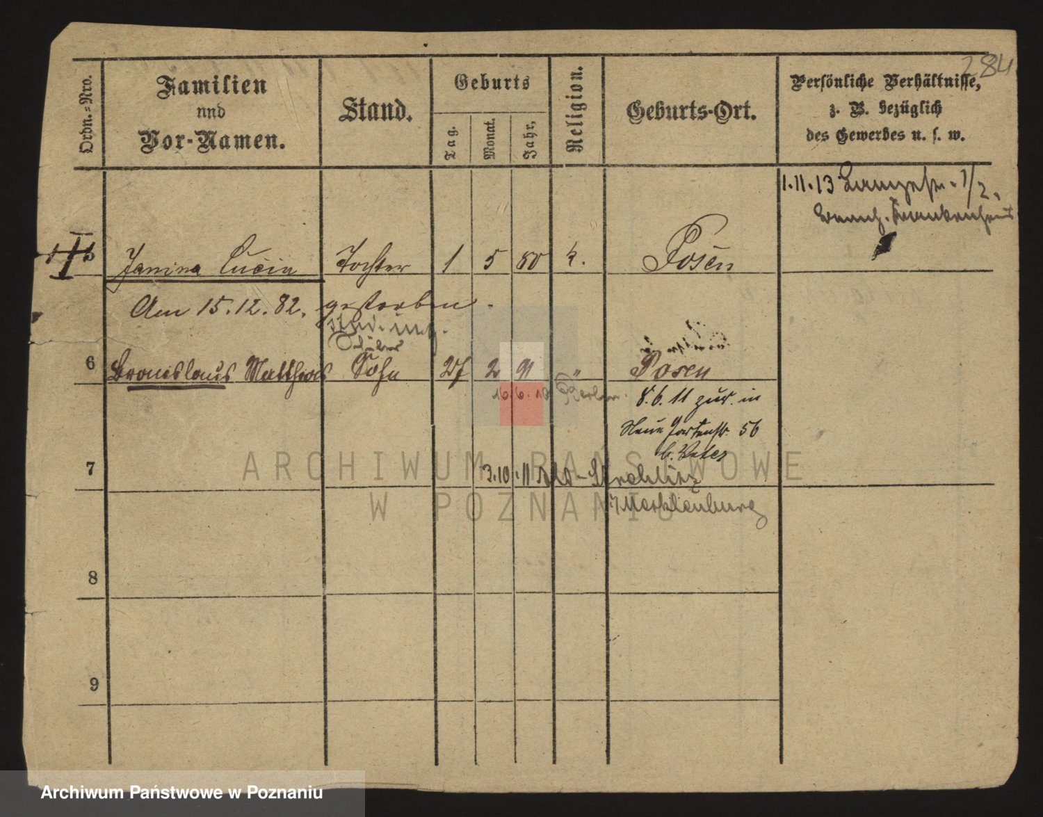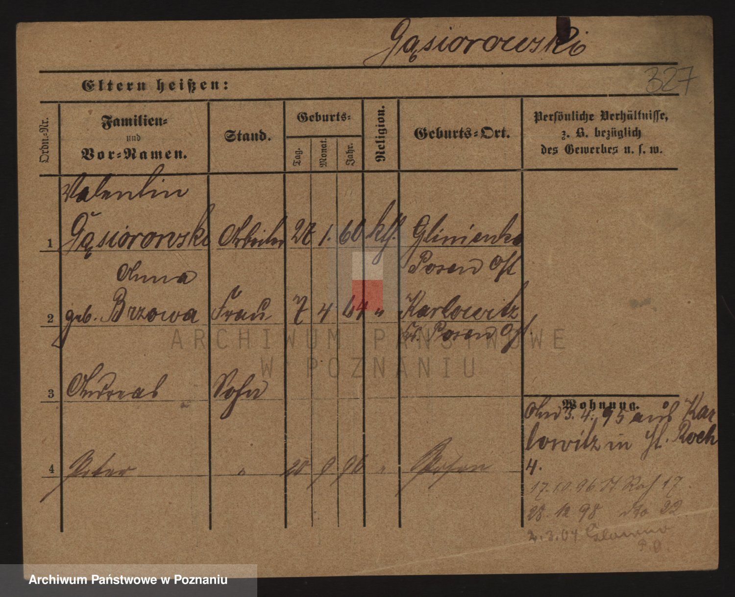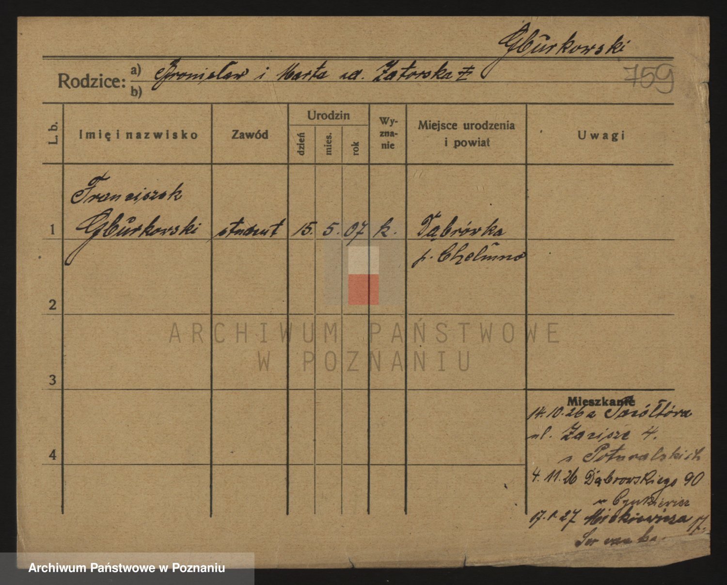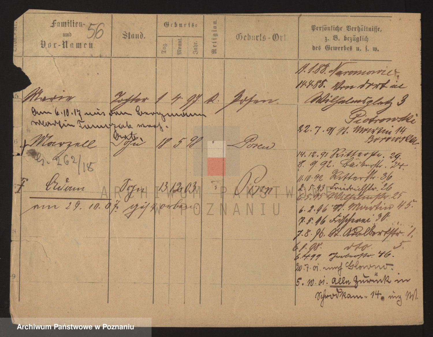 Podgląd karty osobowej dostępny jest po kliknięciu na nazwisko lub ikonkę karty. Można dokonywać powiększenia (ikony na górze) lub przechodzić między kolejnymi skanami (strzałki po bokach).