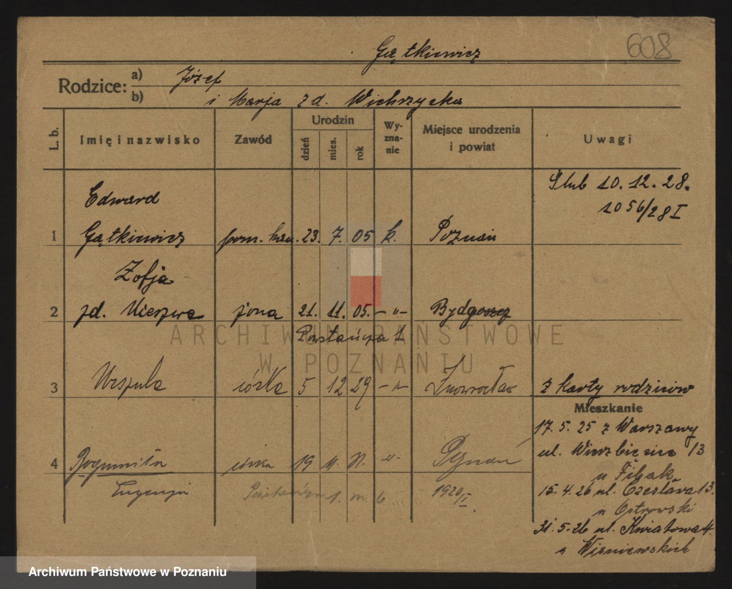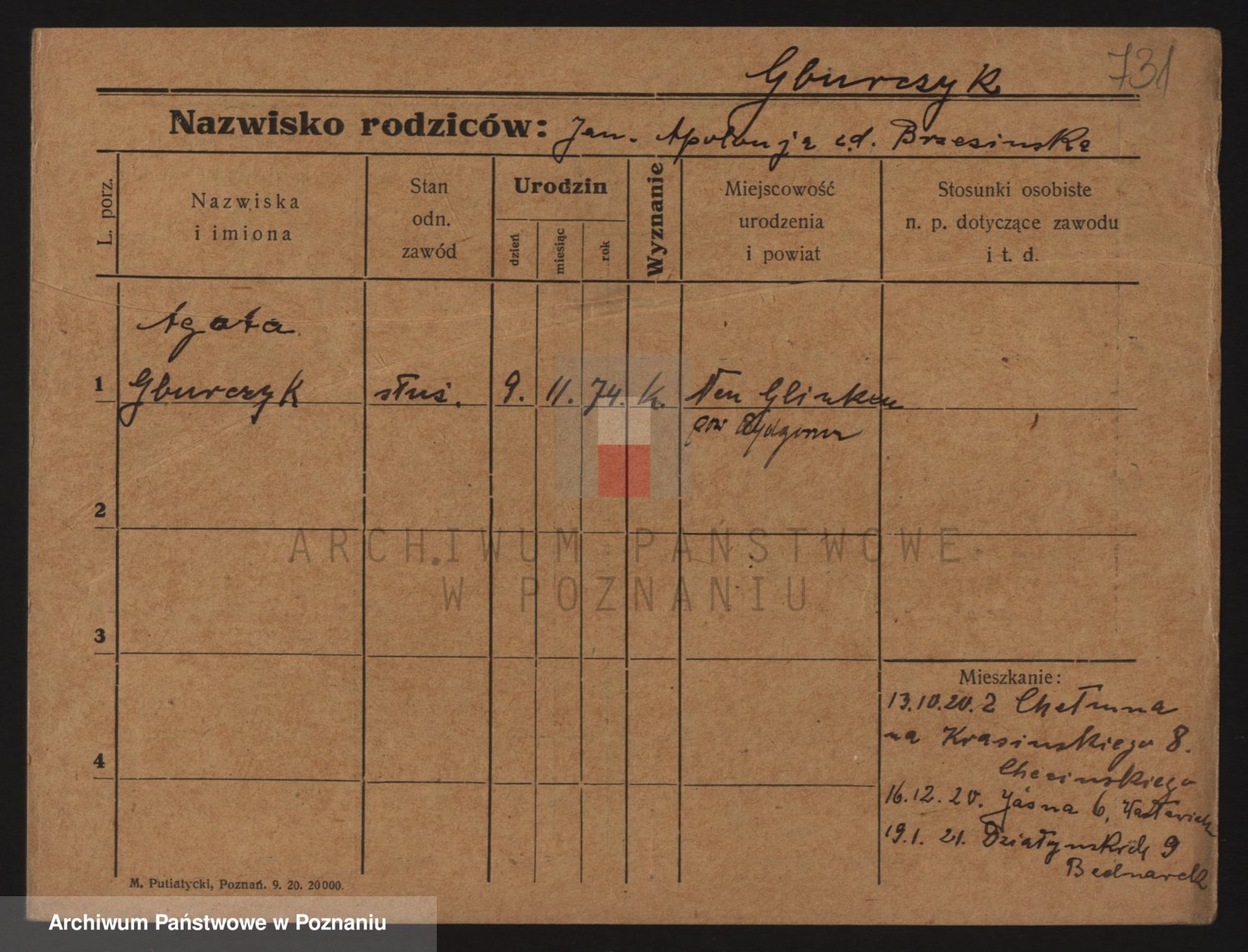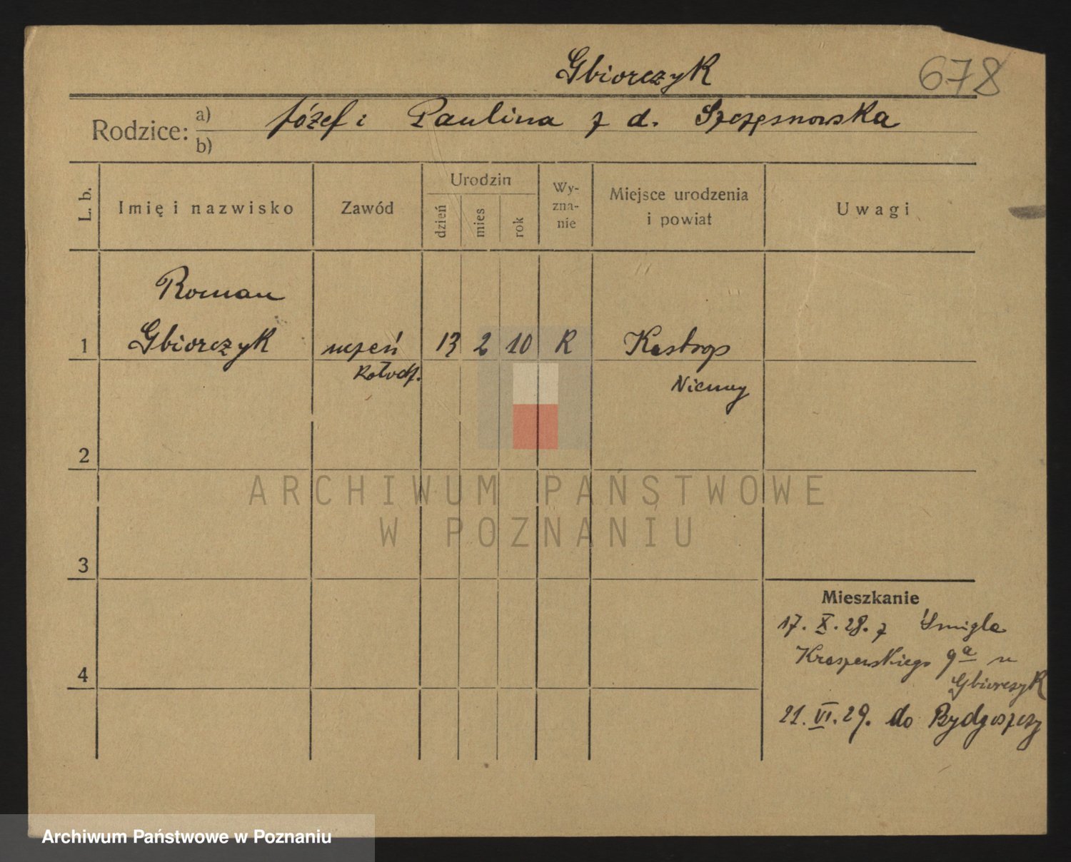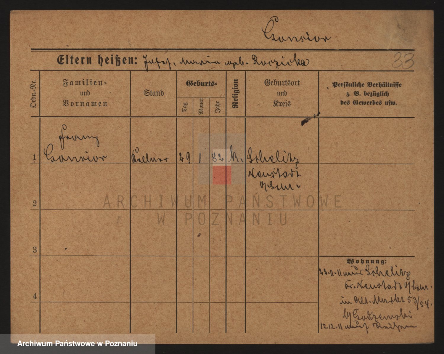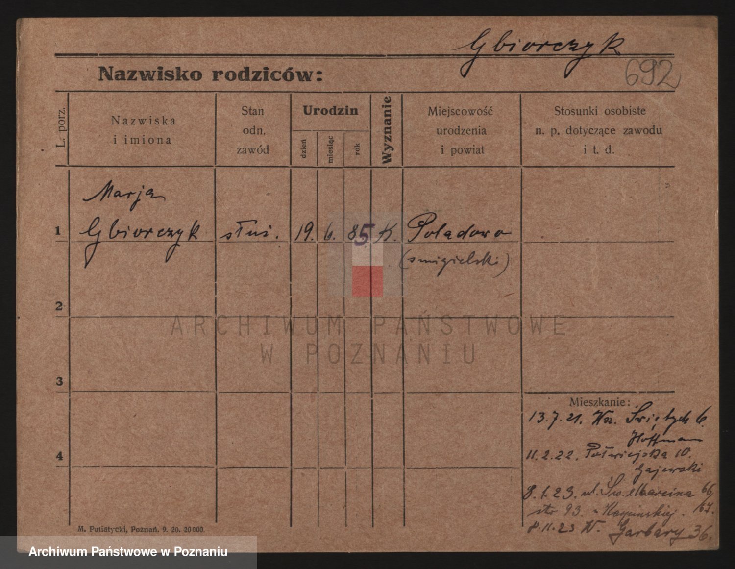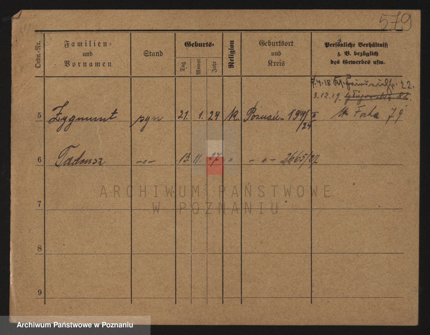 Podgląd karty osobowej dostępny jest po kliknięciu na nazwisko lub ikonkę karty. Można dokonywać powiększenia (ikony na górze) lub przechodzić między kolejnymi skanami (strzałki po bokach).