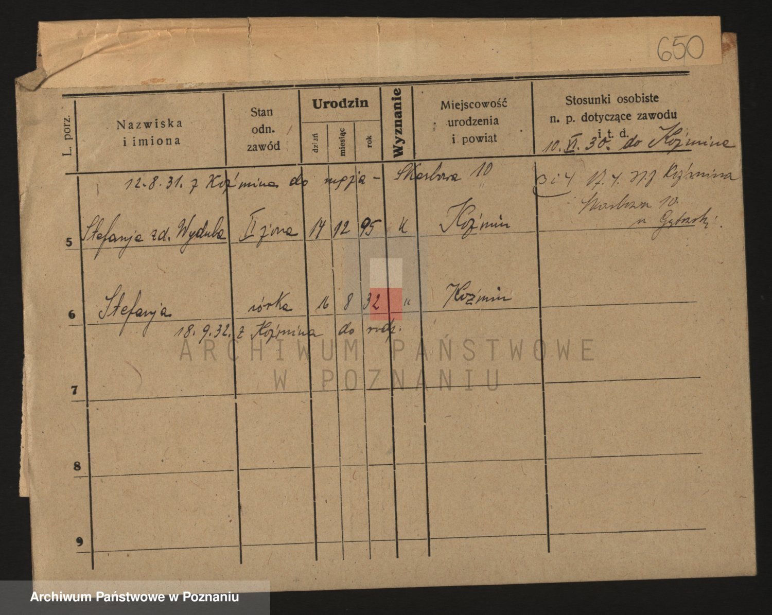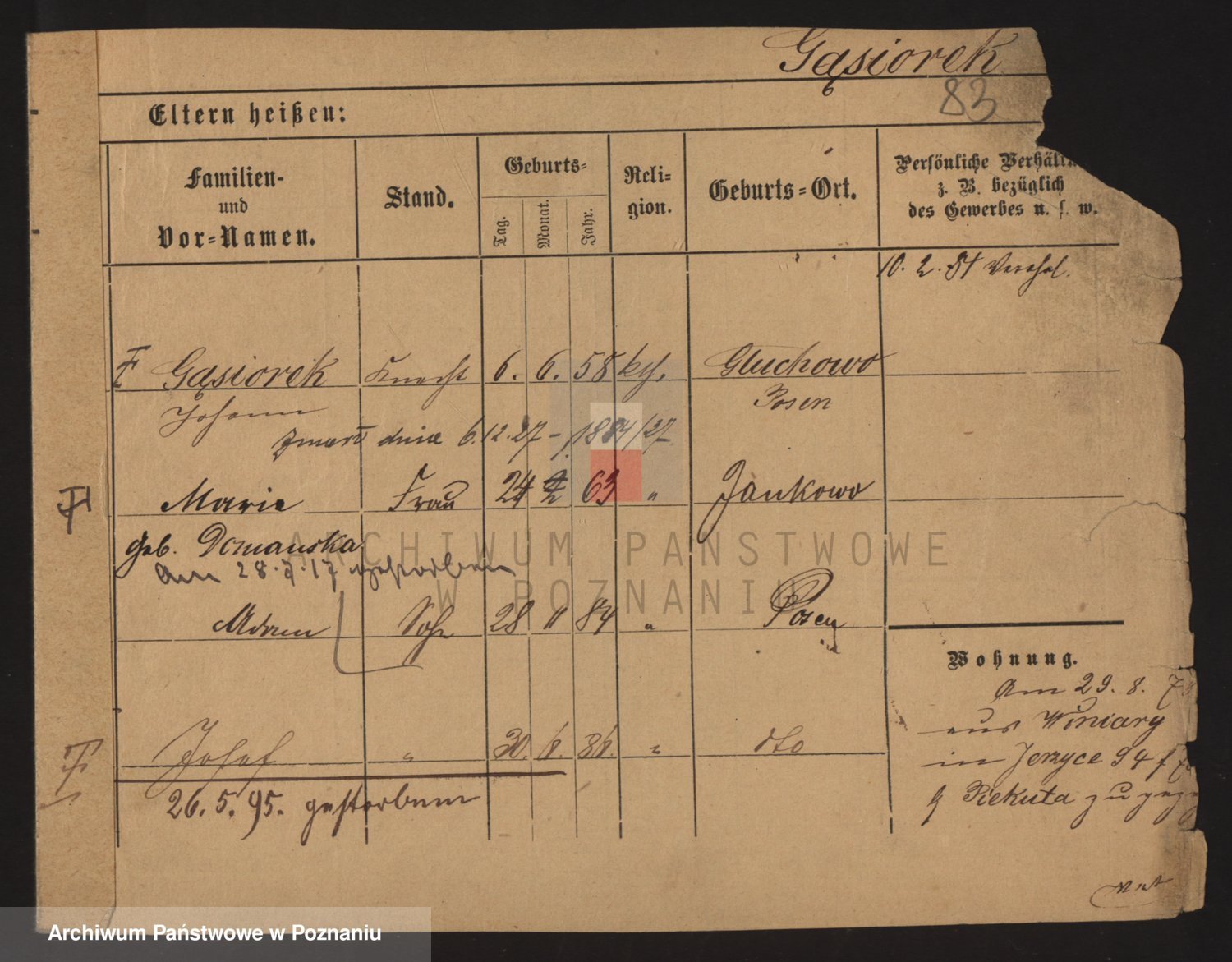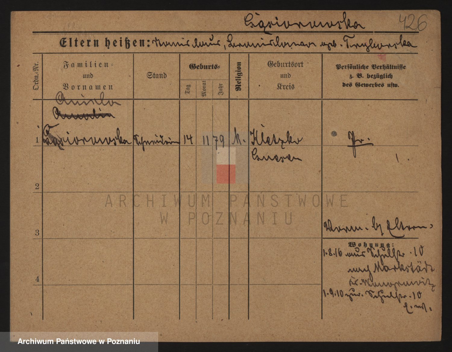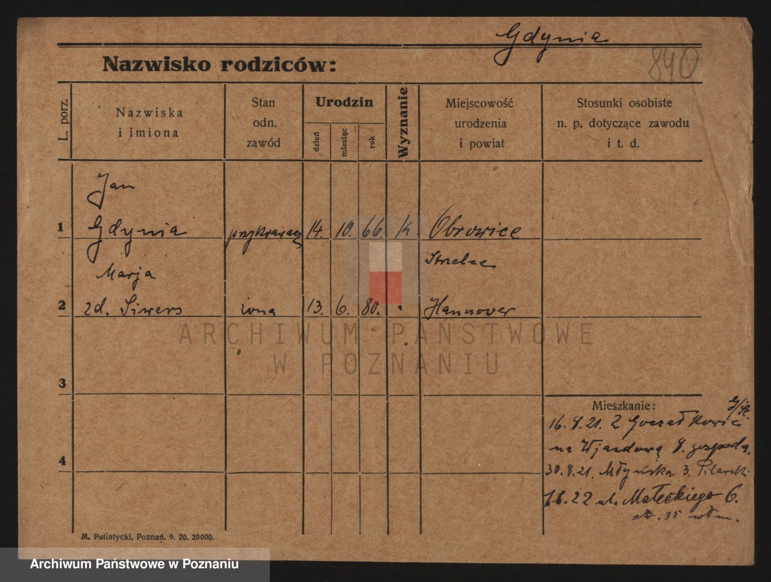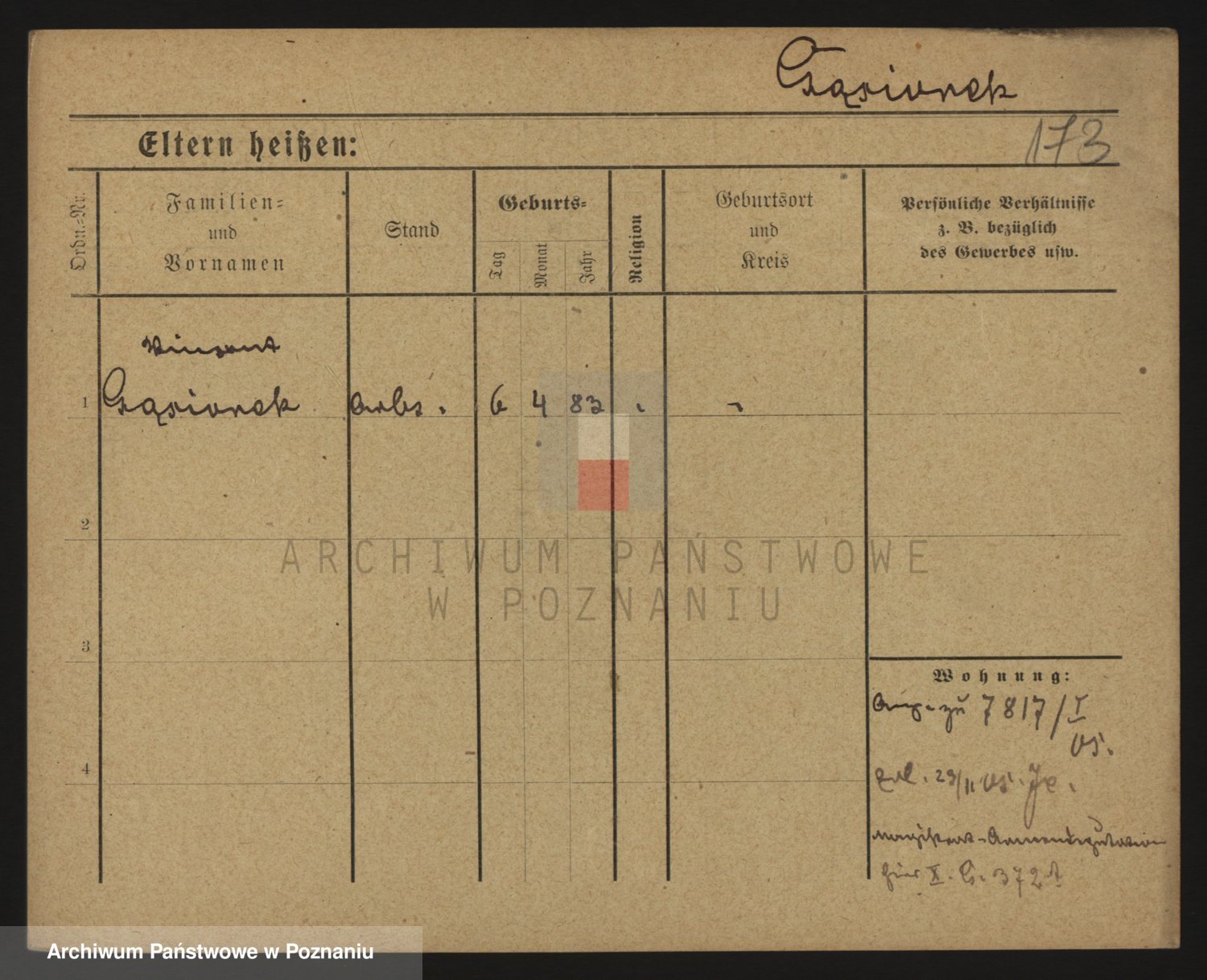 Podgląd karty osobowej dostępny jest po kliknięciu na nazwisko lub ikonkę karty. Można dokonywać powiększenia (ikony na górze) lub przechodzić między kolejnymi skanami (strzałki po bokach).