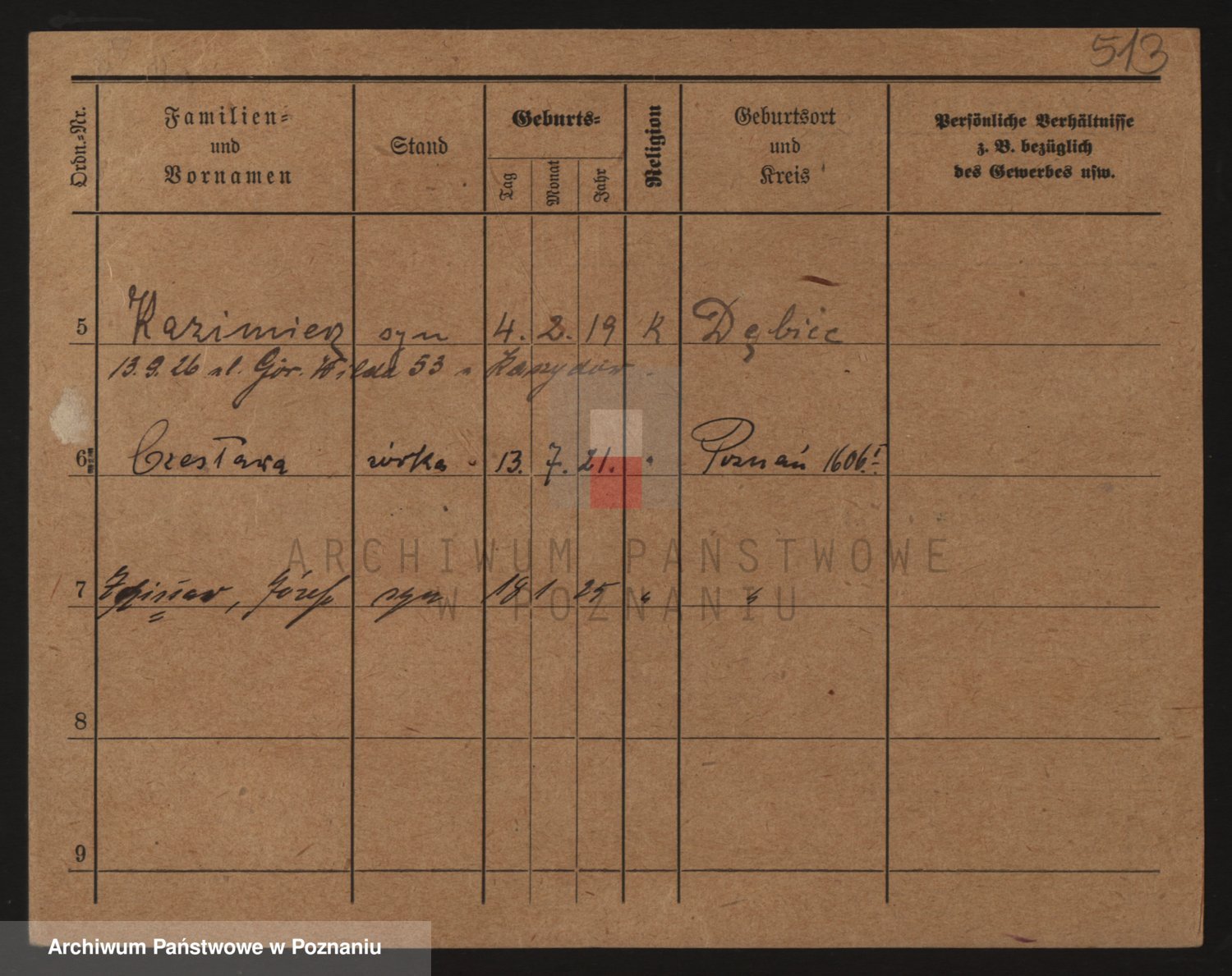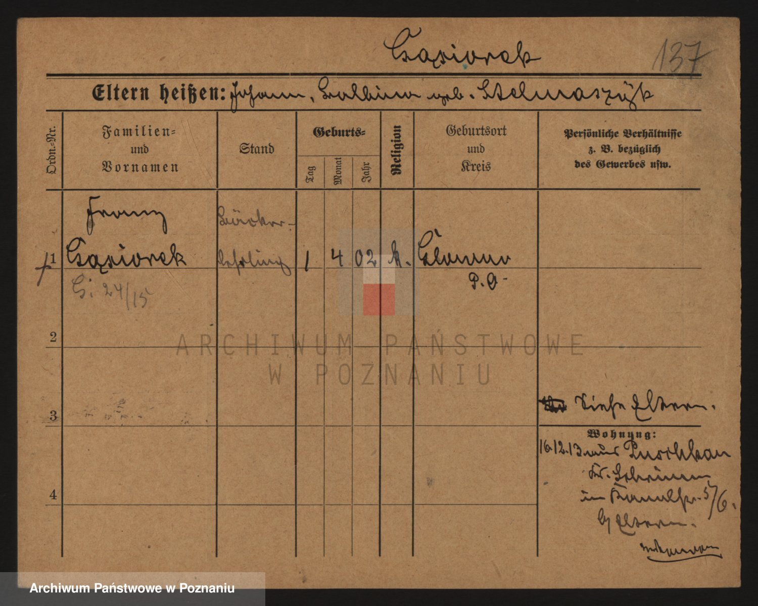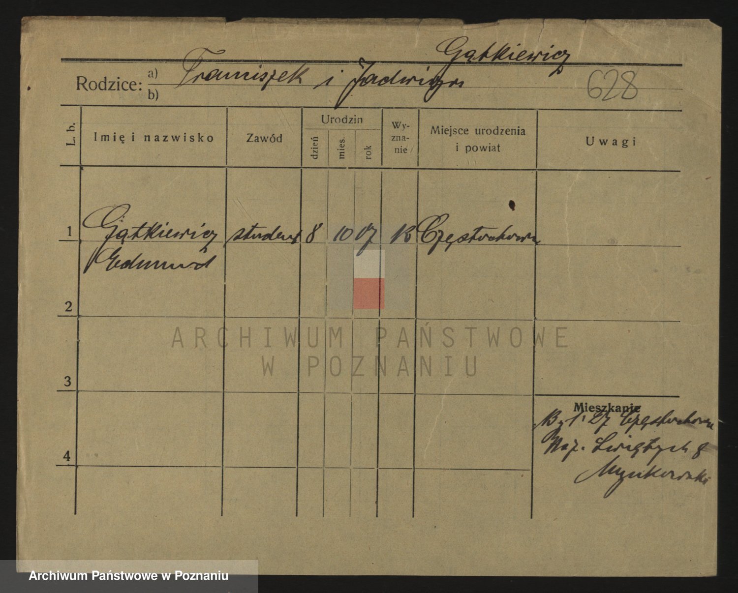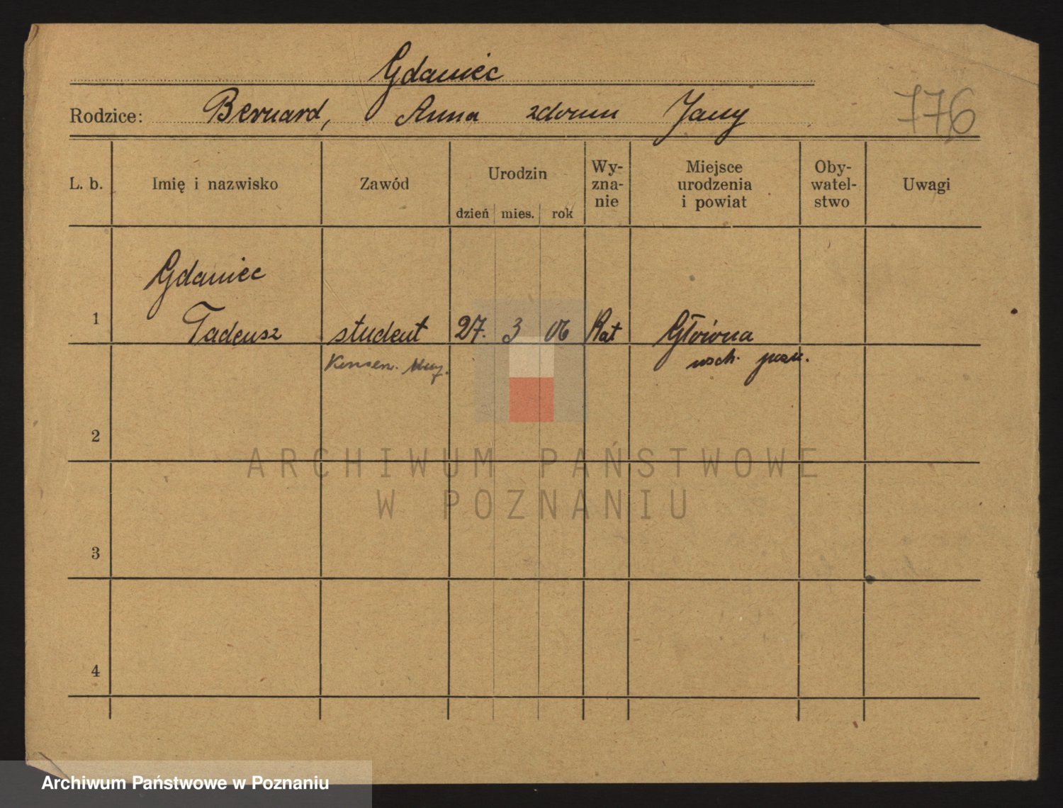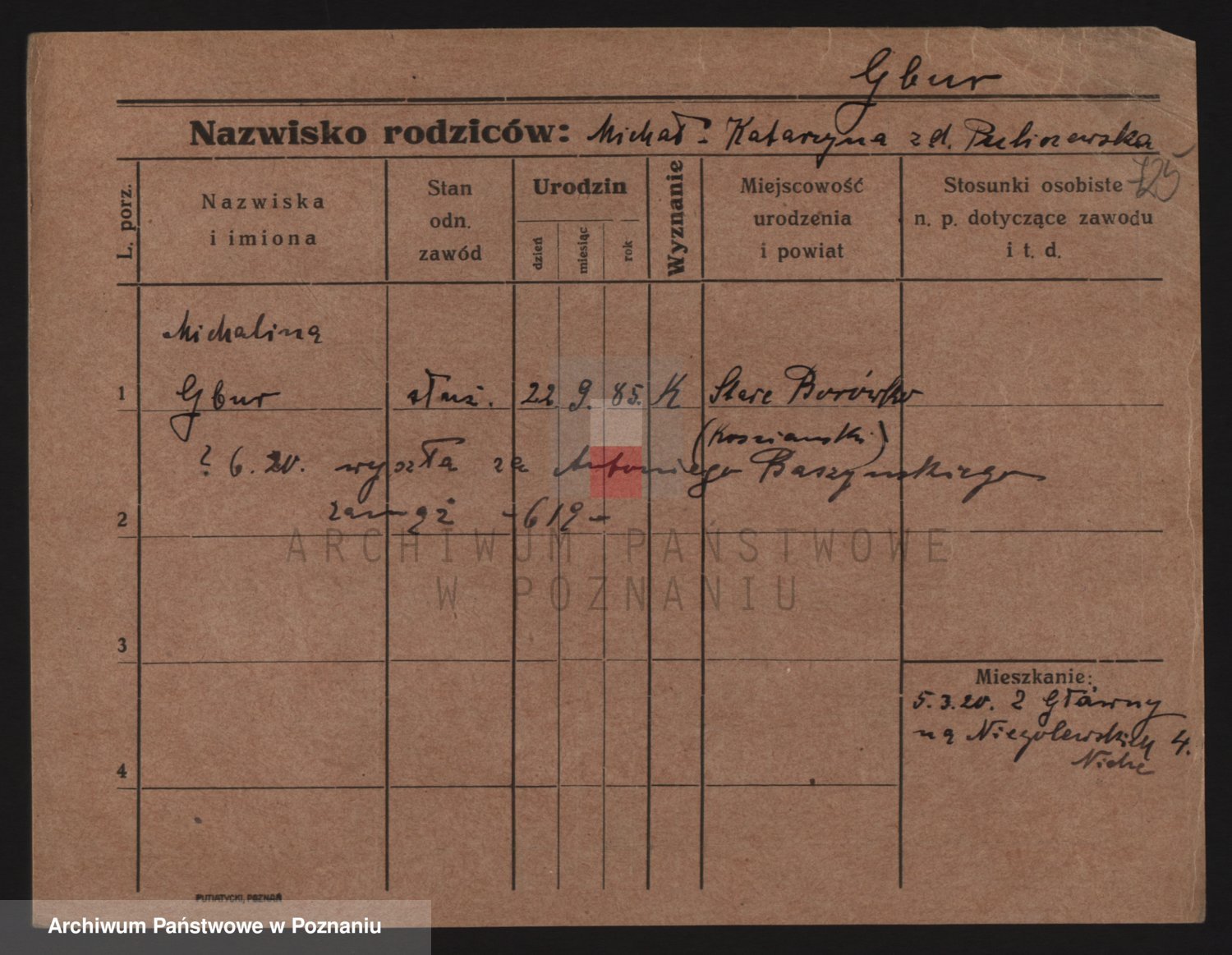 Podgląd karty osobowej dostępny jest po kliknięciu na nazwisko lub ikonkę karty. Można dokonywać powiększenia (ikony na górze) lub przechodzić między kolejnymi skanami (strzałki po bokach).