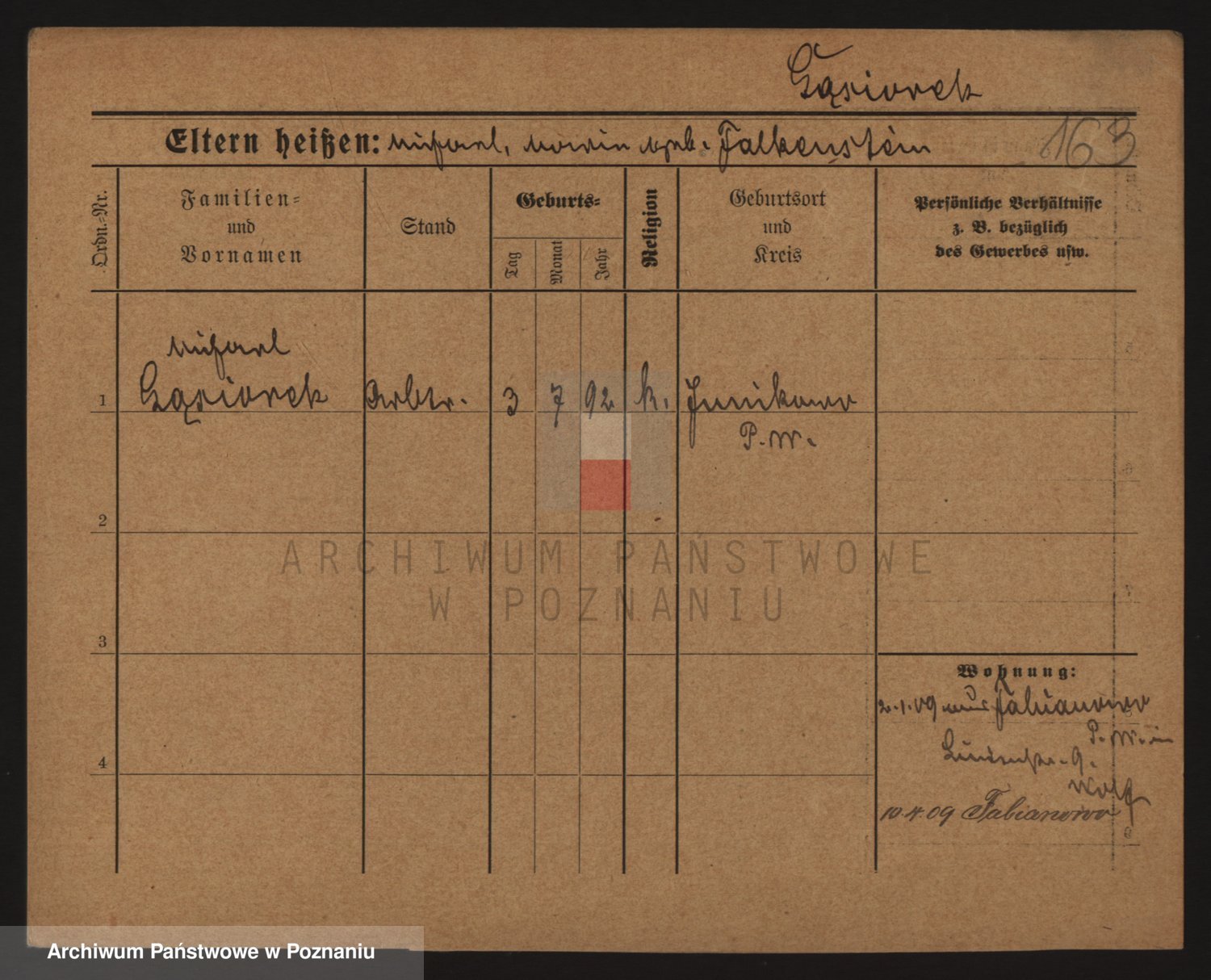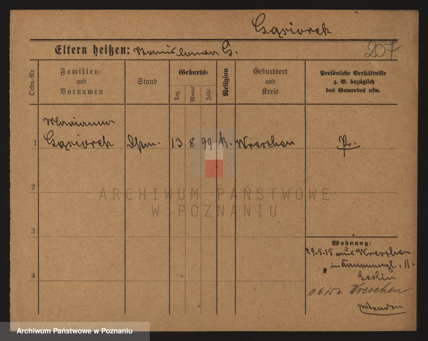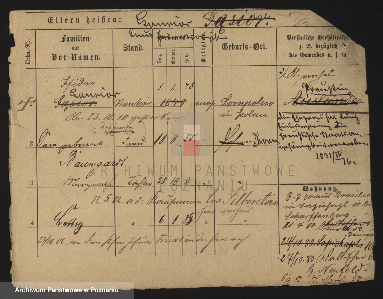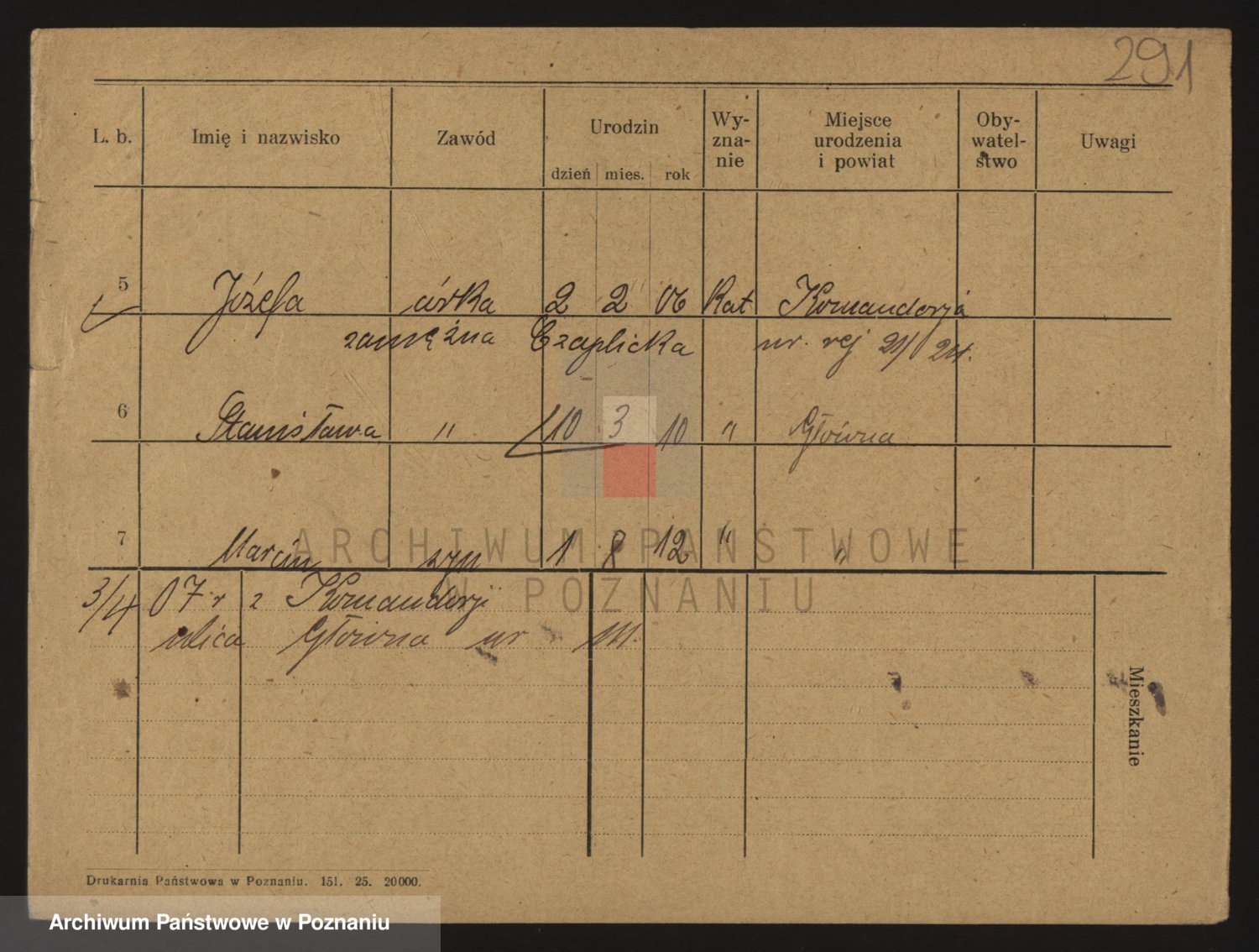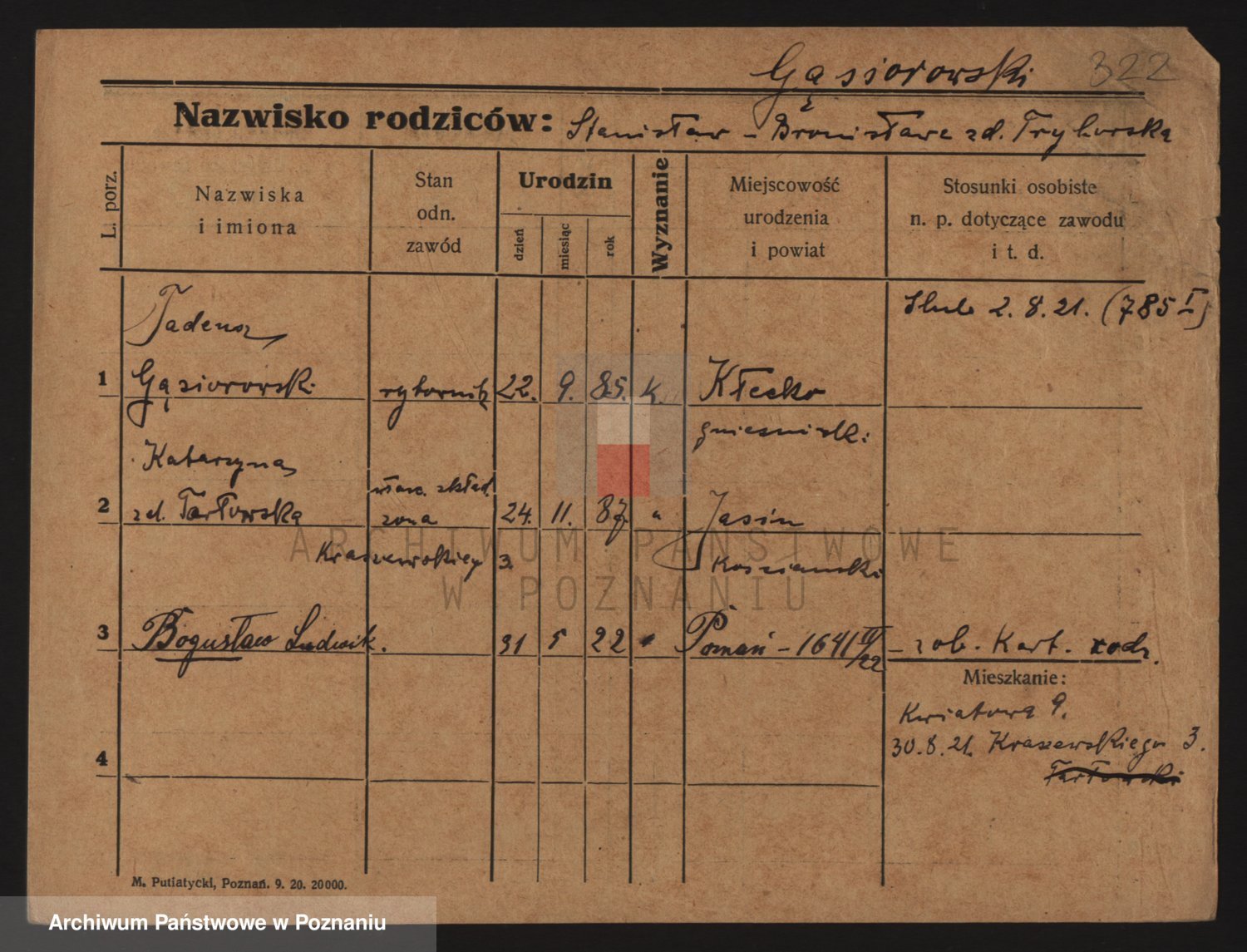 Podgląd karty osobowej dostępny jest po kliknięciu na nazwisko lub ikonkę karty. Można dokonywać powiększenia (ikony na górze) lub przechodzić między kolejnymi skanami (strzałki po bokach).