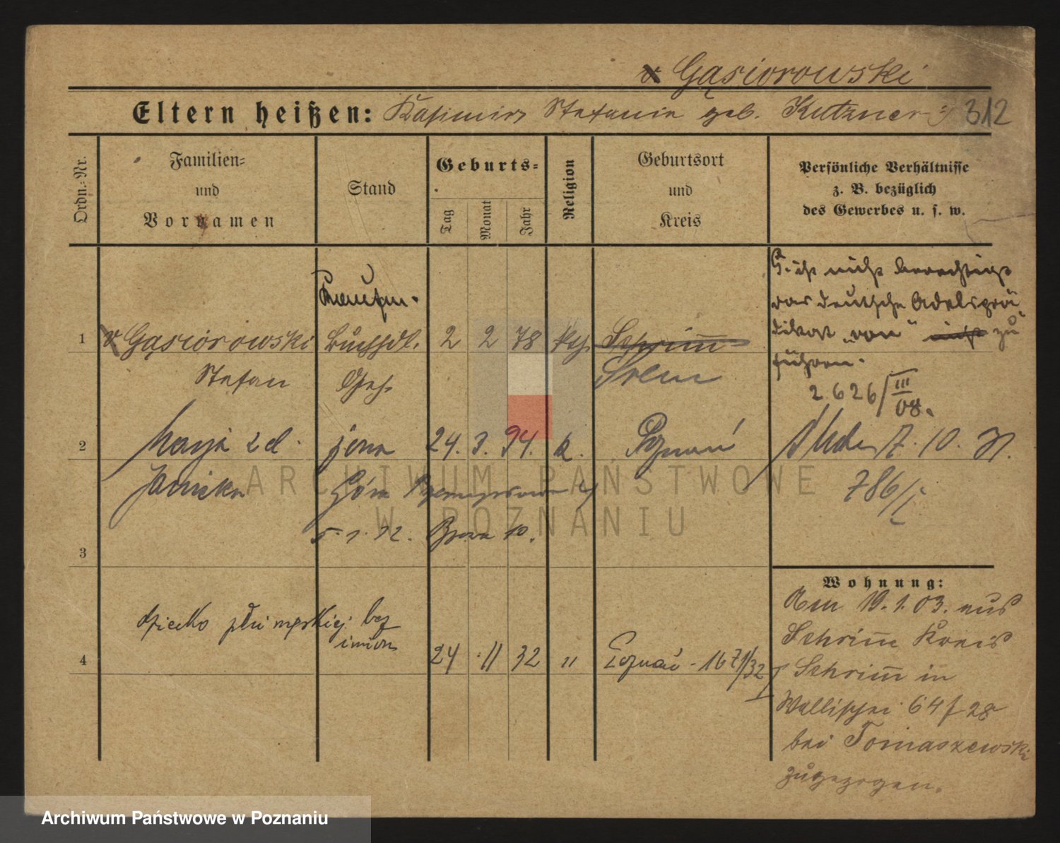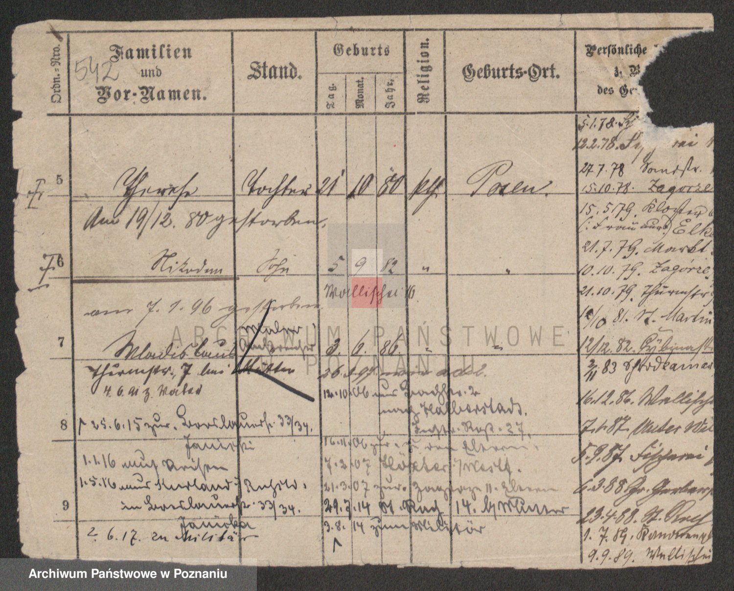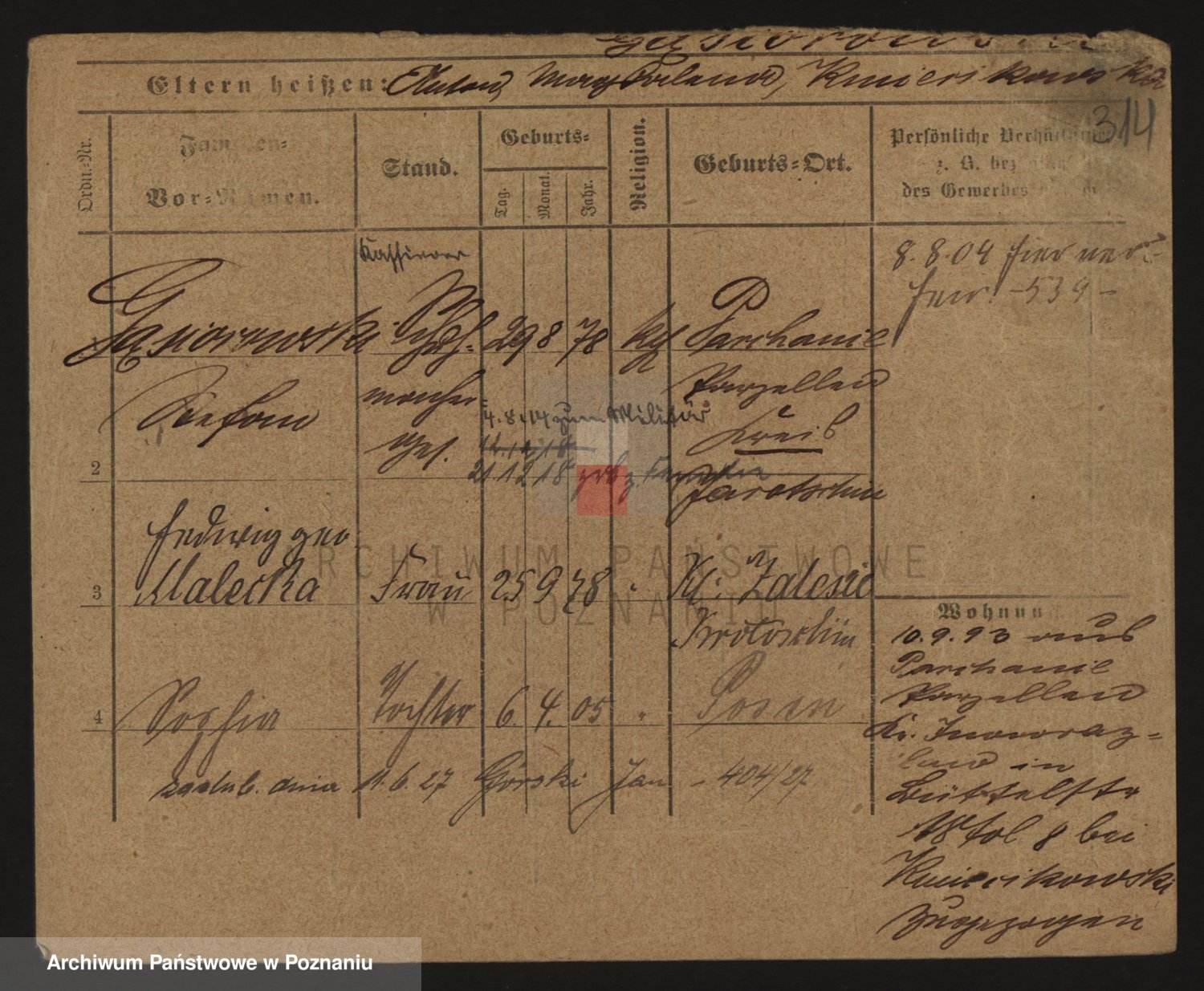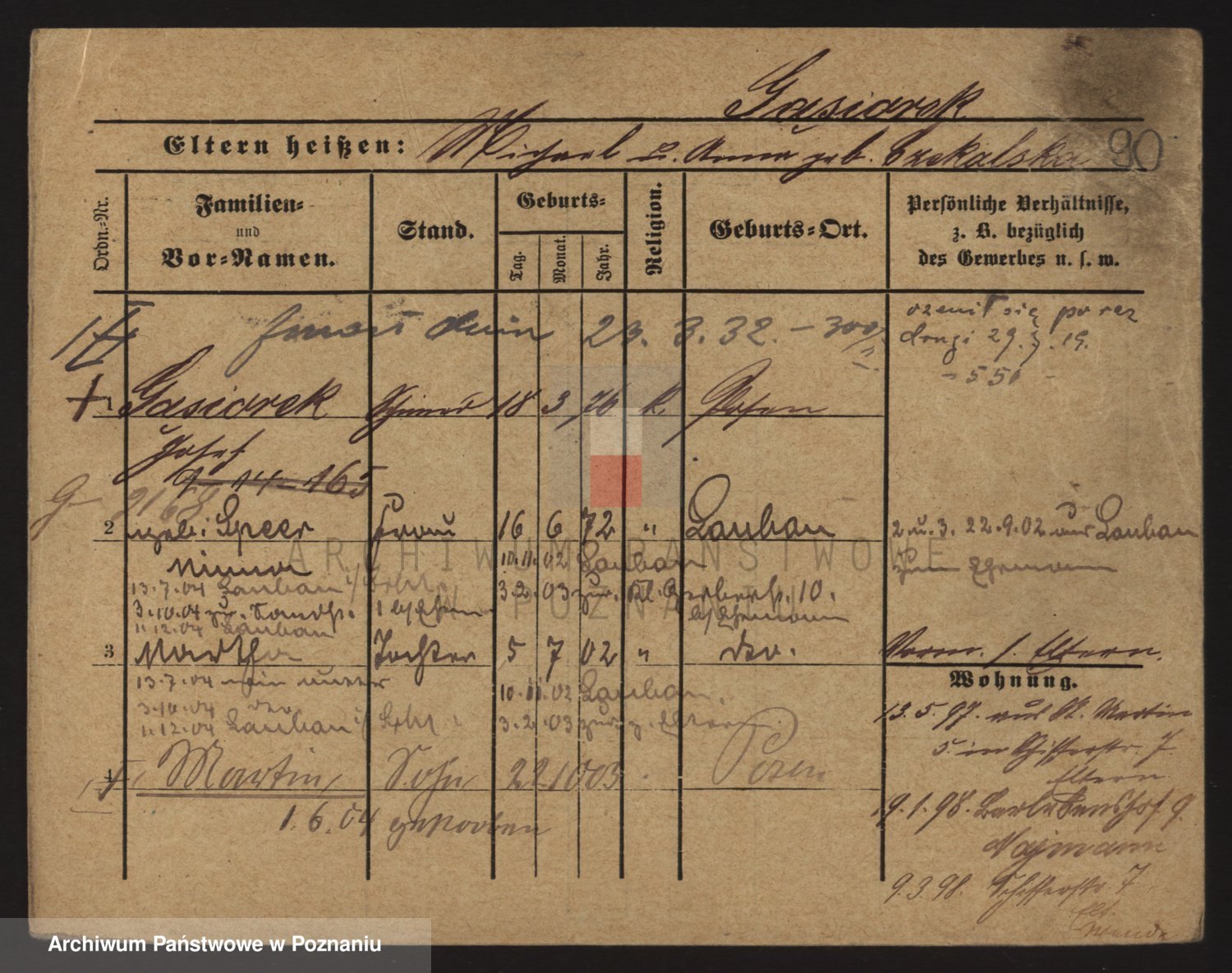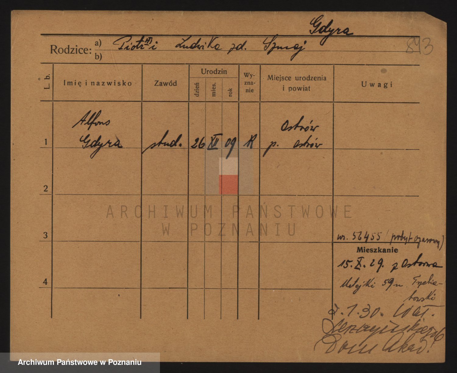 Podgląd karty osobowej dostępny jest po kliknięciu na nazwisko lub ikonkę karty. Można dokonywać powiększenia (ikony na górze) lub przechodzić między kolejnymi skanami (strzałki po bokach).