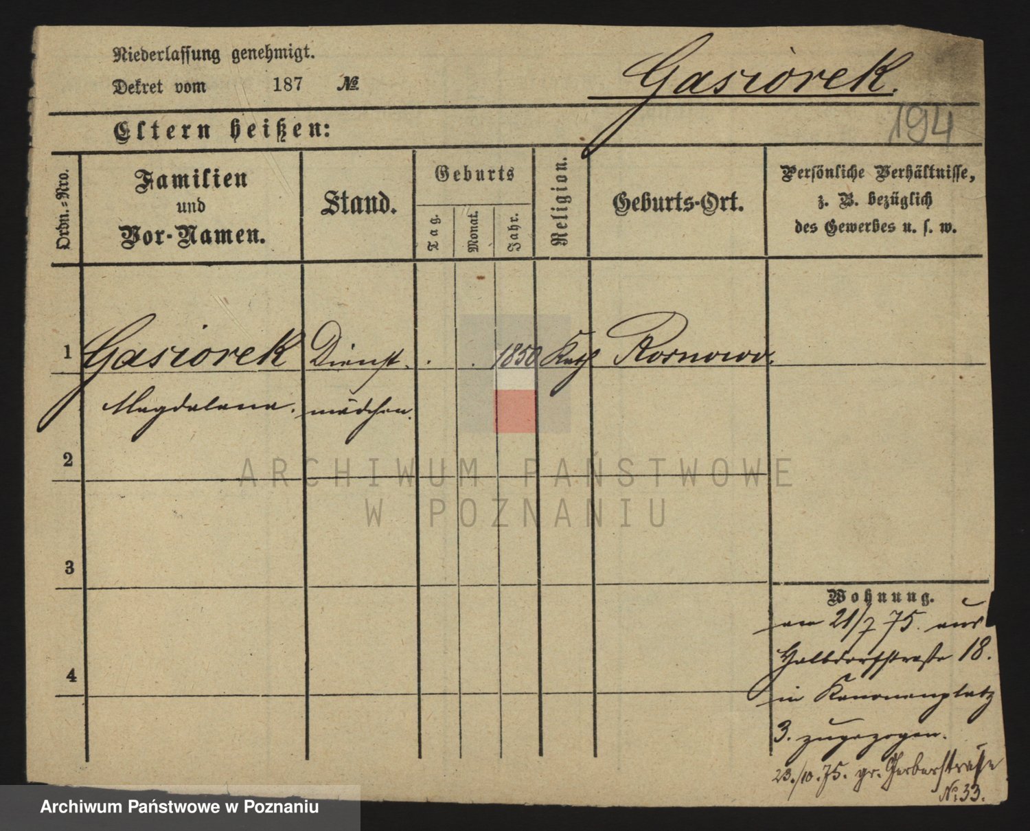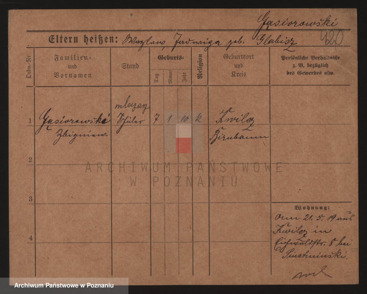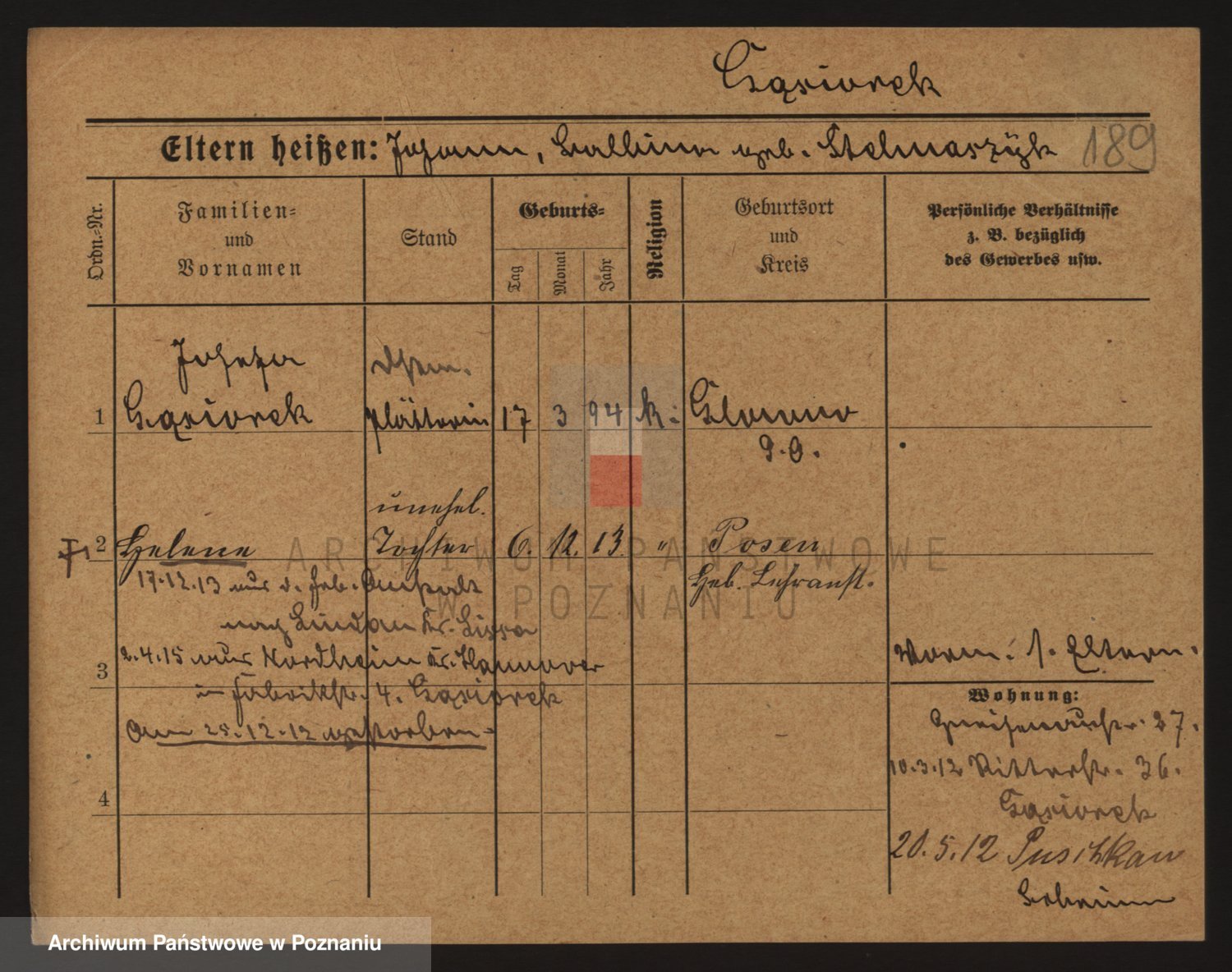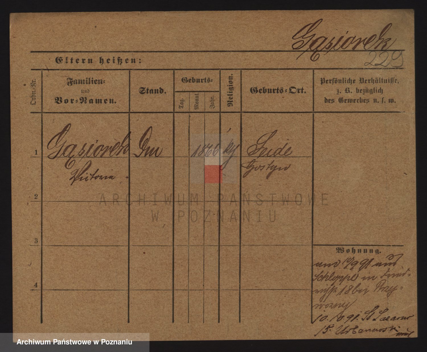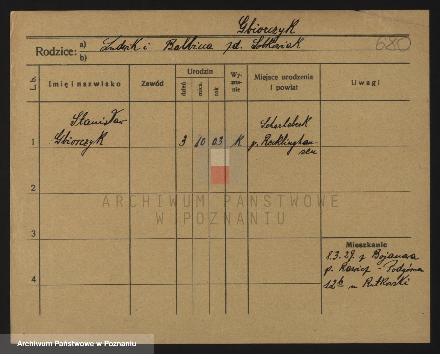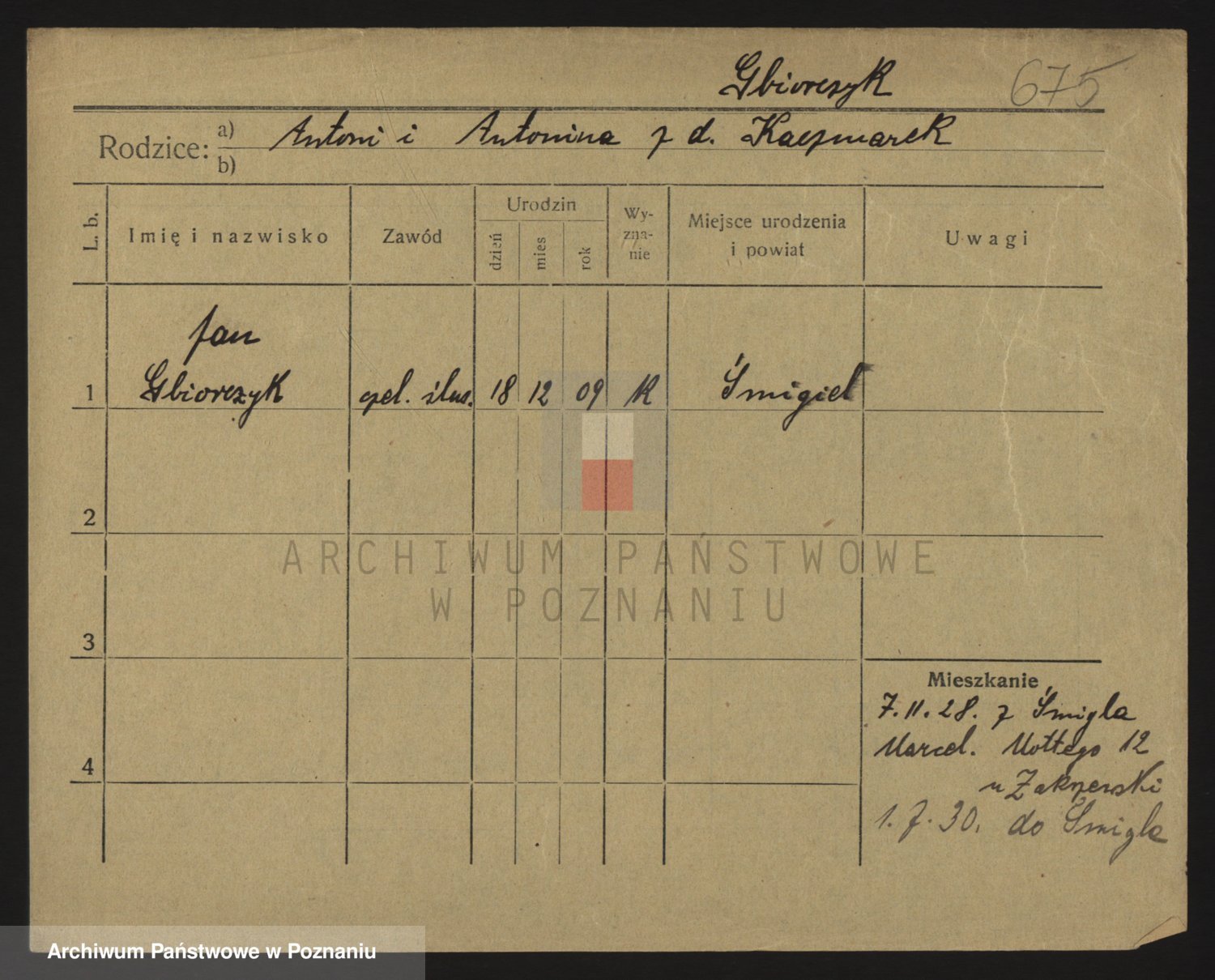Podgląd karty osobowej dostępny jest po kliknięciu na nazwisko lub ikonkę karty. Można dokonywać powiększenia (ikony na górze) lub przechodzić między kolejnymi skanami (strzałki po bokach).