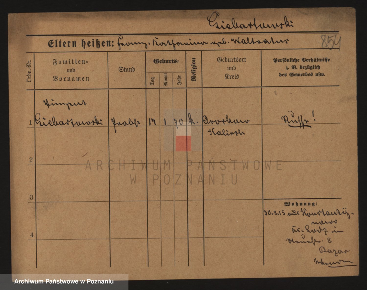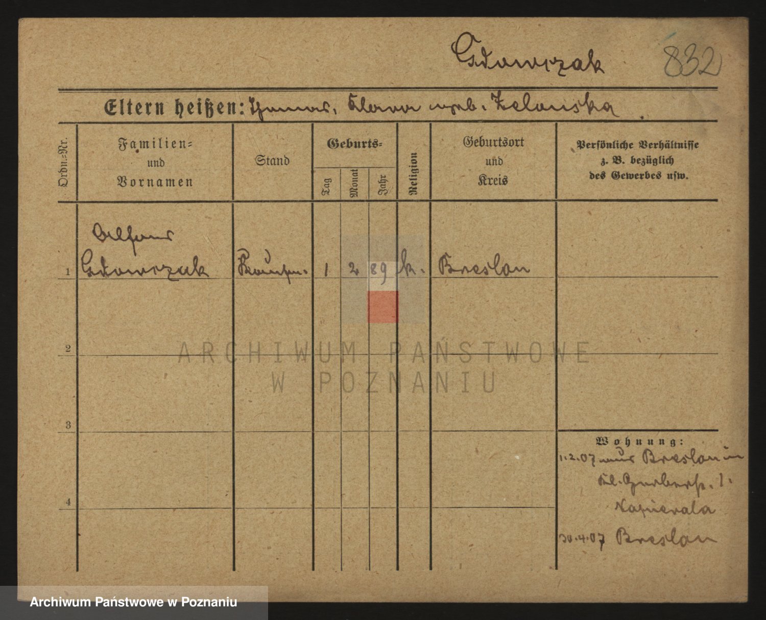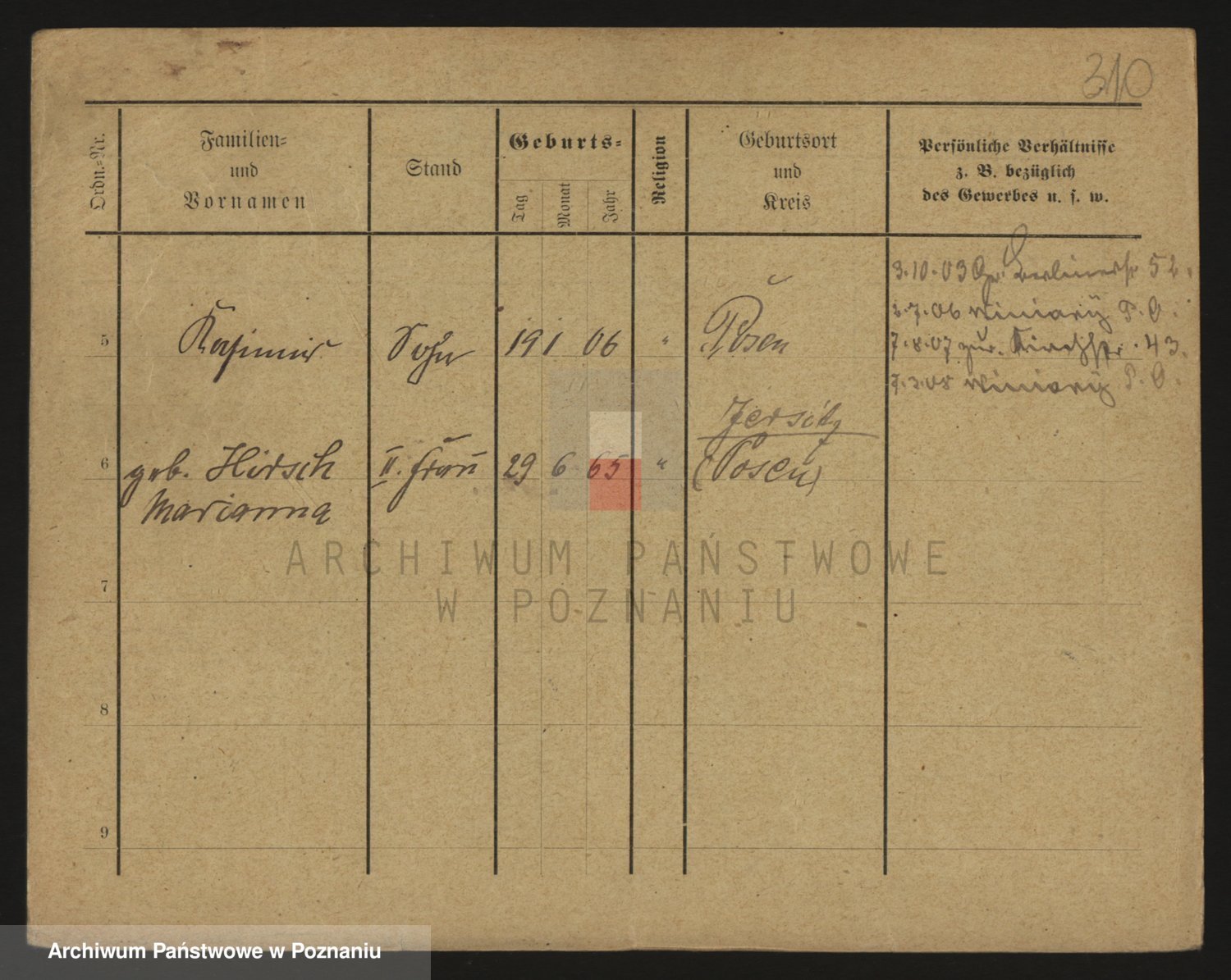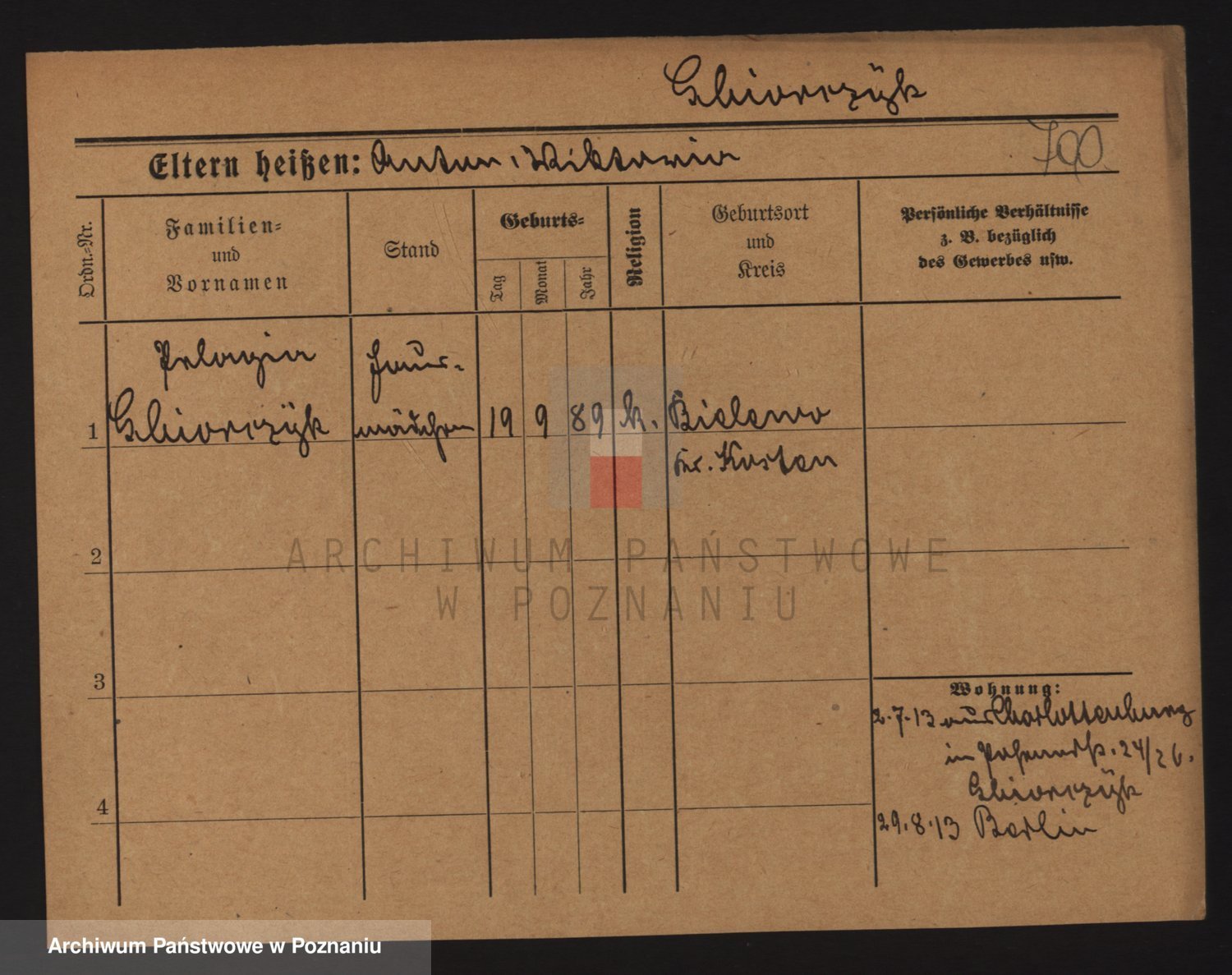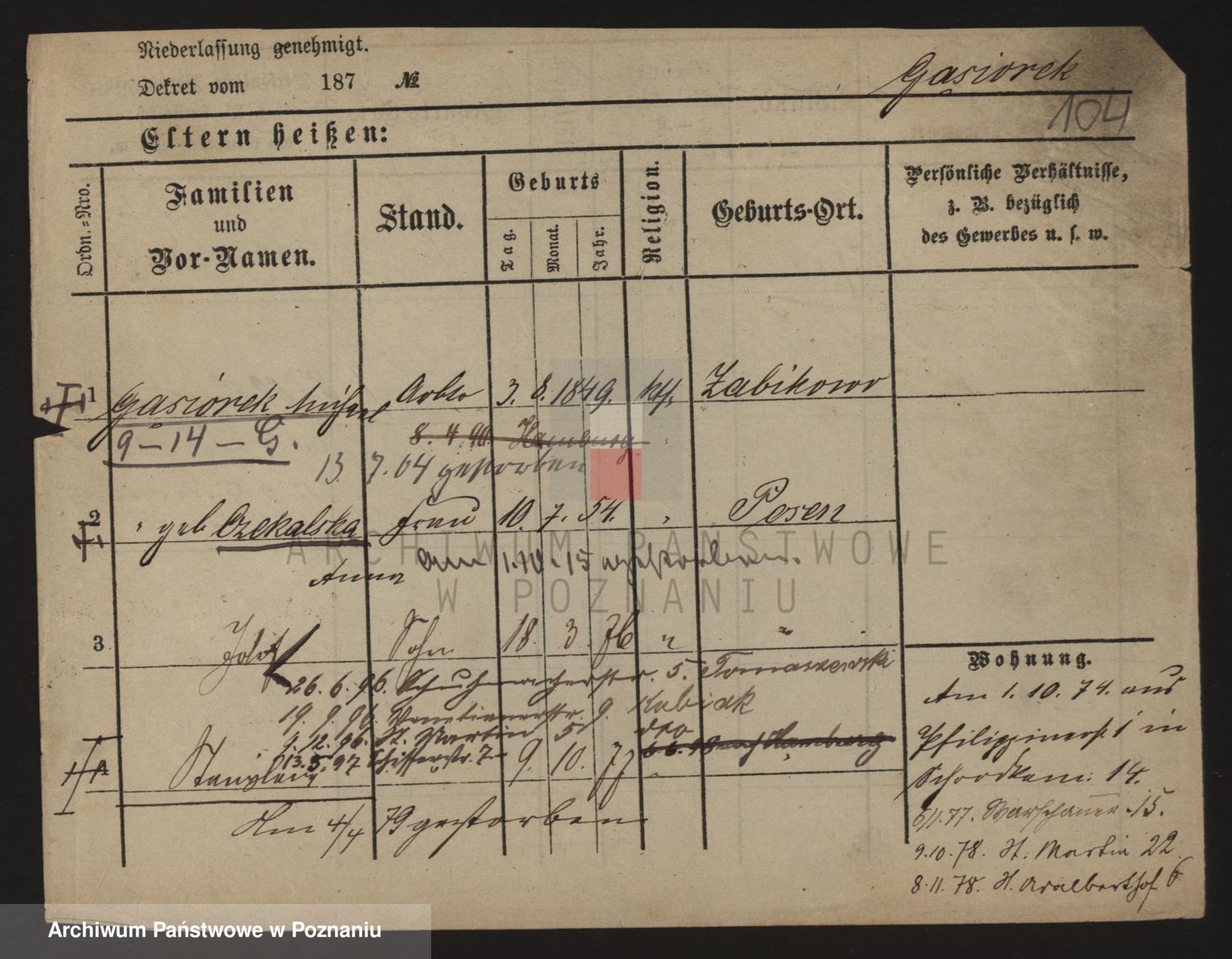 Podgląd karty osobowej dostępny jest po kliknięciu na nazwisko lub ikonkę karty. Można dokonywać powiększenia (ikony na górze) lub przechodzić między kolejnymi skanami (strzałki po bokach).