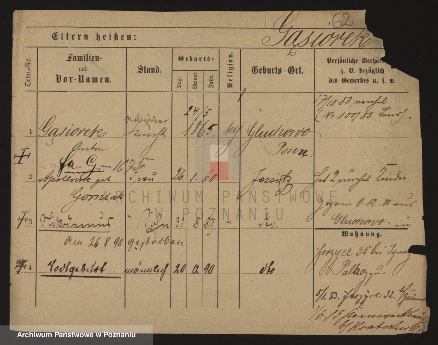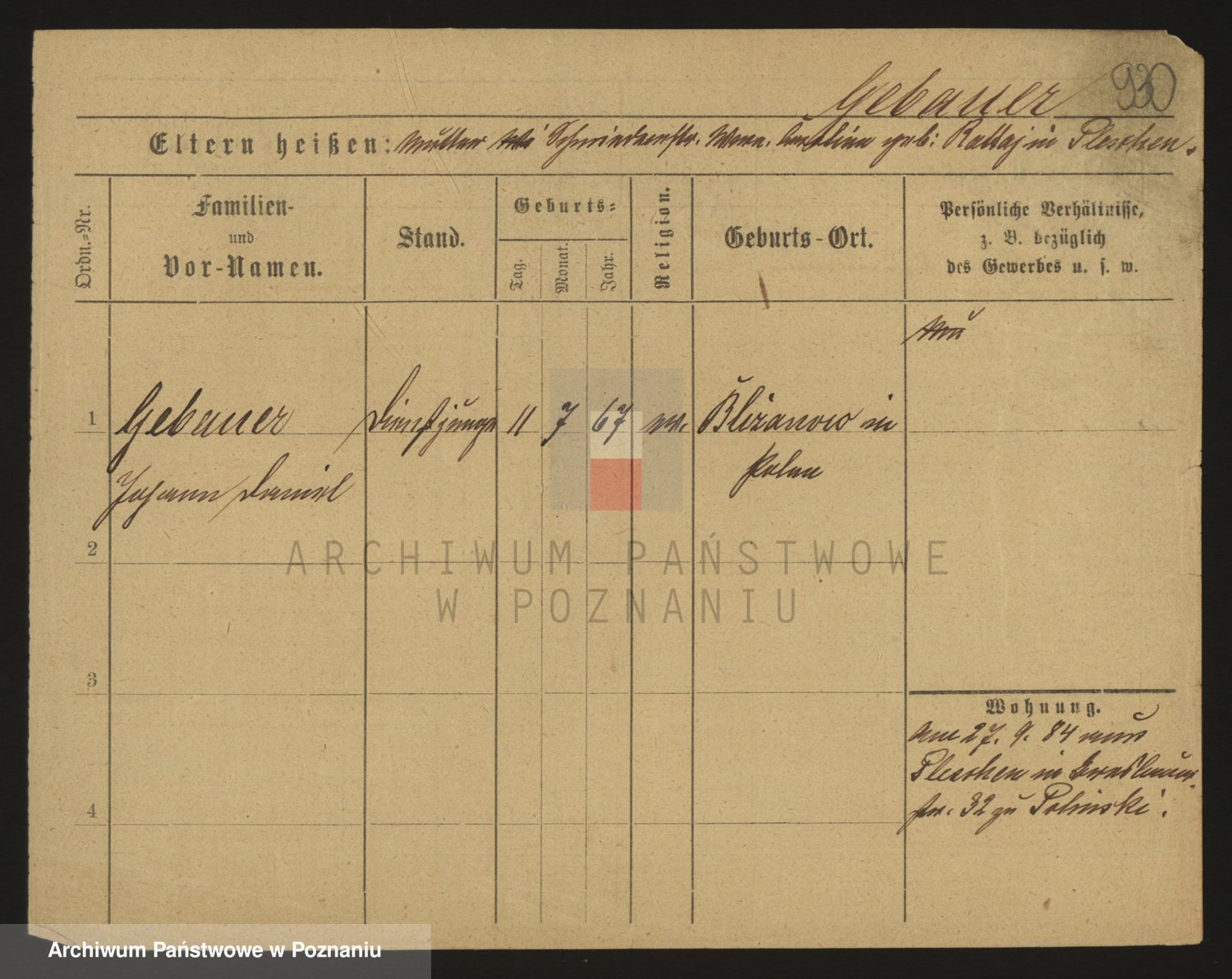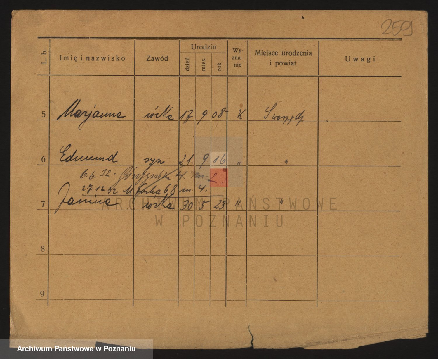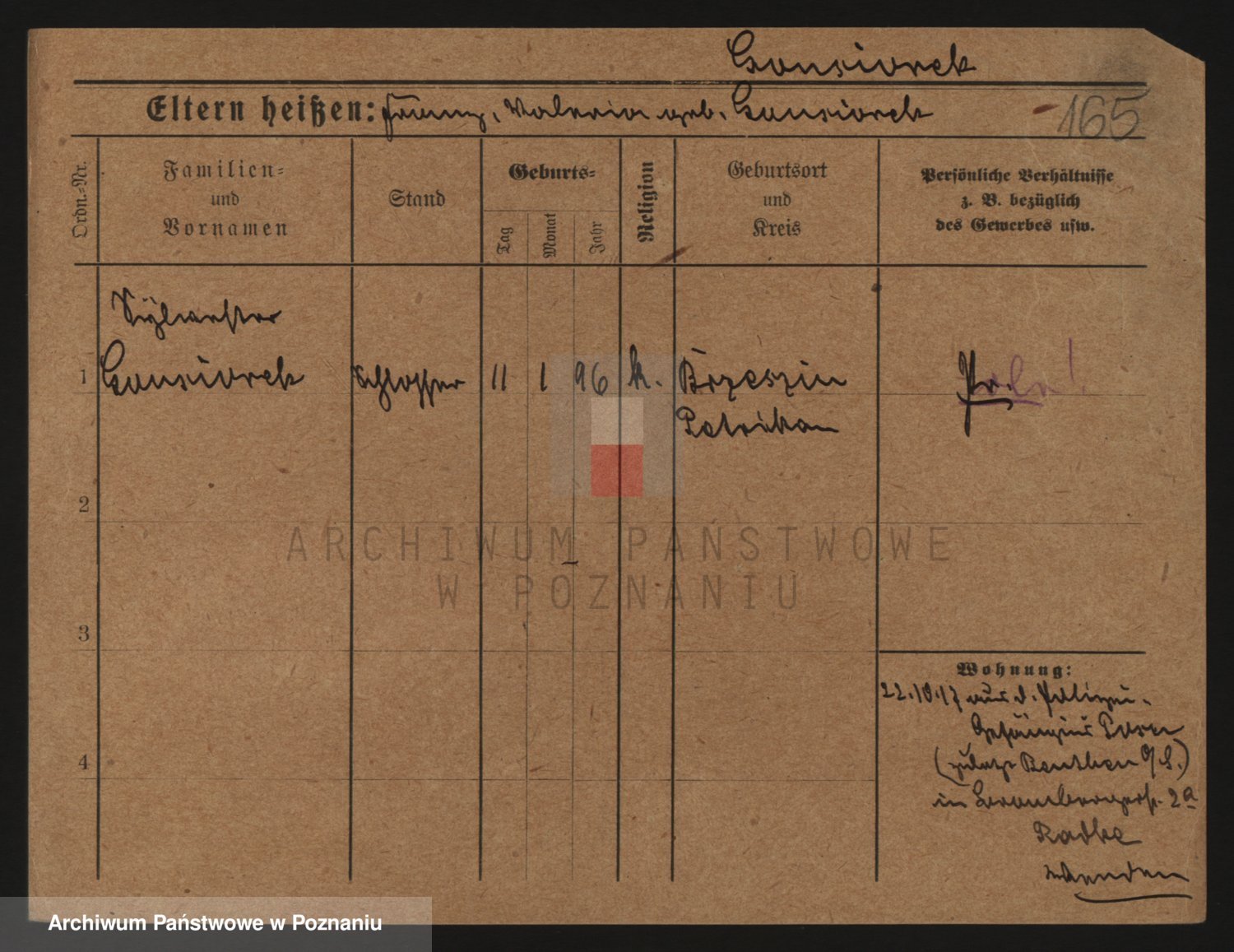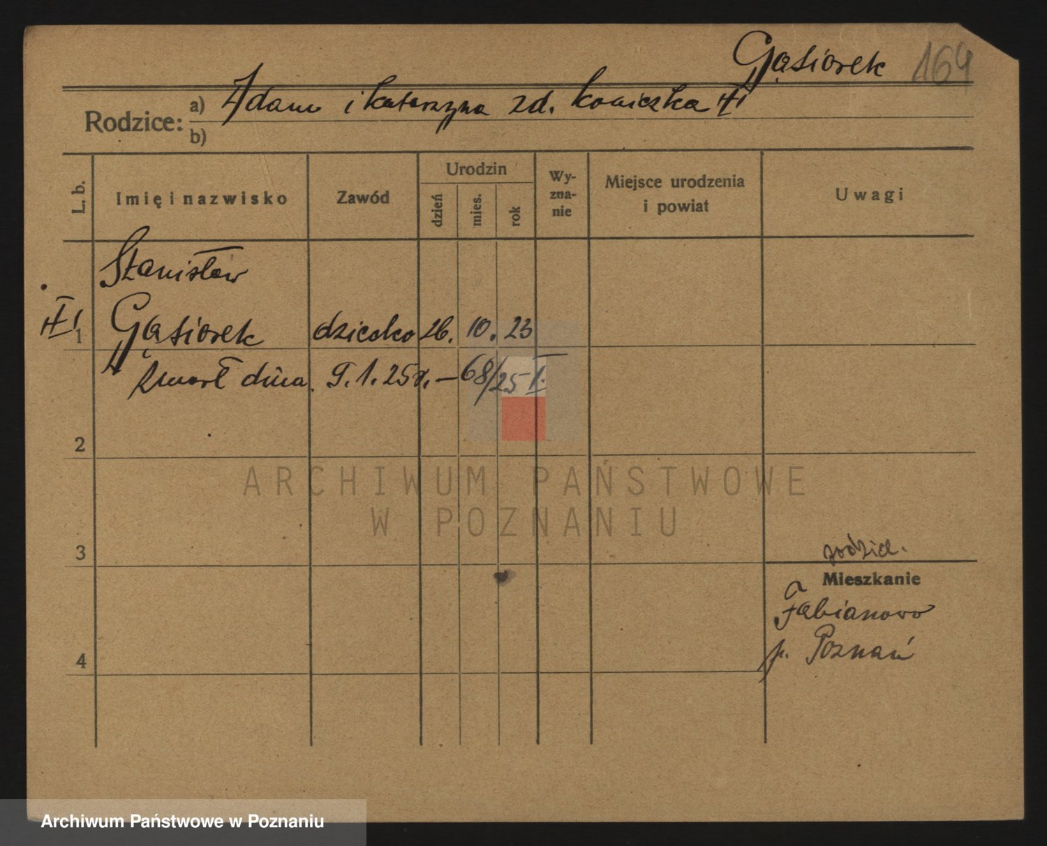 Podgląd karty osobowej dostępny jest po kliknięciu na nazwisko lub ikonkę karty. Można dokonywać powiększenia (ikony na górze) lub przechodzić między kolejnymi skanami (strzałki po bokach).