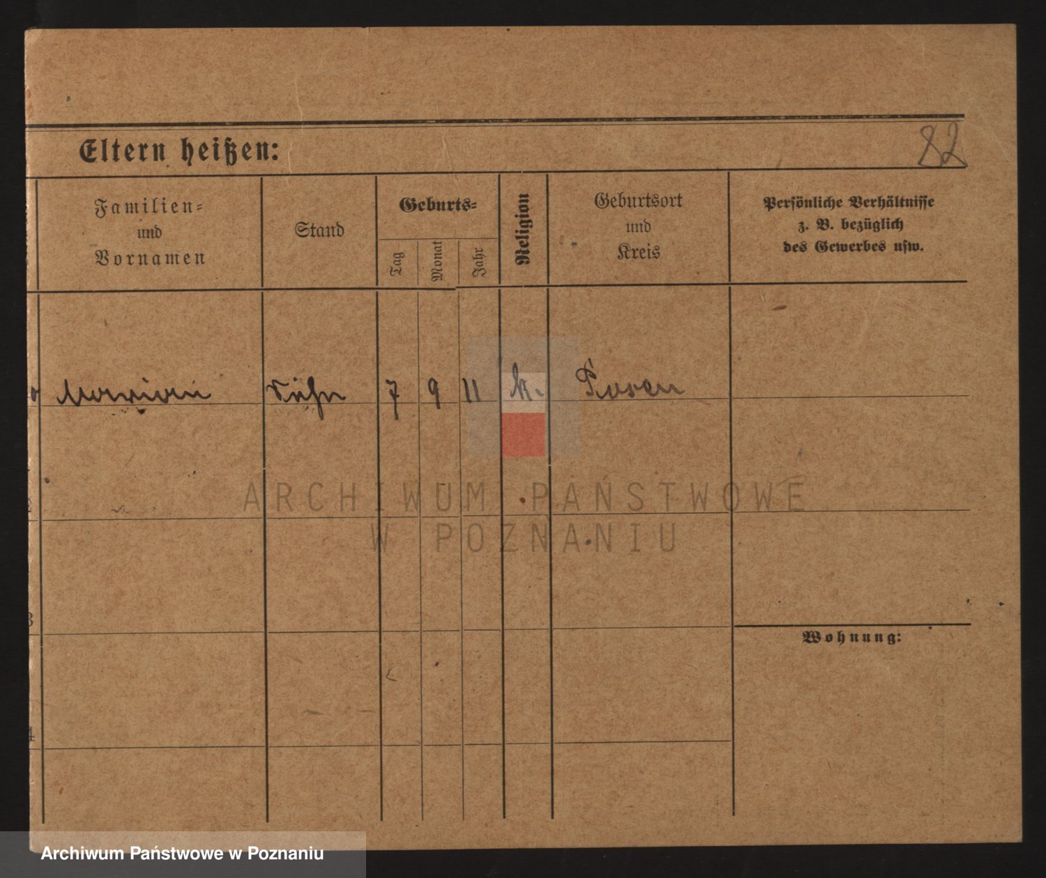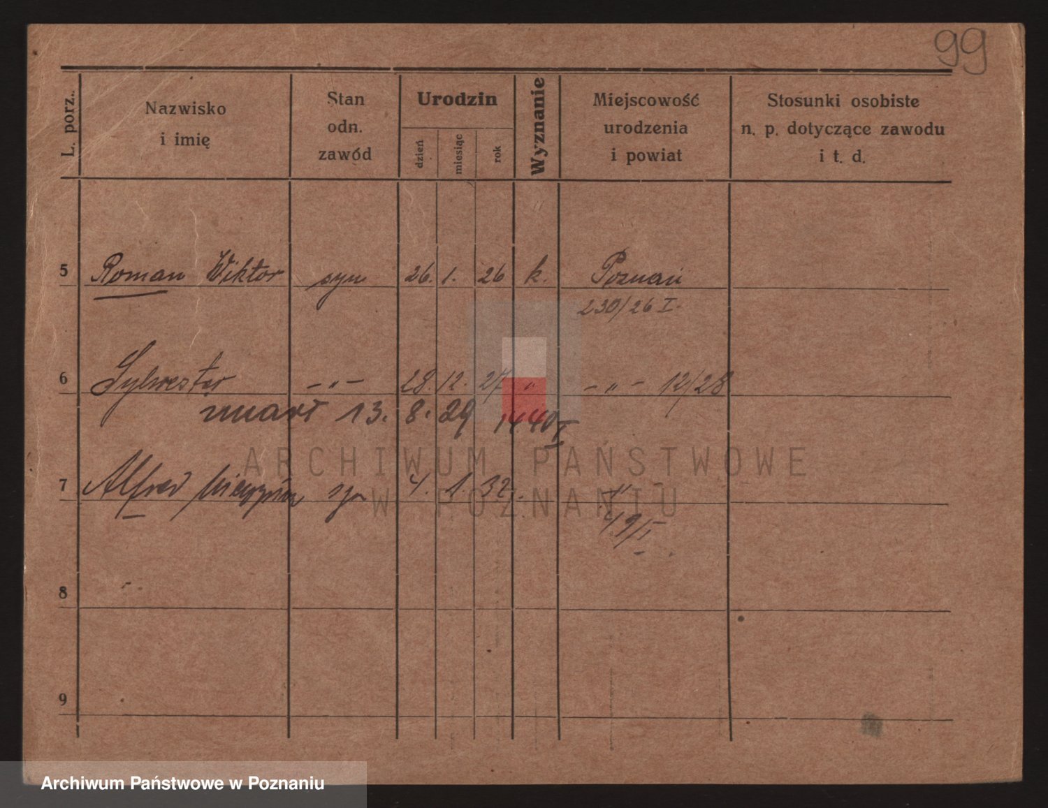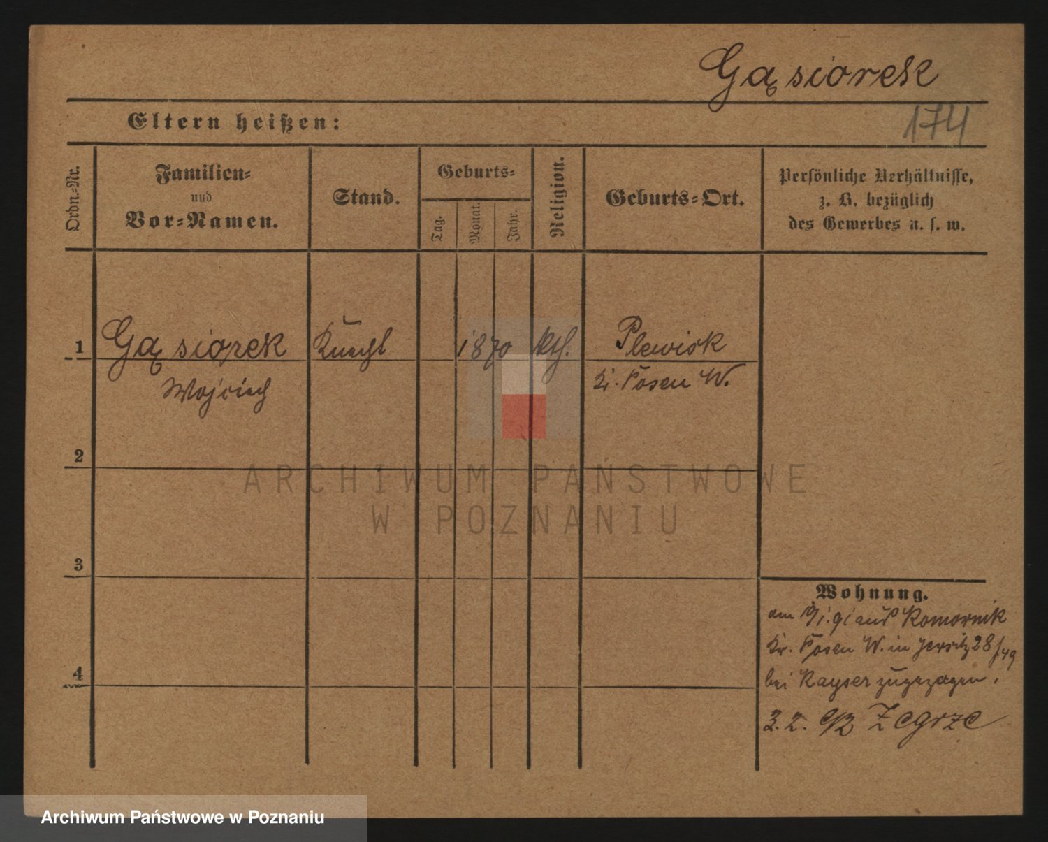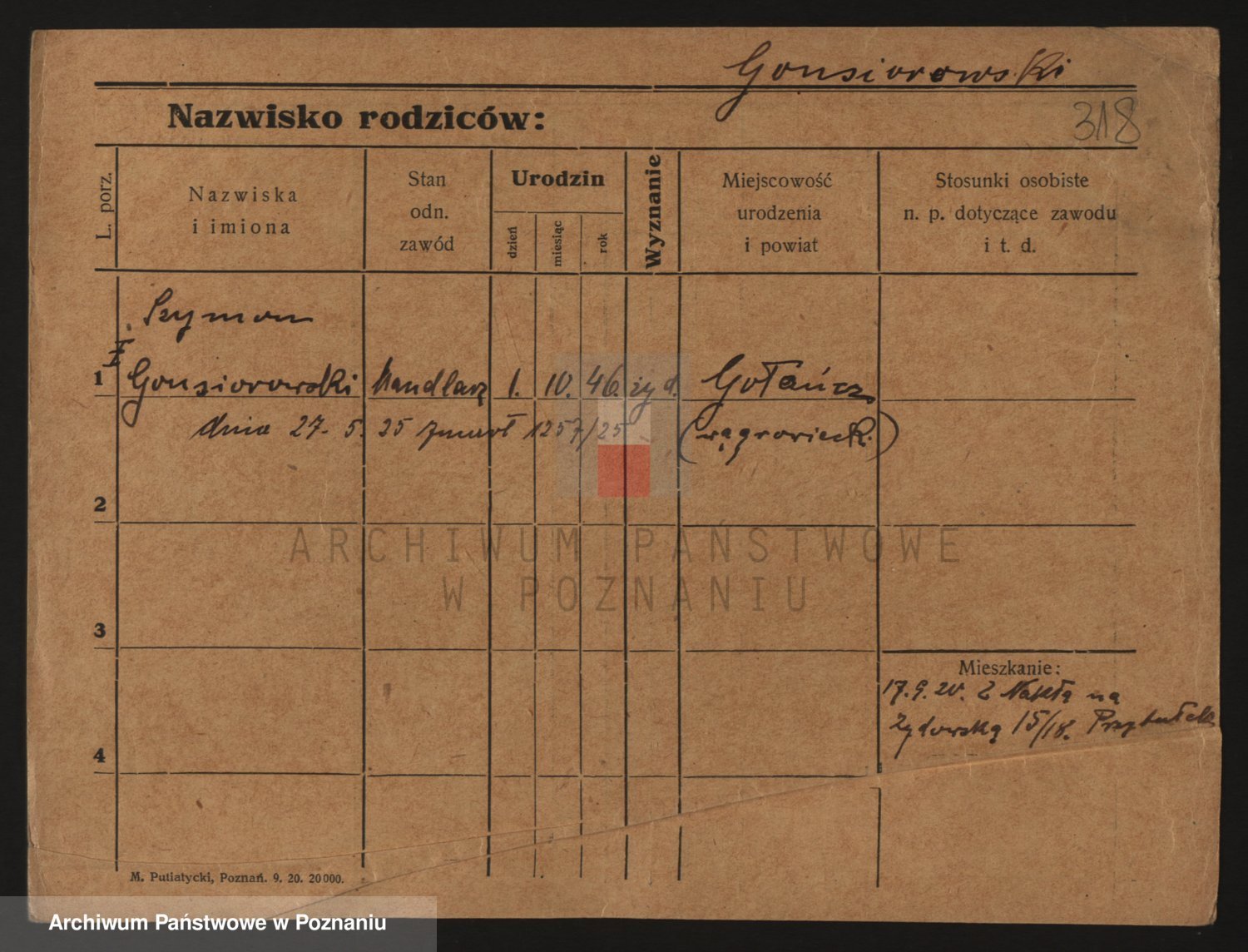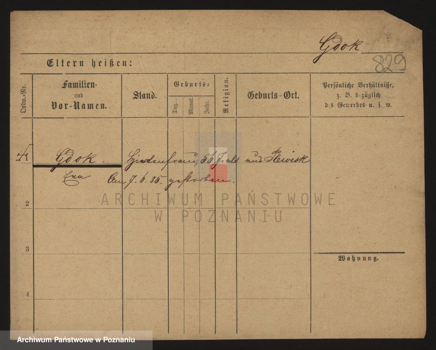 Podgląd karty osobowej dostępny jest po kliknięciu na nazwisko lub ikonkę karty. Można dokonywać powiększenia (ikony na górze) lub przechodzić między kolejnymi skanami (strzałki po bokach).