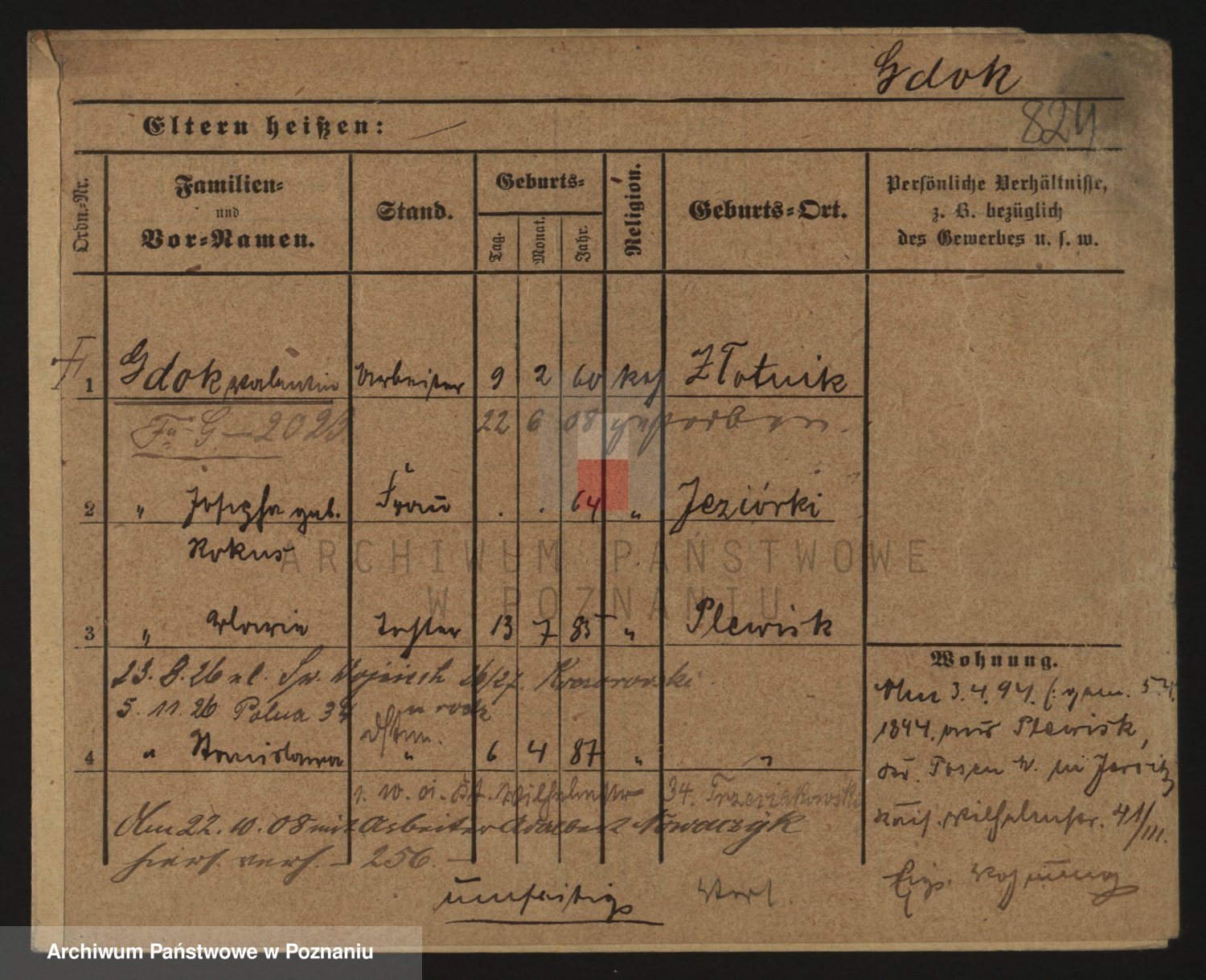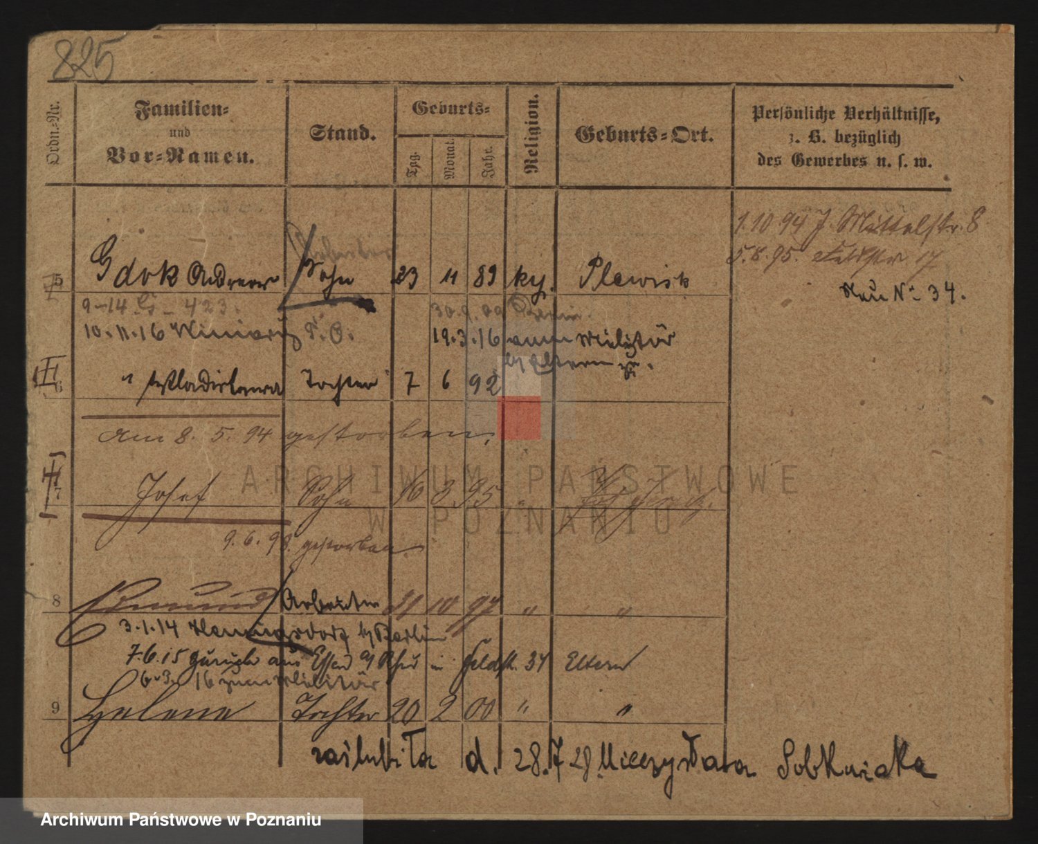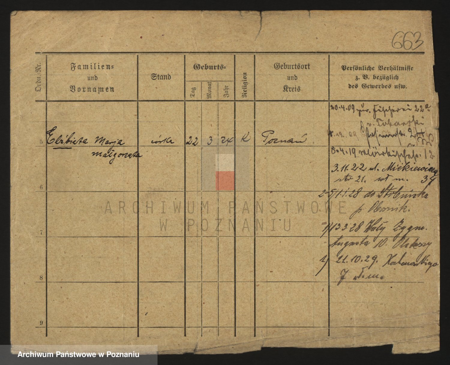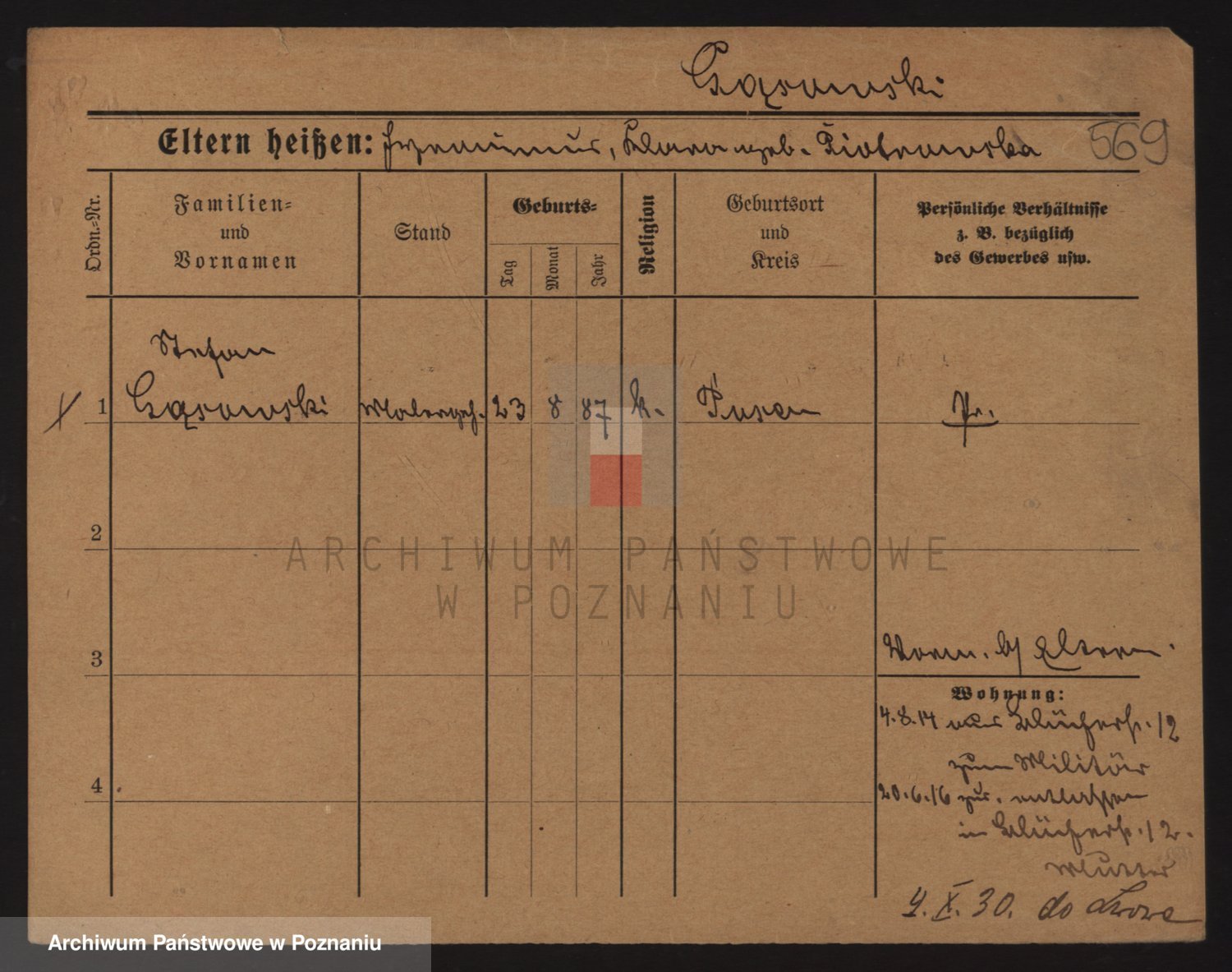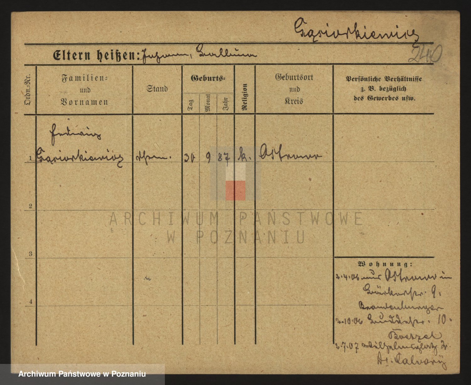 Podgląd karty osobowej dostępny jest po kliknięciu na nazwisko lub ikonkę karty. Można dokonywać powiększenia (ikony na górze) lub przechodzić między kolejnymi skanami (strzałki po bokach).