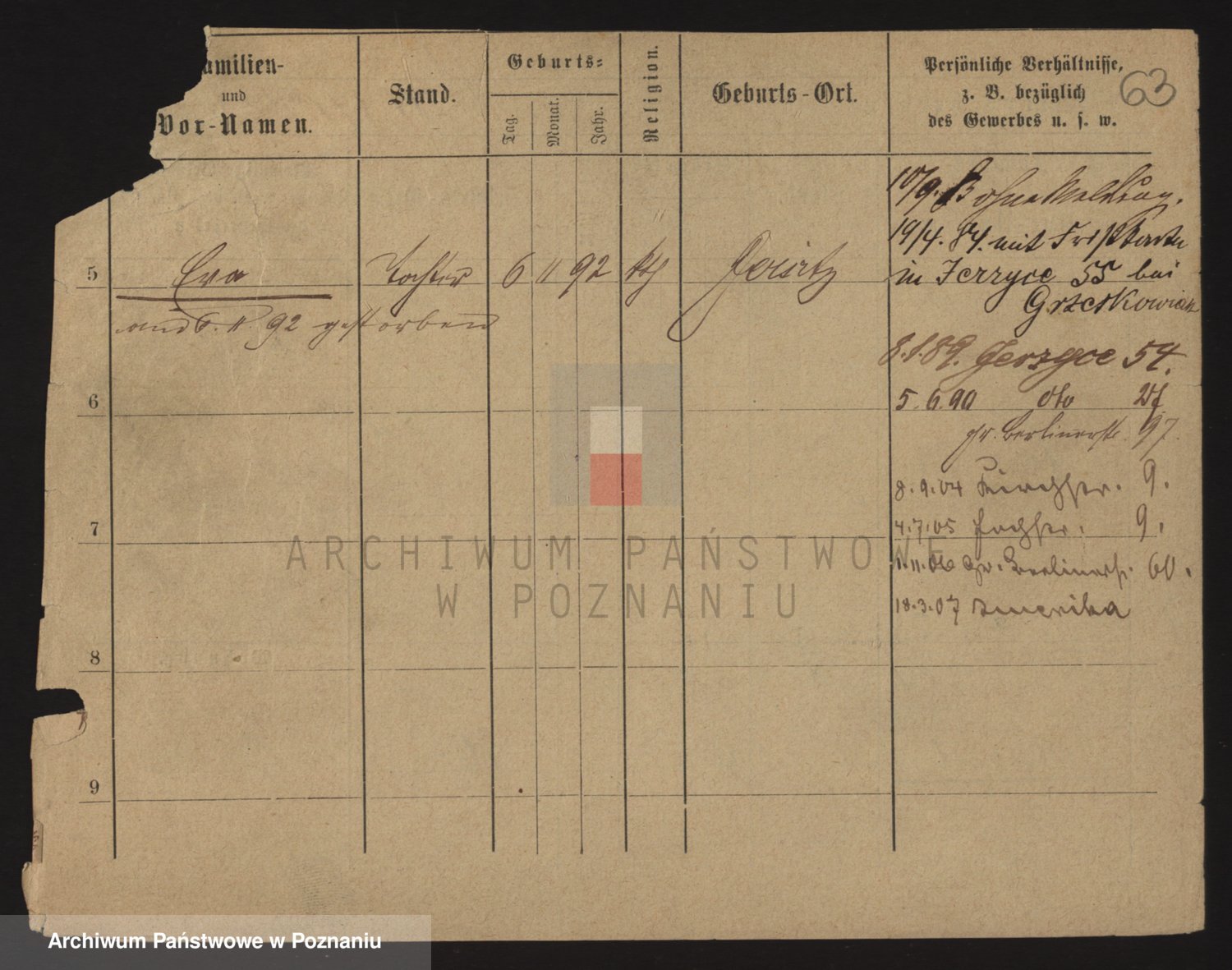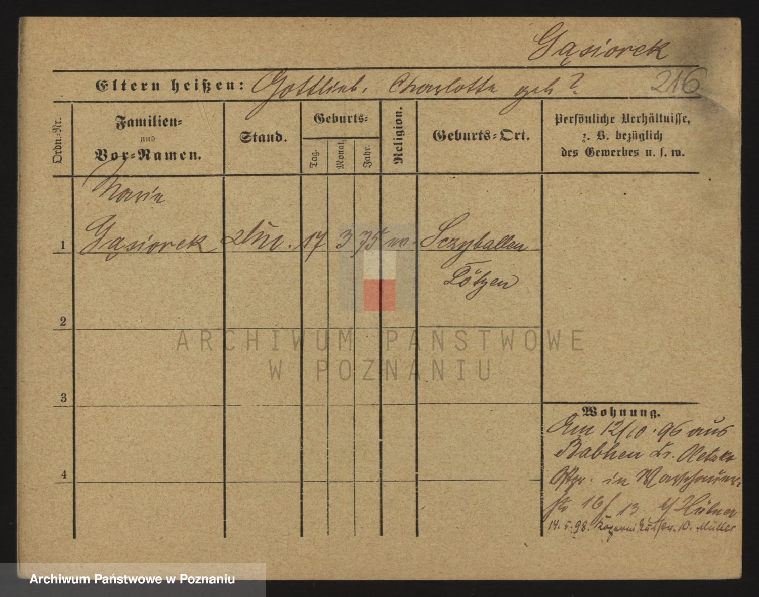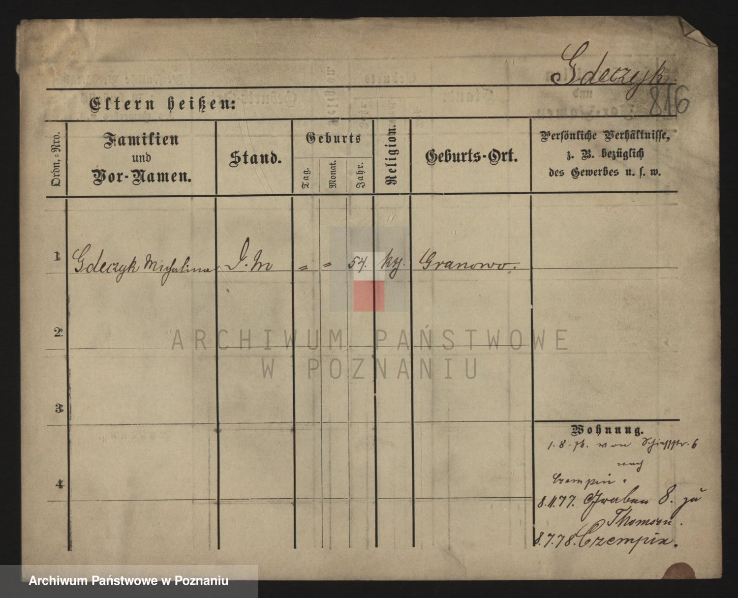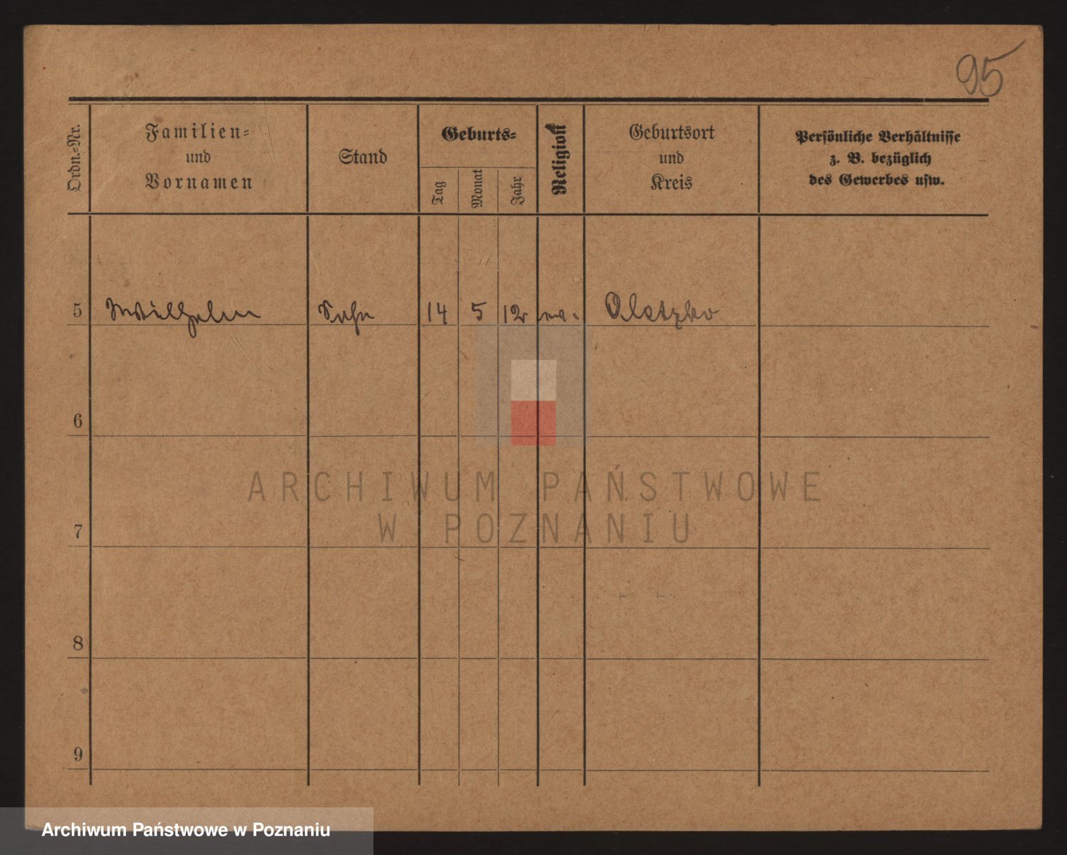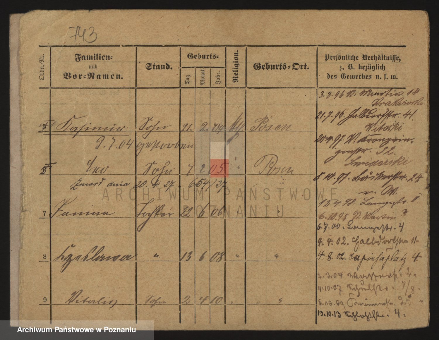 Podgląd karty osobowej dostępny jest po kliknięciu na nazwisko lub ikonkę karty. Można dokonywać powiększenia (ikony na górze) lub przechodzić między kolejnymi skanami (strzałki po bokach).
