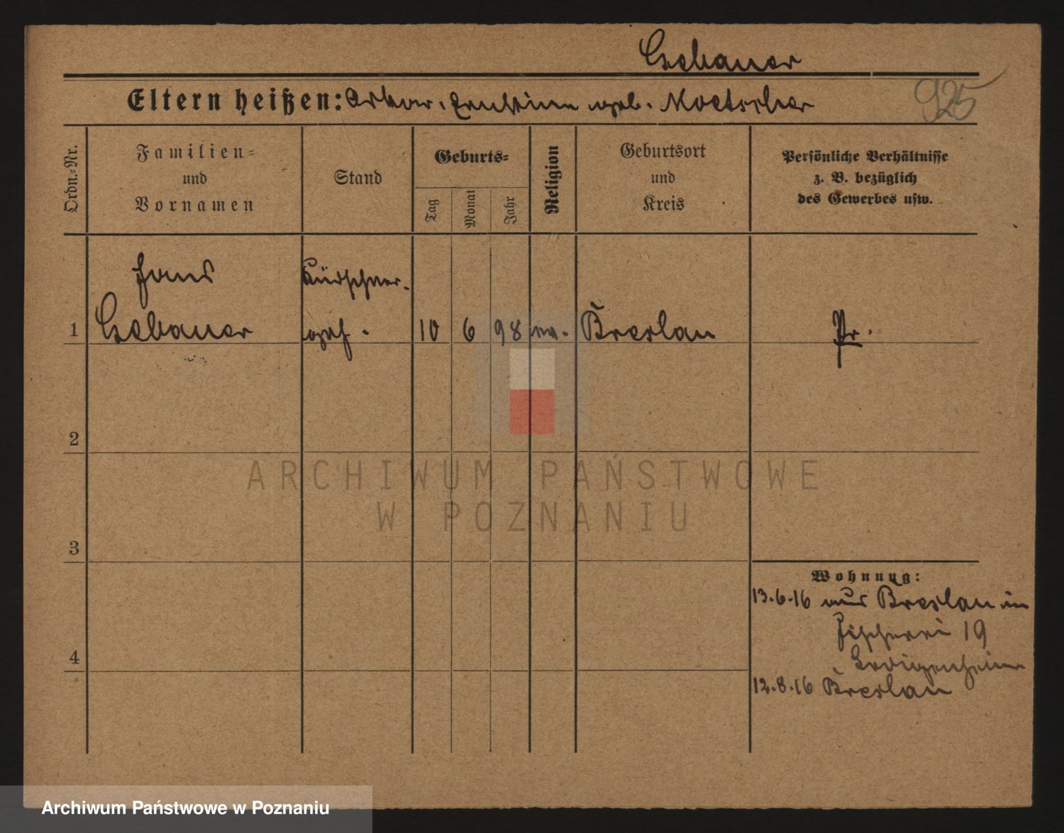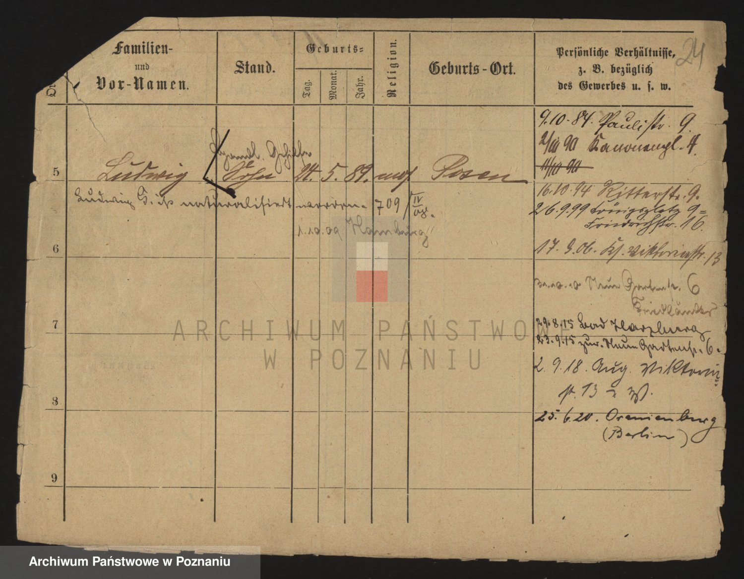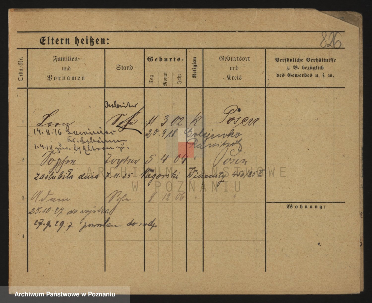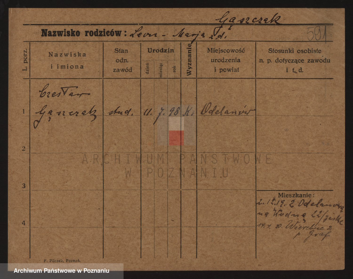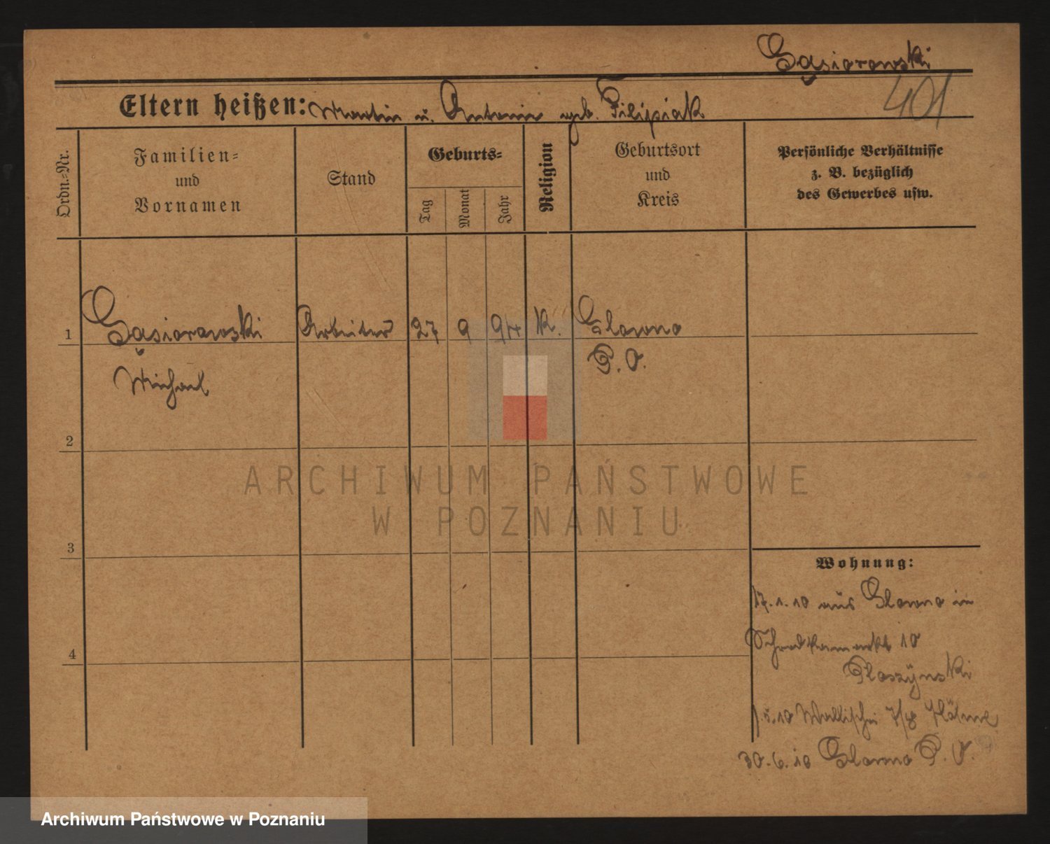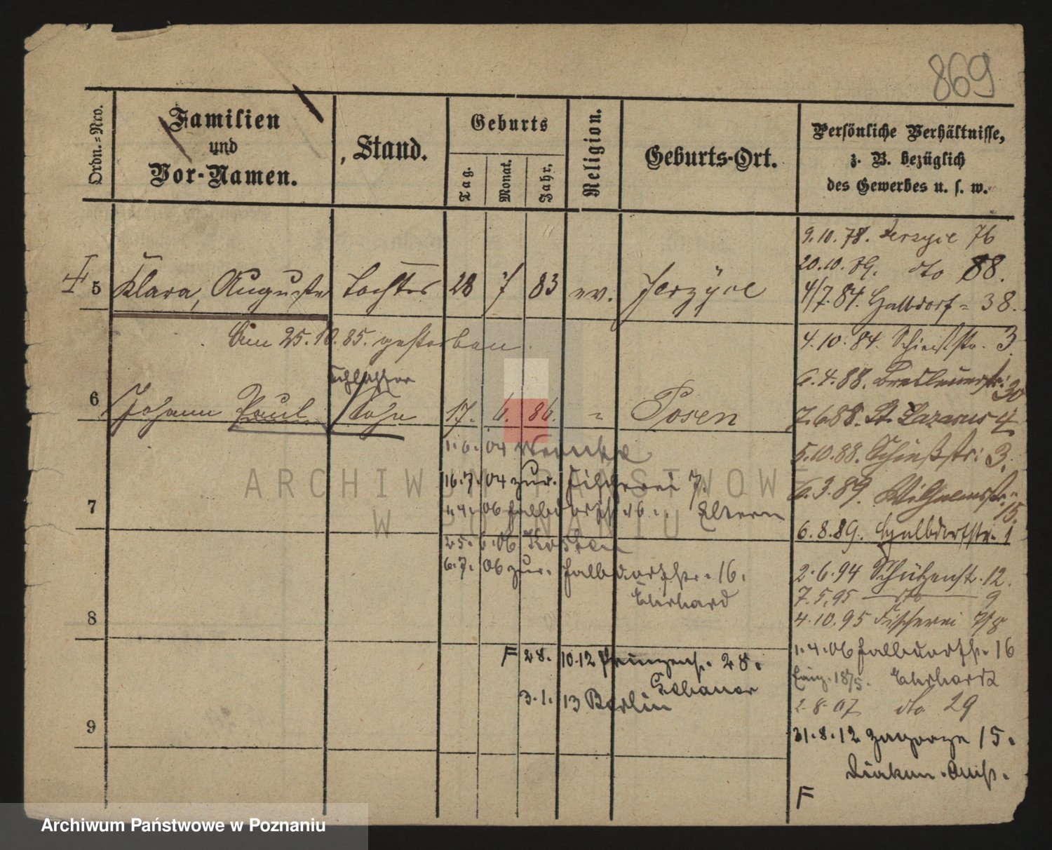 Podgląd karty osobowej dostępny jest po kliknięciu na nazwisko lub ikonkę karty. Można dokonywać powiększenia (ikony na górze) lub przechodzić między kolejnymi skanami (strzałki po bokach).