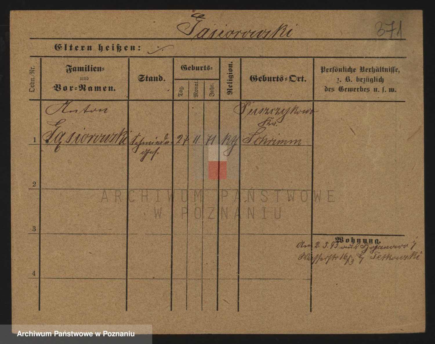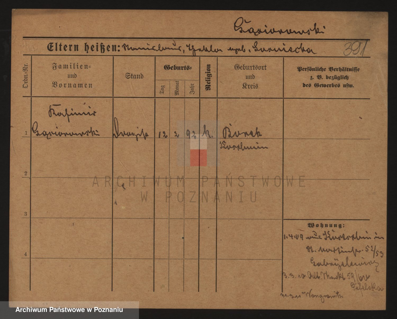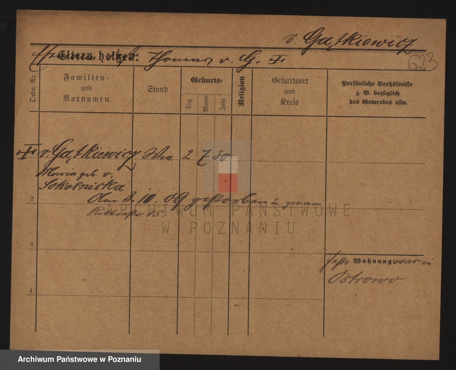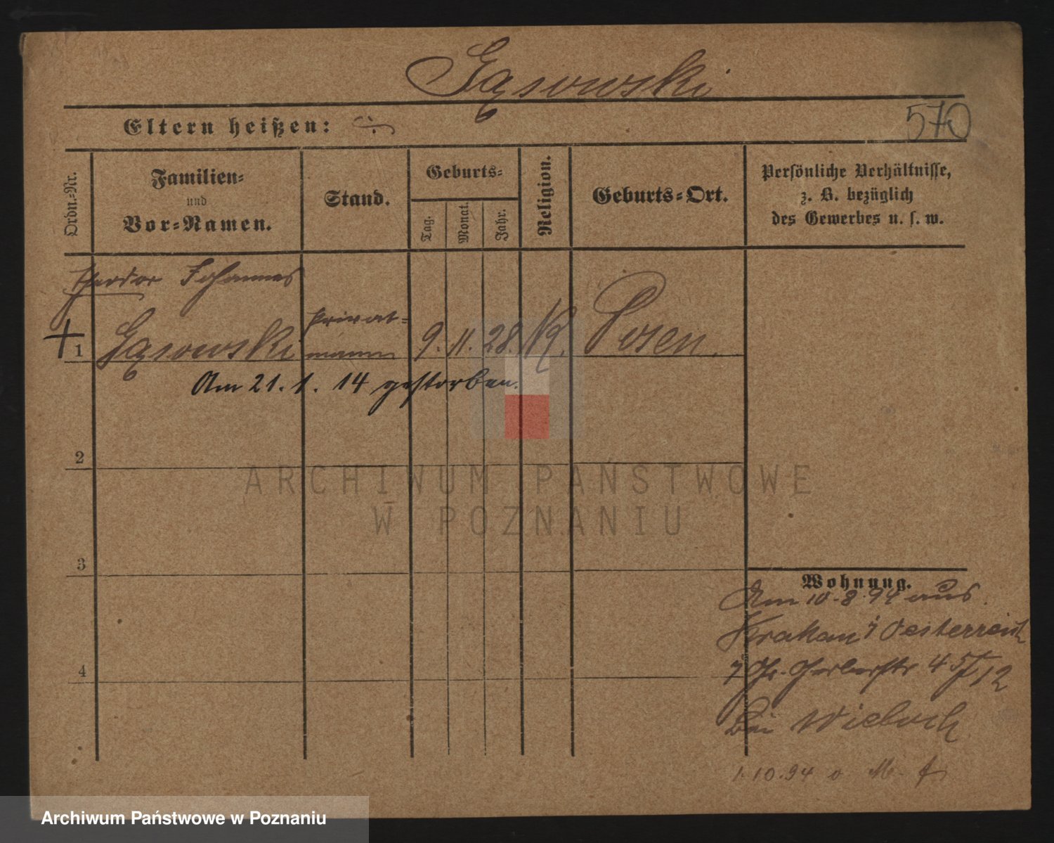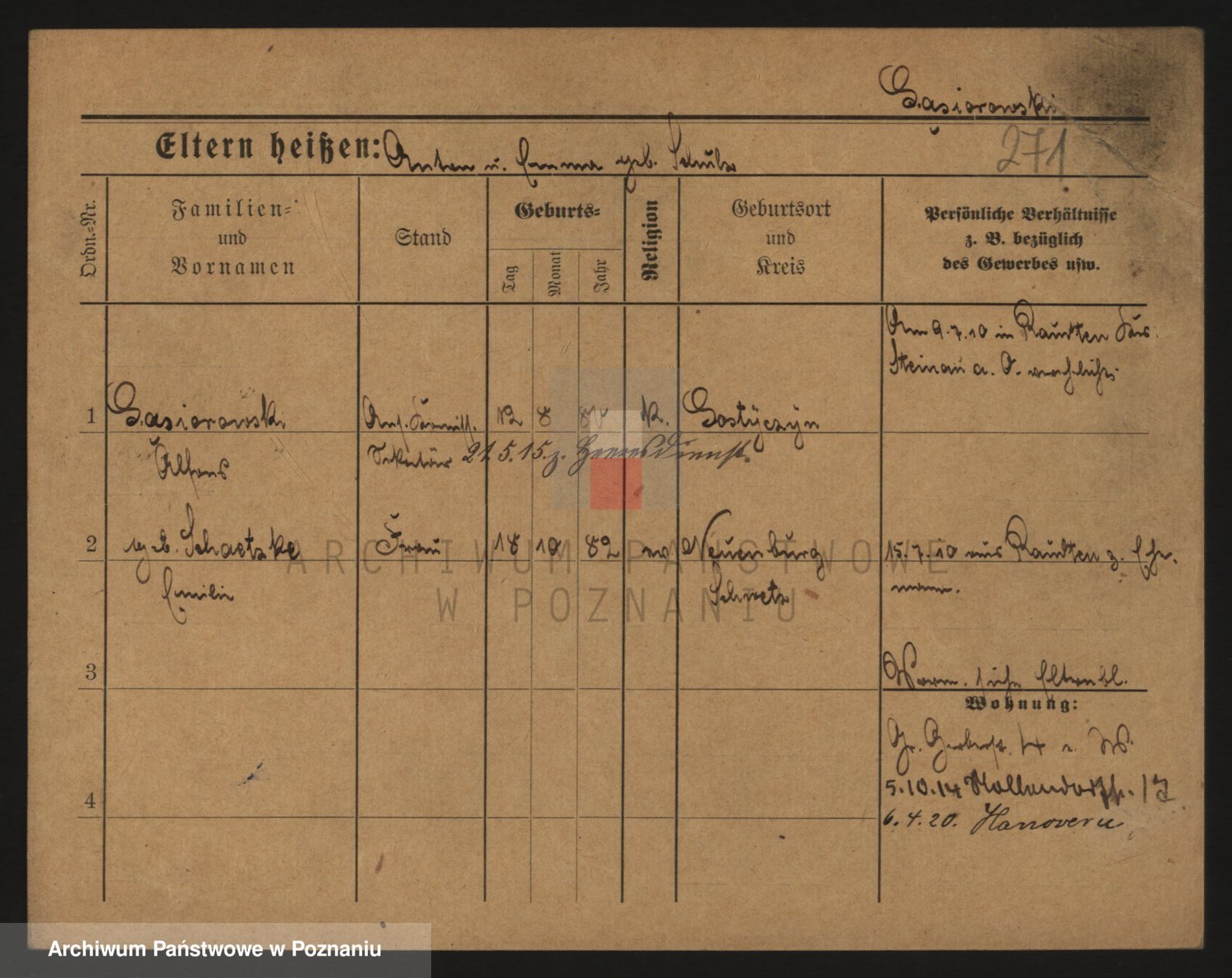 Podgląd karty osobowej dostępny jest po kliknięciu na nazwisko lub ikonkę karty. Można dokonywać powiększenia (ikony na górze) lub przechodzić między kolejnymi skanami (strzałki po bokach).