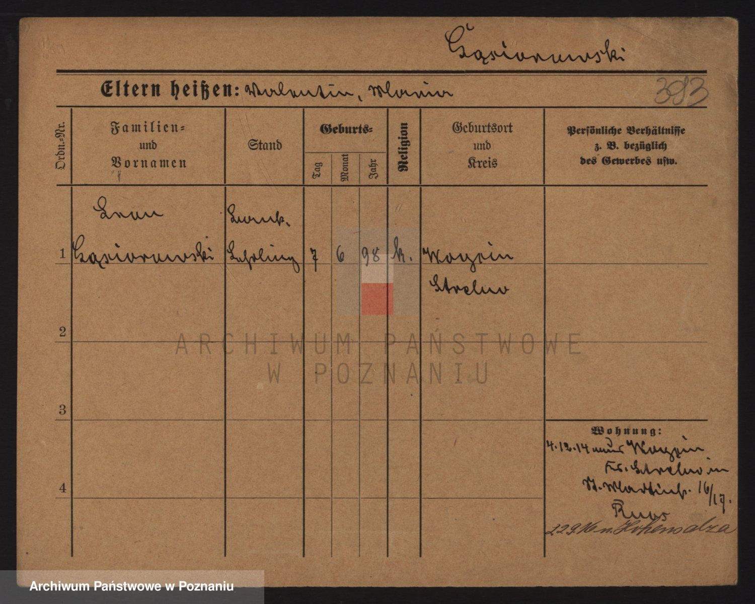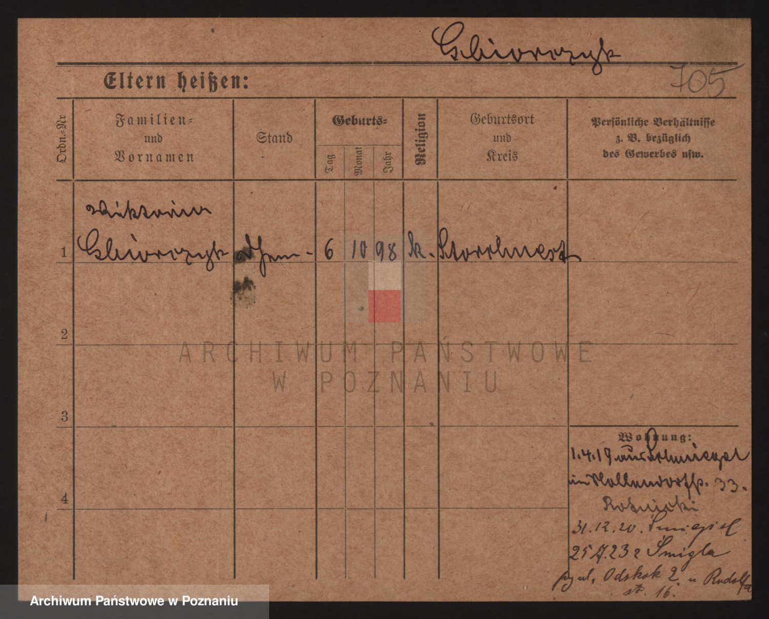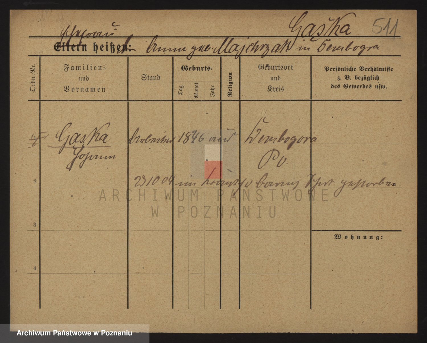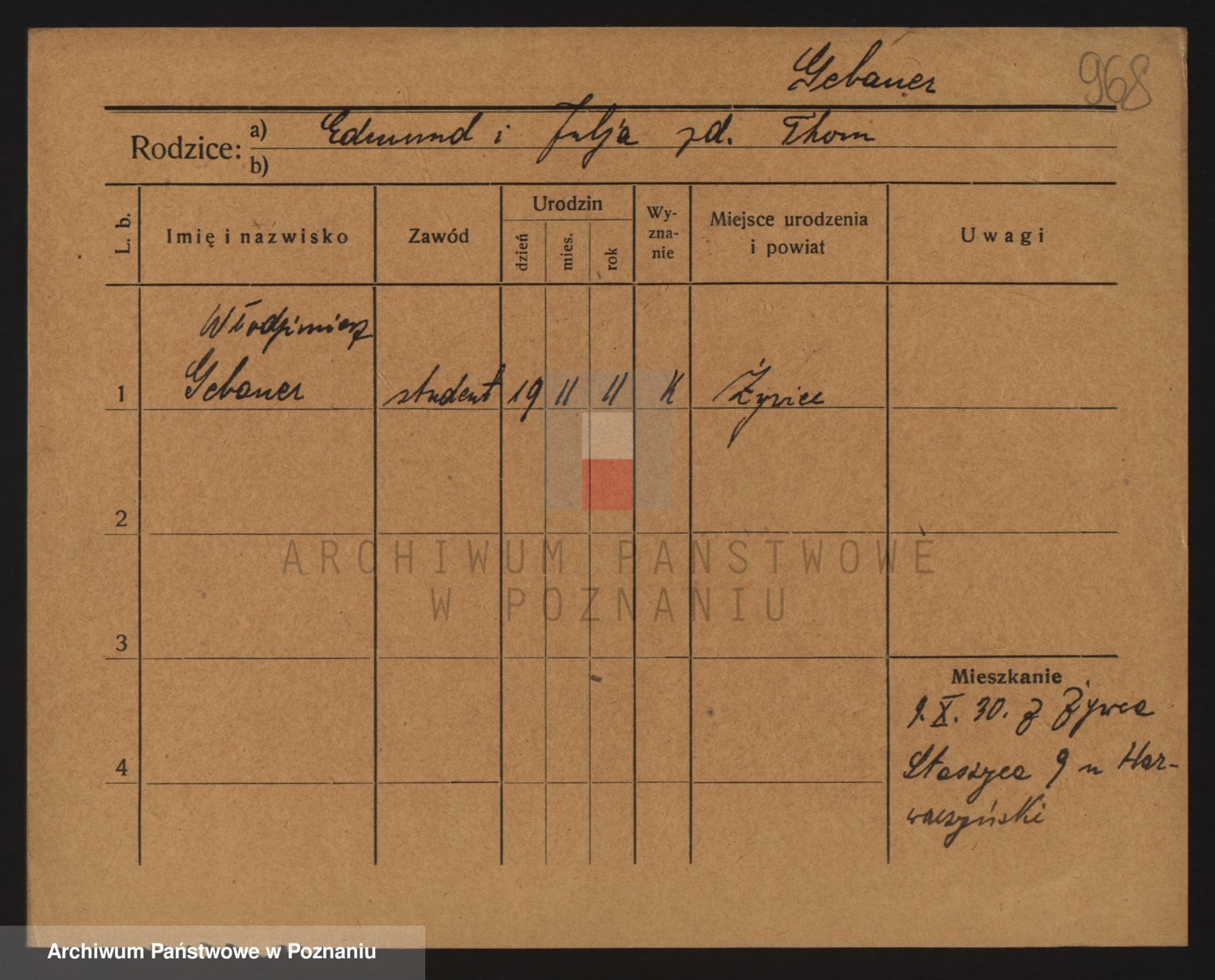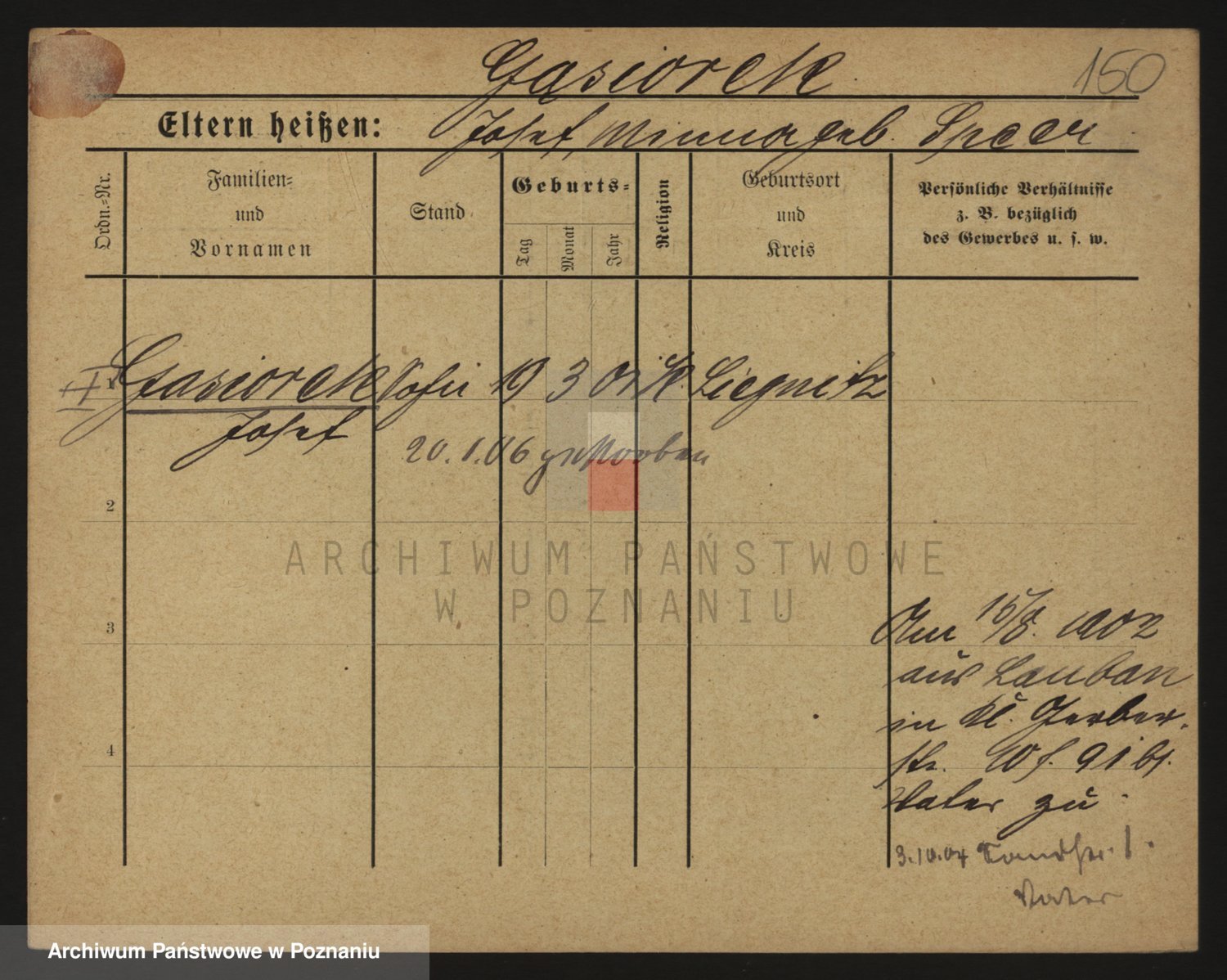 Podgląd karty osobowej dostępny jest po kliknięciu na nazwisko lub ikonkę karty. Można dokonywać powiększenia (ikony na górze) lub przechodzić między kolejnymi skanami (strzałki po bokach).