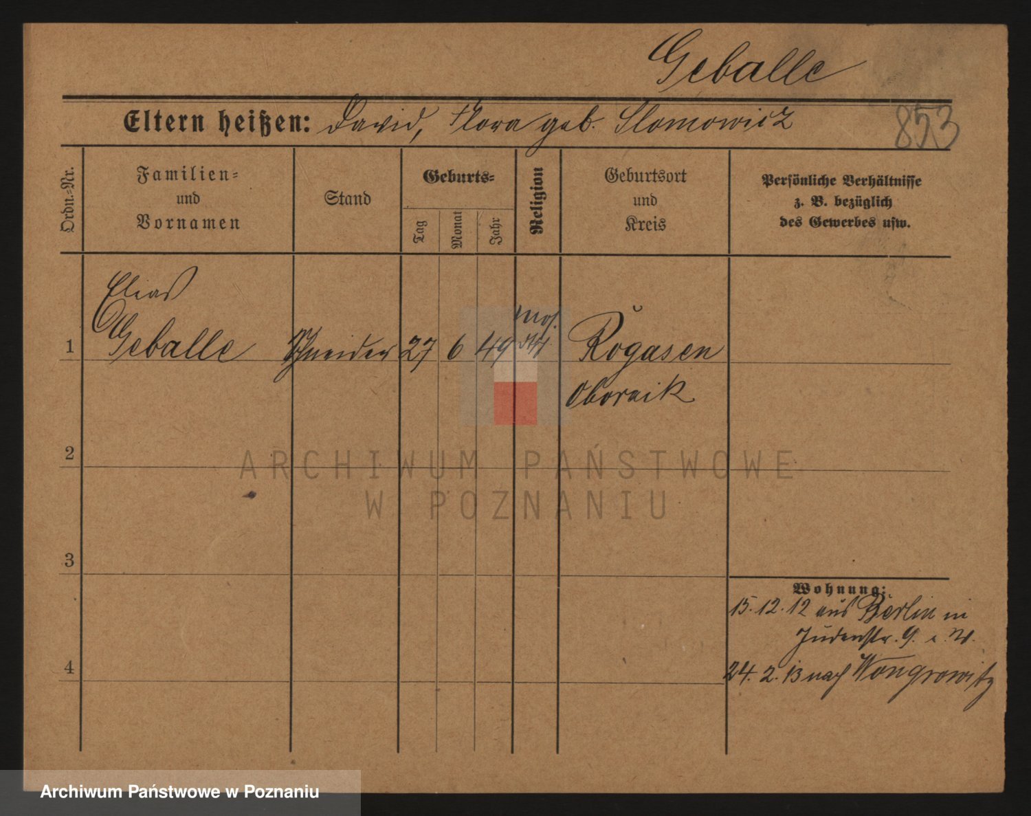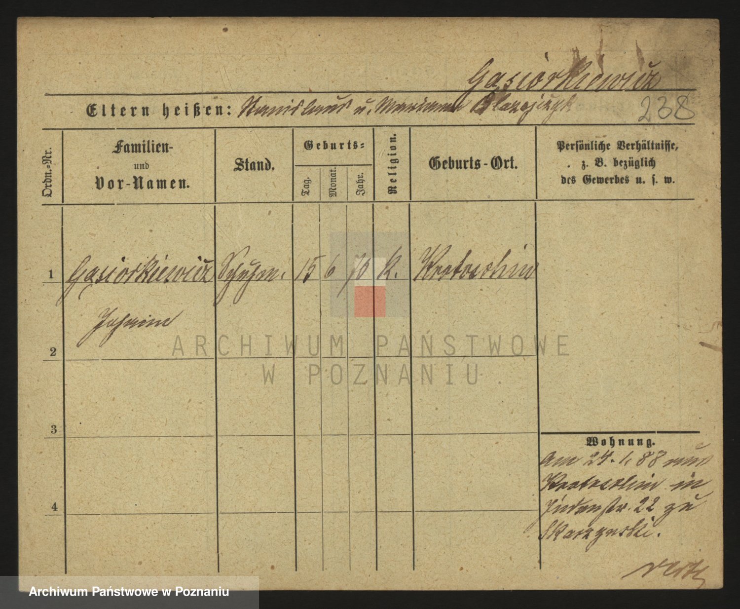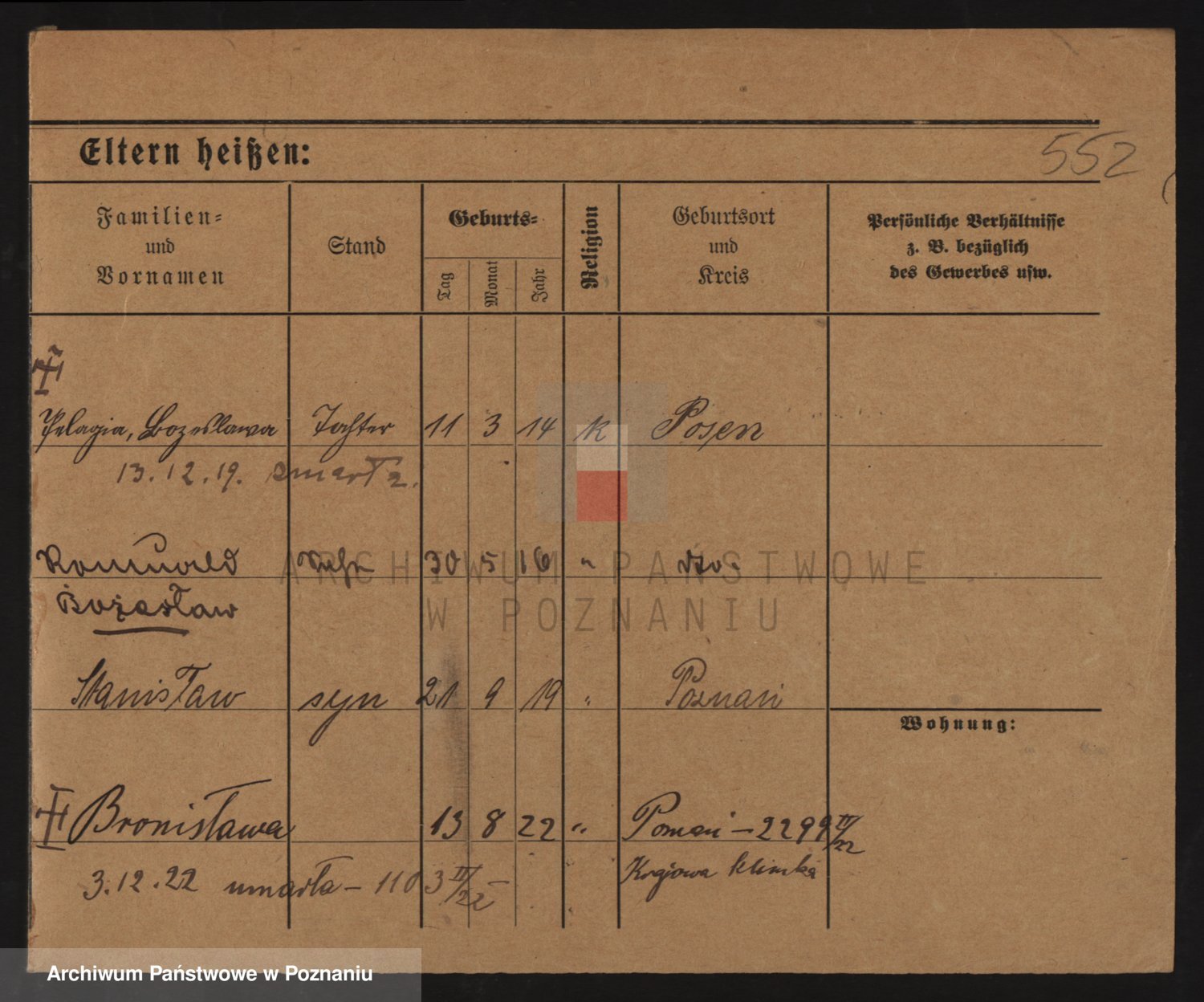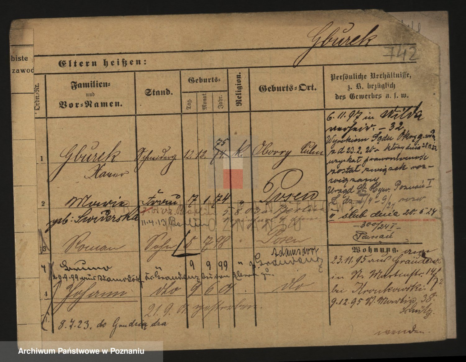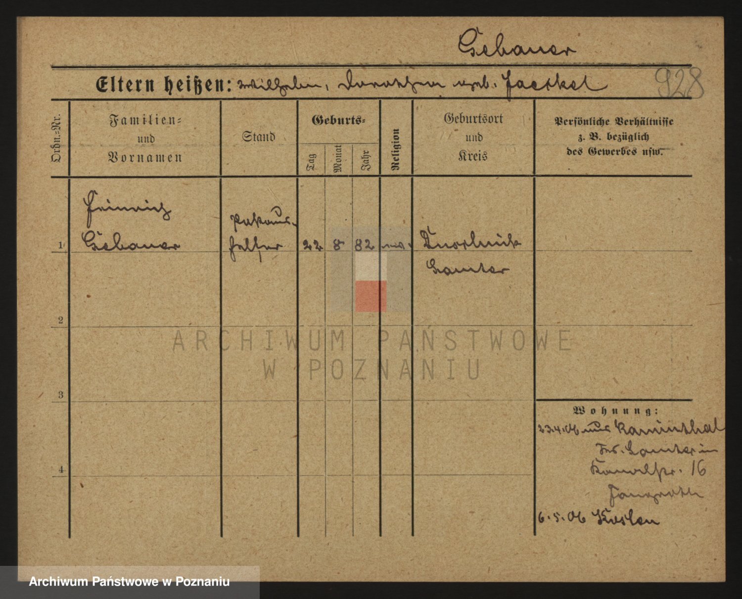 Podgląd karty osobowej dostępny jest po kliknięciu na nazwisko lub ikonkę karty. Można dokonywać powiększenia (ikony na górze) lub przechodzić między kolejnymi skanami (strzałki po bokach).