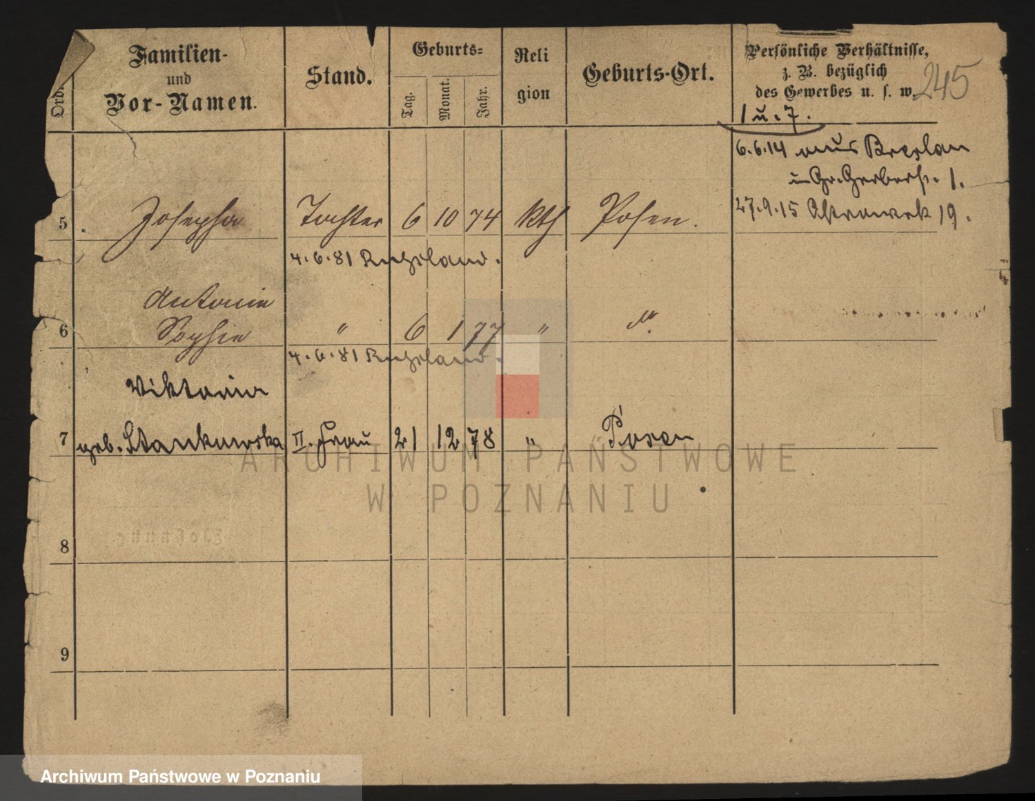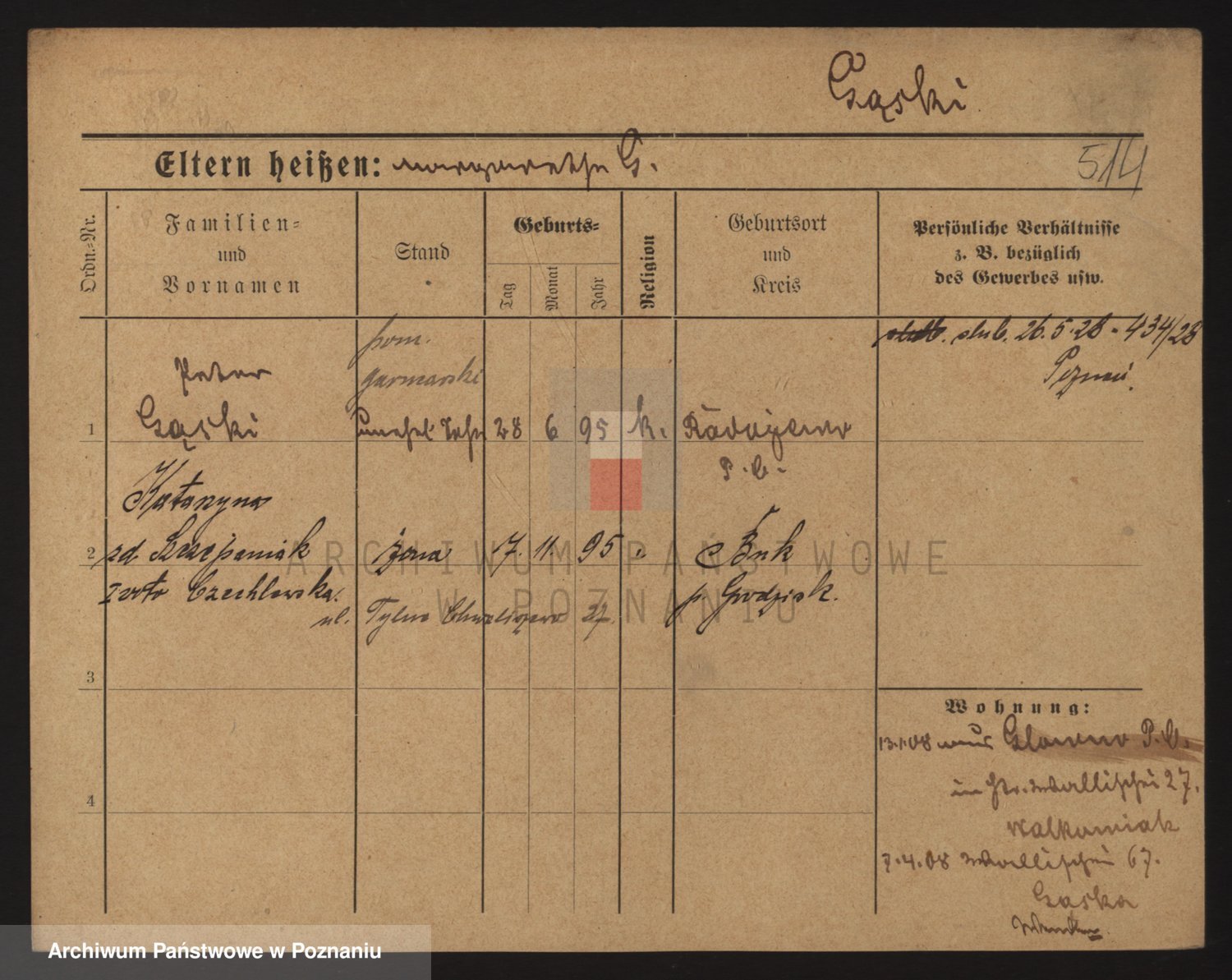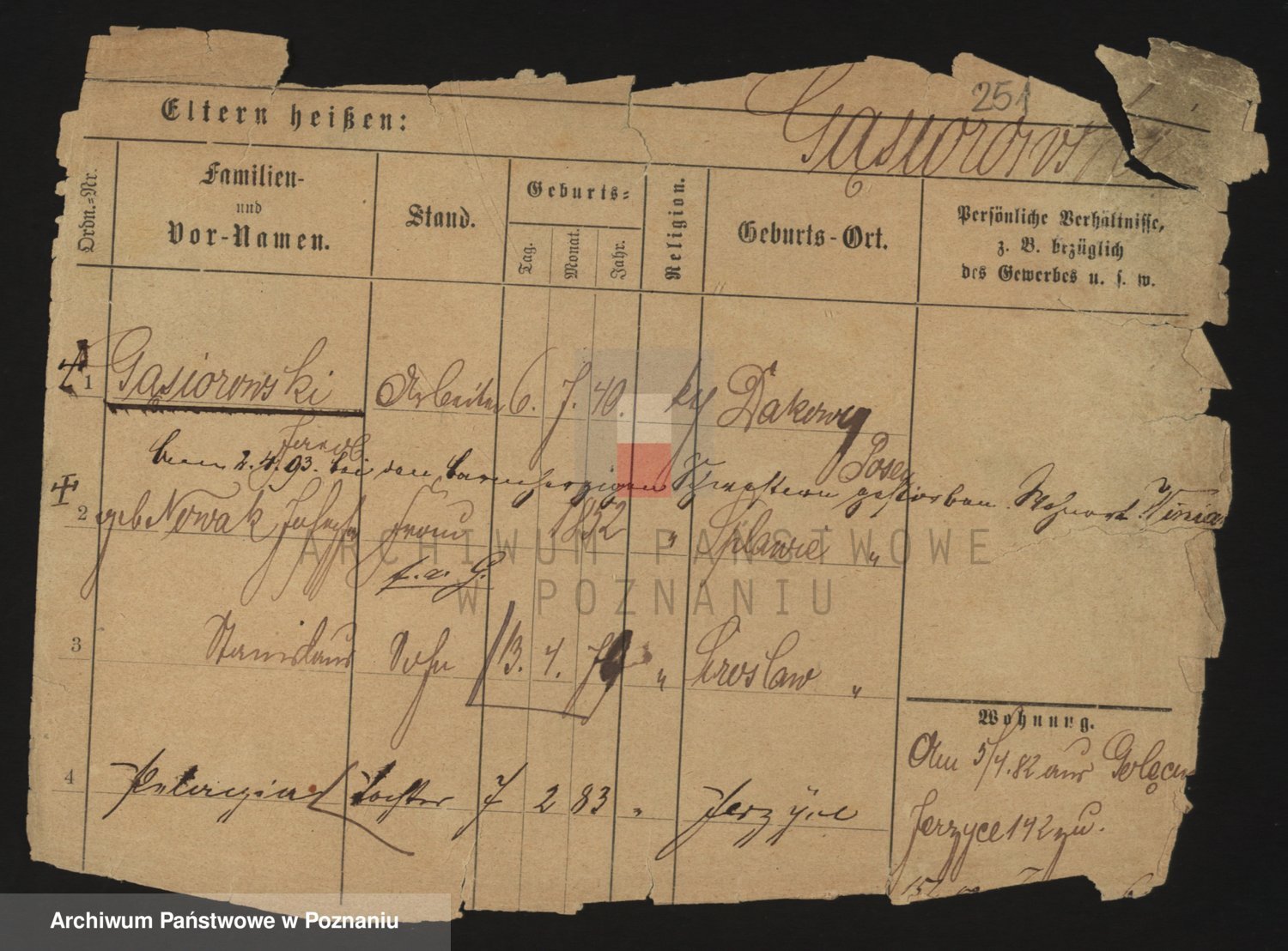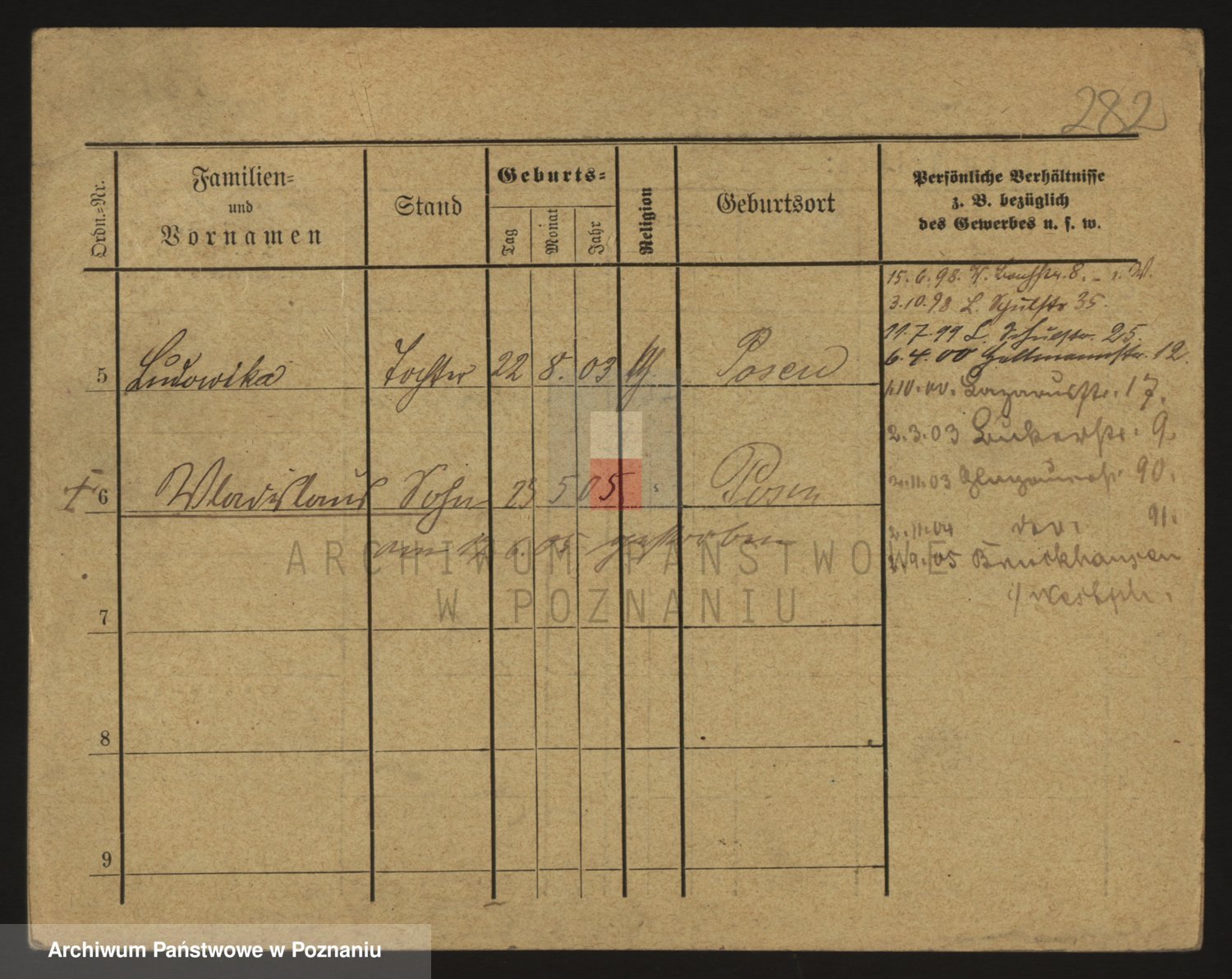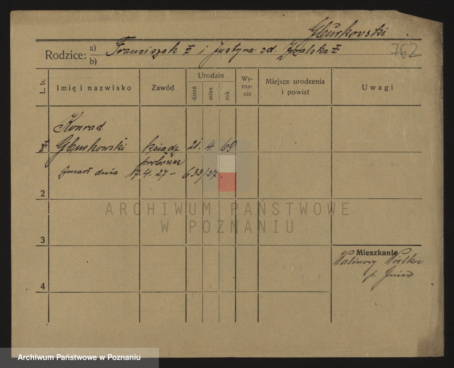 Podgląd karty osobowej dostępny jest po kliknięciu na nazwisko lub ikonkę karty. Można dokonywać powiększenia (ikony na górze) lub przechodzić między kolejnymi skanami (strzałki po bokach).