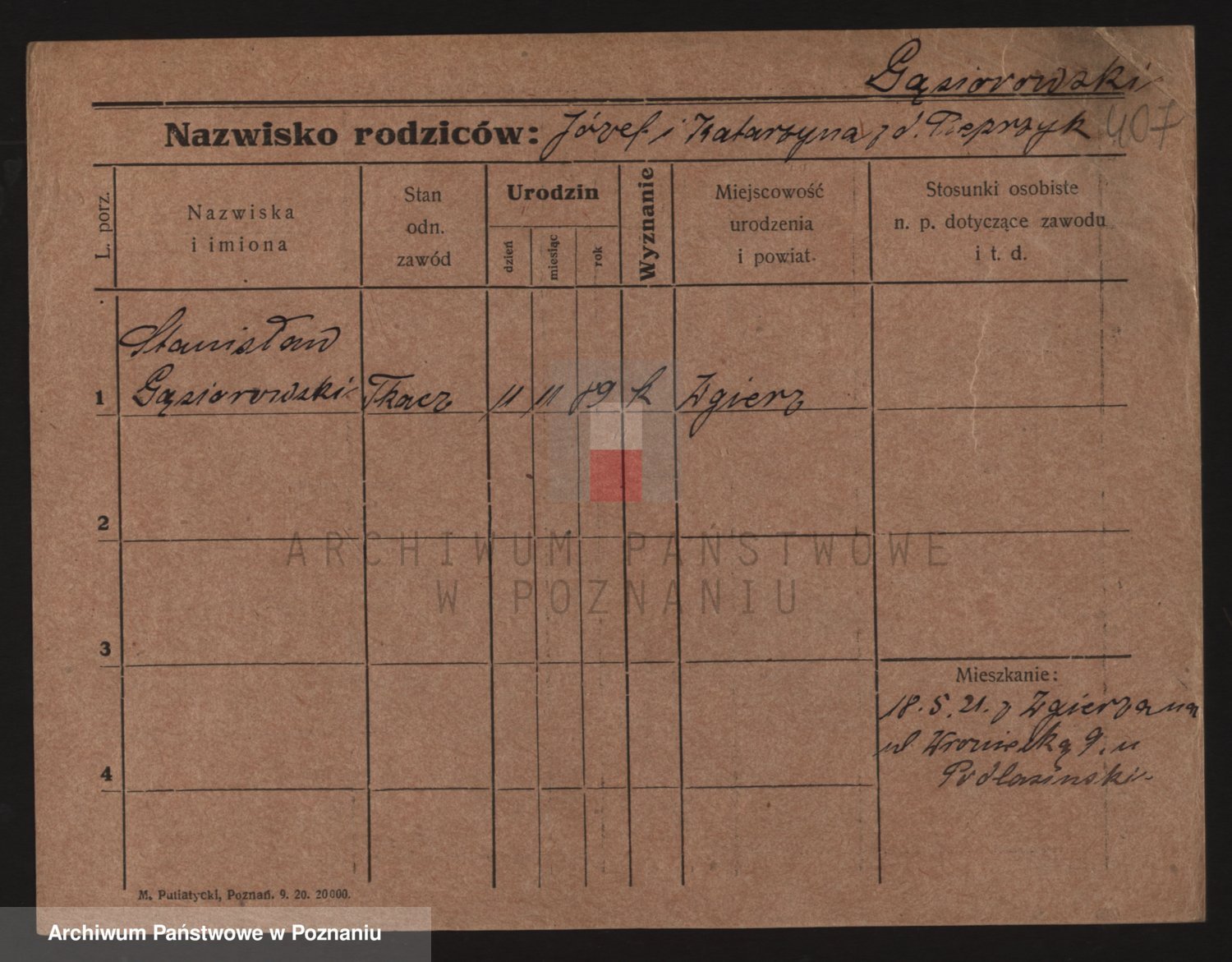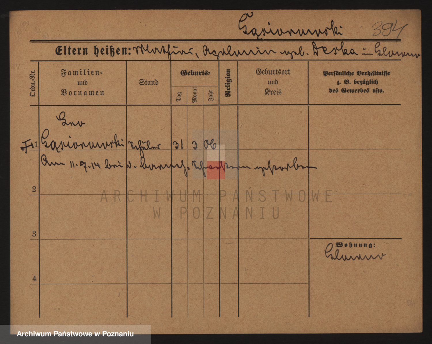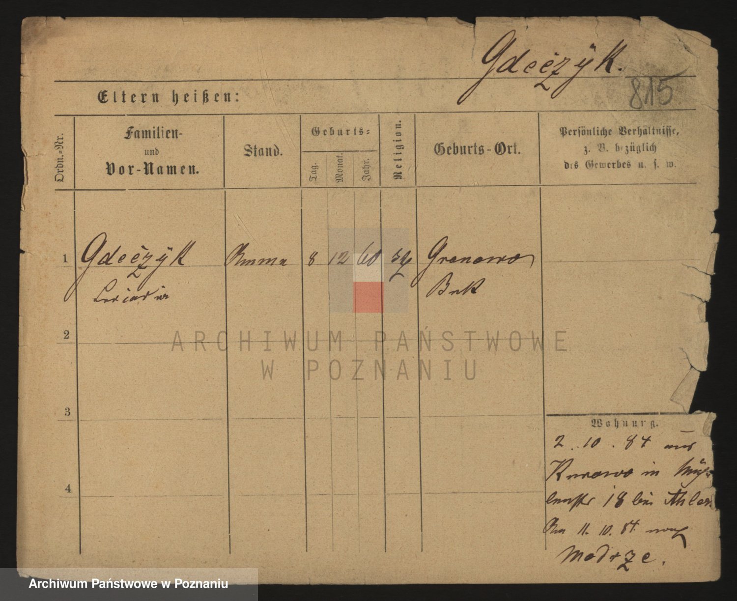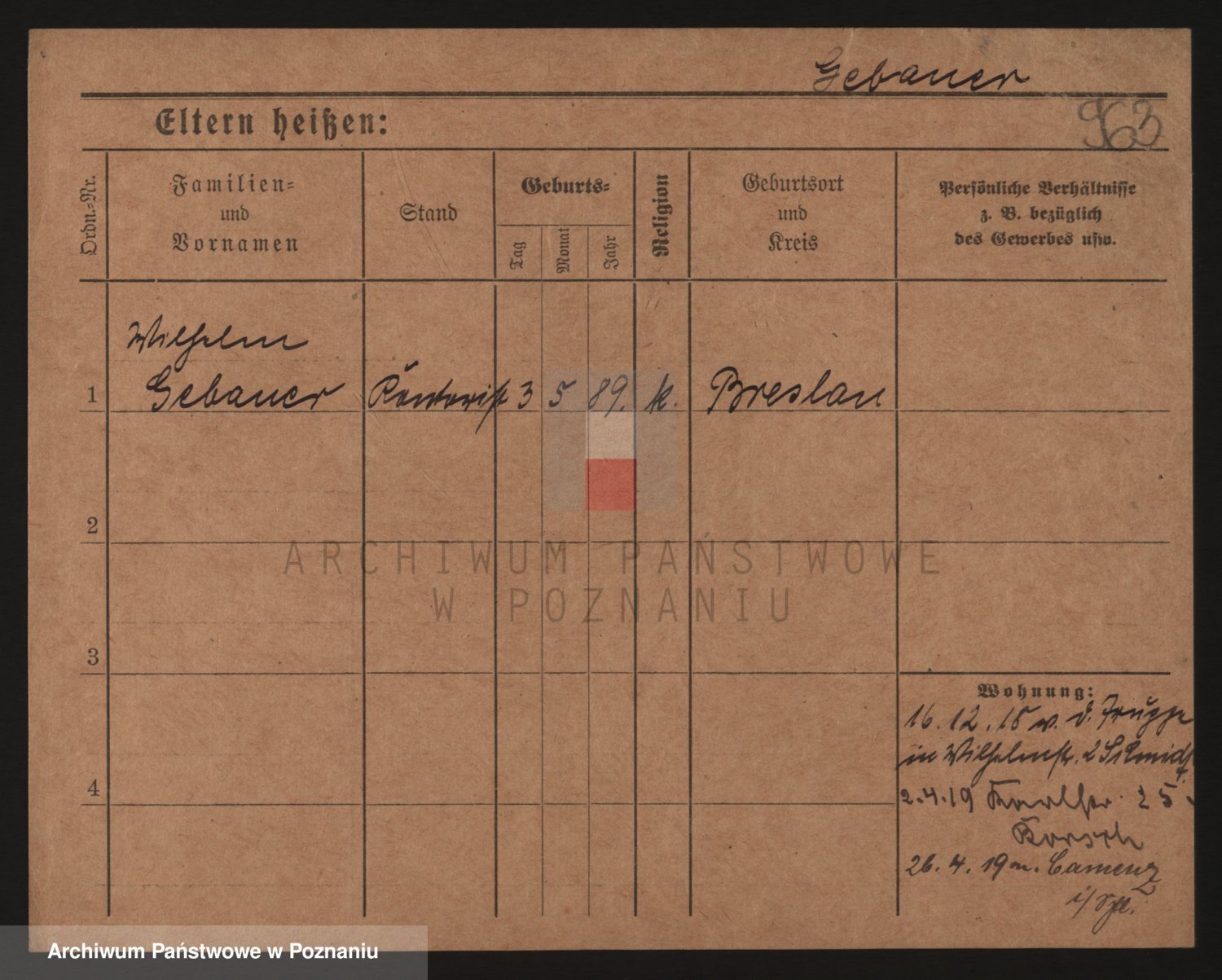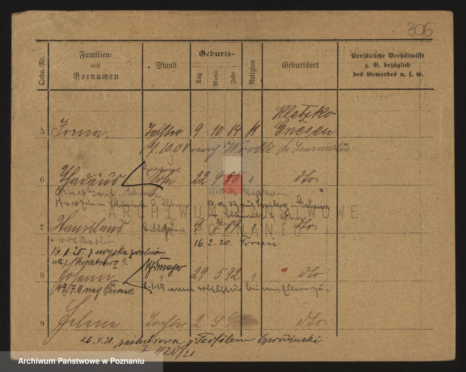 Podgląd karty osobowej dostępny jest po kliknięciu na nazwisko lub ikonkę karty. Można dokonywać powiększenia (ikony na górze) lub przechodzić między kolejnymi skanami (strzałki po bokach).