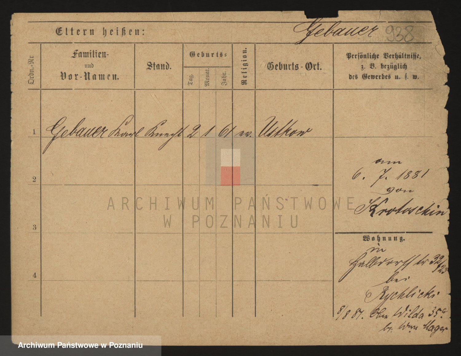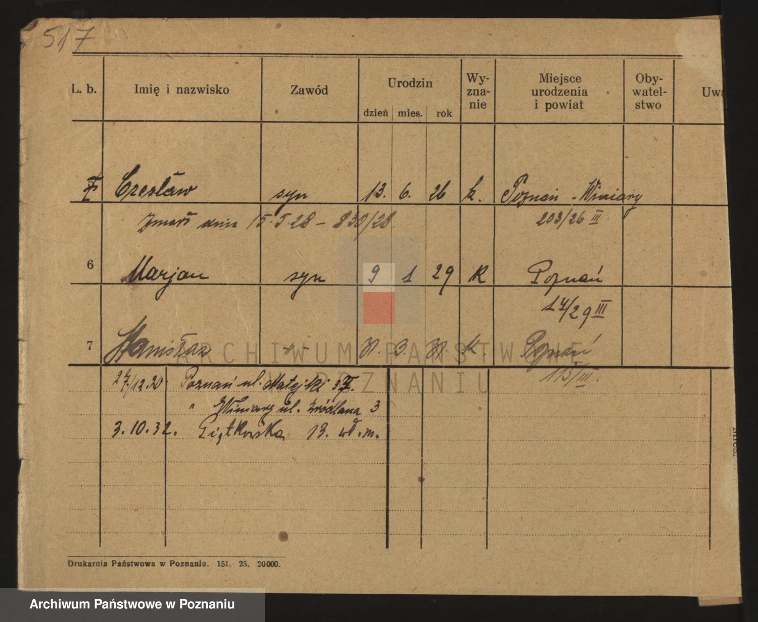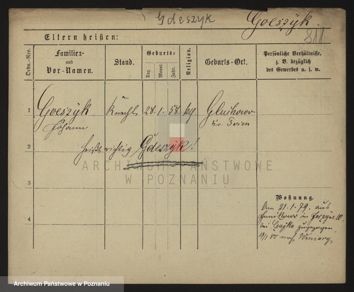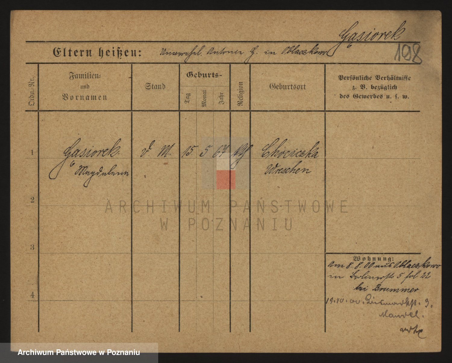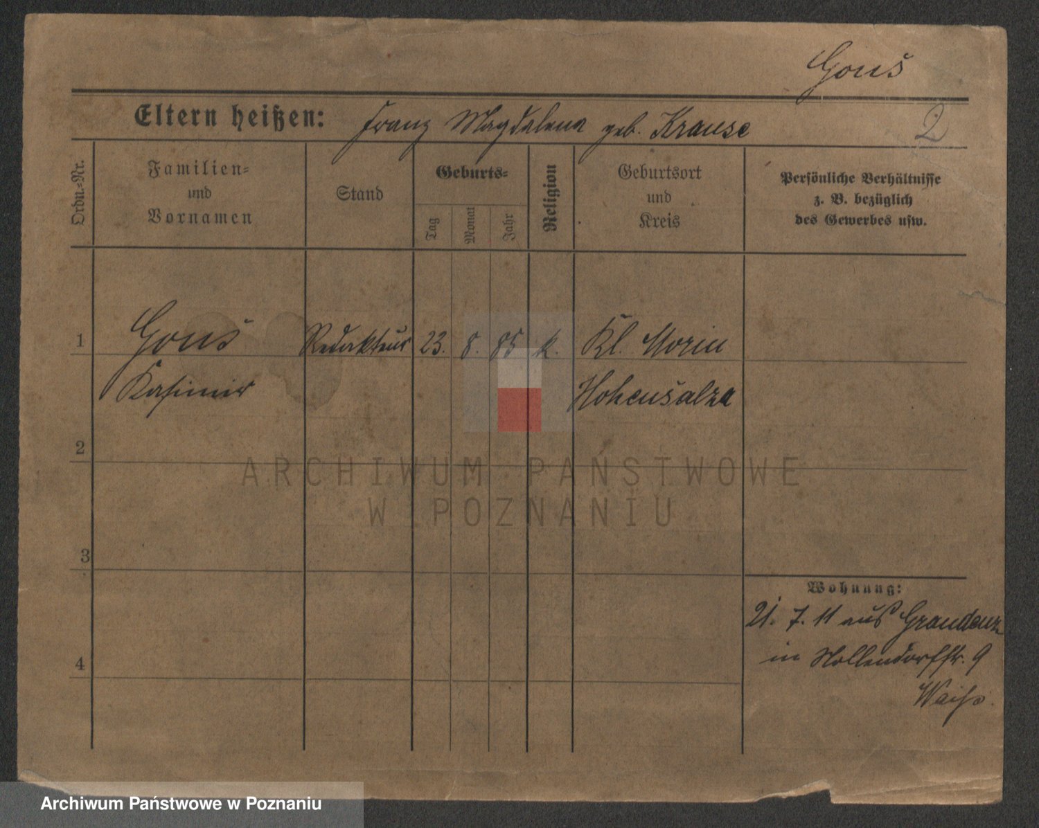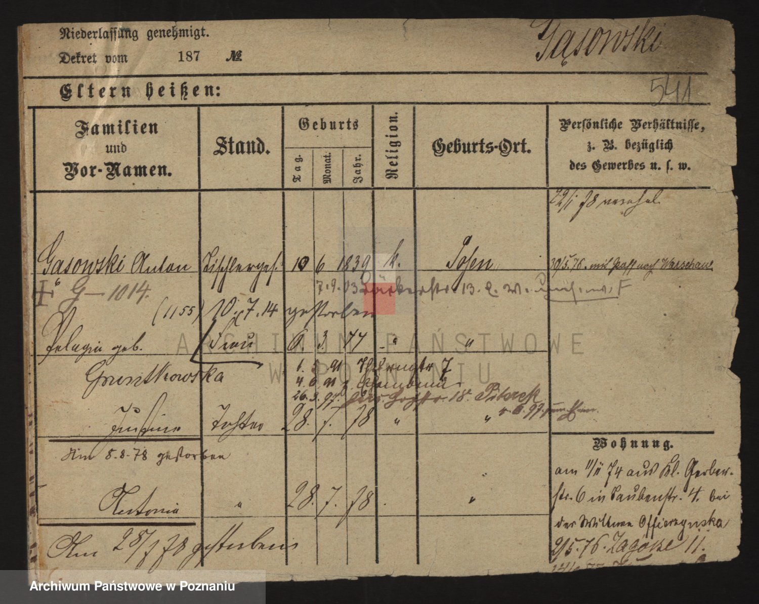 Podgląd karty osobowej dostępny jest po kliknięciu na nazwisko lub ikonkę karty. Można dokonywać powiększenia (ikony na górze) lub przechodzić między kolejnymi skanami (strzałki po bokach).