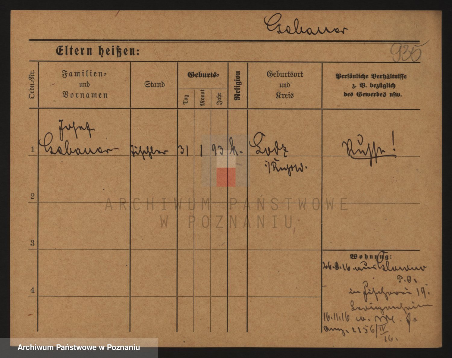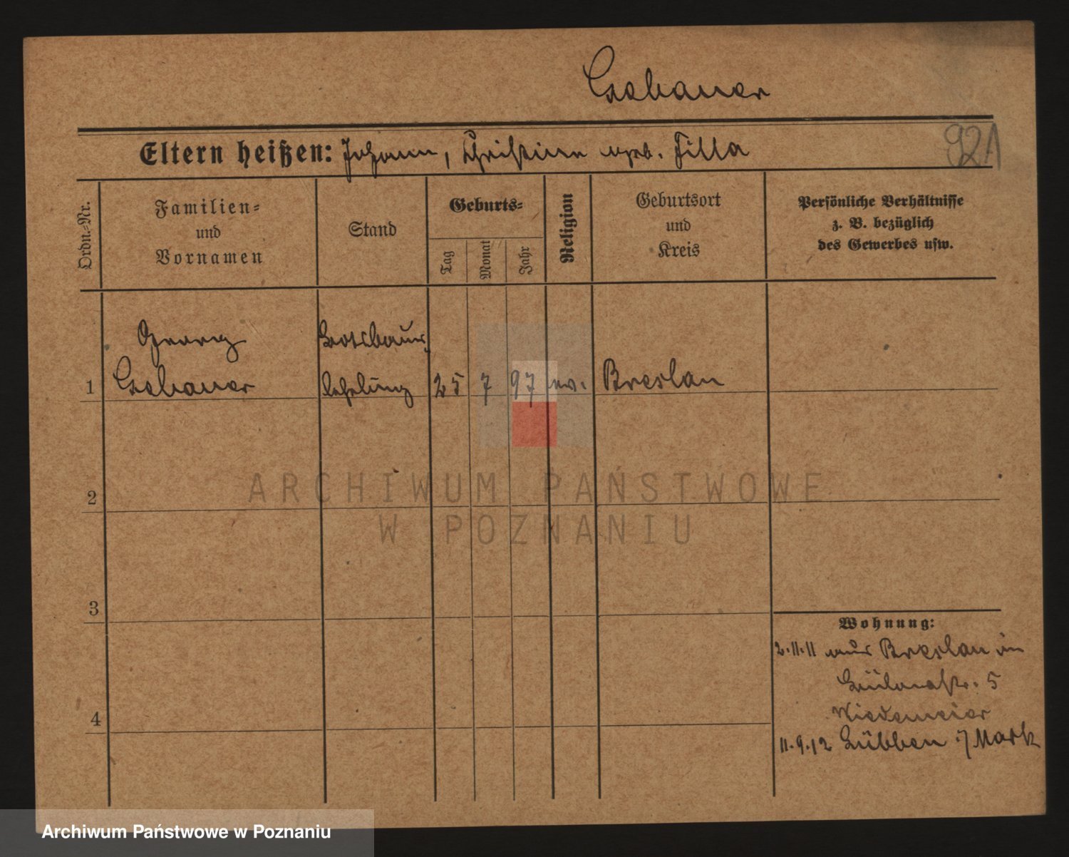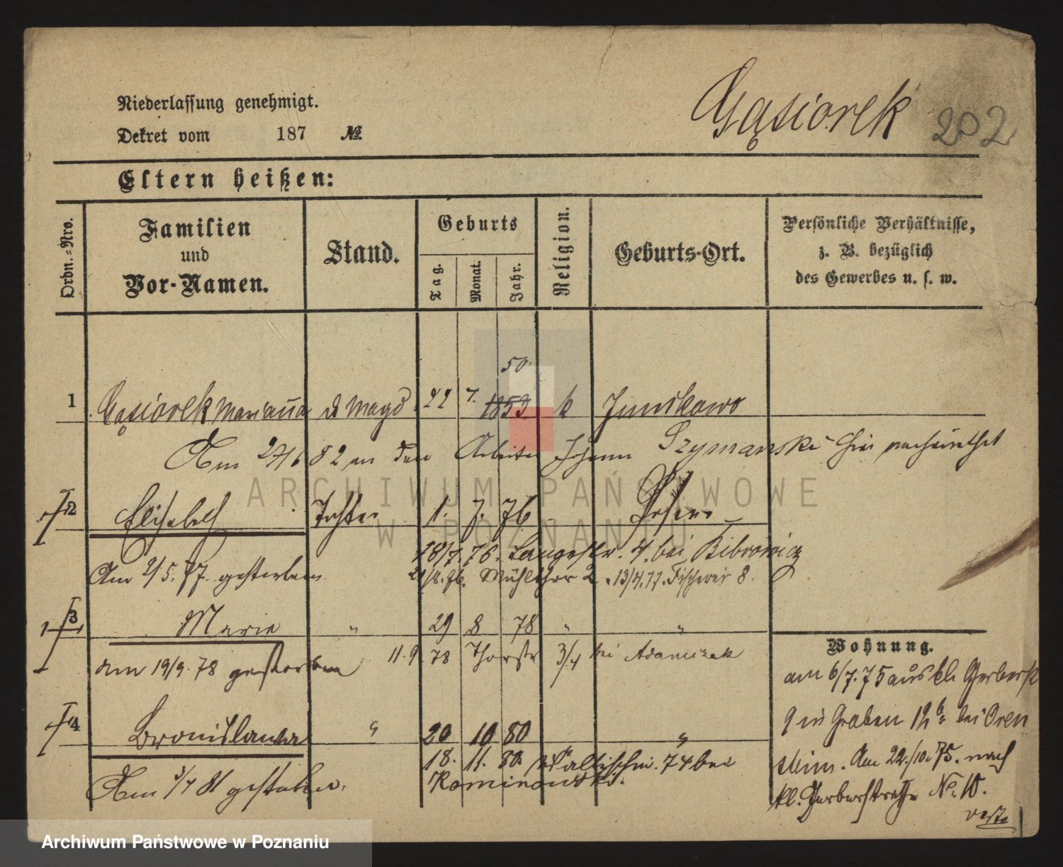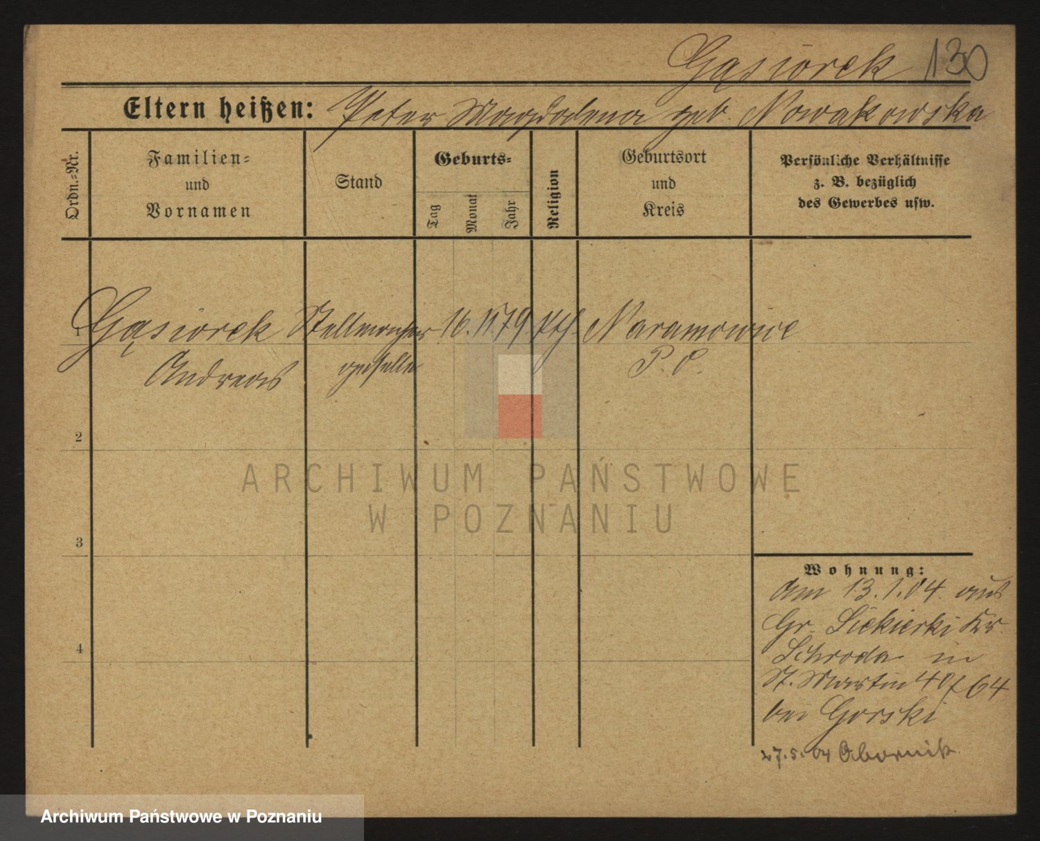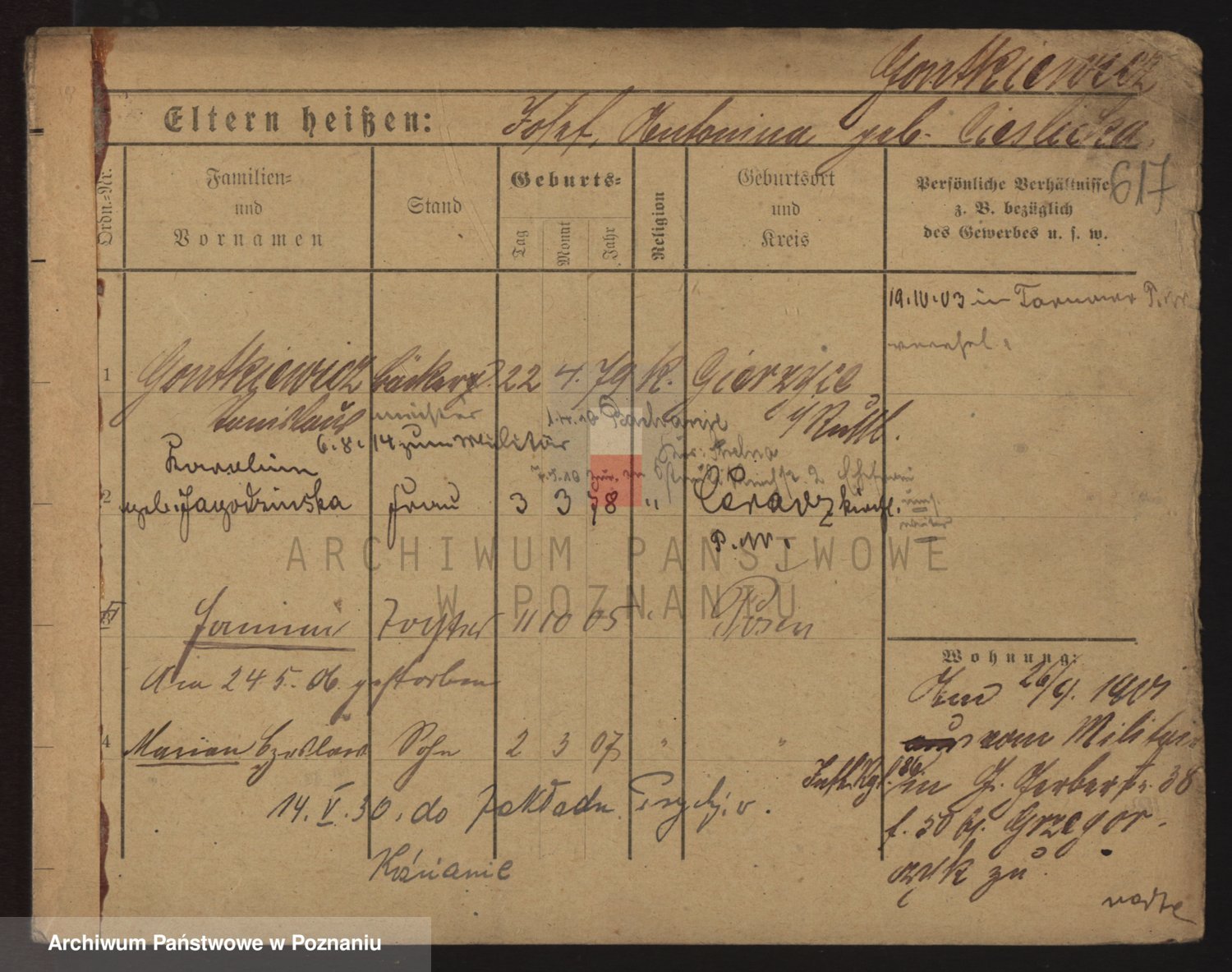 Podgląd karty osobowej dostępny jest po kliknięciu na nazwisko lub ikonkę karty. Można dokonywać powiększenia (ikony na górze) lub przechodzić między kolejnymi skanami (strzałki po bokach).