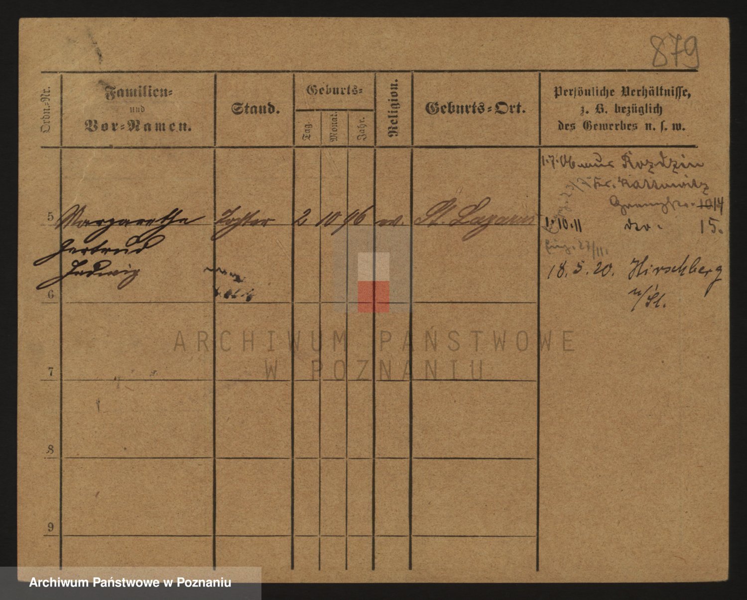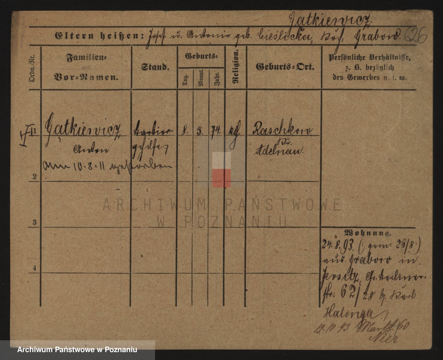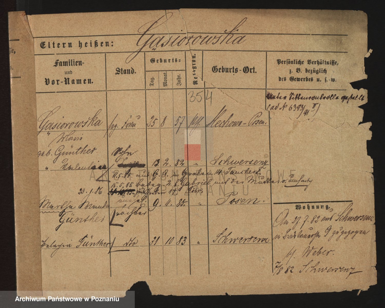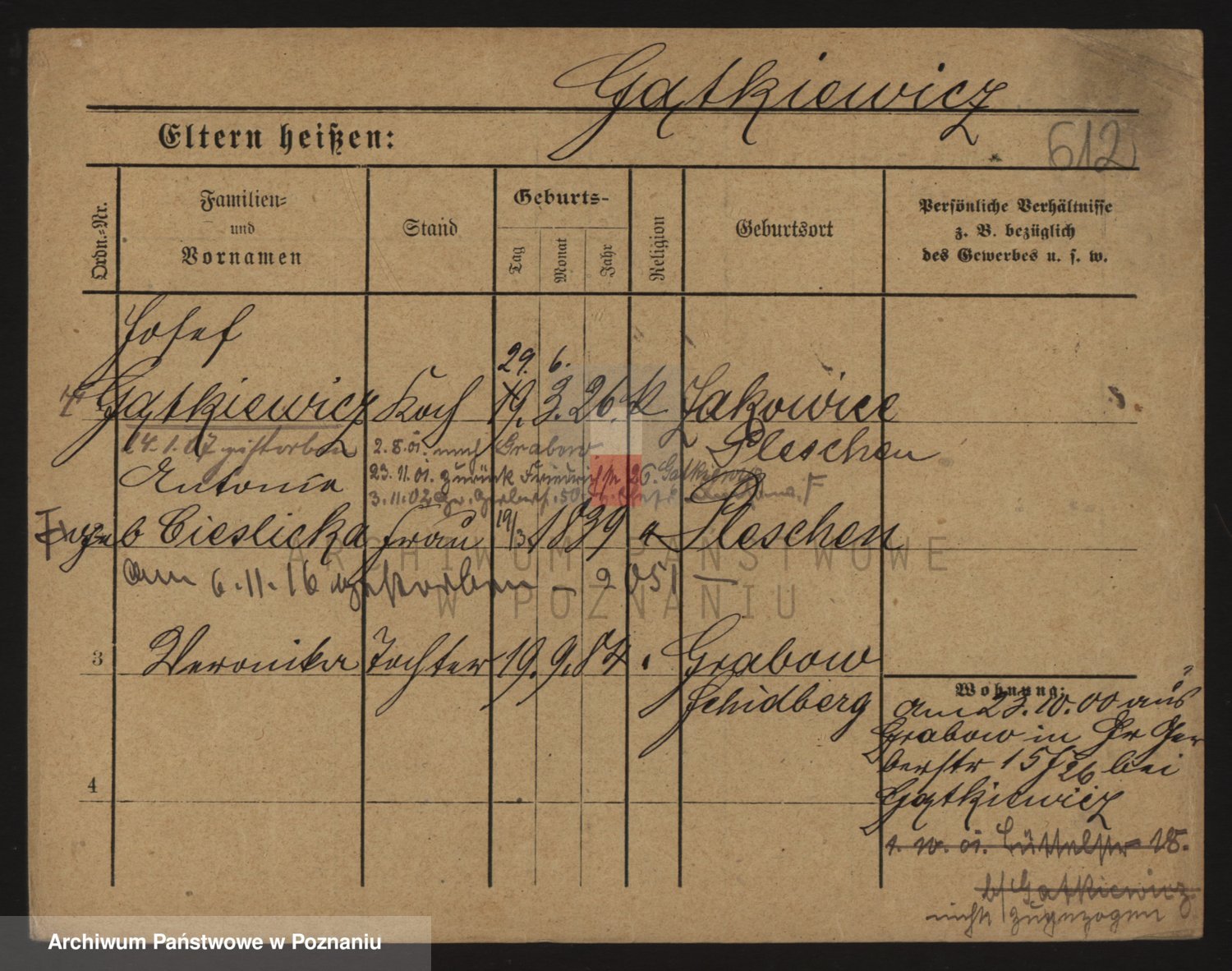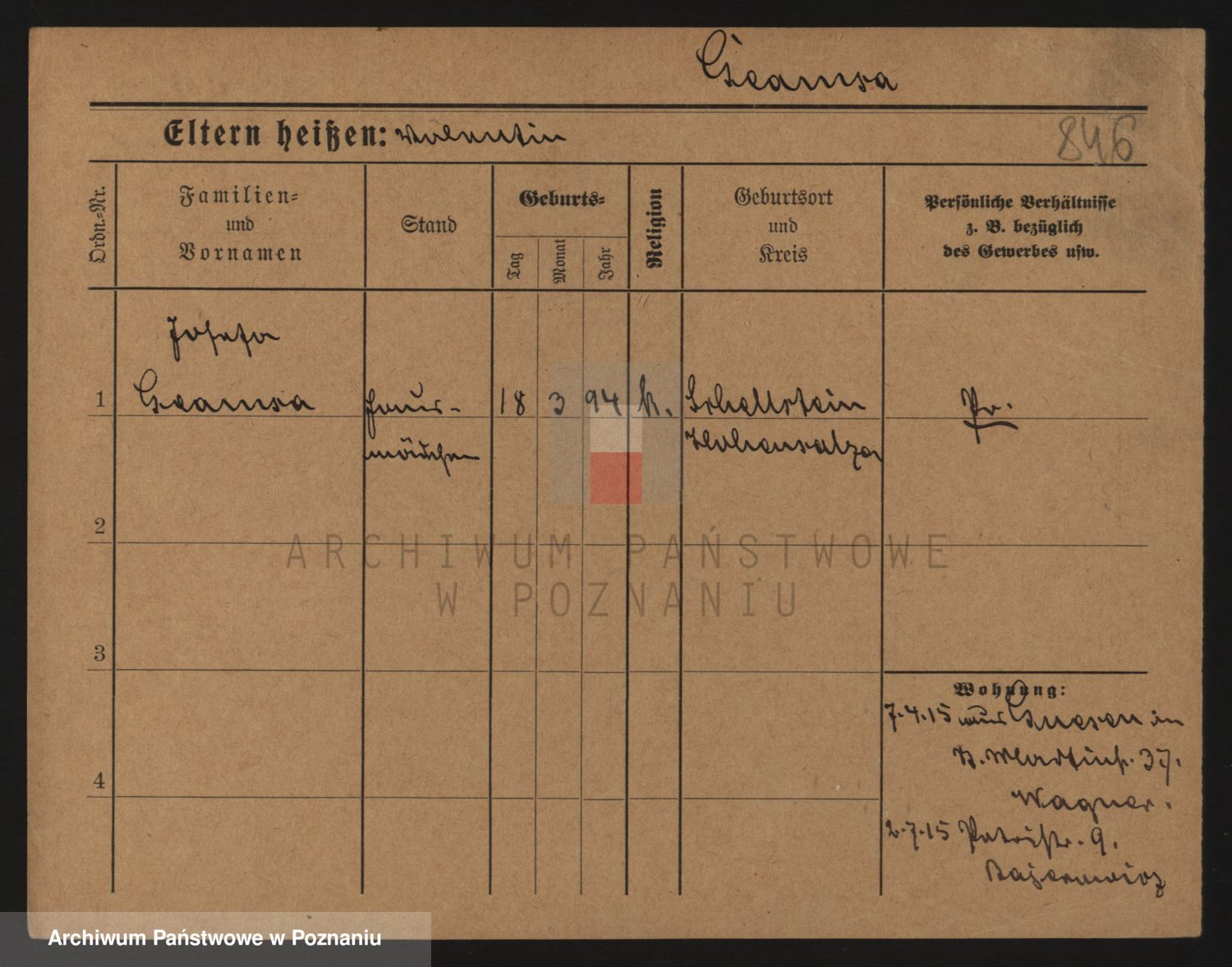 Podgląd karty osobowej dostępny jest po kliknięciu na nazwisko lub ikonkę karty. Można dokonywać powiększenia (ikony na górze) lub przechodzić między kolejnymi skanami (strzałki po bokach).