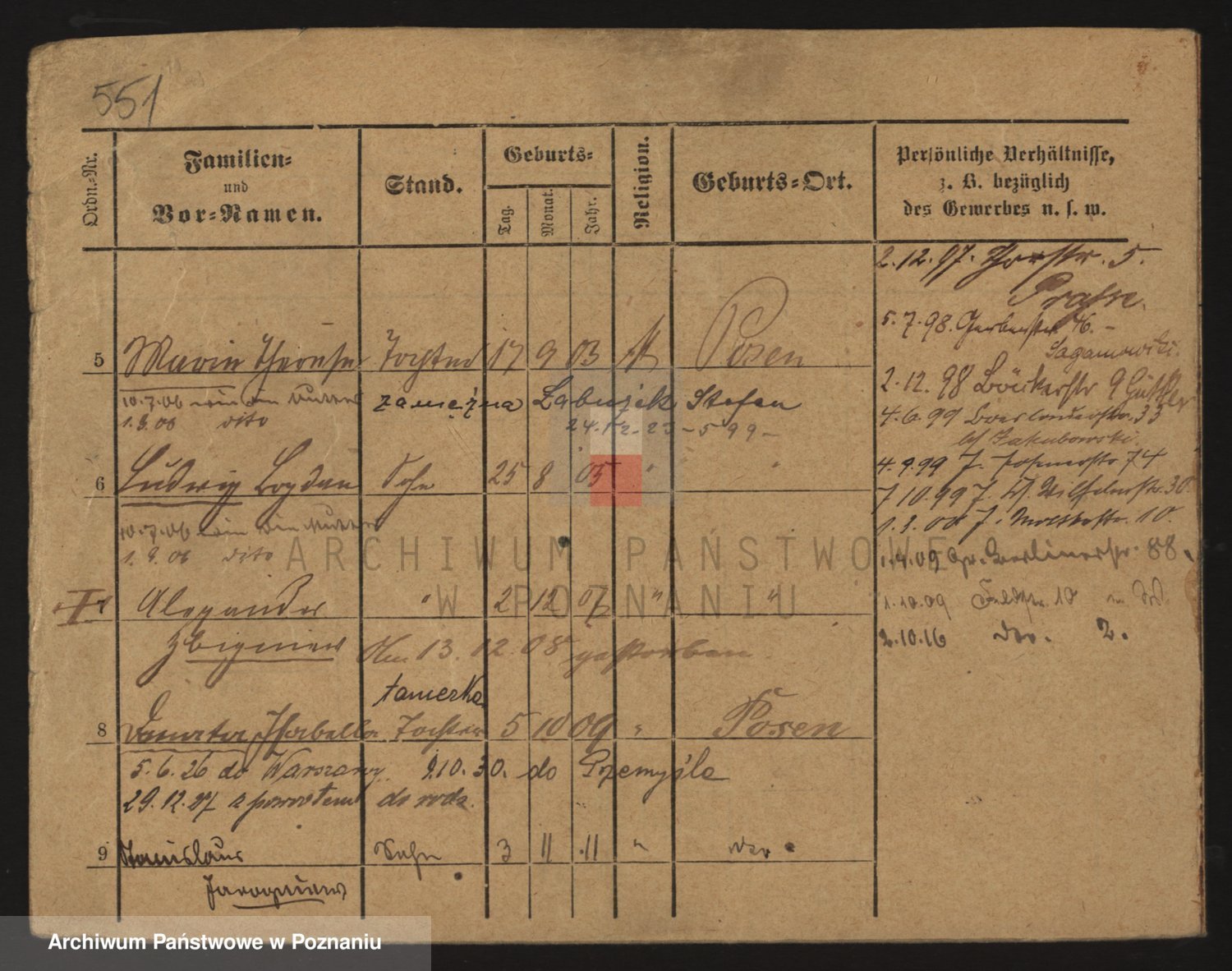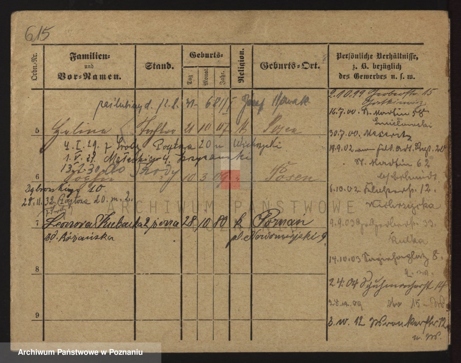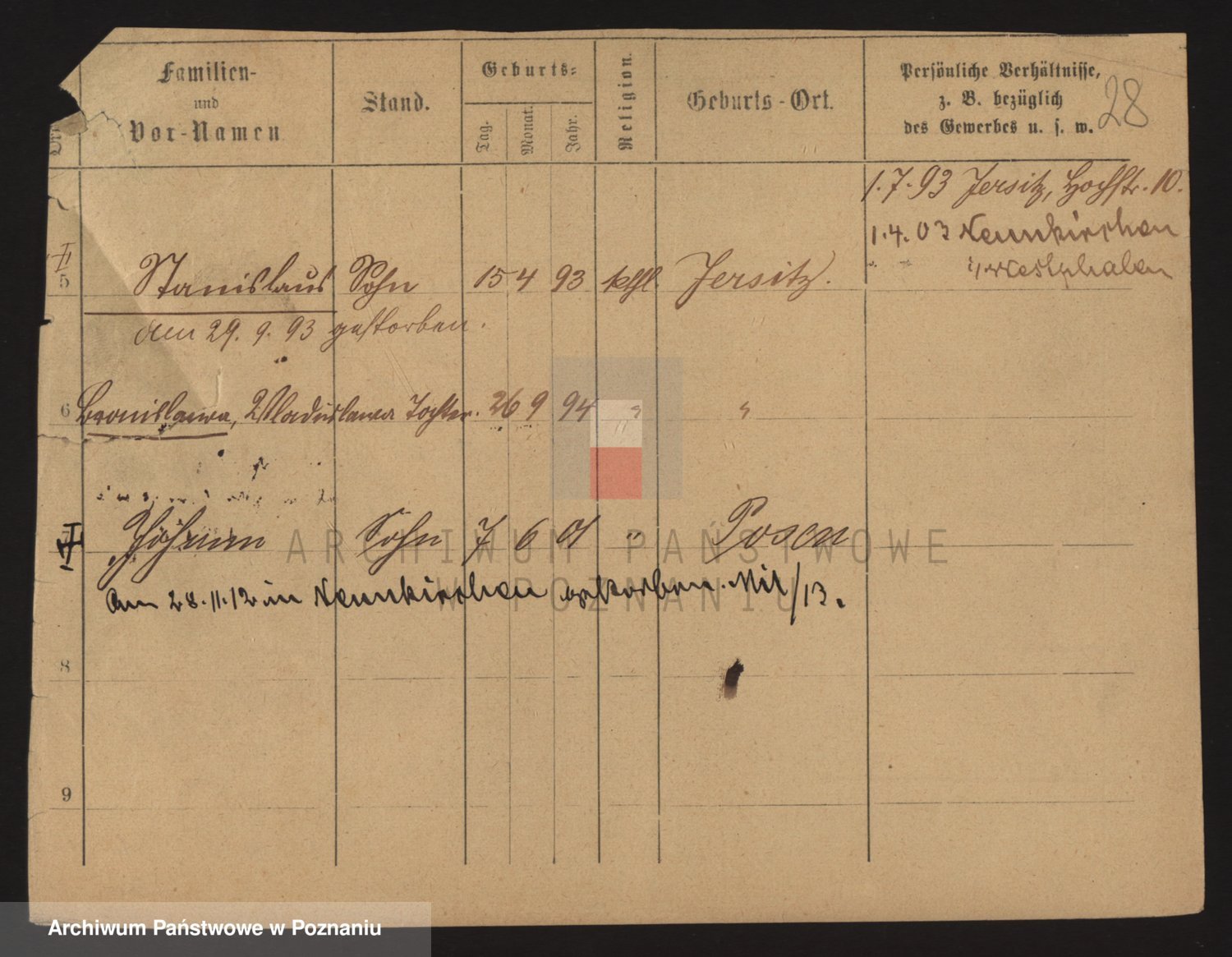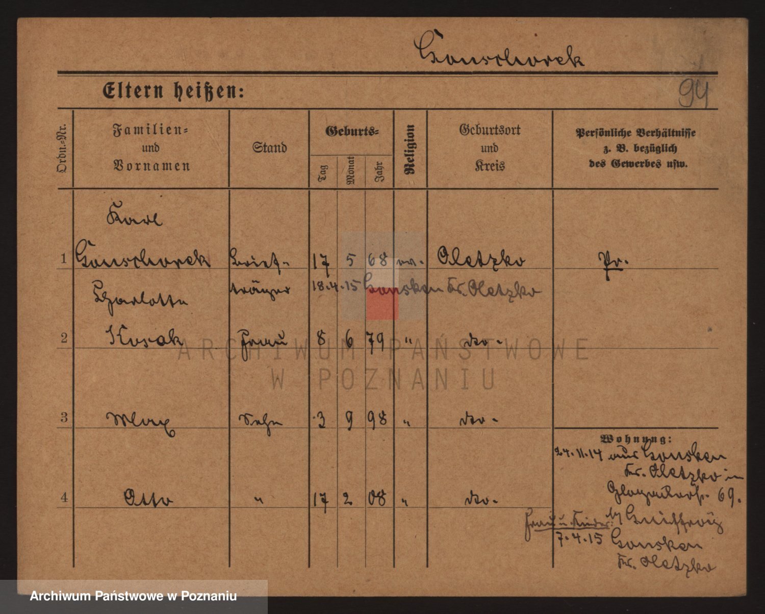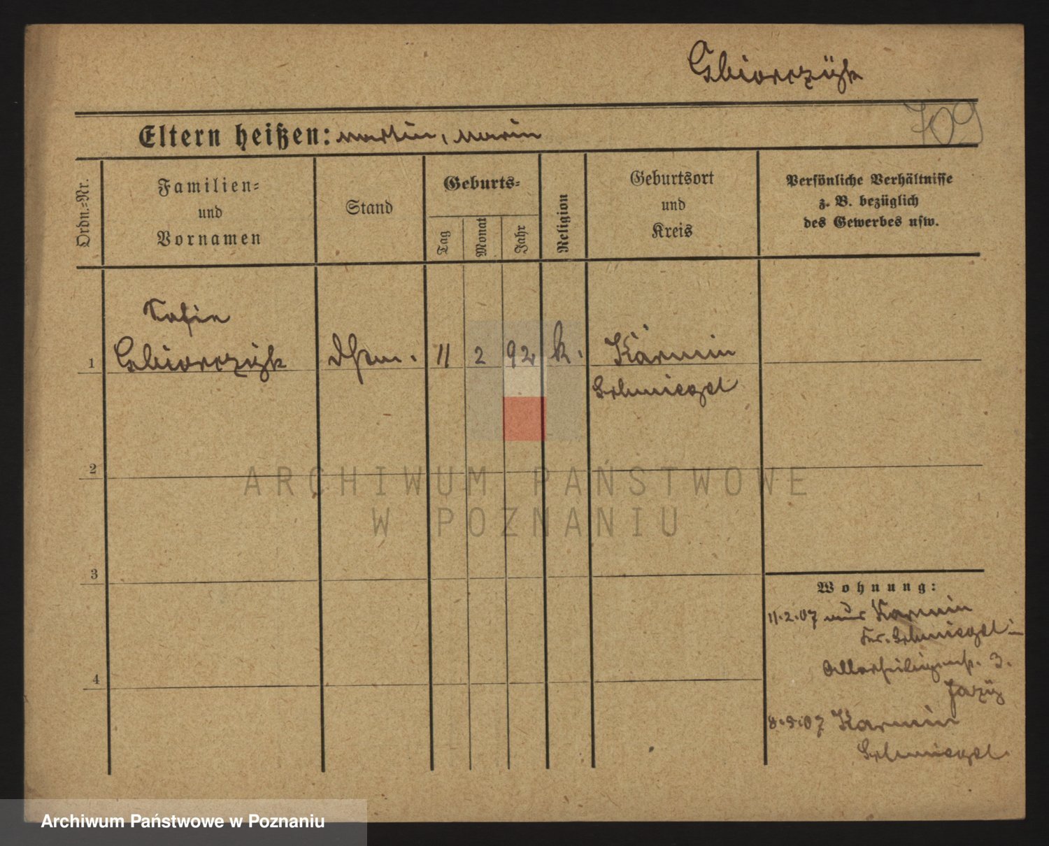 Podgląd karty osobowej dostępny jest po kliknięciu na nazwisko lub ikonkę karty. Można dokonywać powiększenia (ikony na górze) lub przechodzić między kolejnymi skanami (strzałki po bokach).