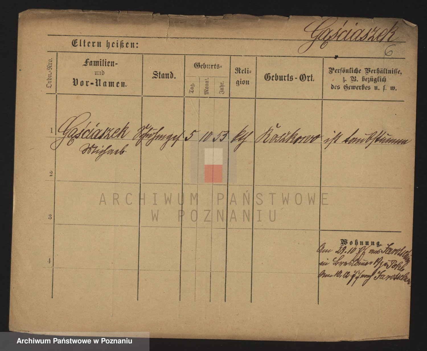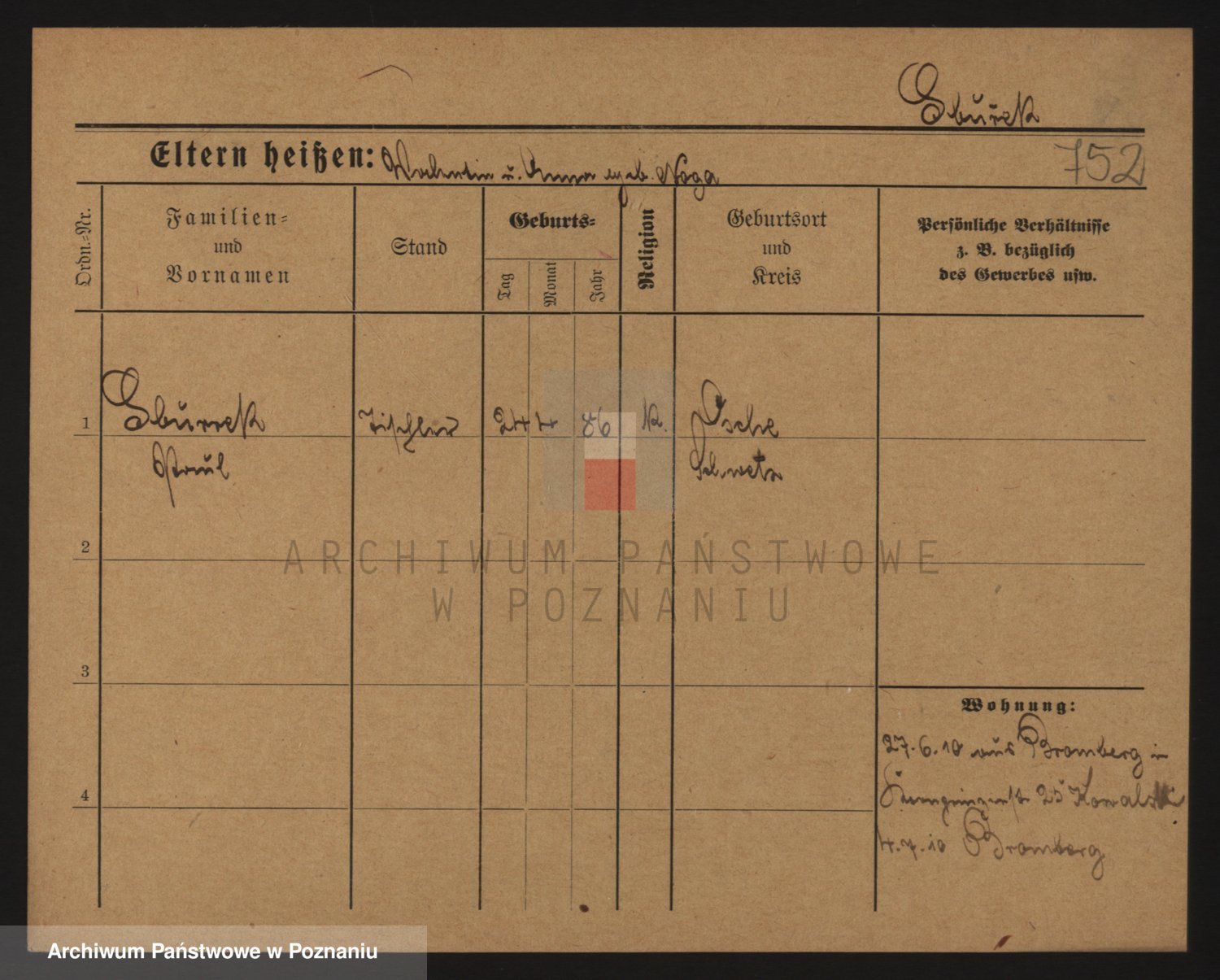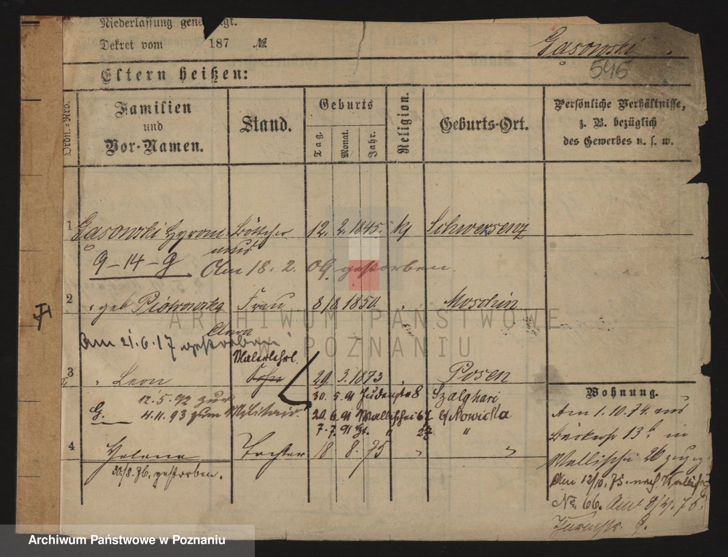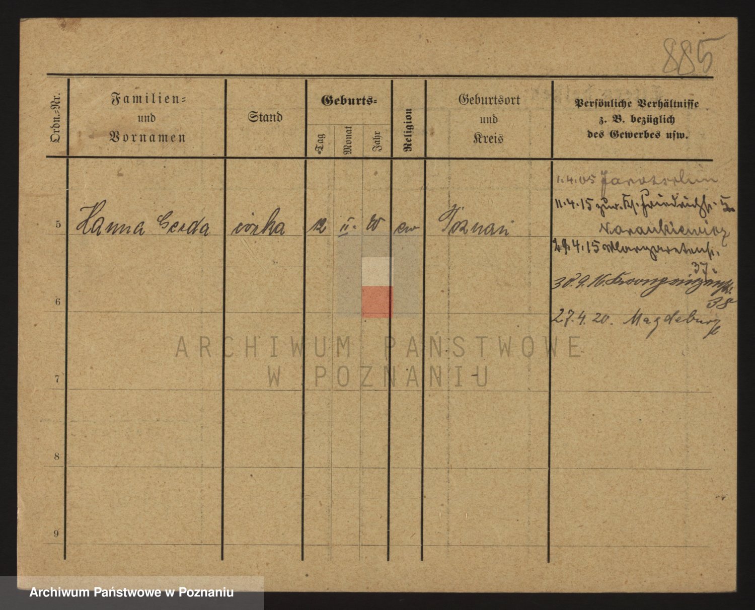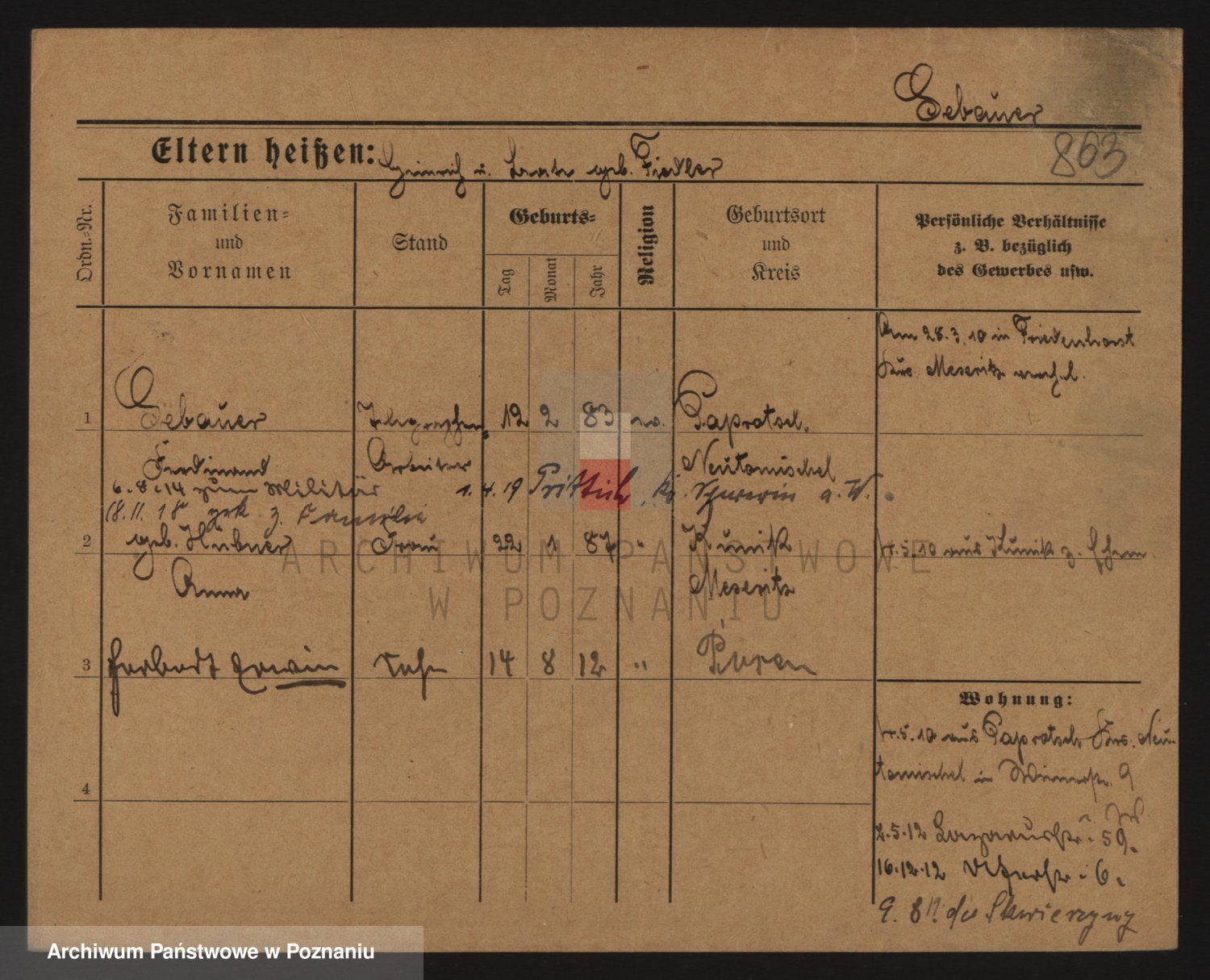 Podgląd karty osobowej dostępny jest po kliknięciu na nazwisko lub ikonkę karty. Można dokonywać powiększenia (ikony na górze) lub przechodzić między kolejnymi skanami (strzałki po bokach).