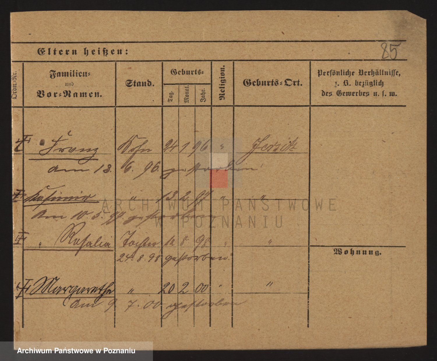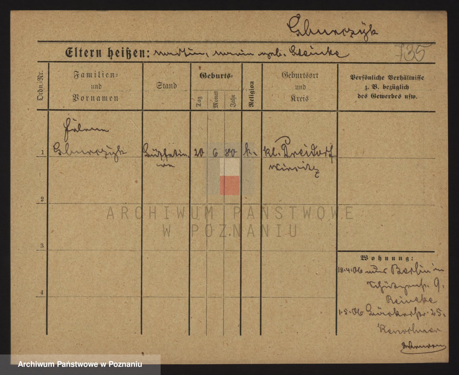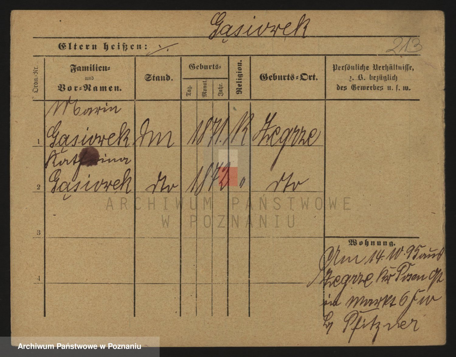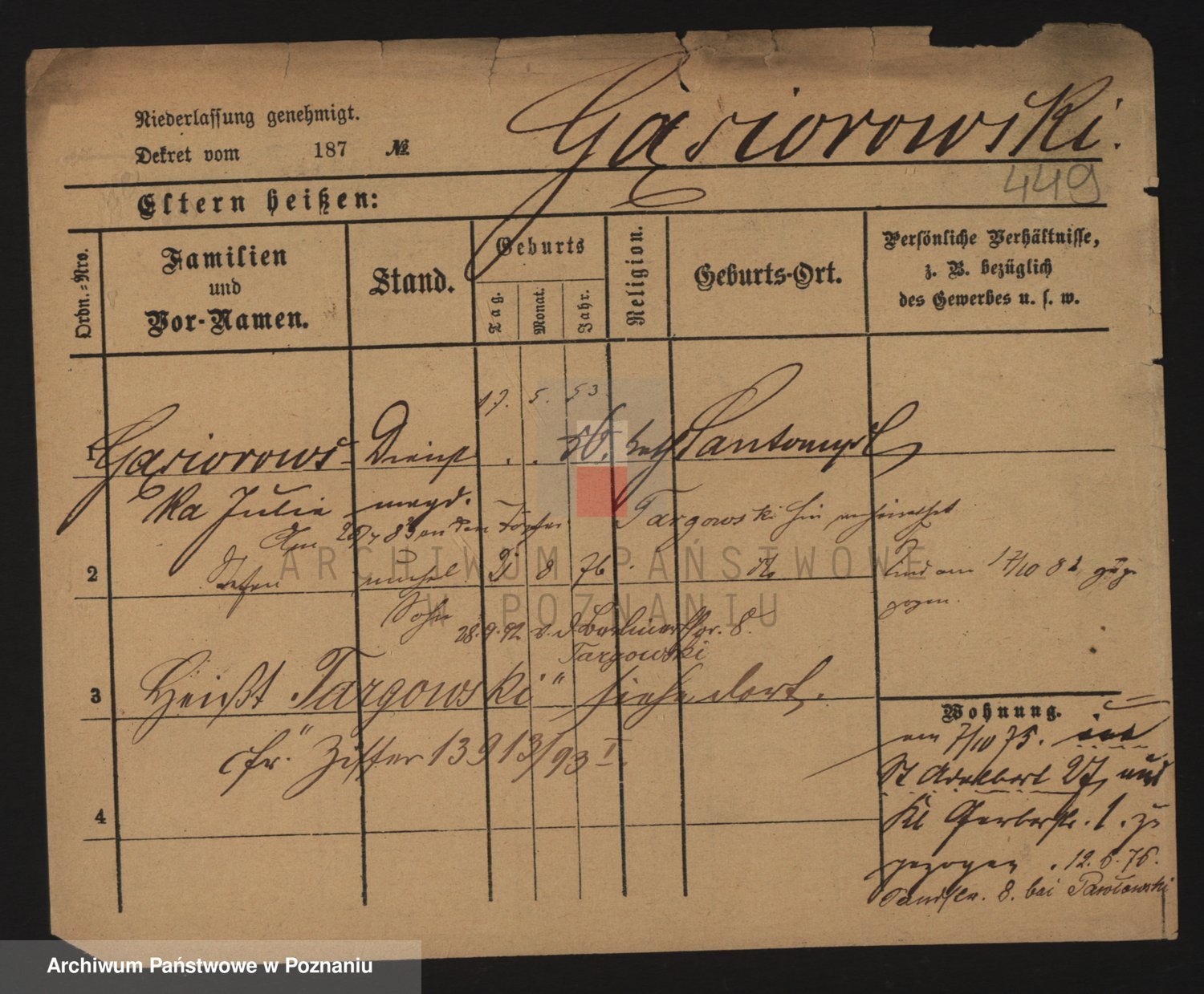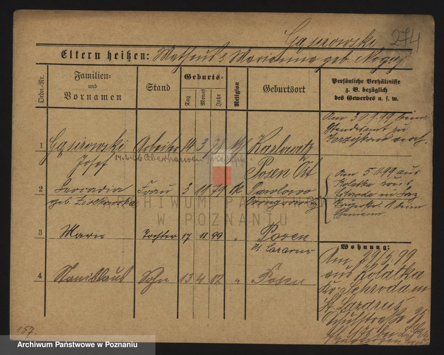 Podgląd karty osobowej dostępny jest po kliknięciu na nazwisko lub ikonkę karty. Można dokonywać powiększenia (ikony na górze) lub przechodzić między kolejnymi skanami (strzałki po bokach).