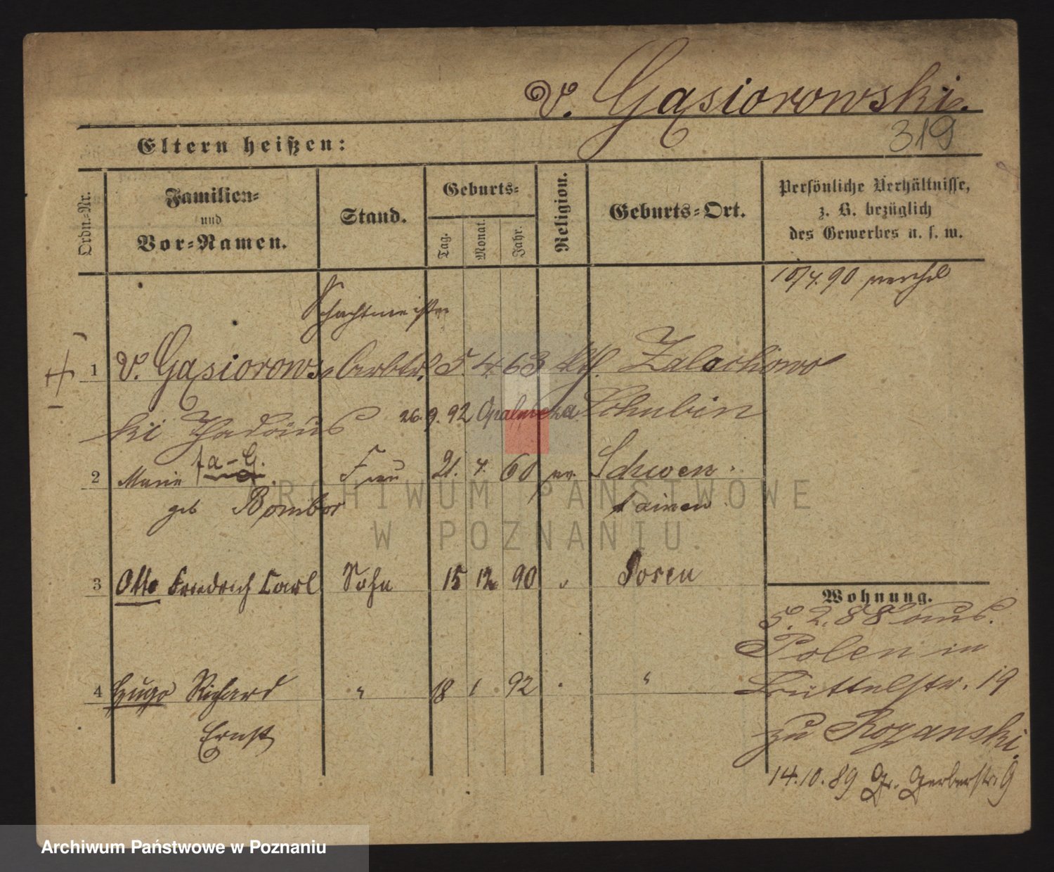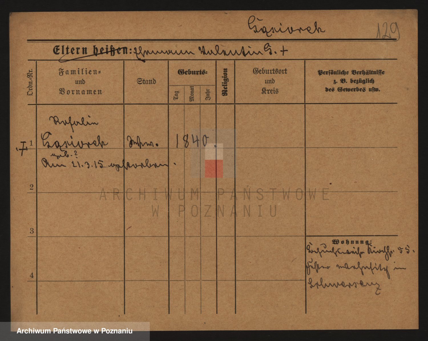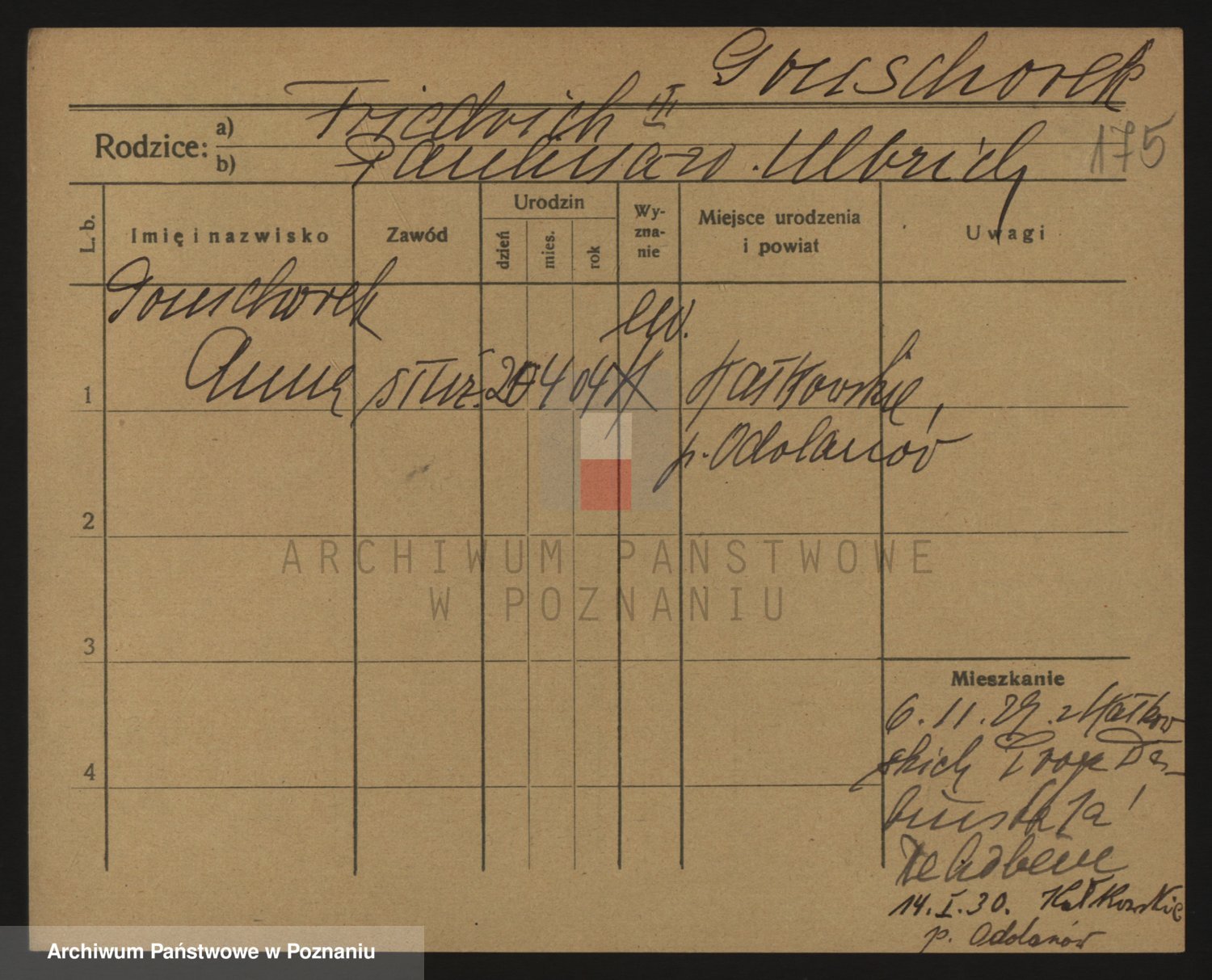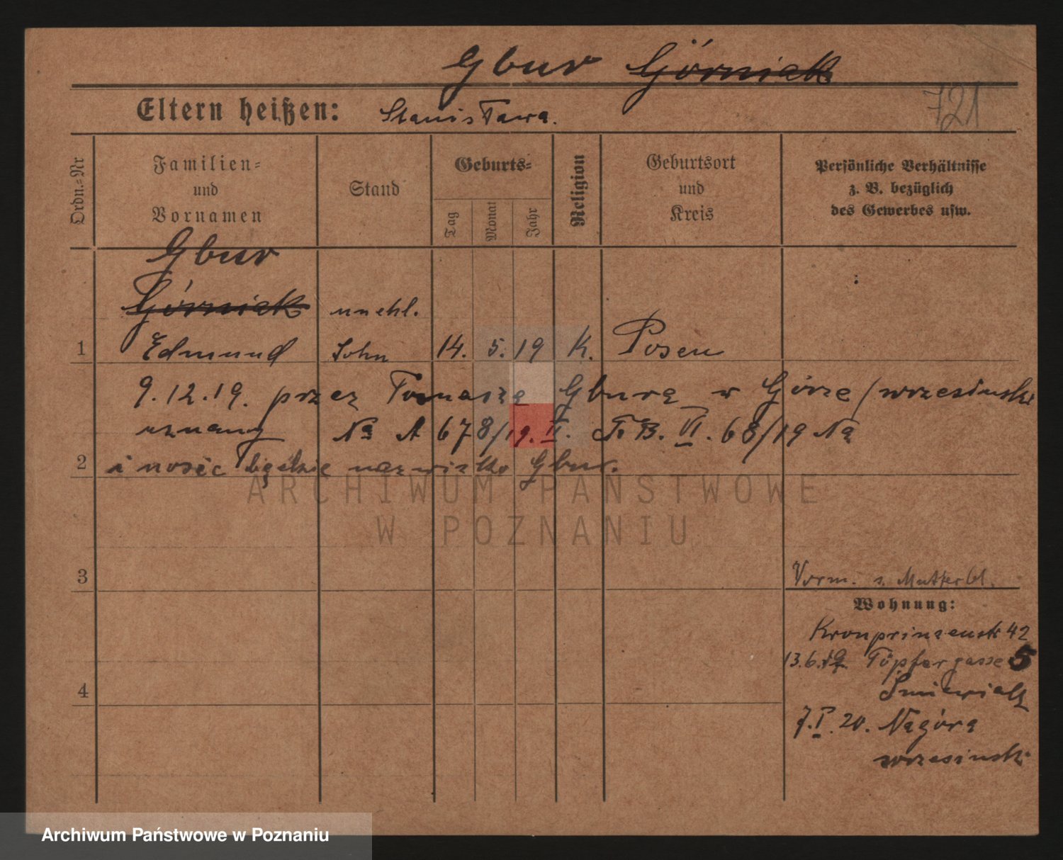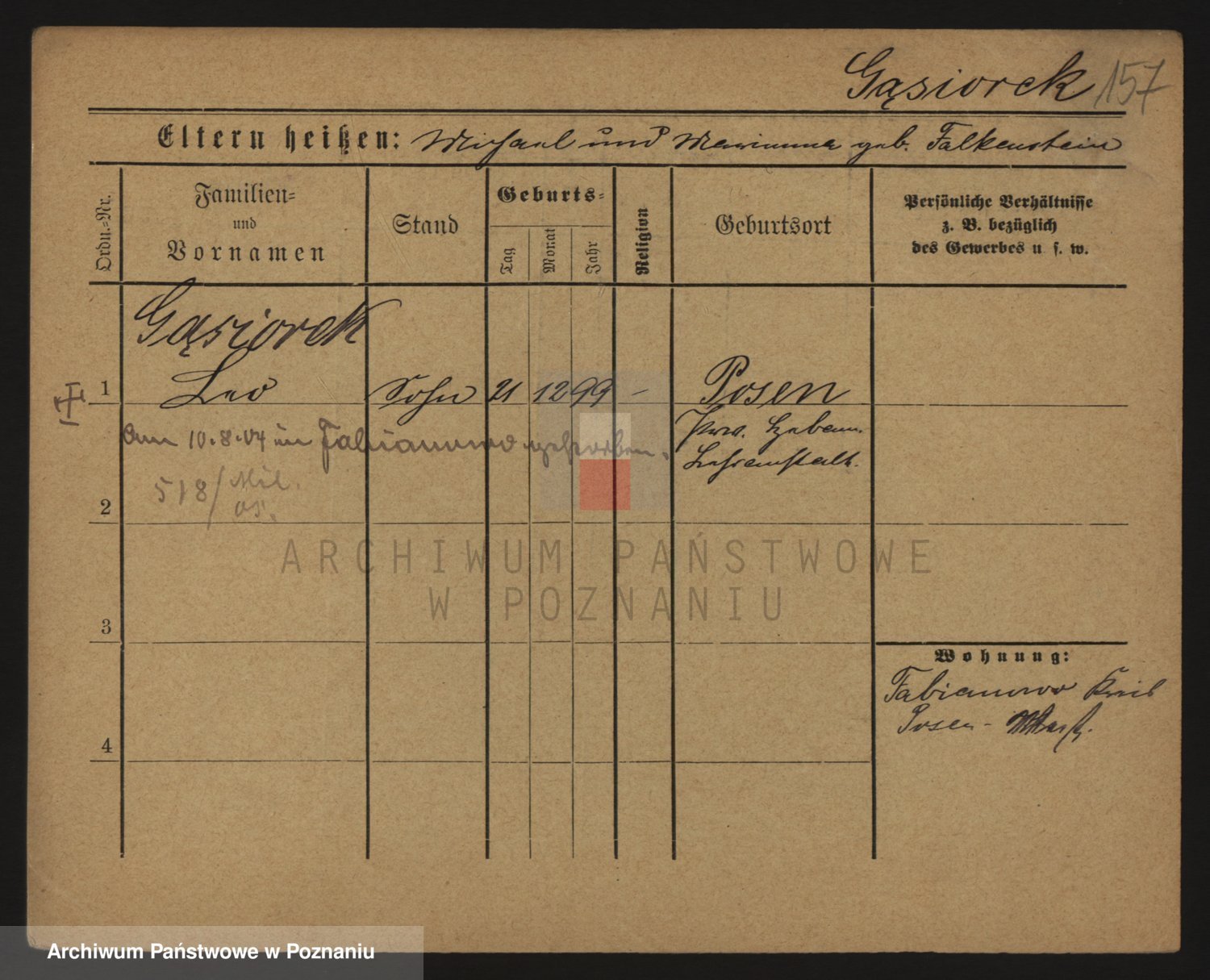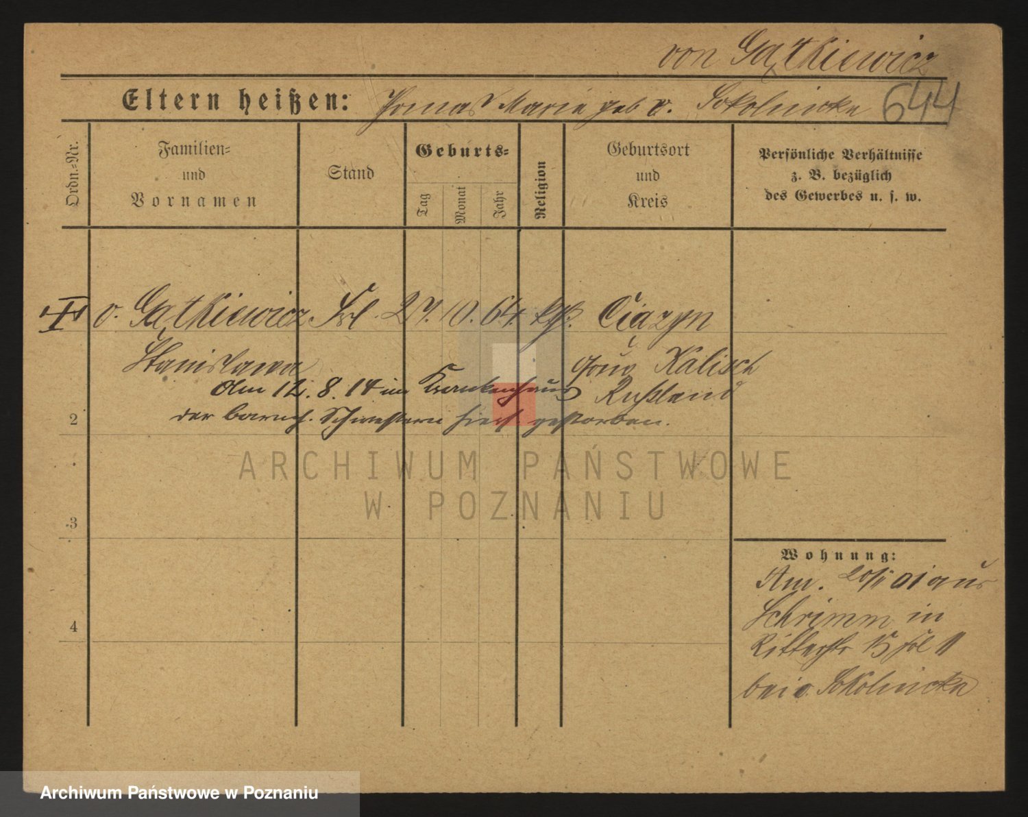 Podgląd karty osobowej dostępny jest po kliknięciu na nazwisko lub ikonkę karty. Można dokonywać powiększenia (ikony na górze) lub przechodzić między kolejnymi skanami (strzałki po bokach).