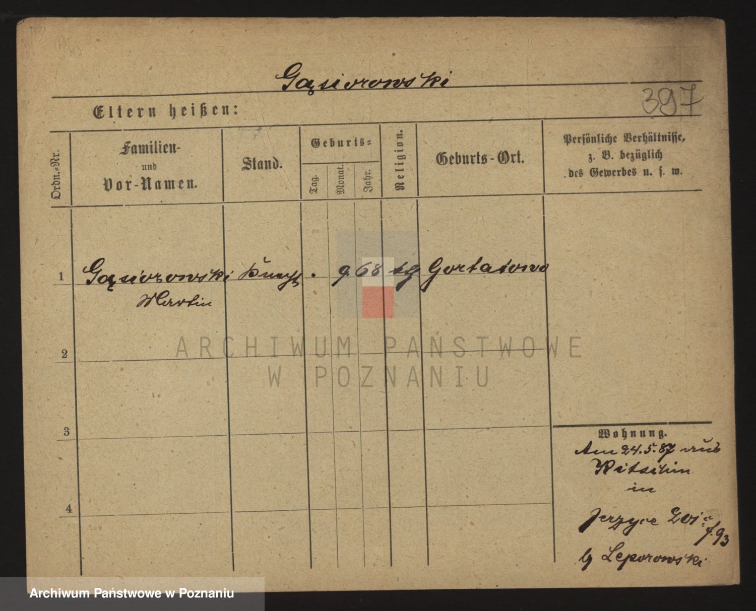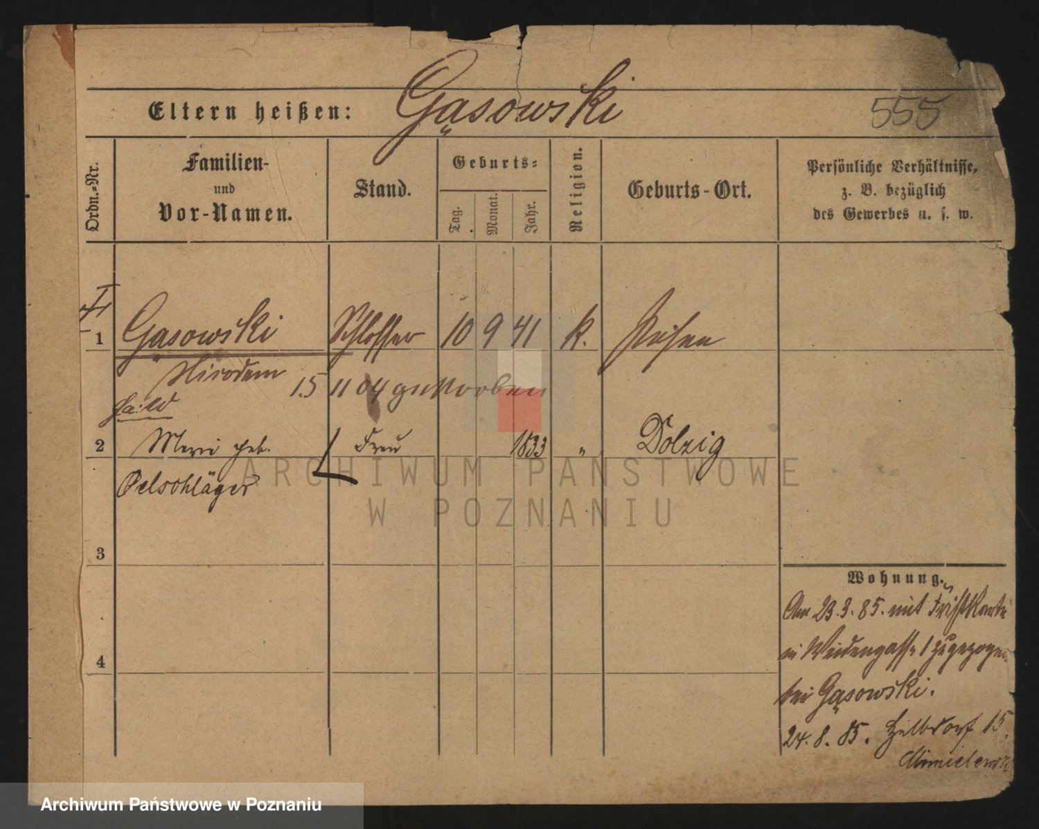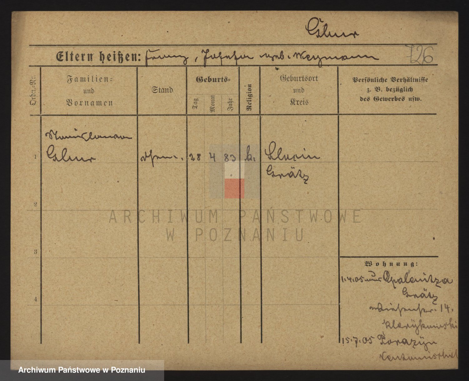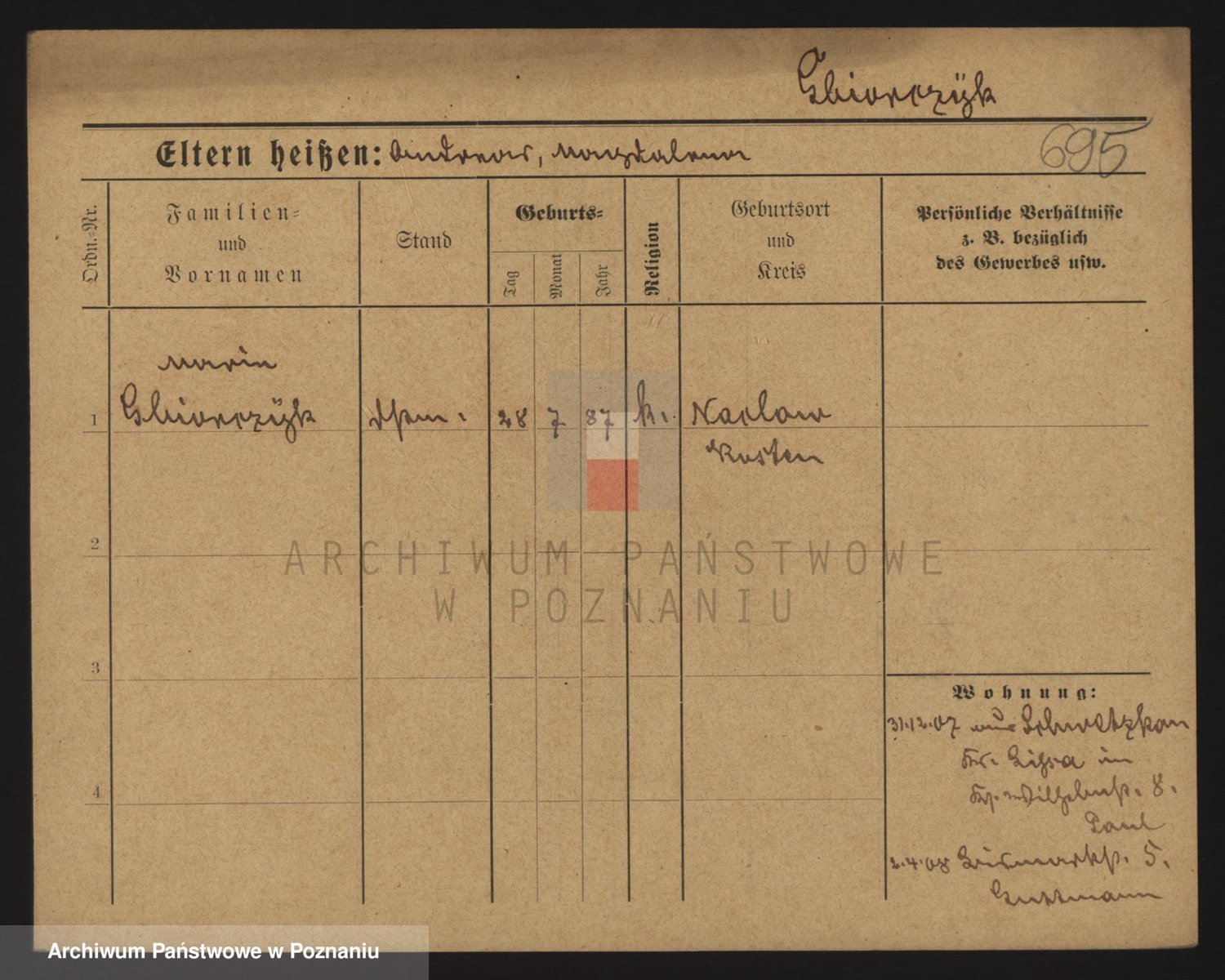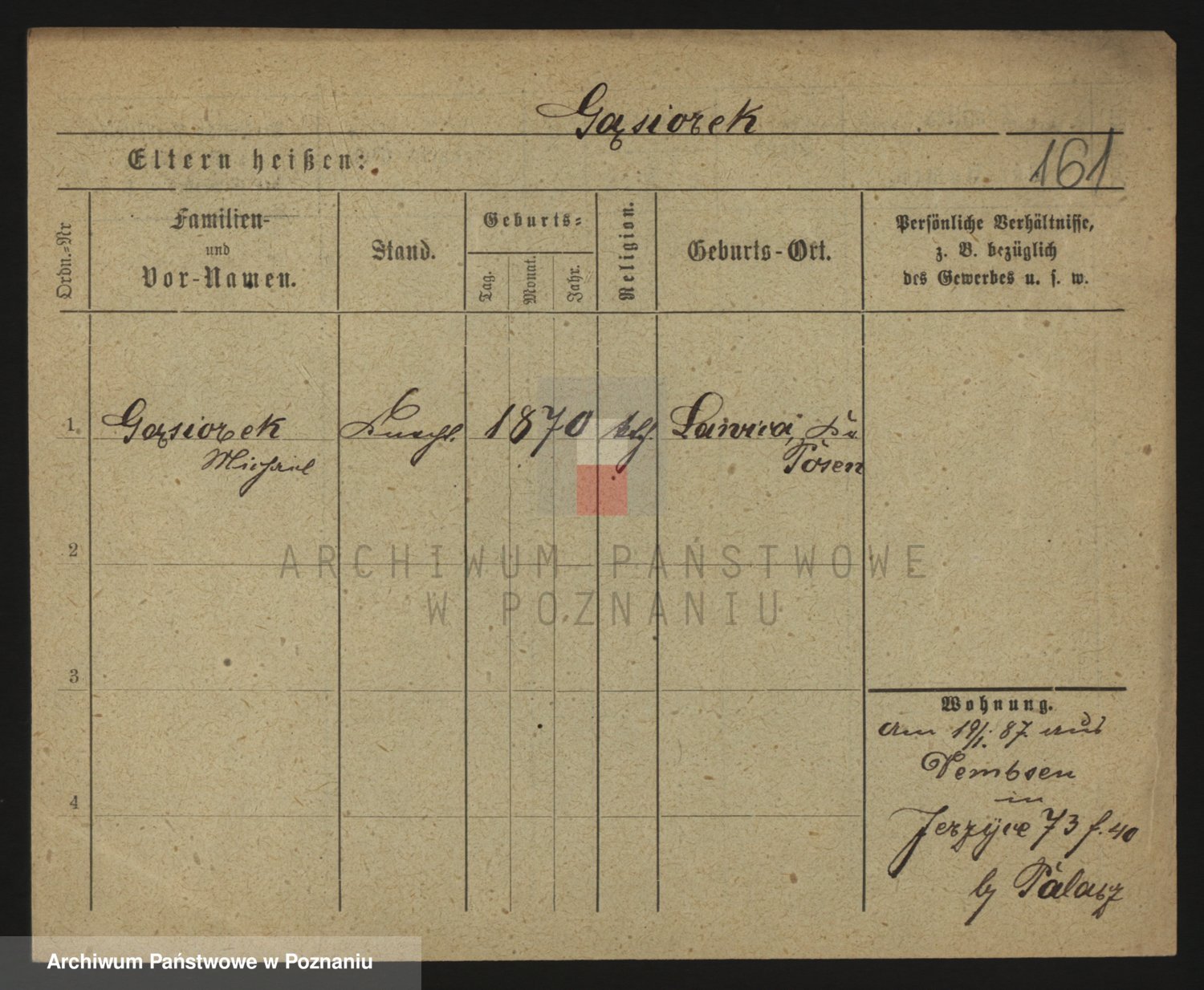 Podgląd karty osobowej dostępny jest po kliknięciu na nazwisko lub ikonkę karty. Można dokonywać powiększenia (ikony na górze) lub przechodzić między kolejnymi skanami (strzałki po bokach).
