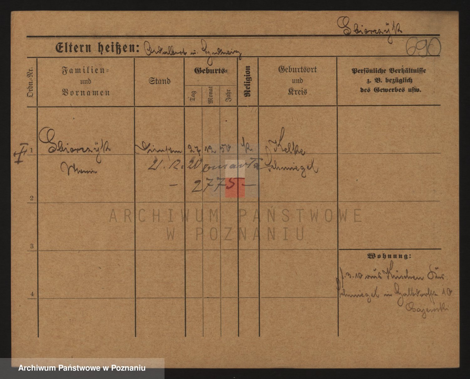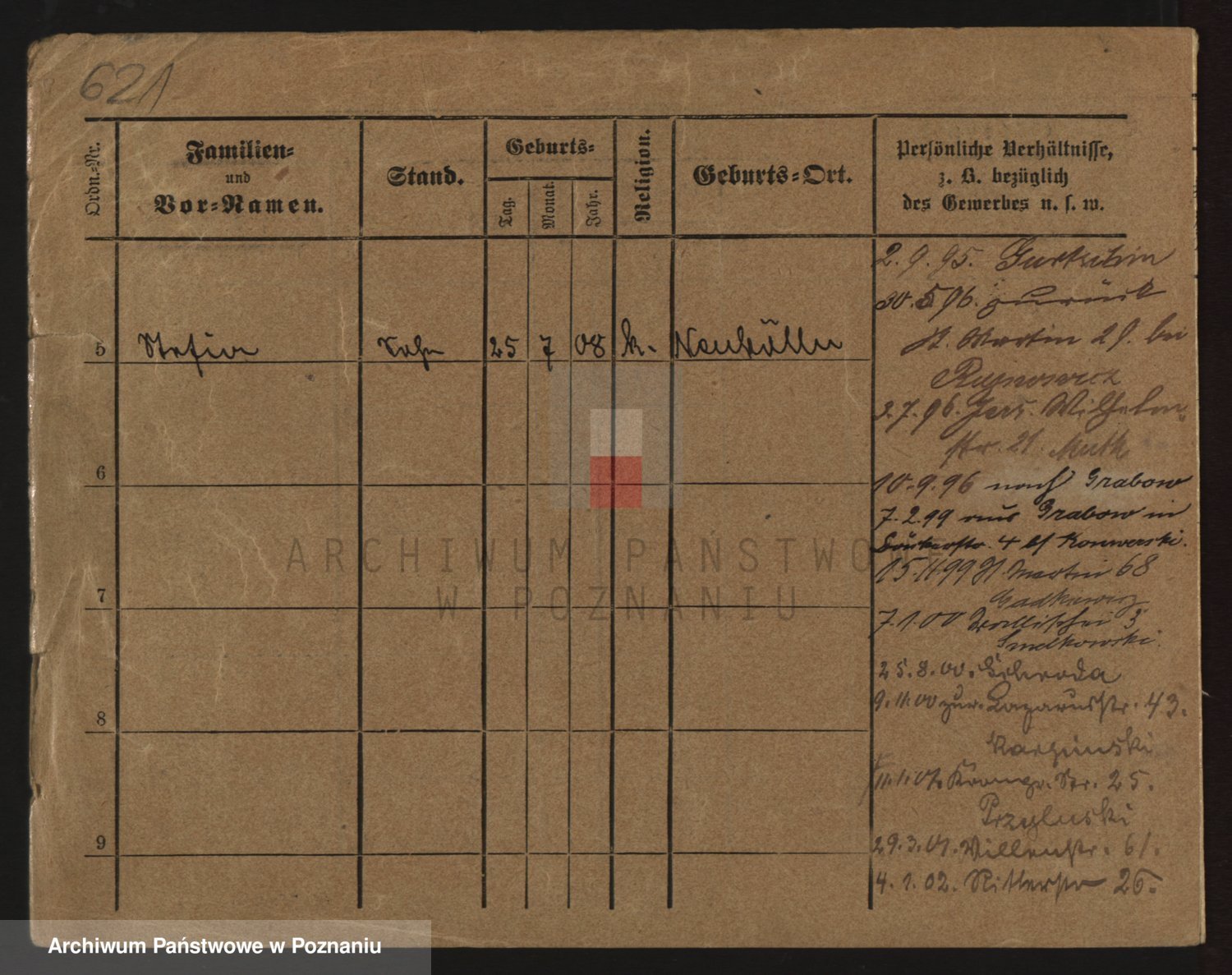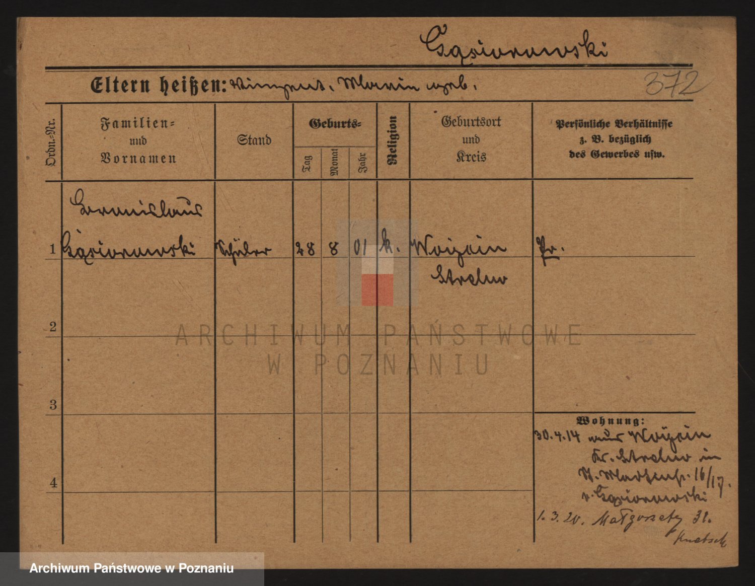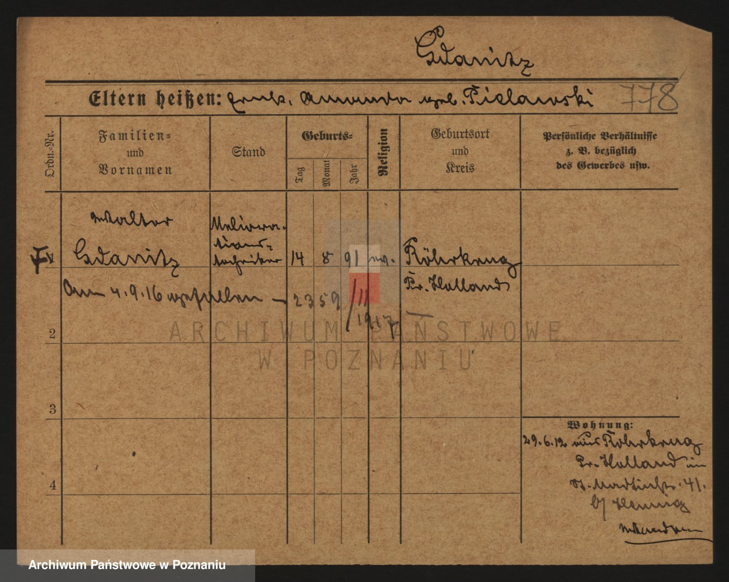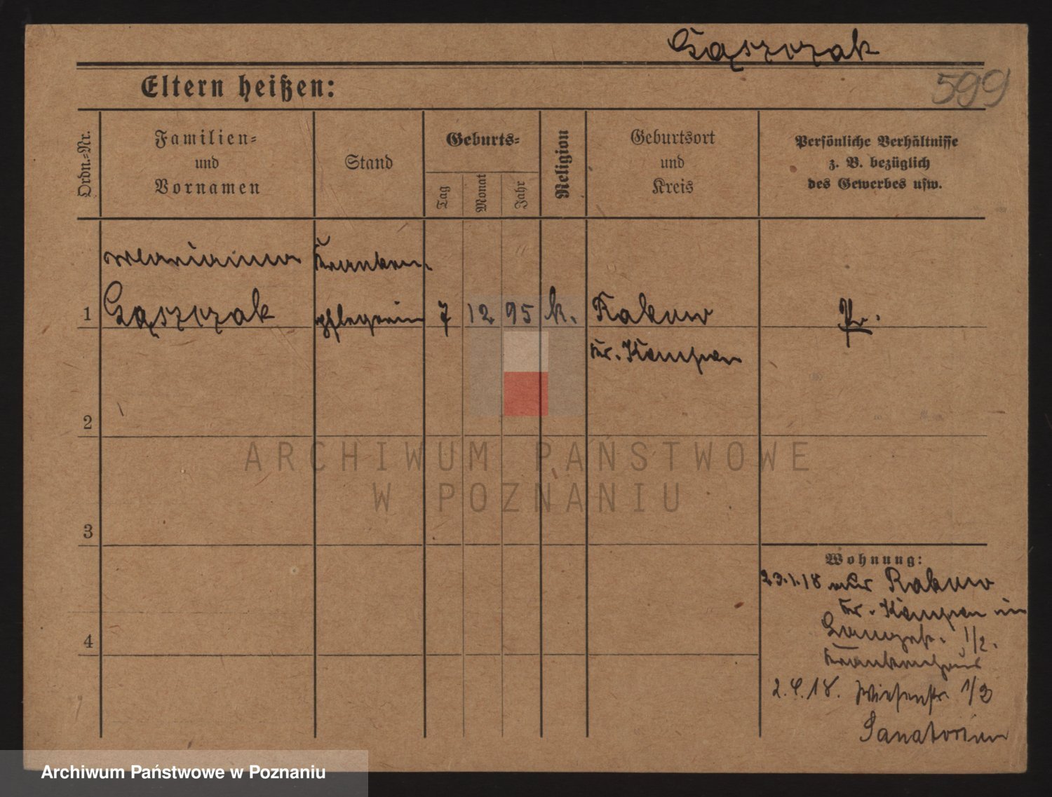 Podgląd karty osobowej dostępny jest po kliknięciu na nazwisko lub ikonkę karty. Można dokonywać powiększenia (ikony na górze) lub przechodzić między kolejnymi skanami (strzałki po bokach).