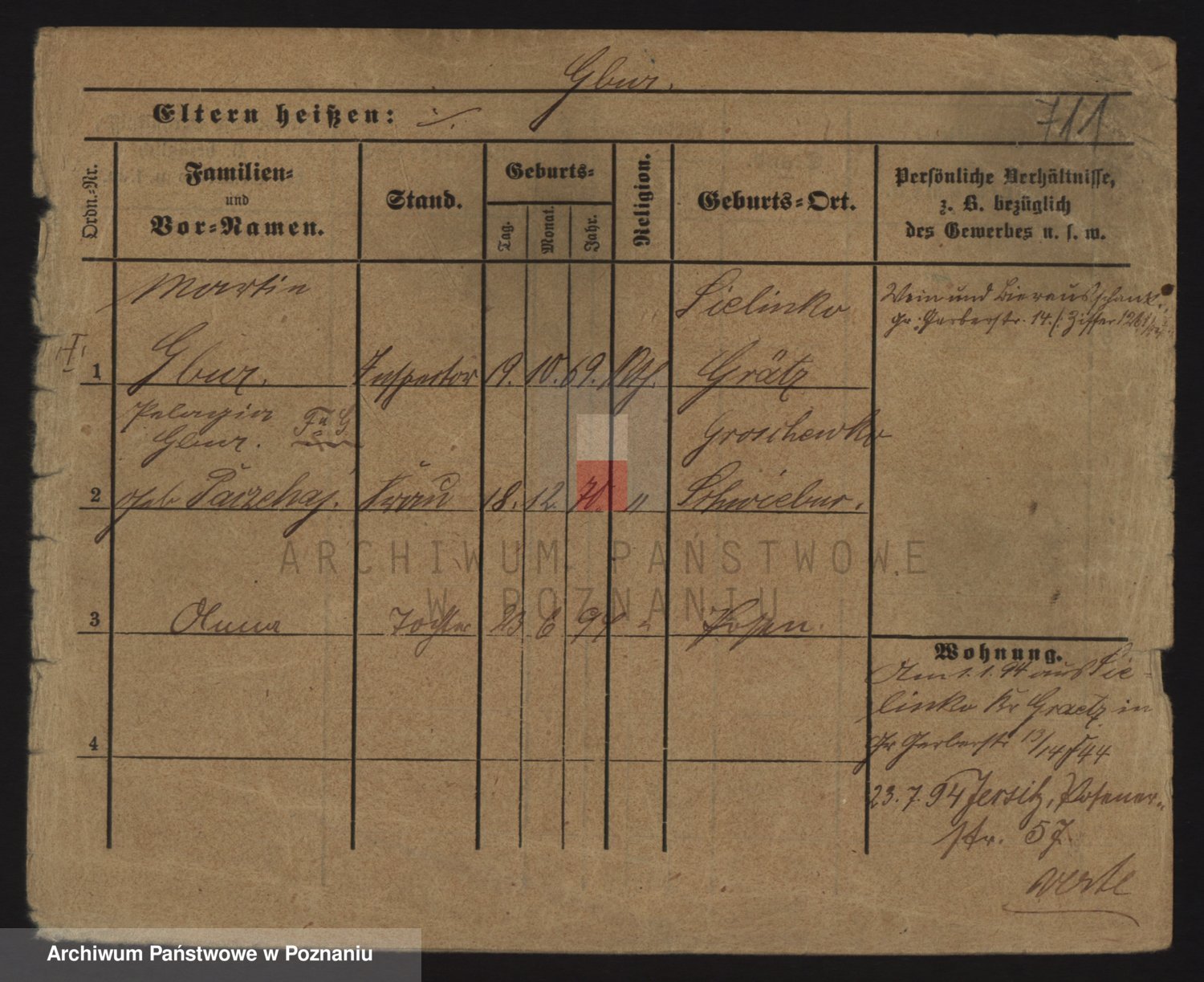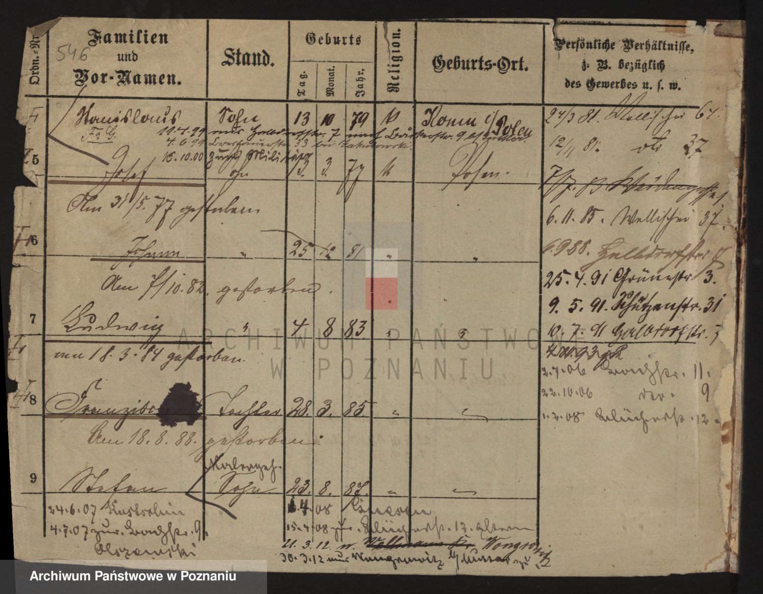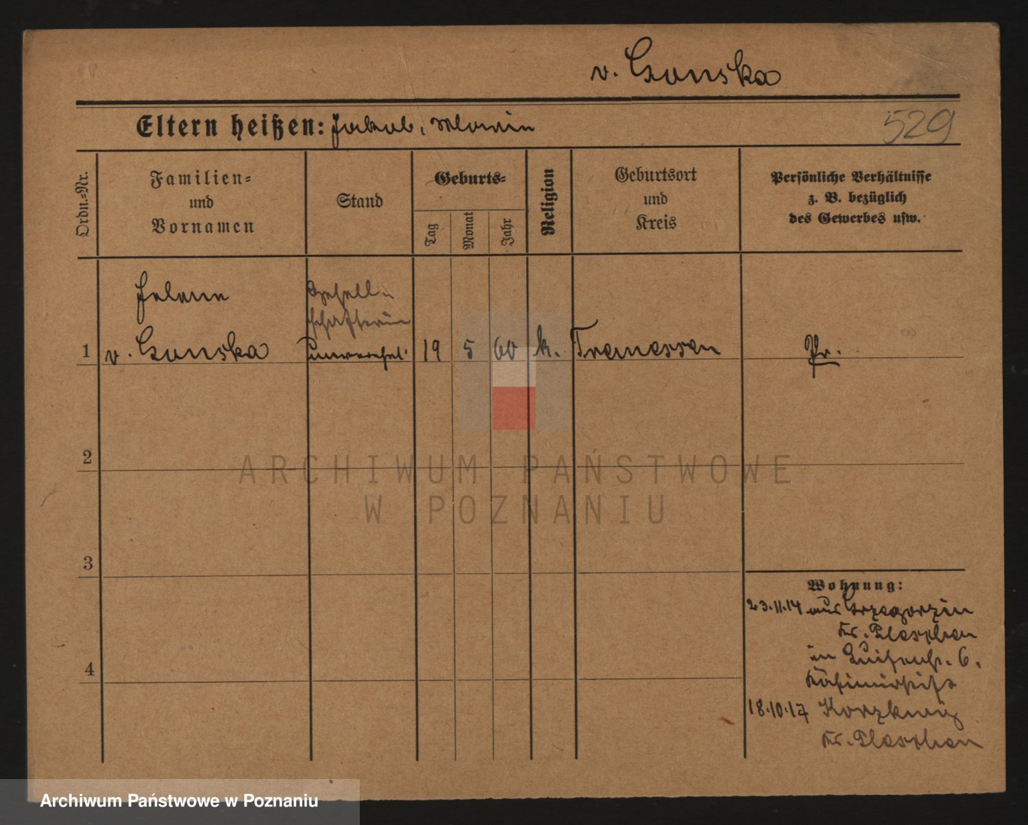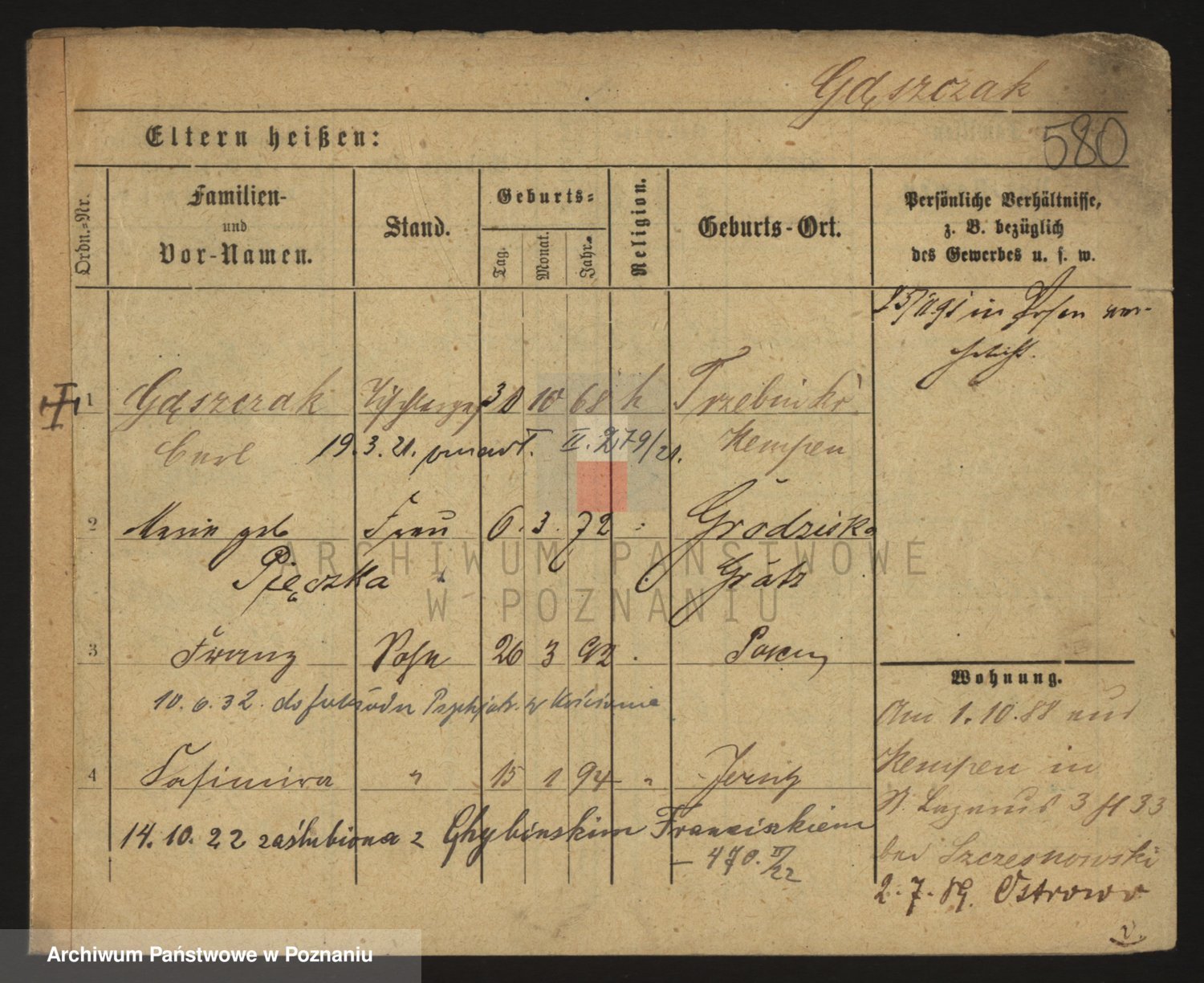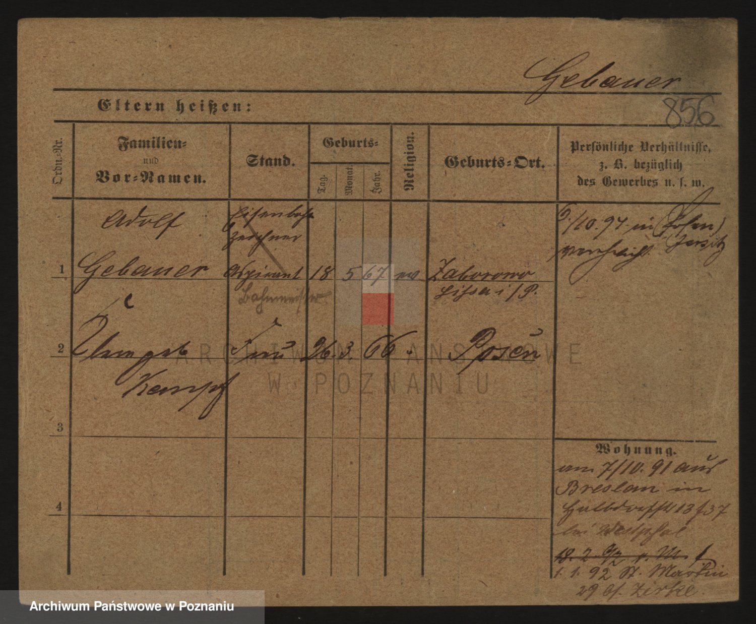 Podgląd karty osobowej dostępny jest po kliknięciu na nazwisko lub ikonkę karty. Można dokonywać powiększenia (ikony na górze) lub przechodzić między kolejnymi skanami (strzałki po bokach).