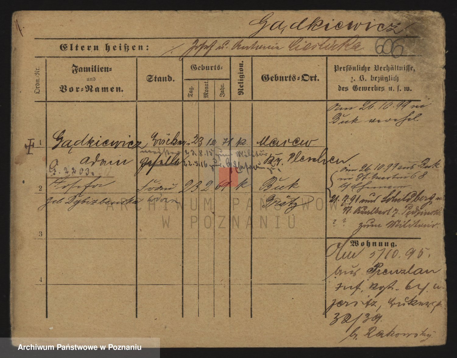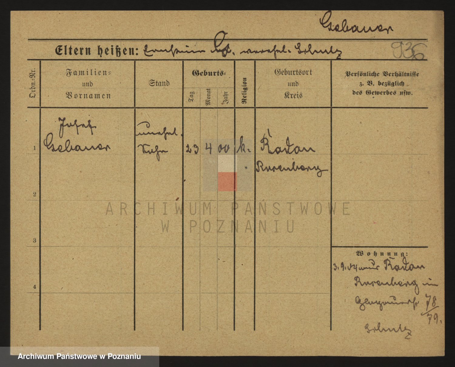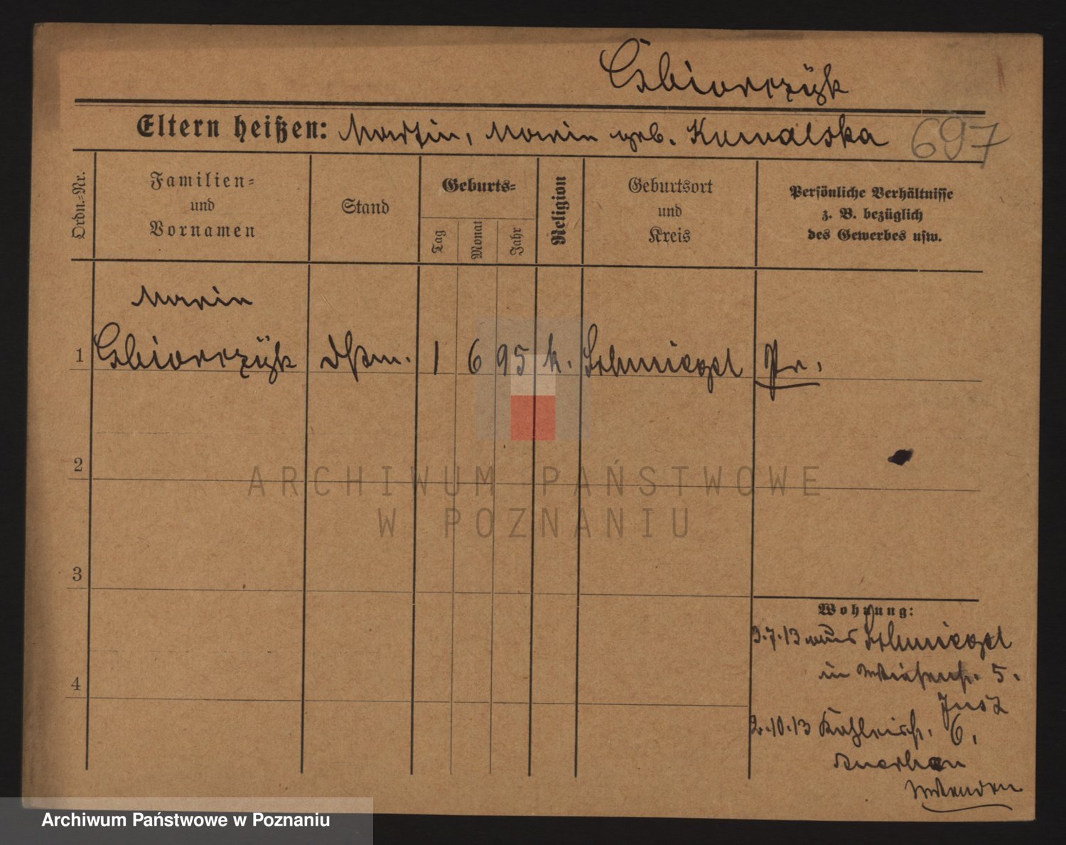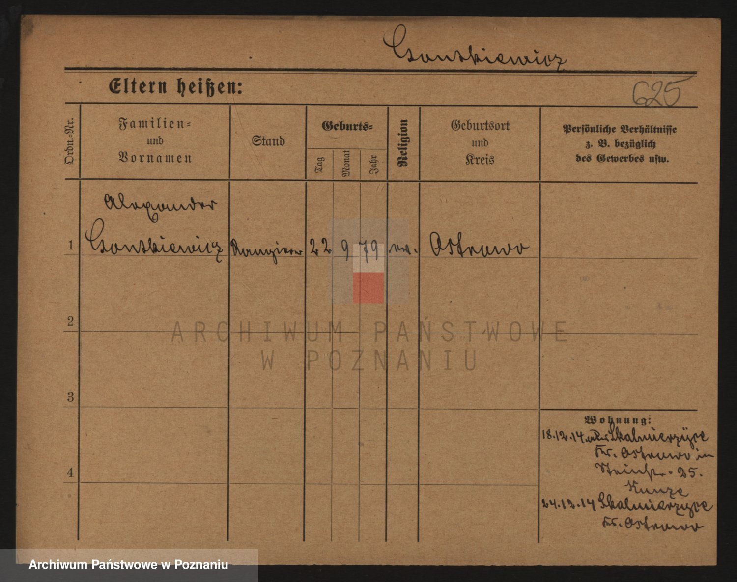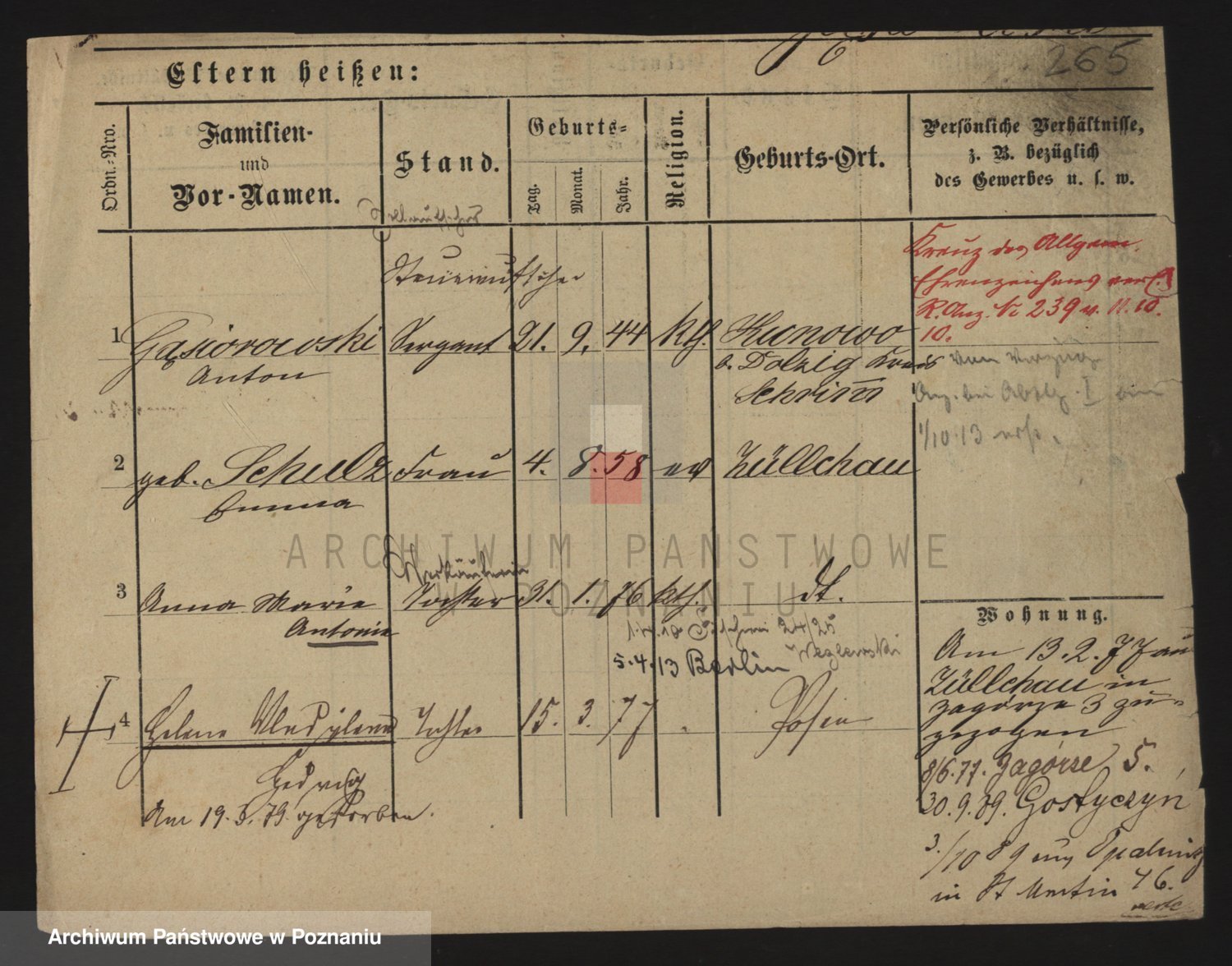 Podgląd karty osobowej dostępny jest po kliknięciu na nazwisko lub ikonkę karty. Można dokonywać powiększenia (ikony na górze) lub przechodzić między kolejnymi skanami (strzałki po bokach).