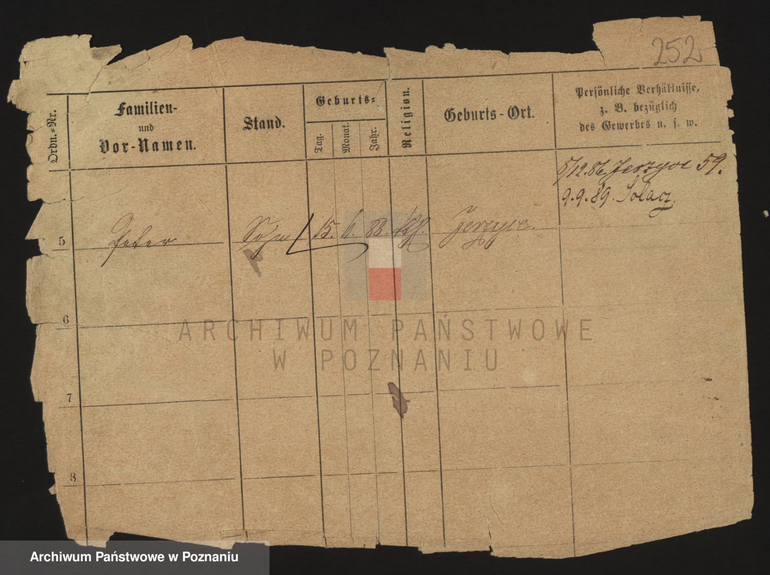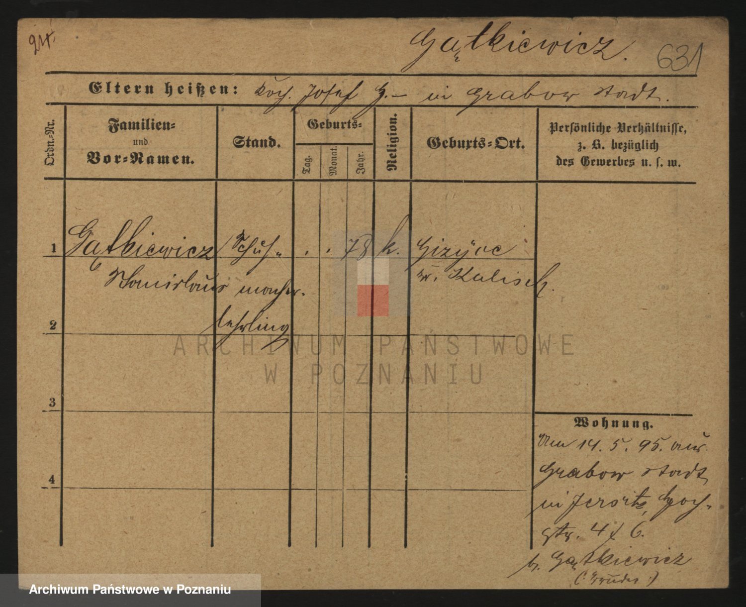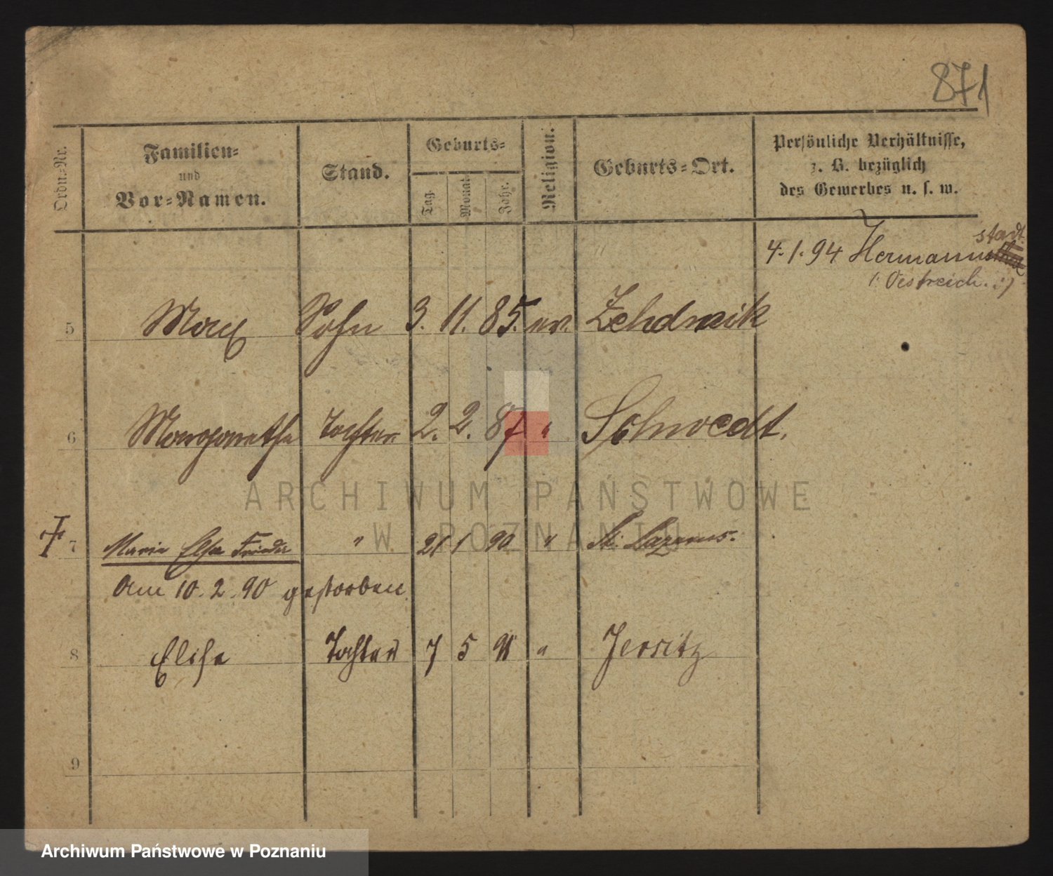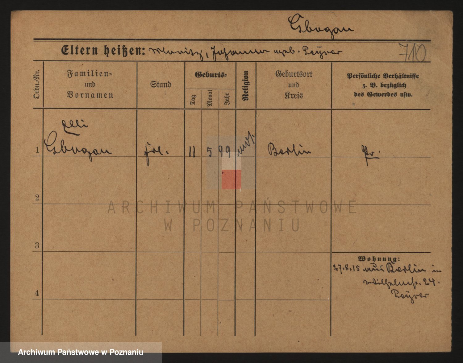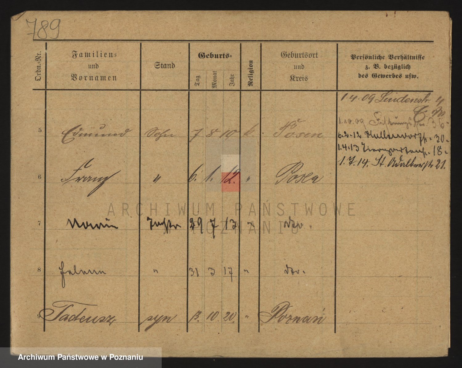 Podgląd karty osobowej dostępny jest po kliknięciu na nazwisko lub ikonkę karty. Można dokonywać powiększenia (ikony na górze) lub przechodzić między kolejnymi skanami (strzałki po bokach).