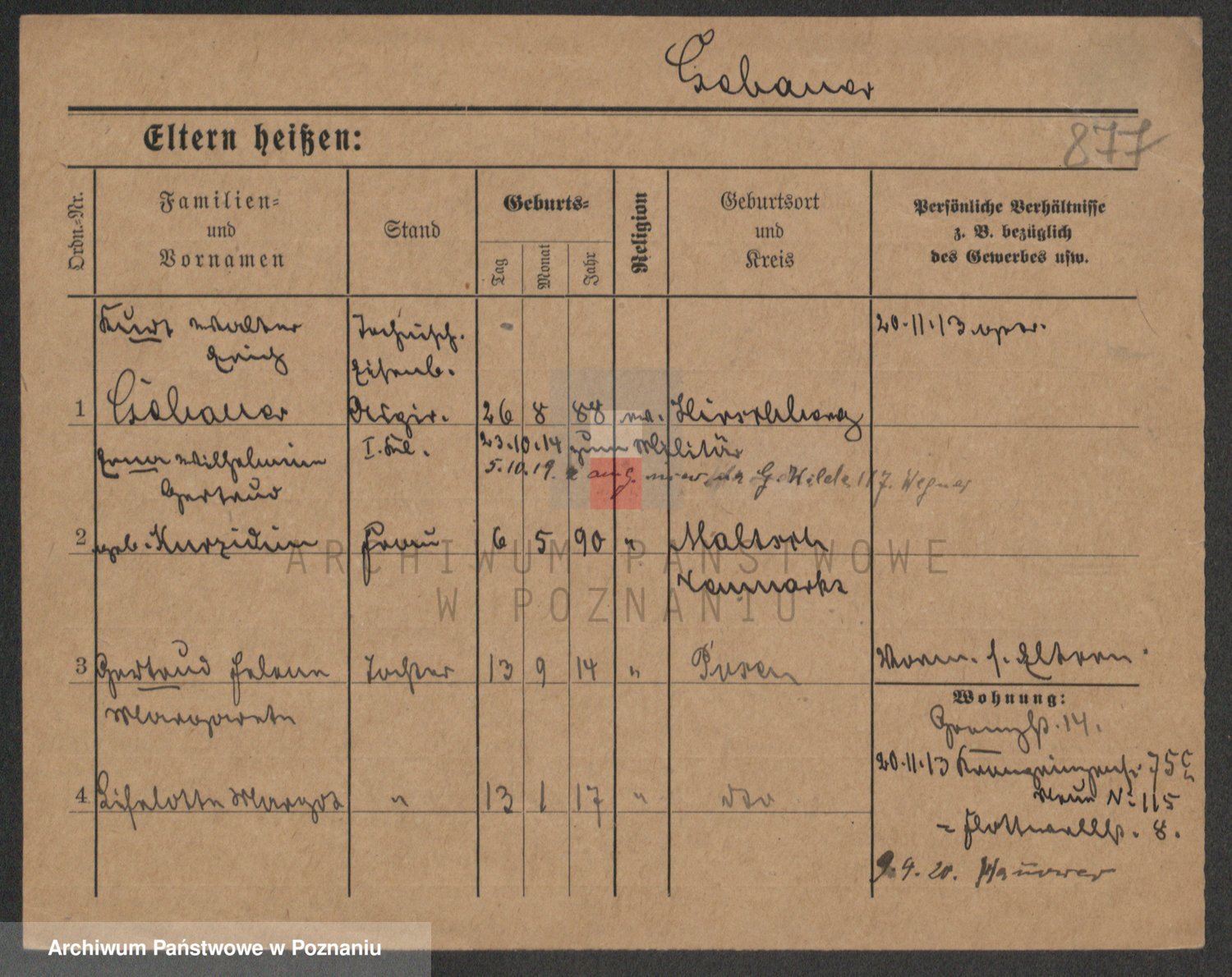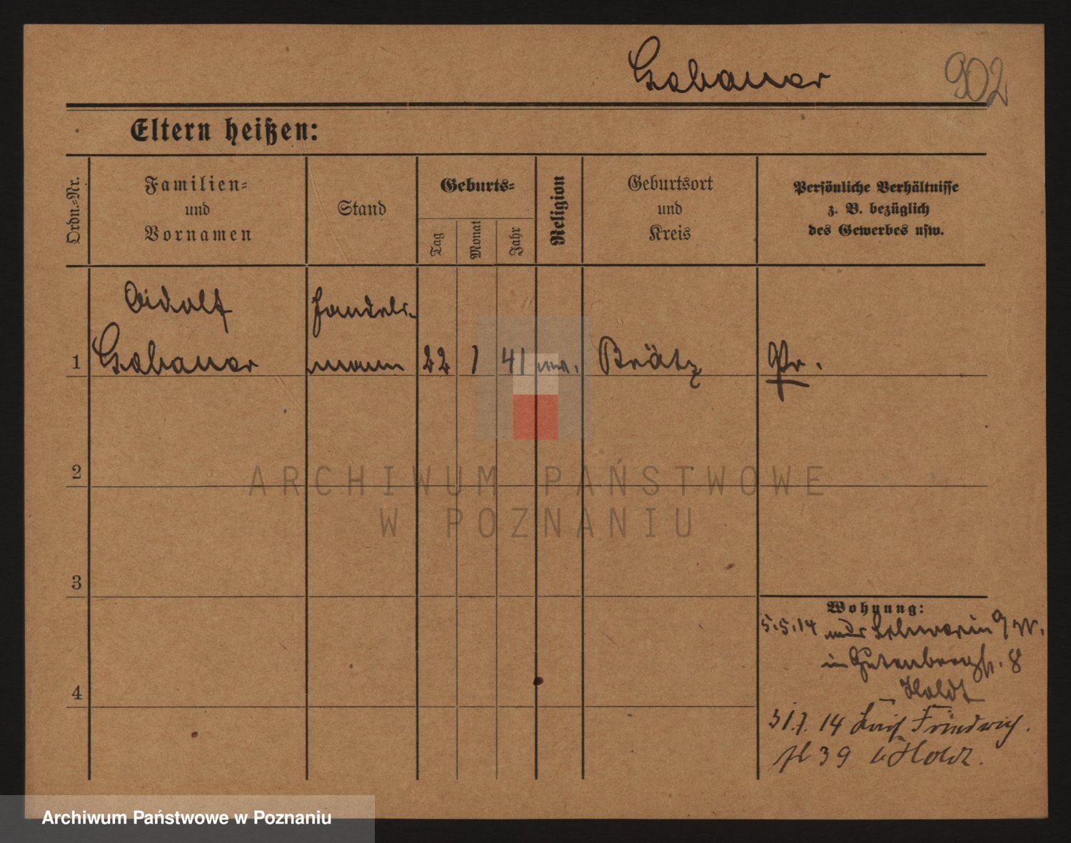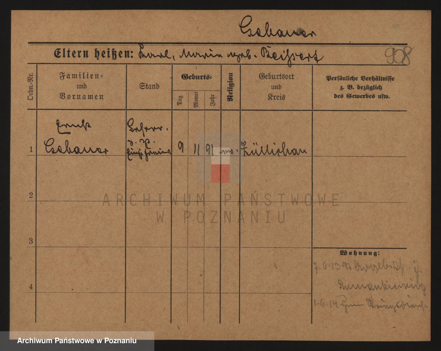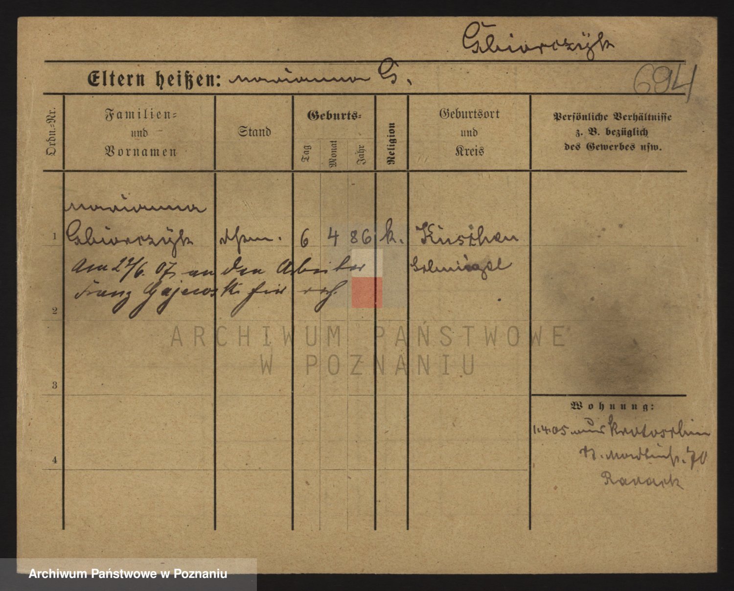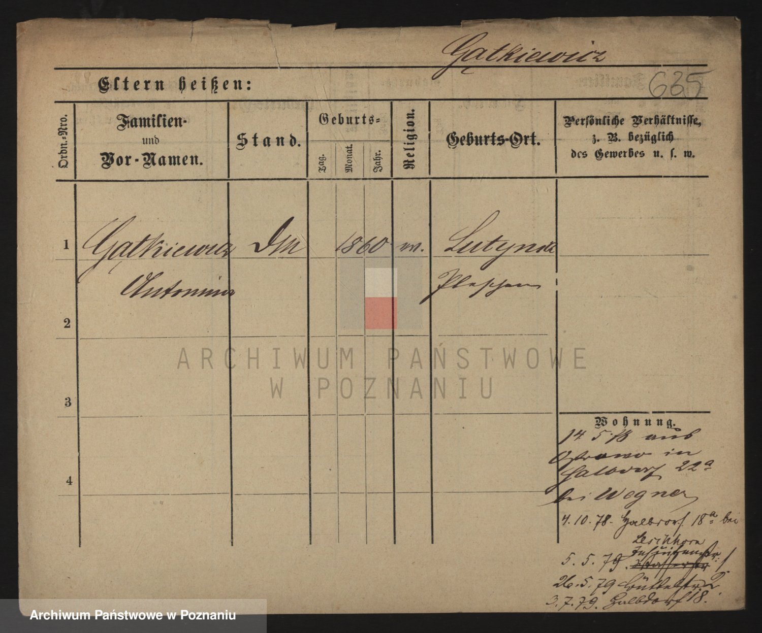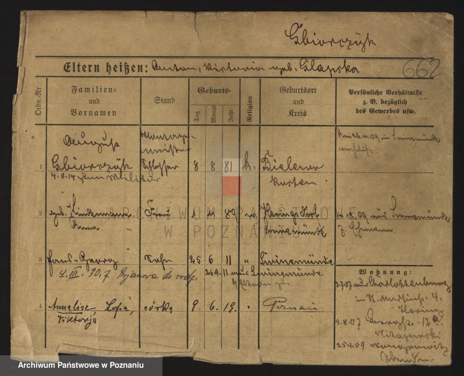 Podgląd karty osobowej dostępny jest po kliknięciu na nazwisko lub ikonkę karty. Można dokonywać powiększenia (ikony na górze) lub przechodzić między kolejnymi skanami (strzałki po bokach).