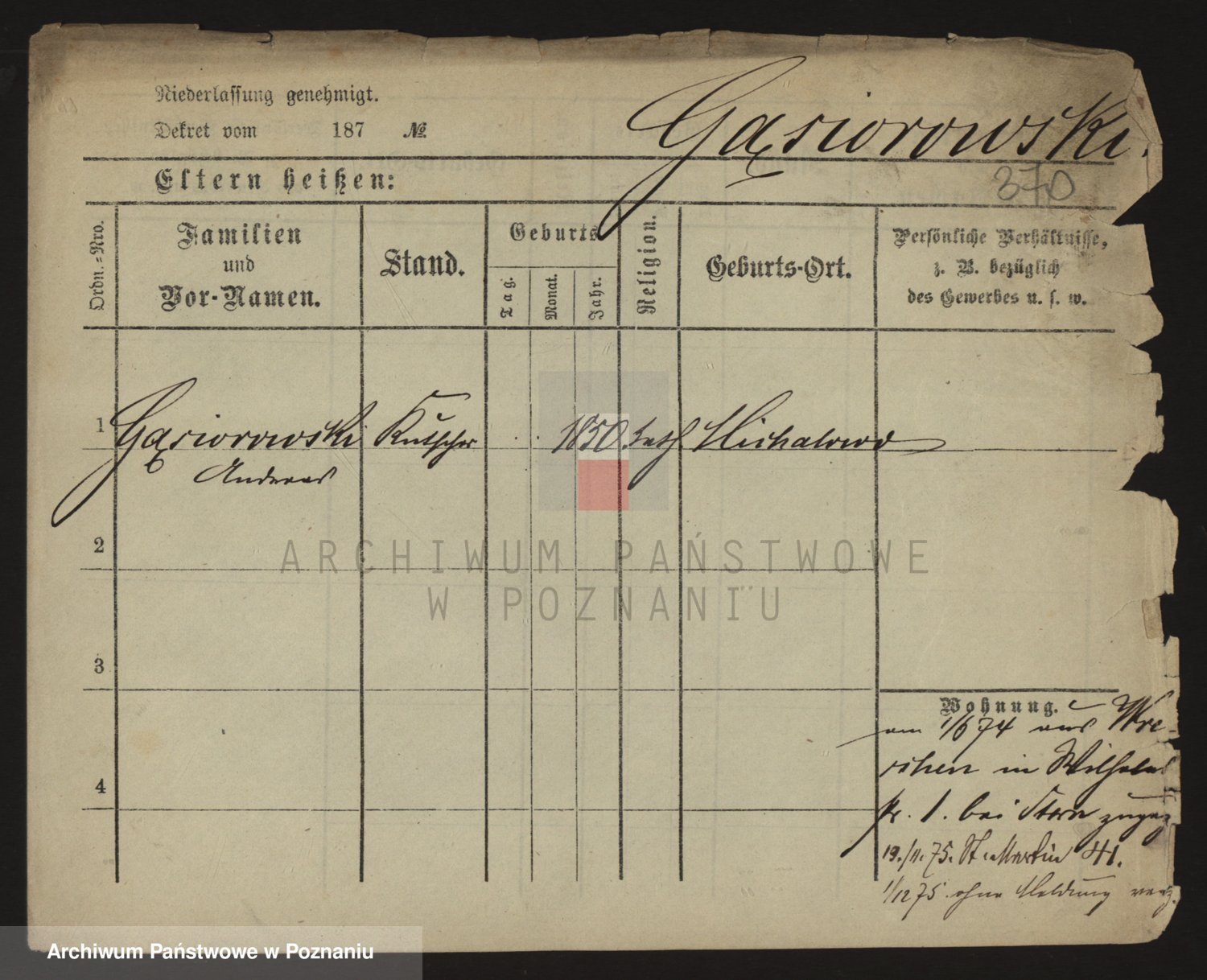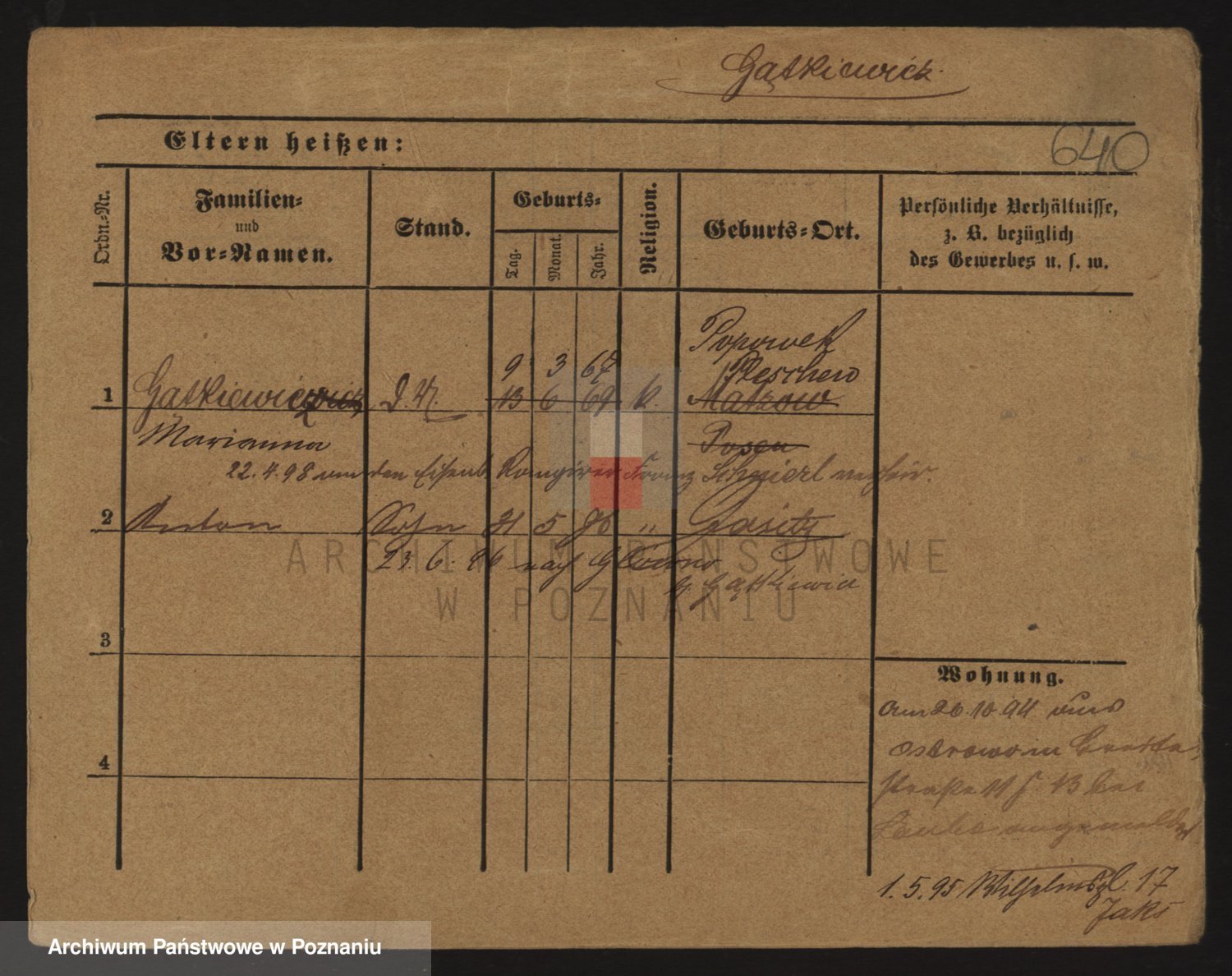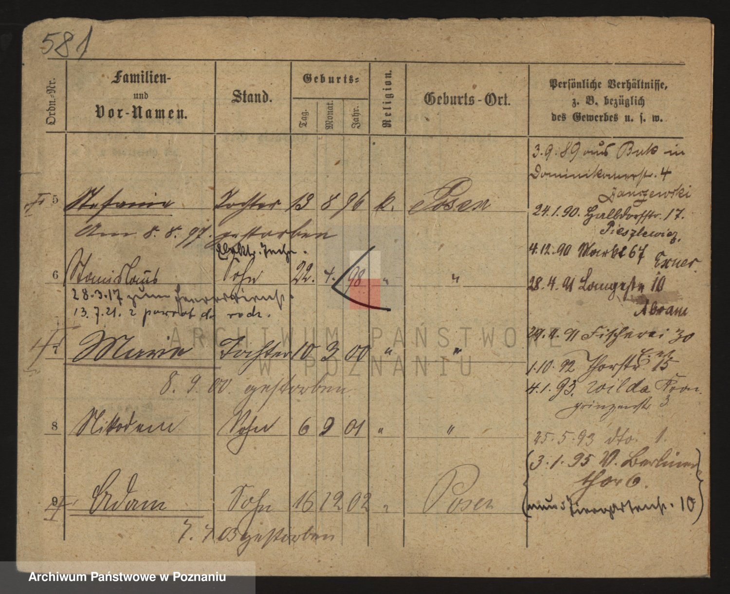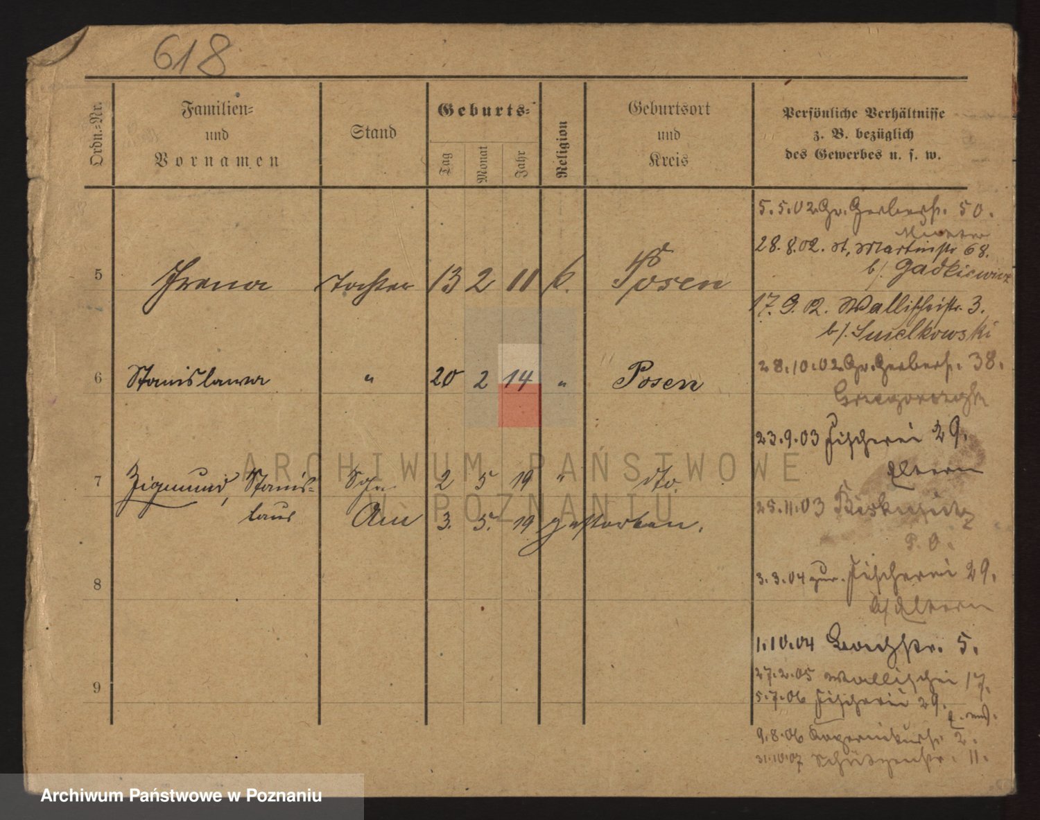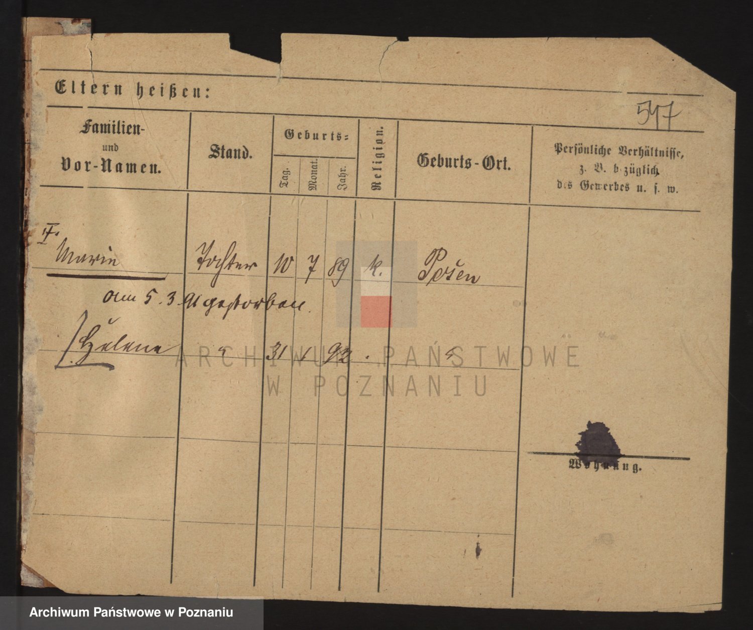 Podgląd karty osobowej dostępny jest po kliknięciu na nazwisko lub ikonkę karty. Można dokonywać powiększenia (ikony na górze) lub przechodzić między kolejnymi skanami (strzałki po bokach).