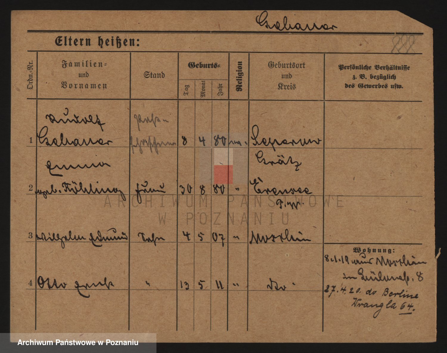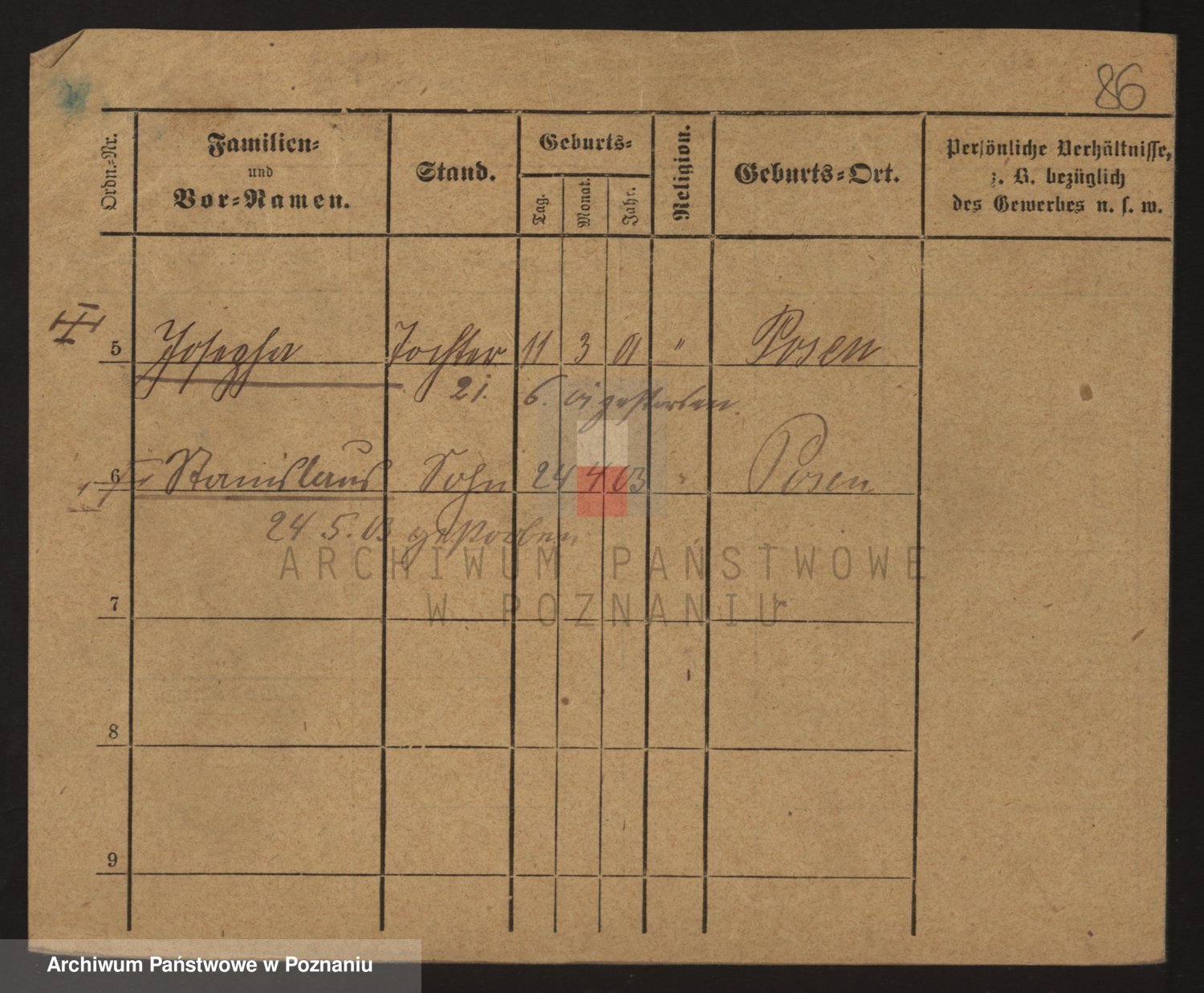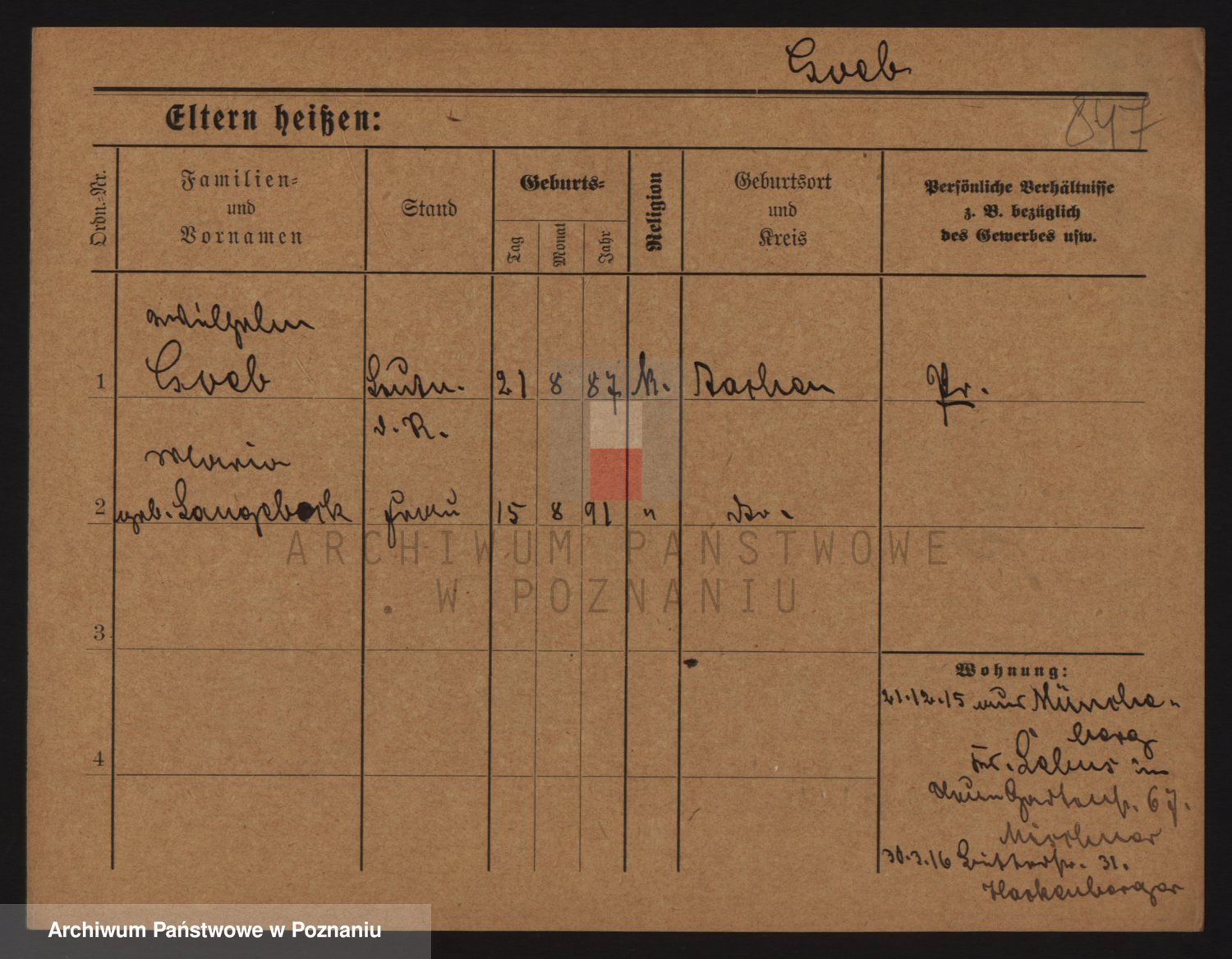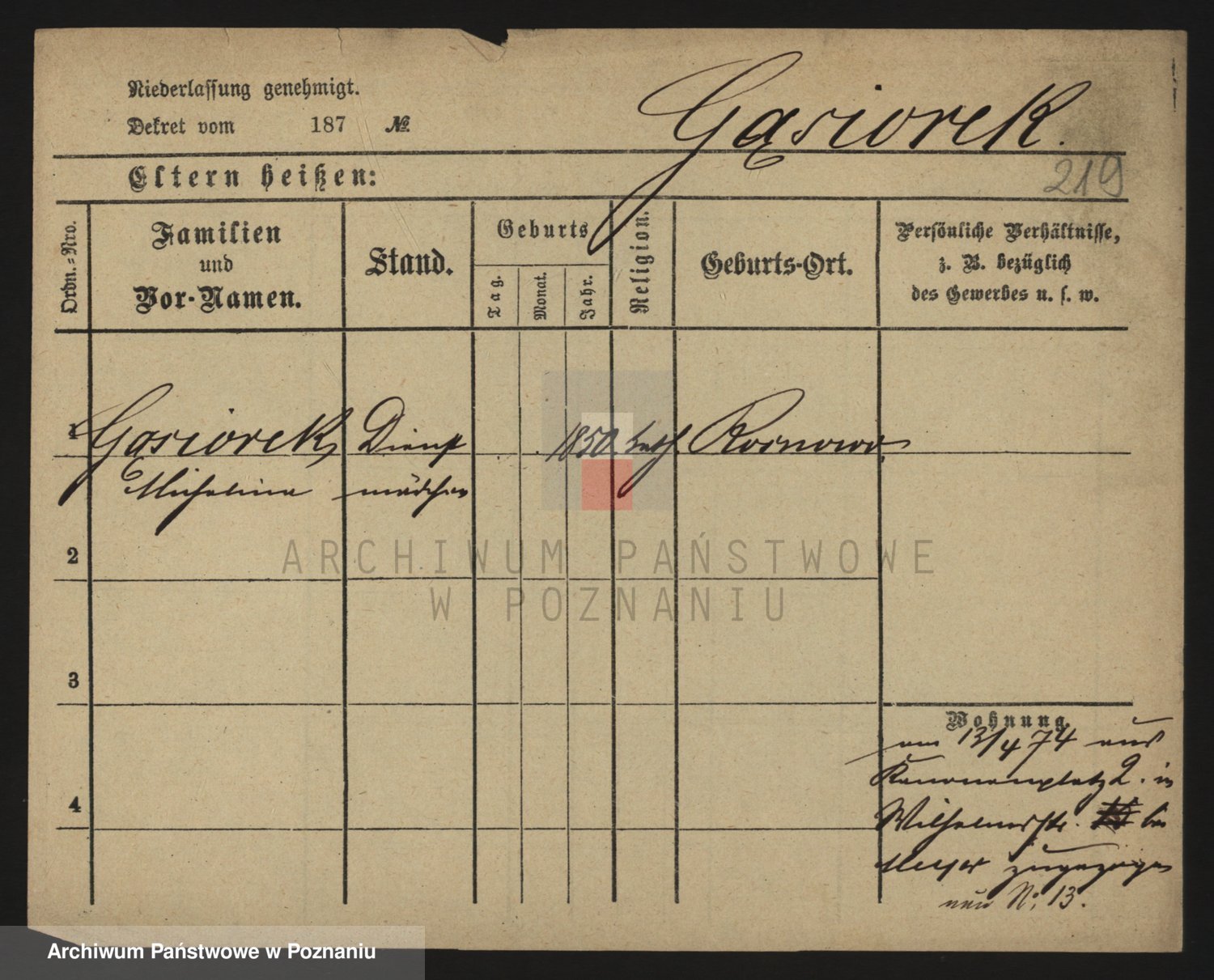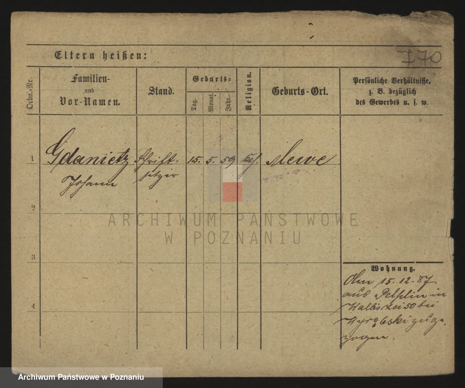 Podgląd karty osobowej dostępny jest po kliknięciu na nazwisko lub ikonkę karty. Można dokonywać powiększenia (ikony na górze) lub przechodzić między kolejnymi skanami (strzałki po bokach).