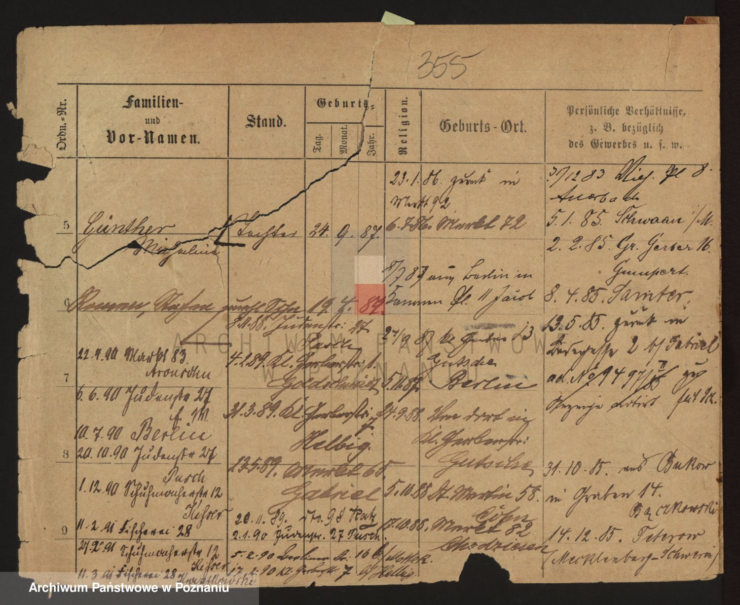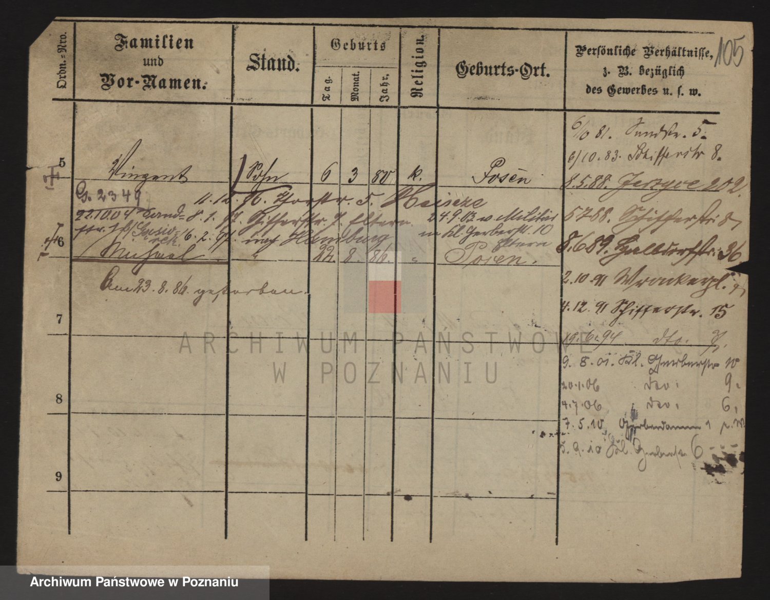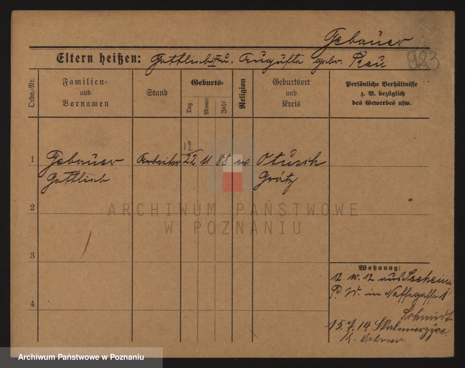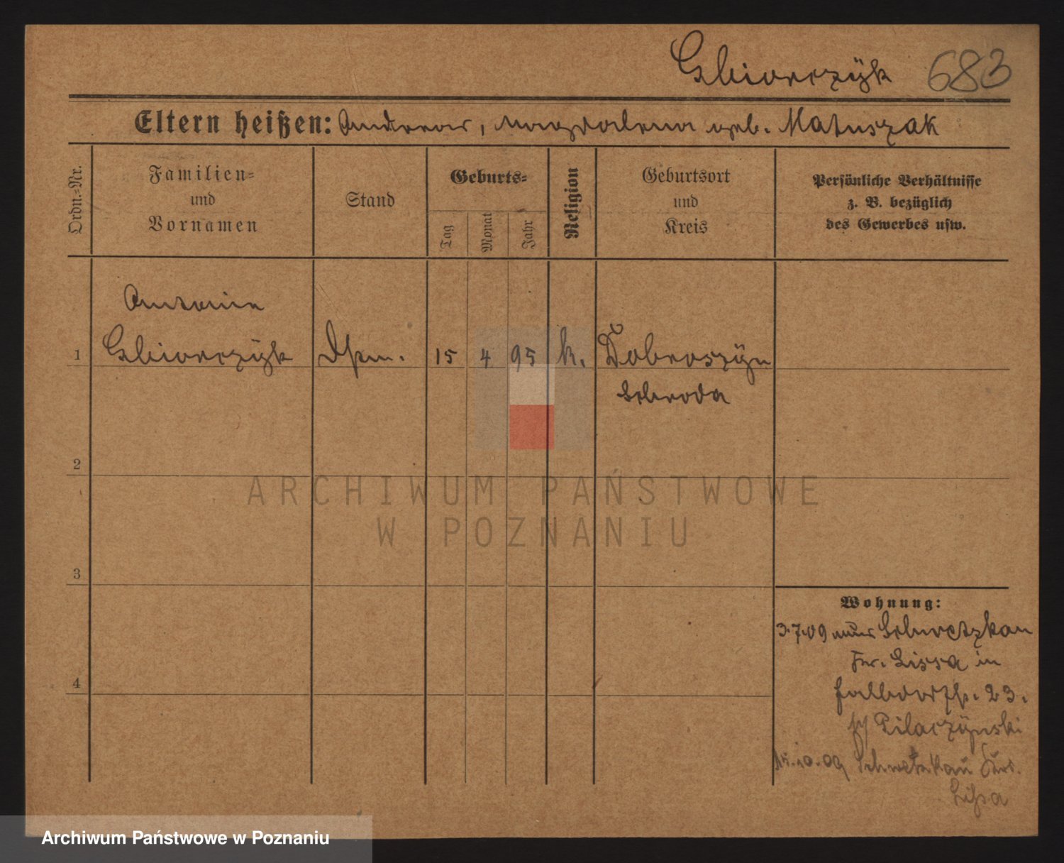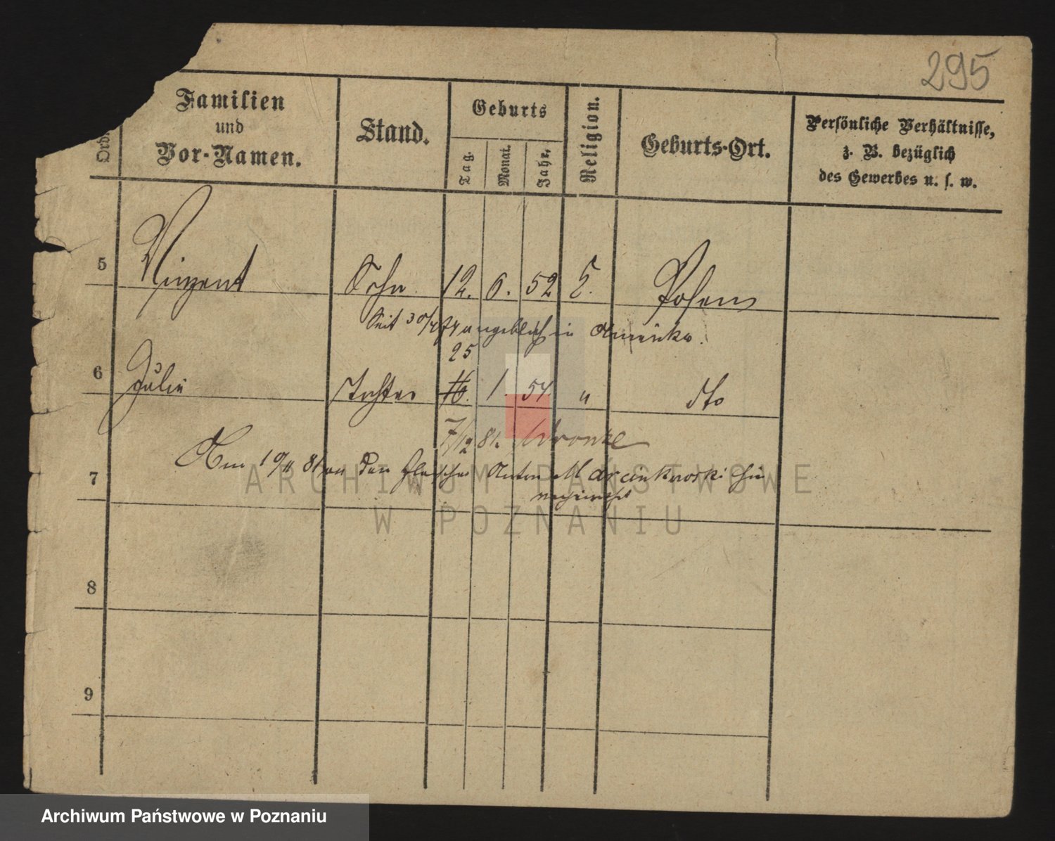Podgląd karty osobowej dostępny jest po kliknięciu na nazwisko lub ikonkę karty. Można dokonywać powiększenia (ikony na górze) lub przechodzić między kolejnymi skanami (strzałki po bokach).
