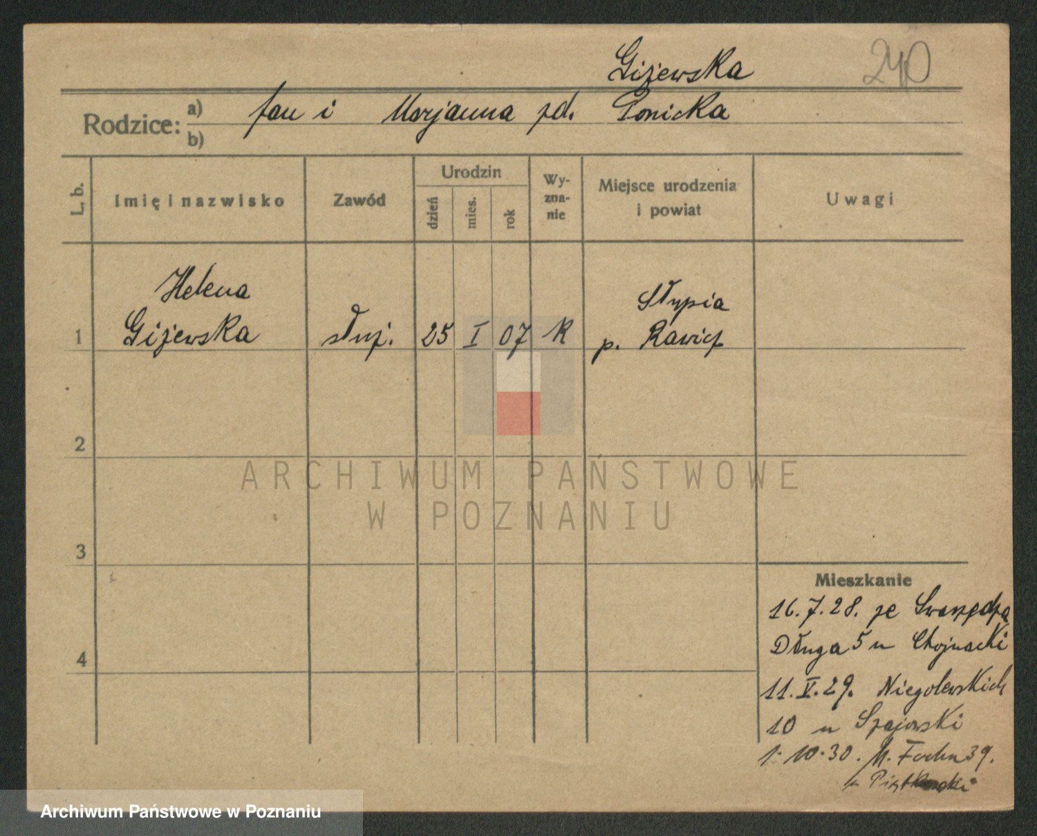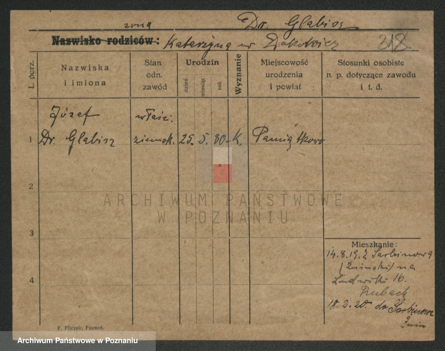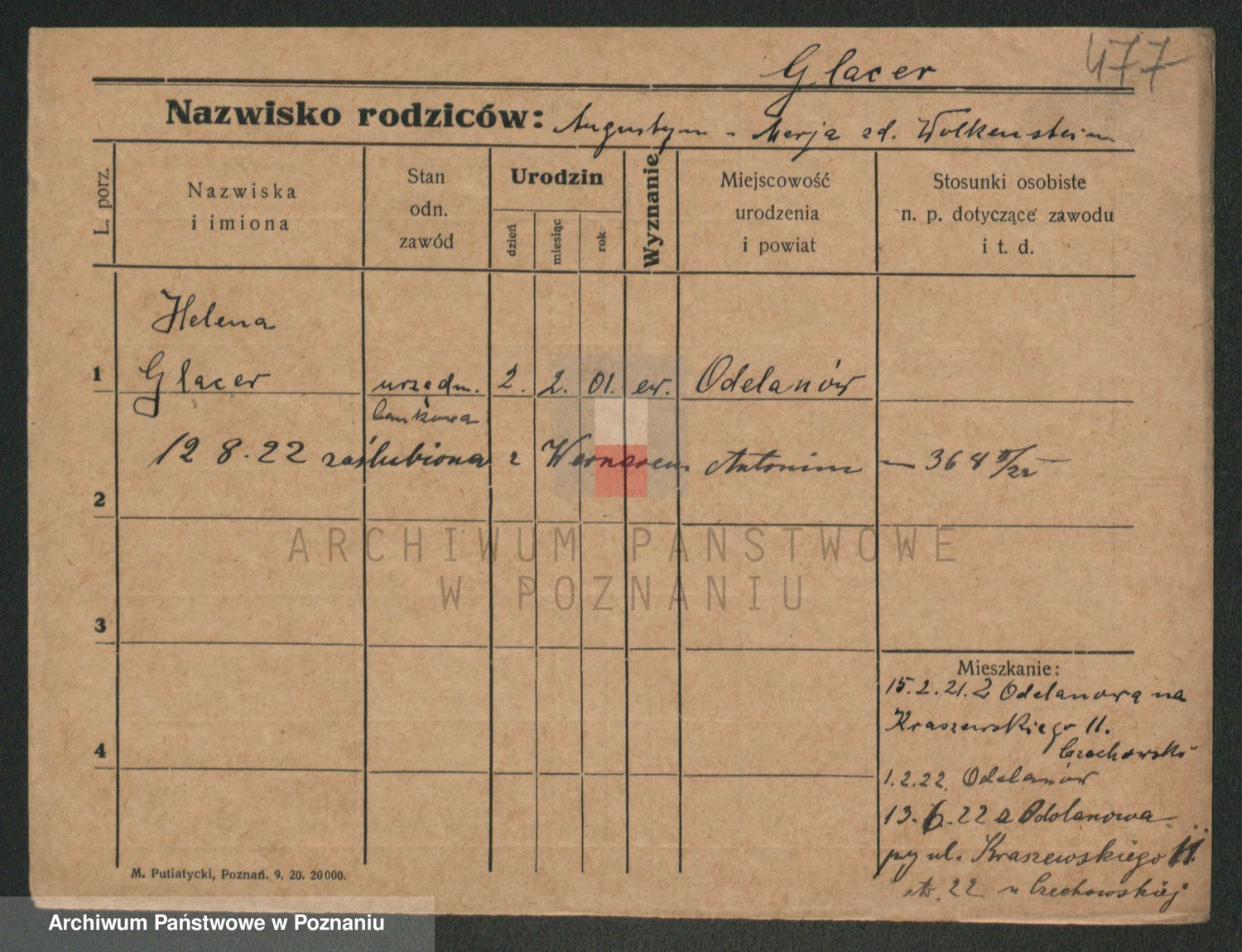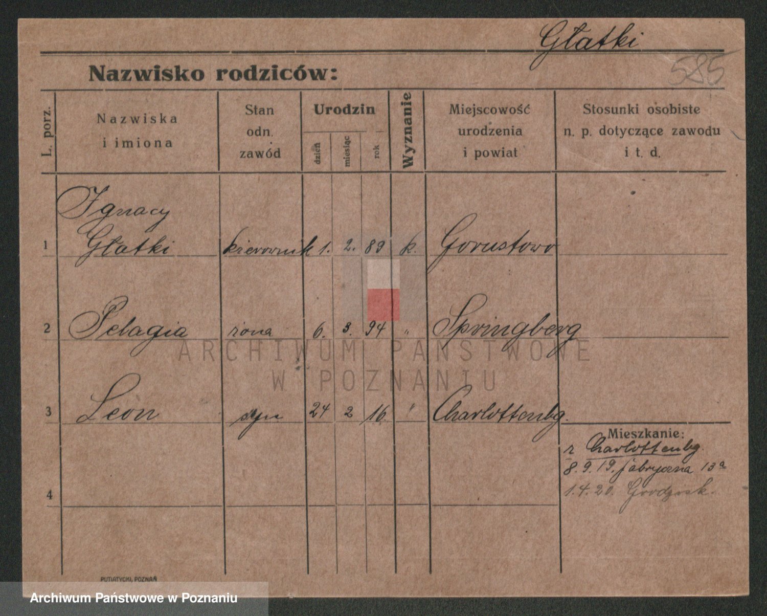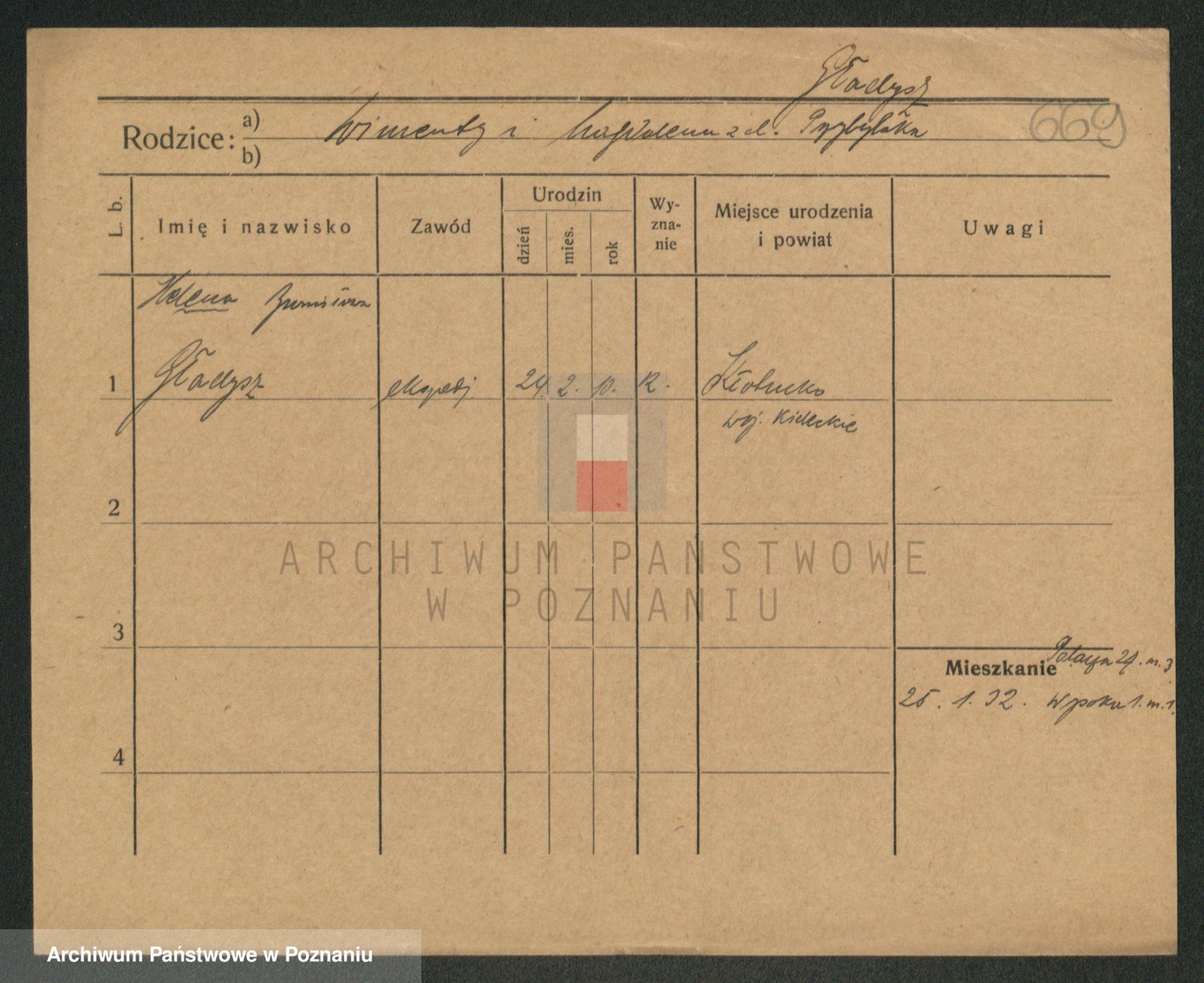 Podgląd karty osobowej dostępny jest po kliknięciu na nazwisko lub ikonkę karty. Można dokonywać powiększenia (ikony na górze) lub przechodzić między kolejnymi skanami (strzałki po bokach).