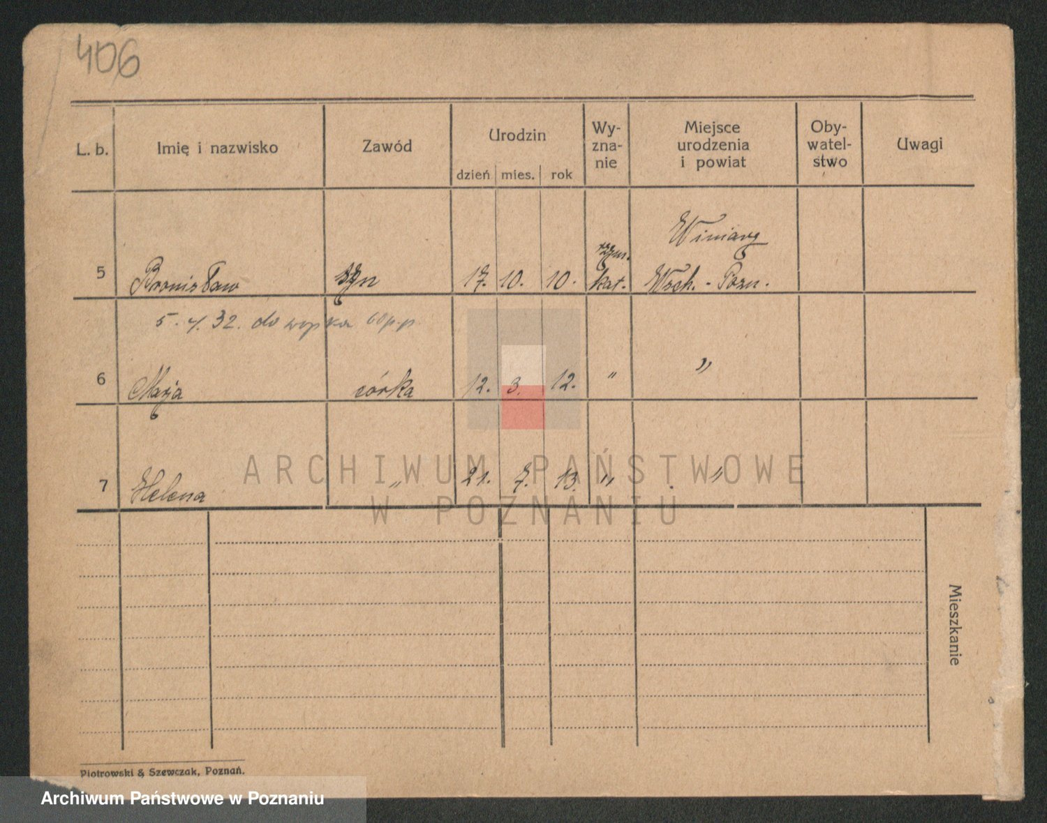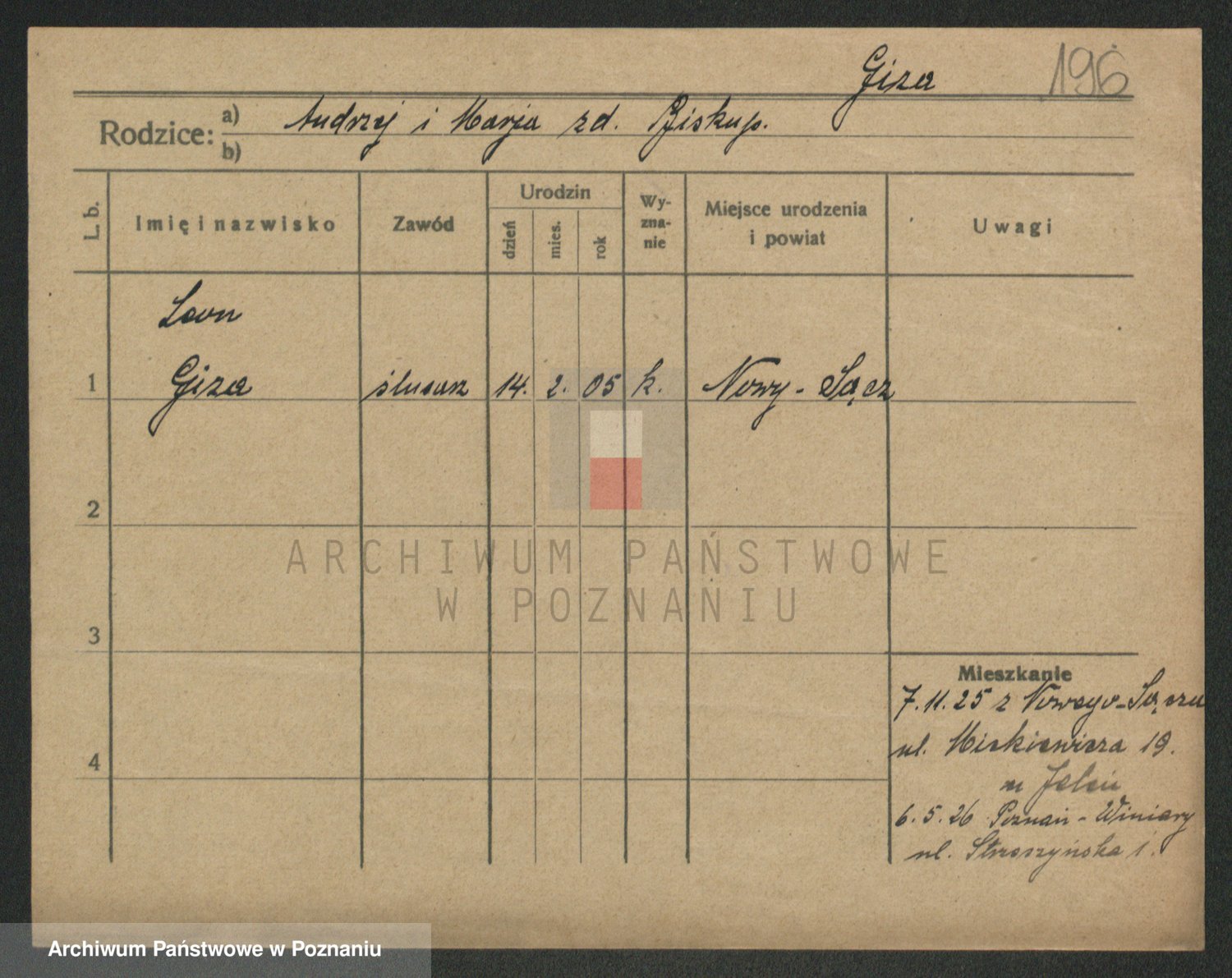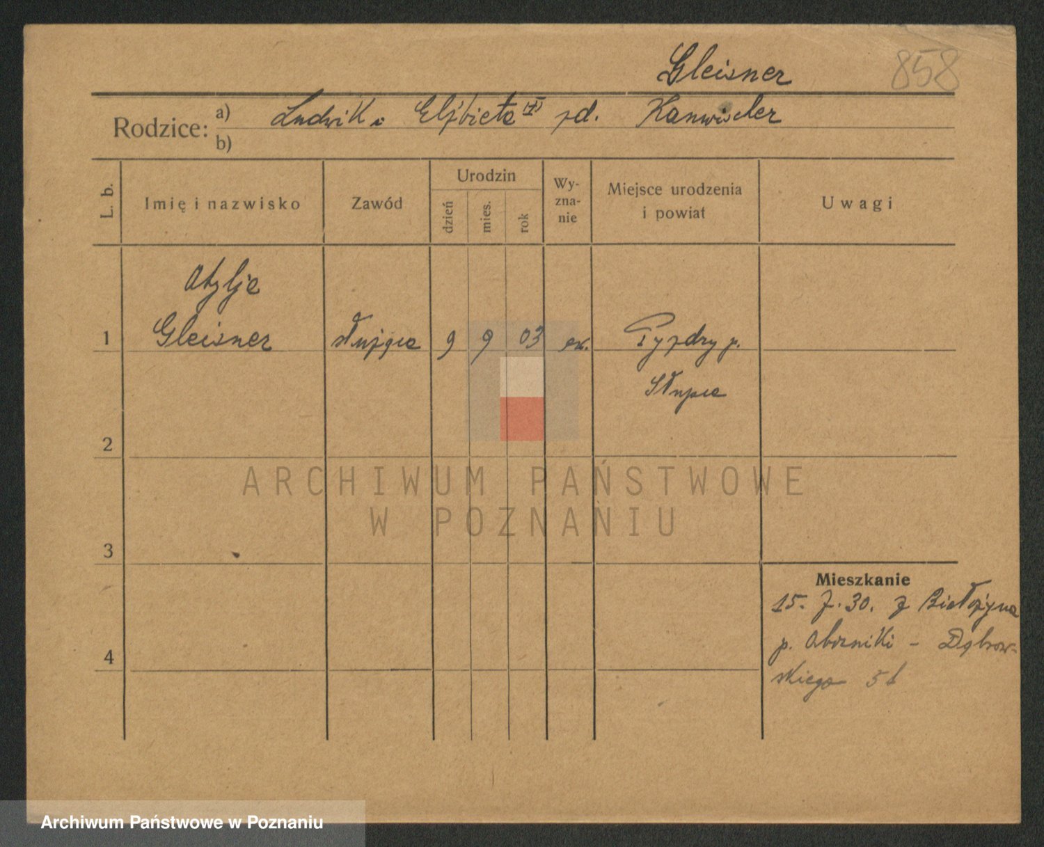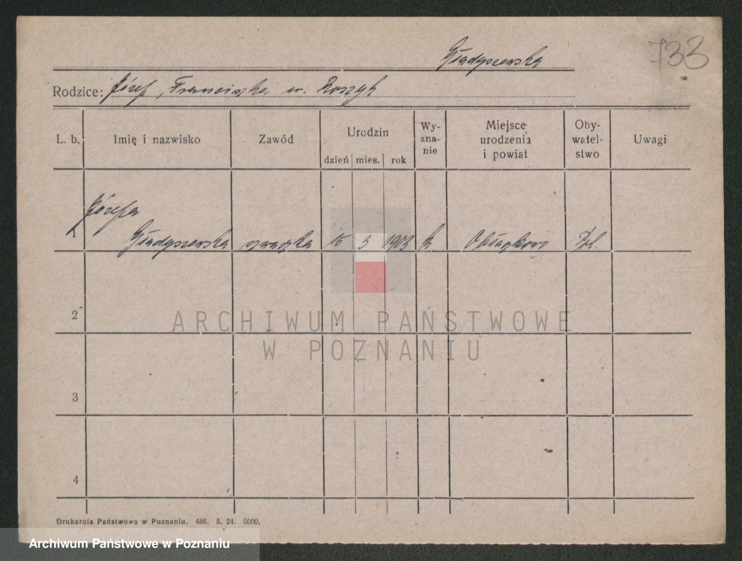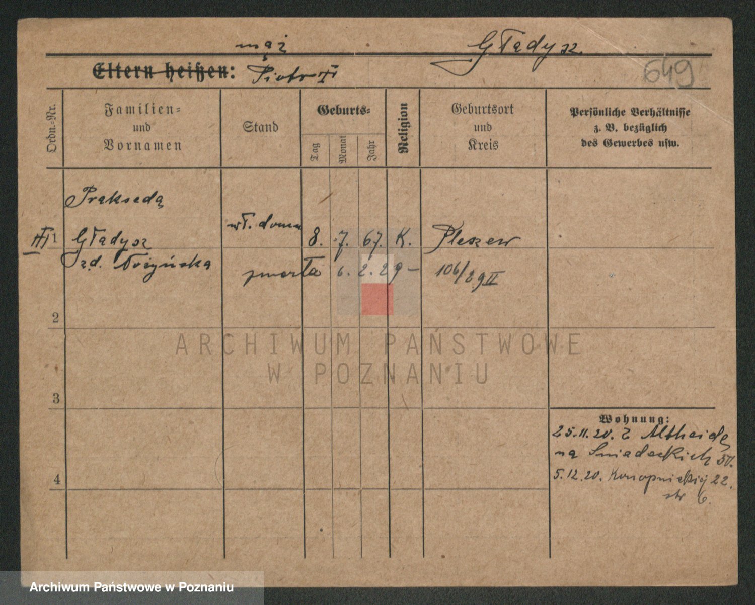 Podgląd karty osobowej dostępny jest po kliknięciu na nazwisko lub ikonkę karty. Można dokonywać powiększenia (ikony na górze) lub przechodzić między kolejnymi skanami (strzałki po bokach).