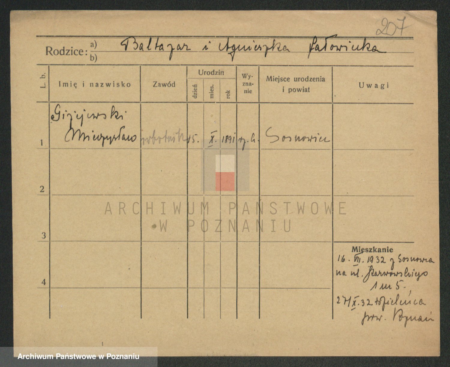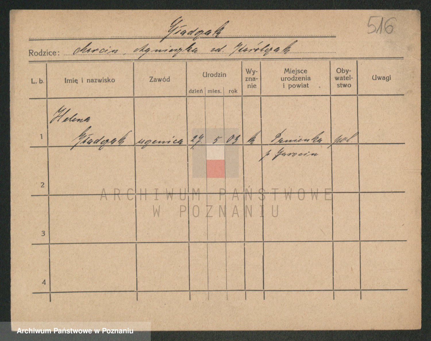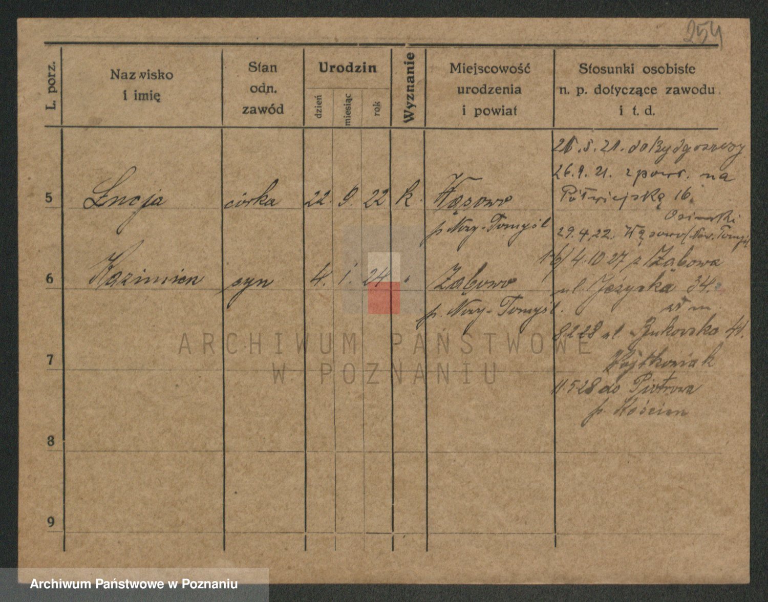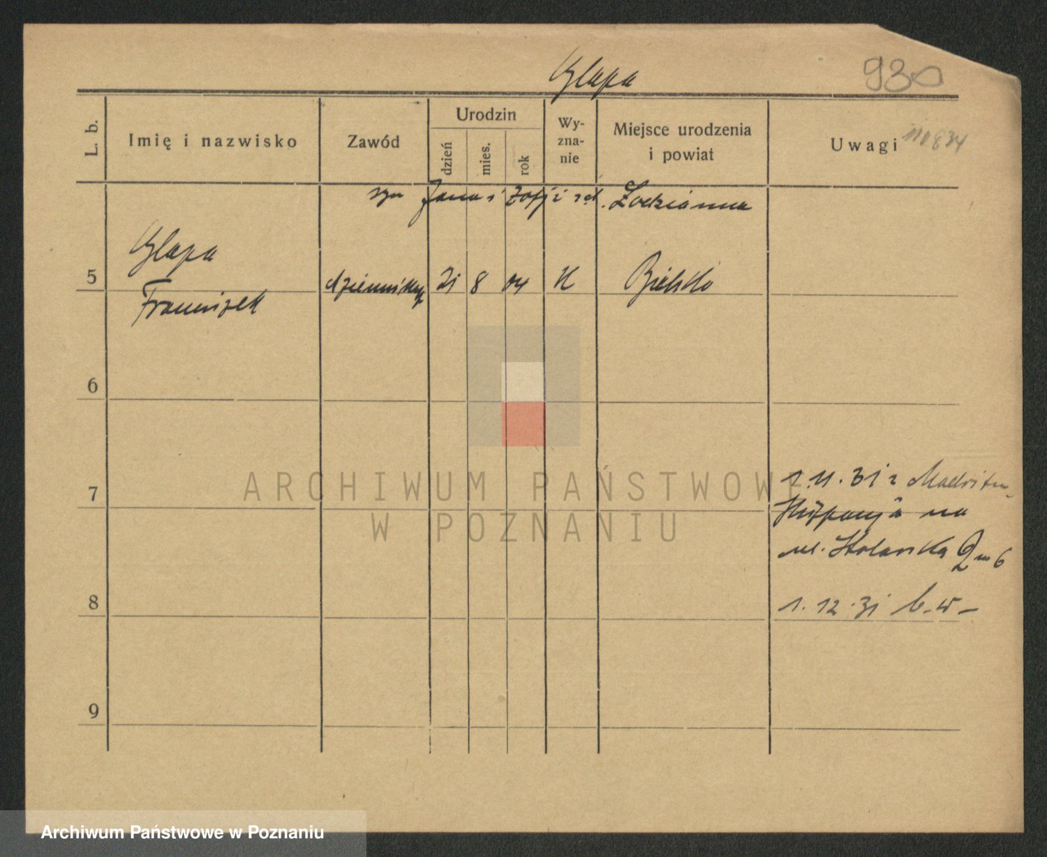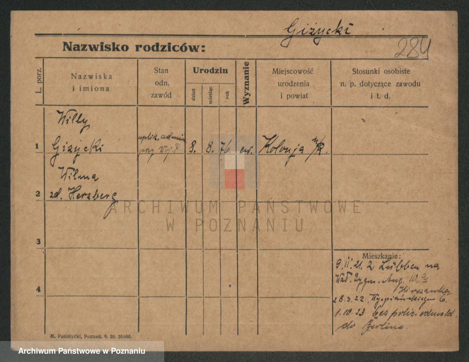 Podgląd karty osobowej dostępny jest po kliknięciu na nazwisko lub ikonkę karty. Można dokonywać powiększenia (ikony na górze) lub przechodzić między kolejnymi skanami (strzałki po bokach).