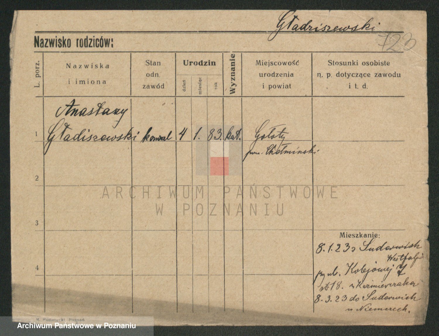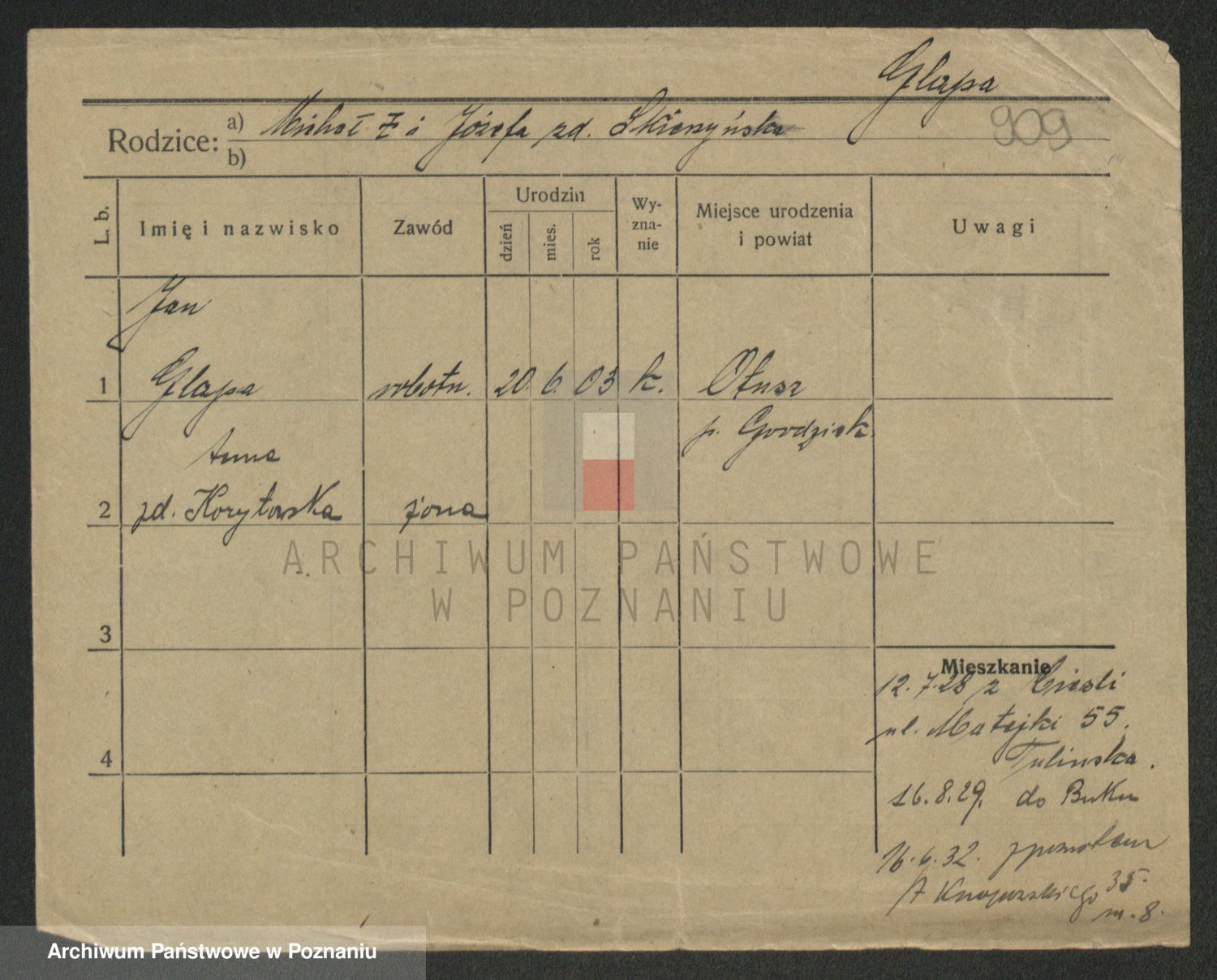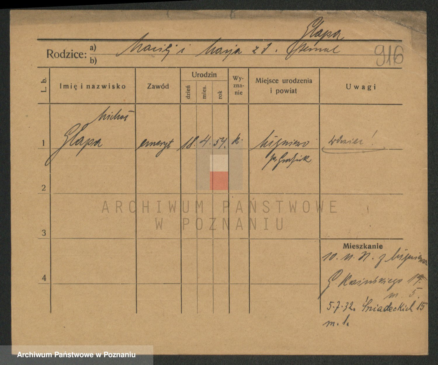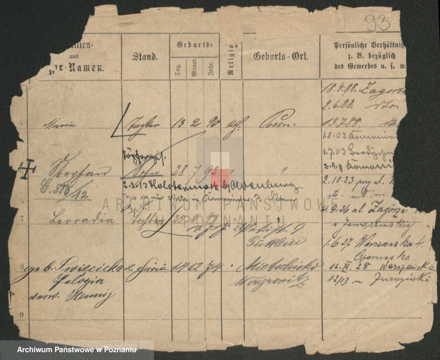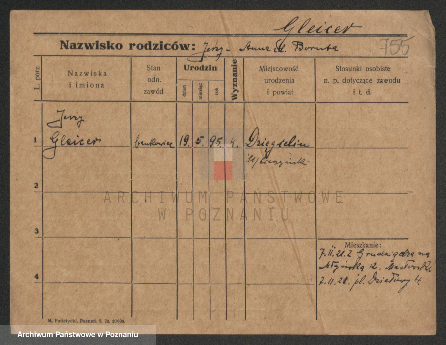 Podgląd karty osobowej dostępny jest po kliknięciu na nazwisko lub ikonkę karty. Można dokonywać powiększenia (ikony na górze) lub przechodzić między kolejnymi skanami (strzałki po bokach).
